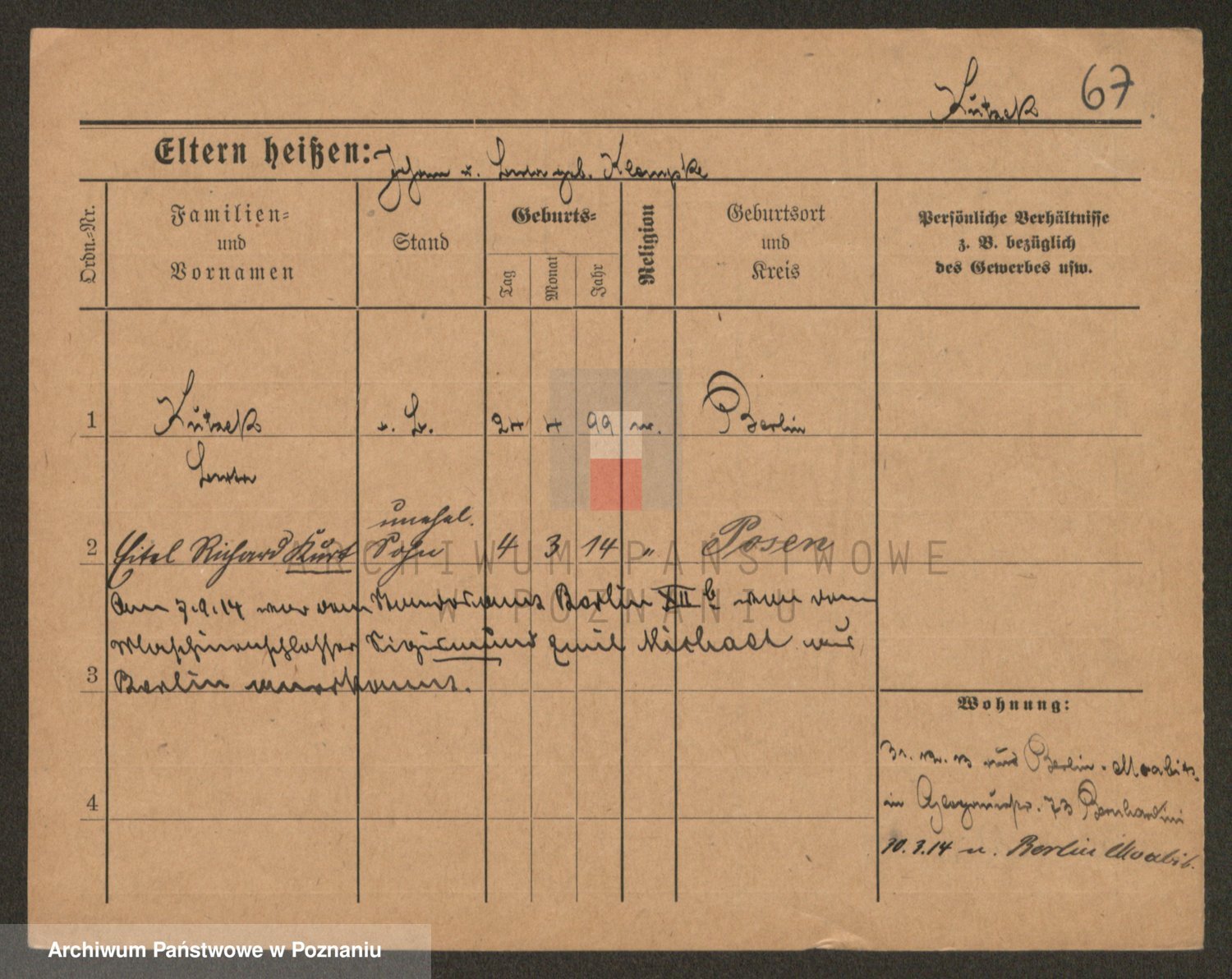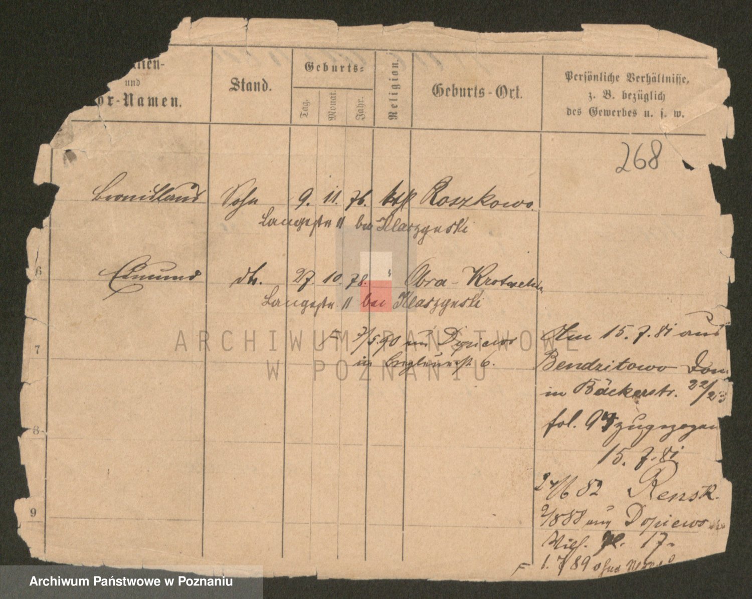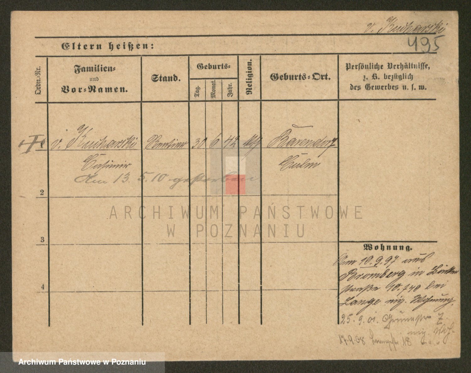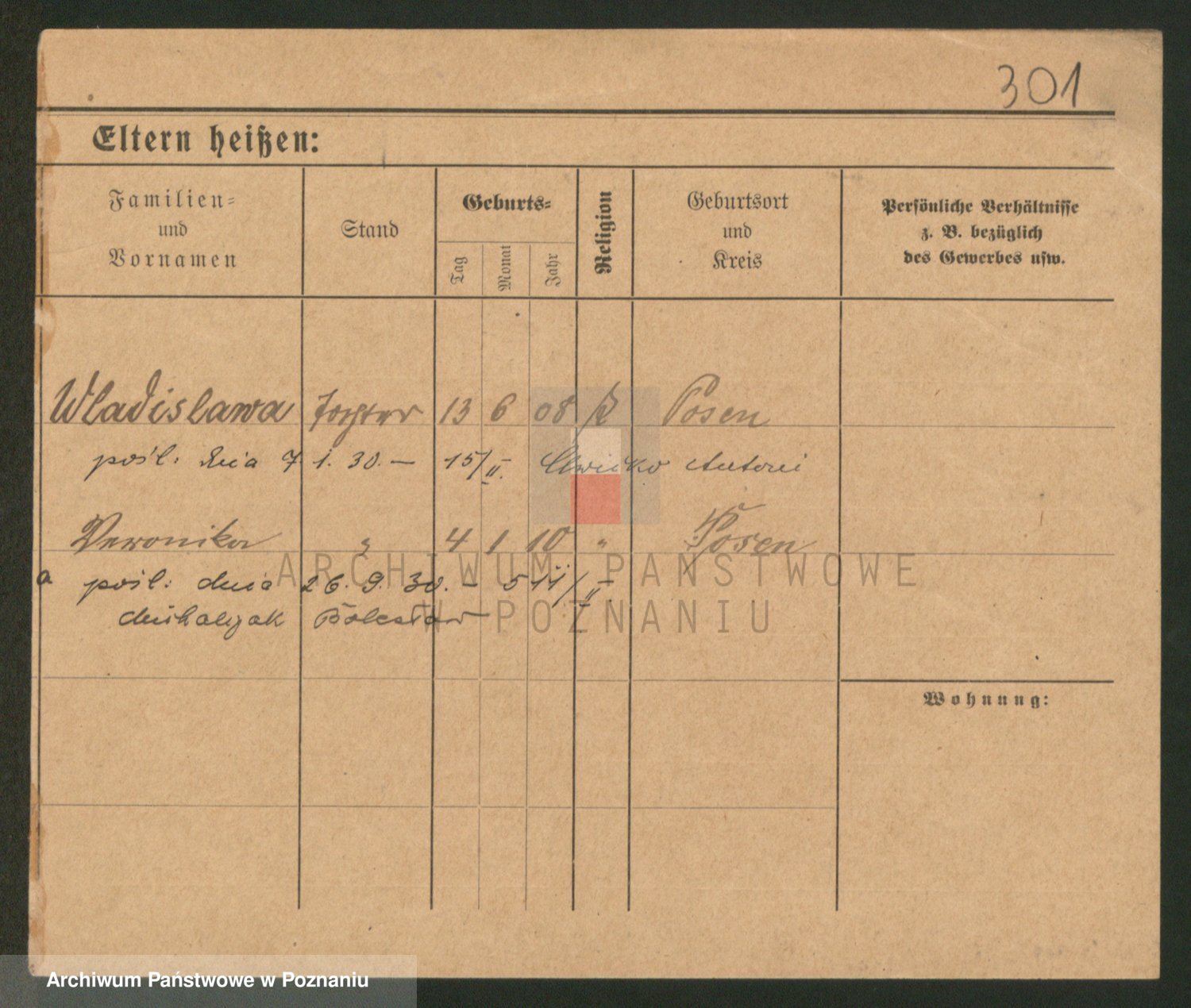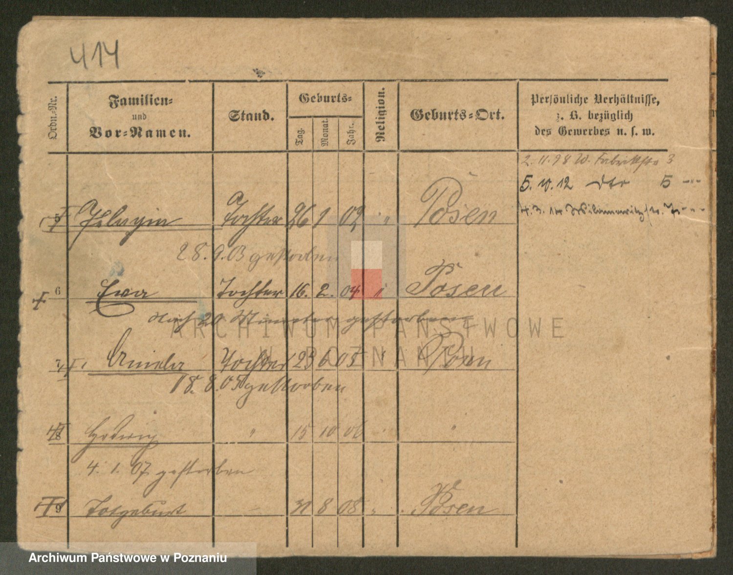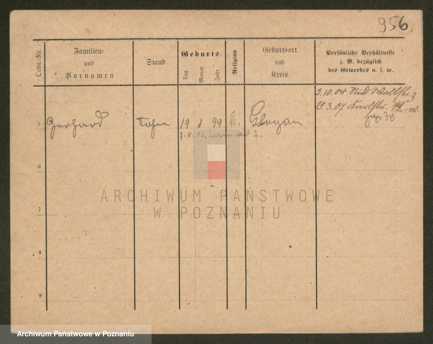 Podgląd karty osobowej dostępny jest po kliknięciu na nazwisko lub ikonkę karty. Można dokonywać powiększenia (ikony na górze) lub przechodzić między kolejnymi skanami (strzałki po bokach).