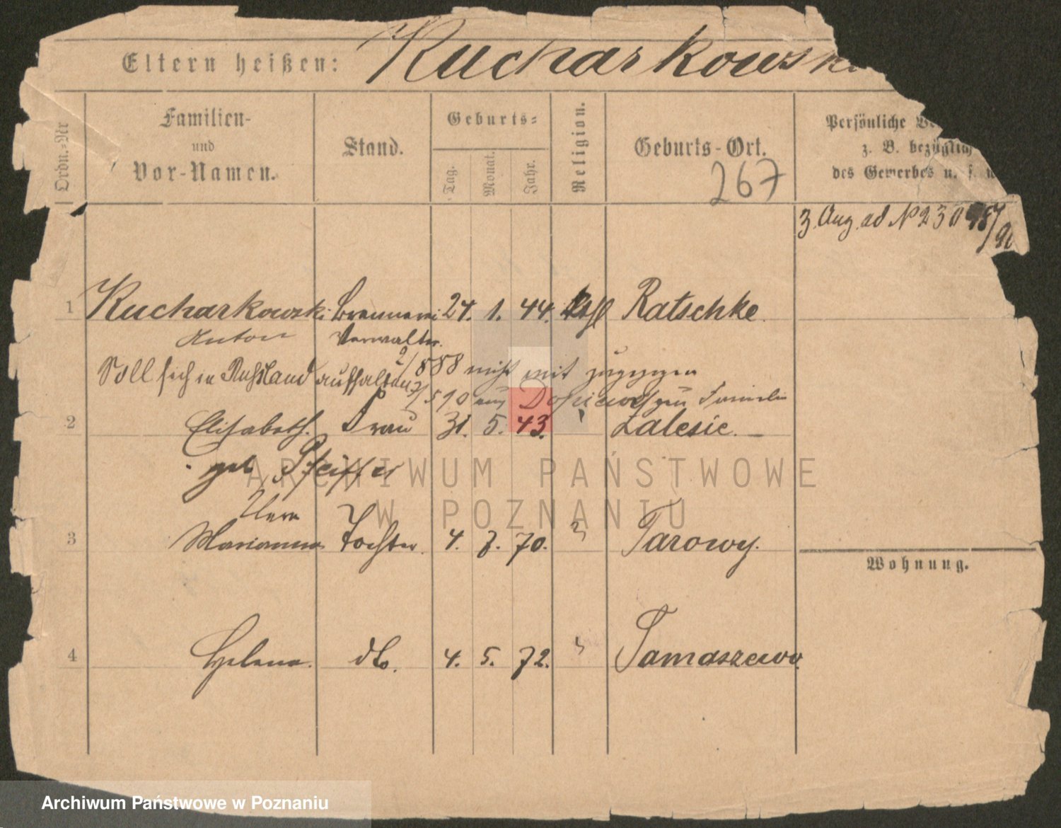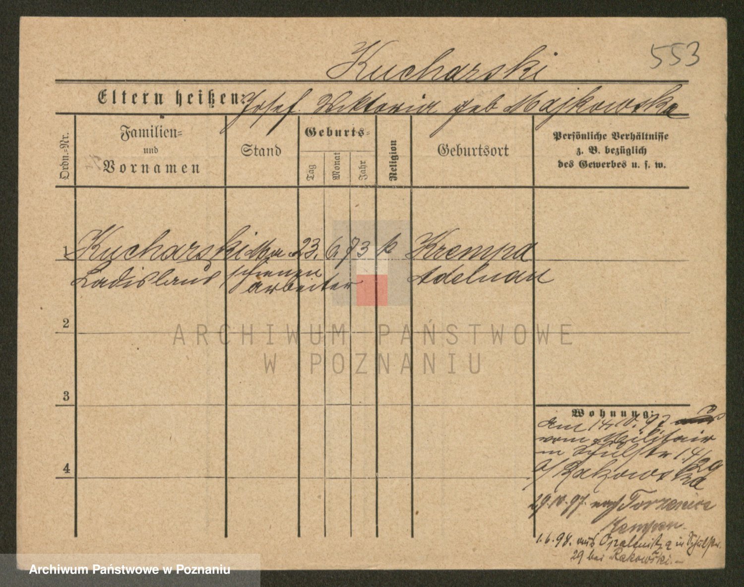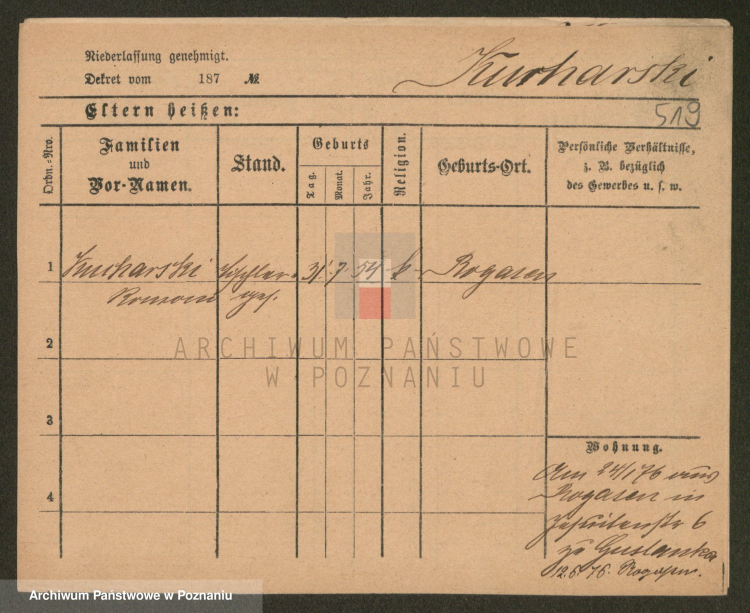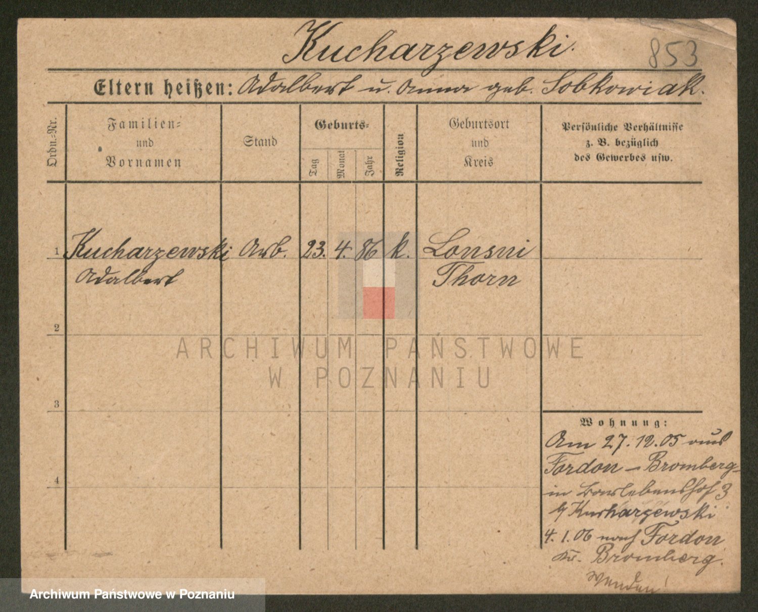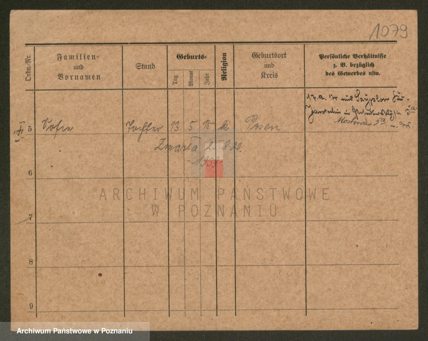 Podgląd karty osobowej dostępny jest po kliknięciu na nazwisko lub ikonkę karty. Można dokonywać powiększenia (ikony na górze) lub przechodzić między kolejnymi skanami (strzałki po bokach).
