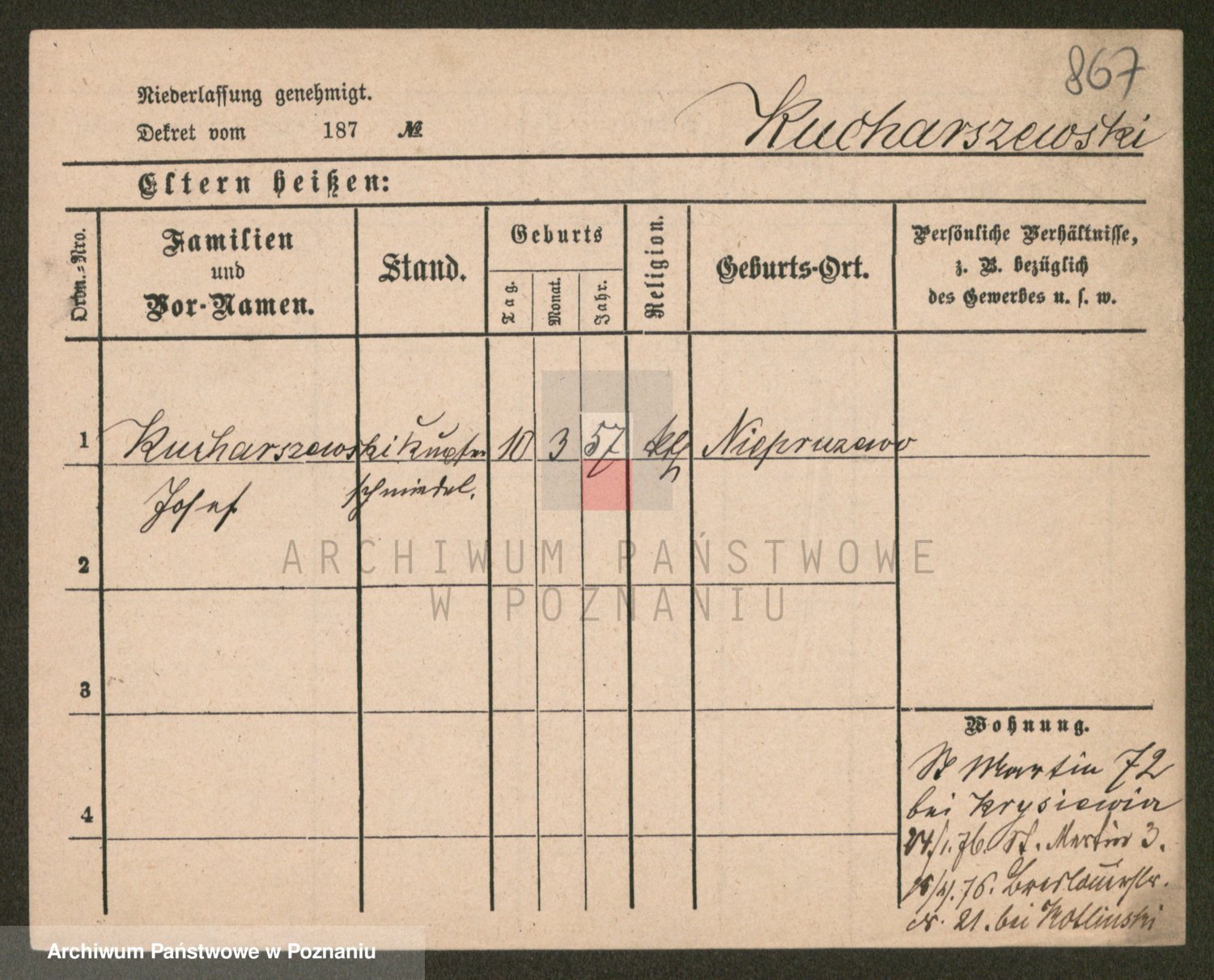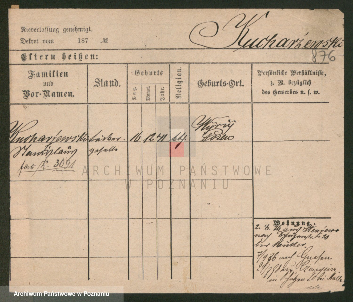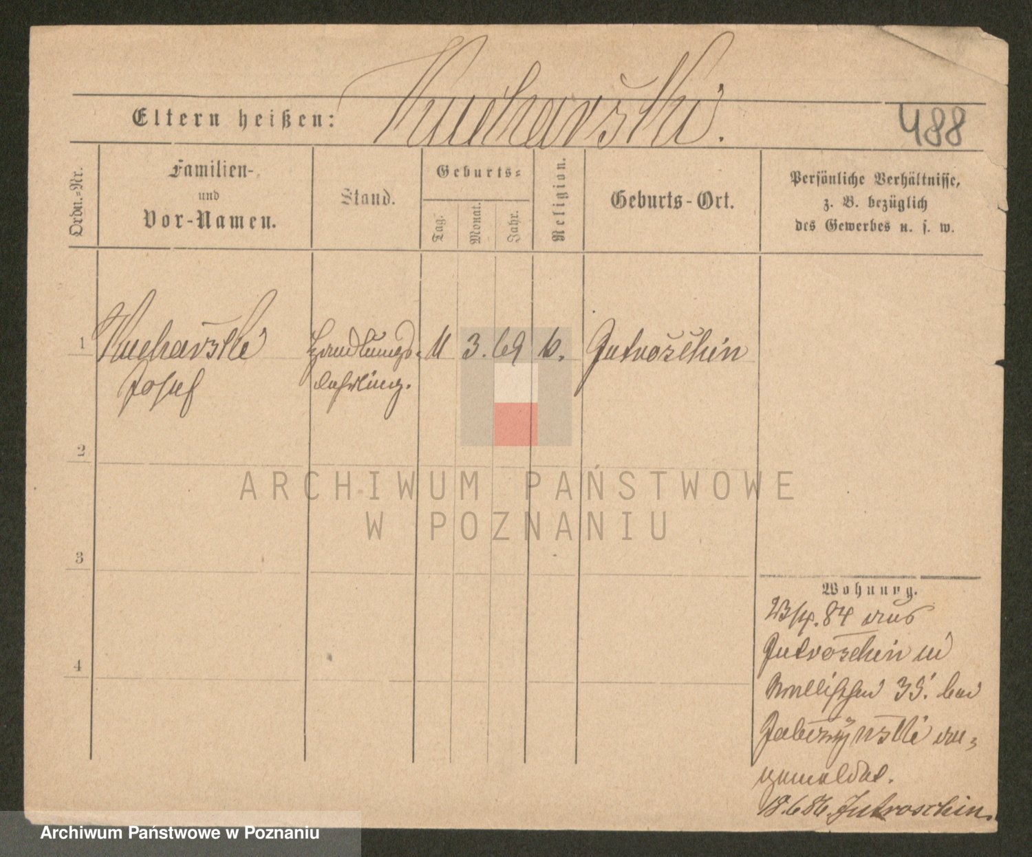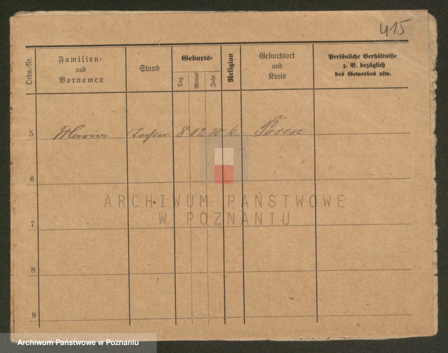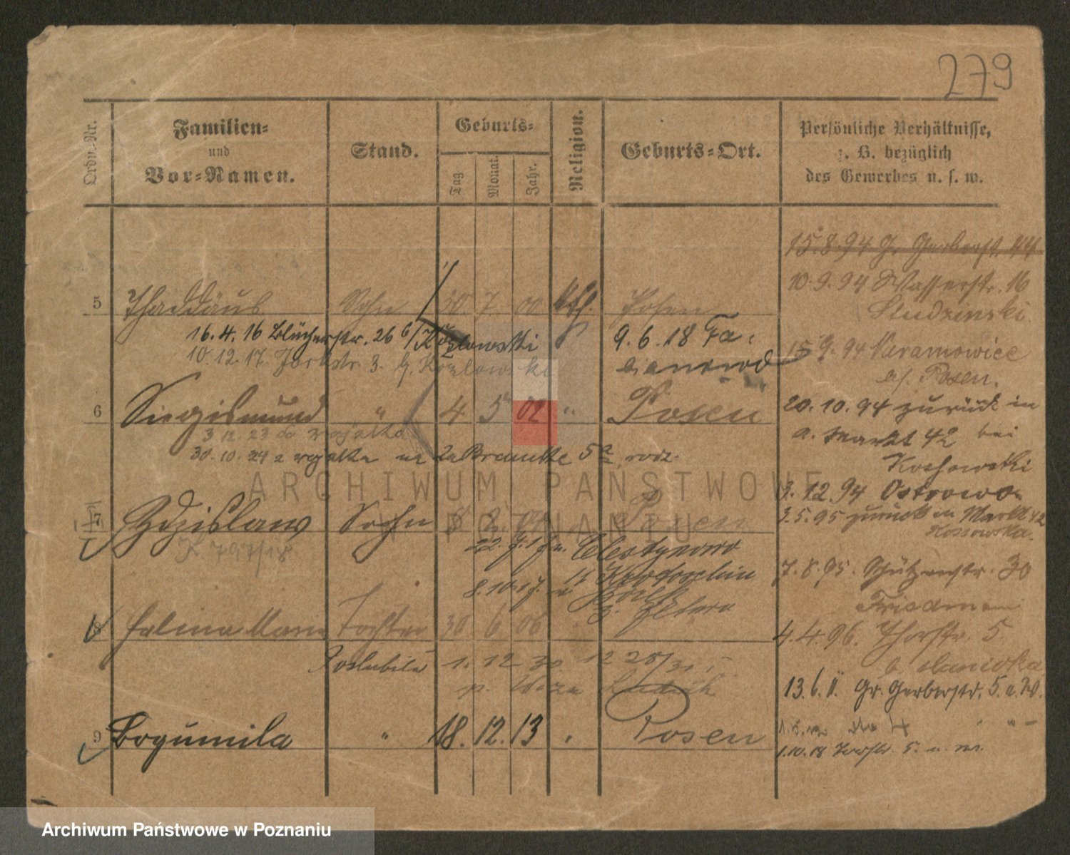 Podgląd karty osobowej dostępny jest po kliknięciu na nazwisko lub ikonkę karty. Można dokonywać powiększenia (ikony na górze) lub przechodzić między kolejnymi skanami (strzałki po bokach).