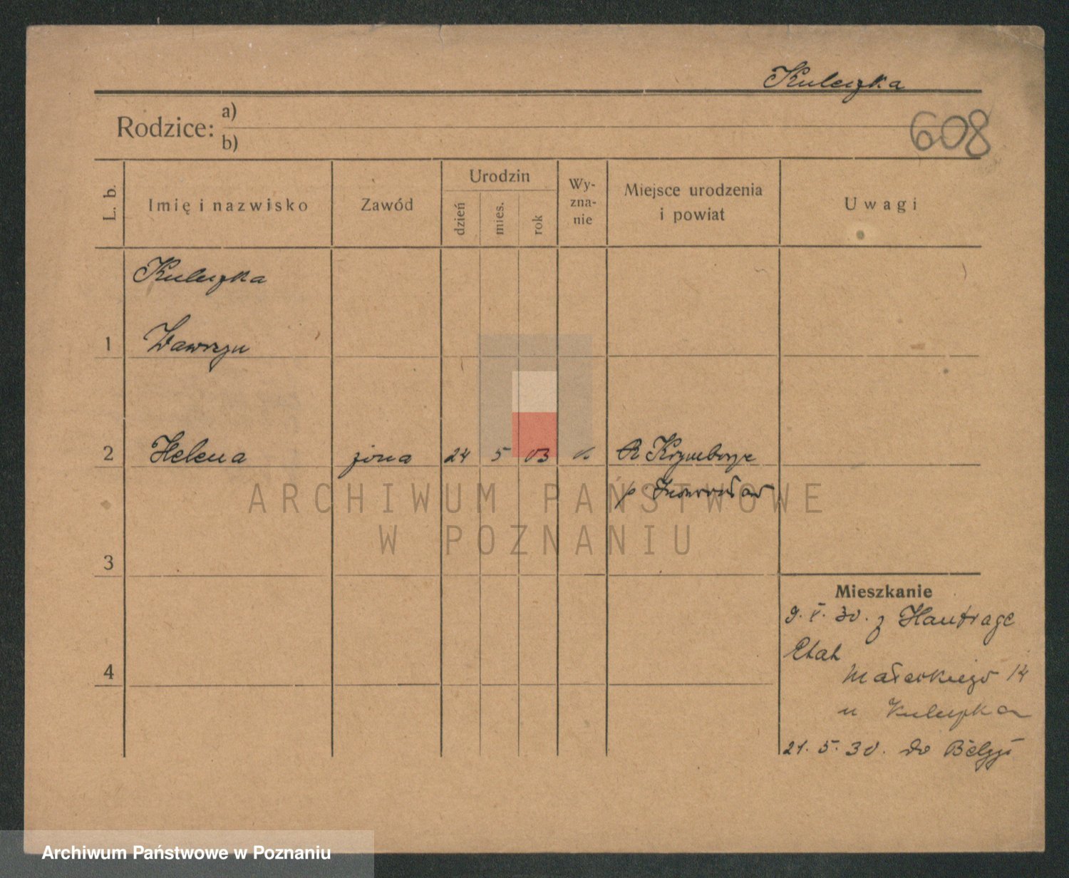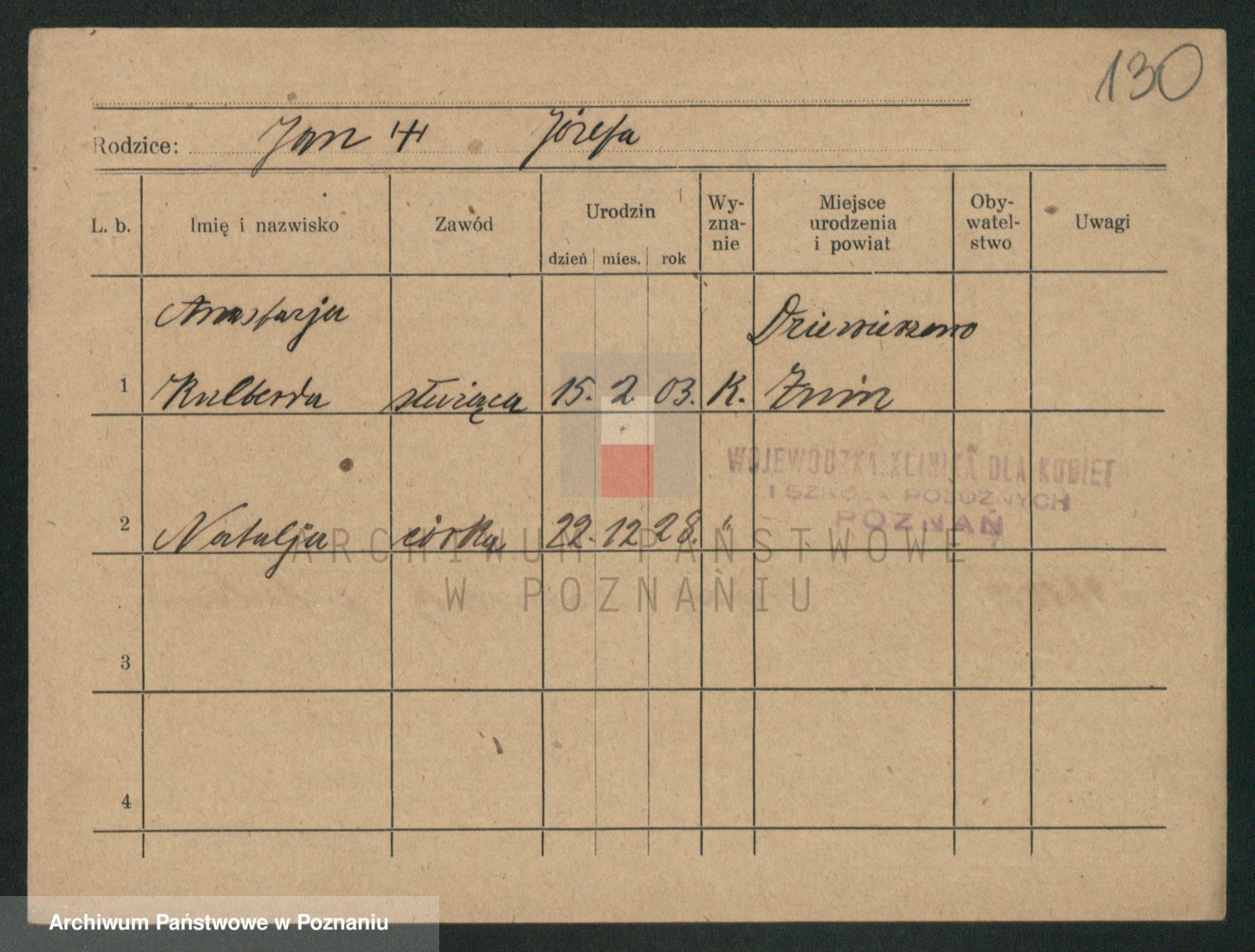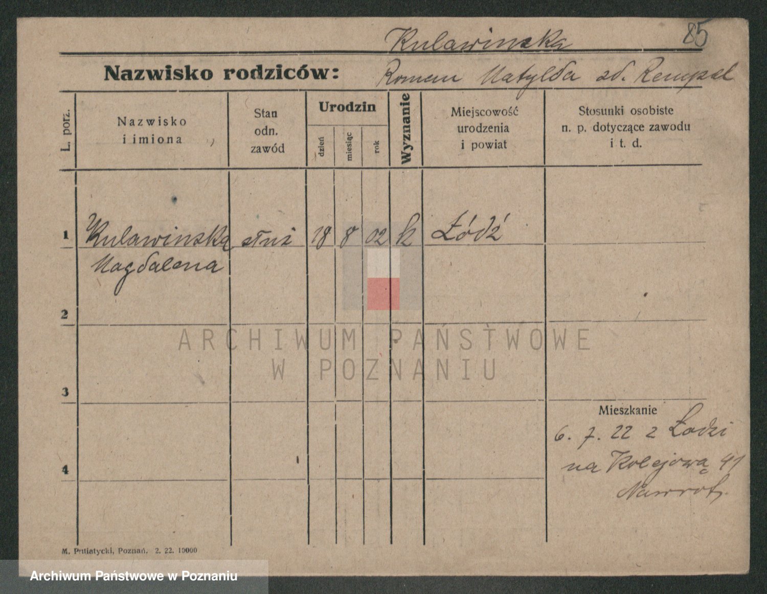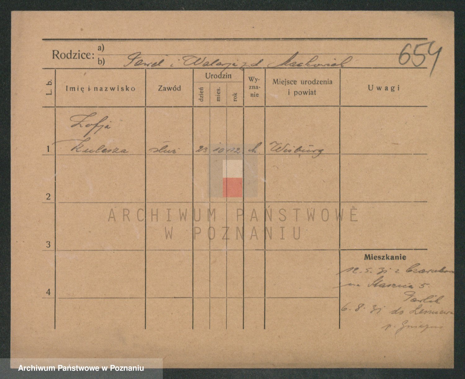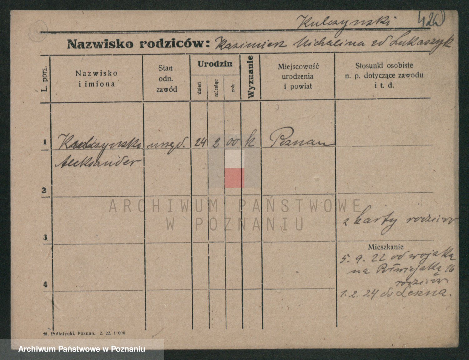 Podgląd karty osobowej dostępny jest po kliknięciu na nazwisko lub ikonkę karty. Można dokonywać powiększenia (ikony na górze) lub przechodzić między kolejnymi skanami (strzałki po bokach).