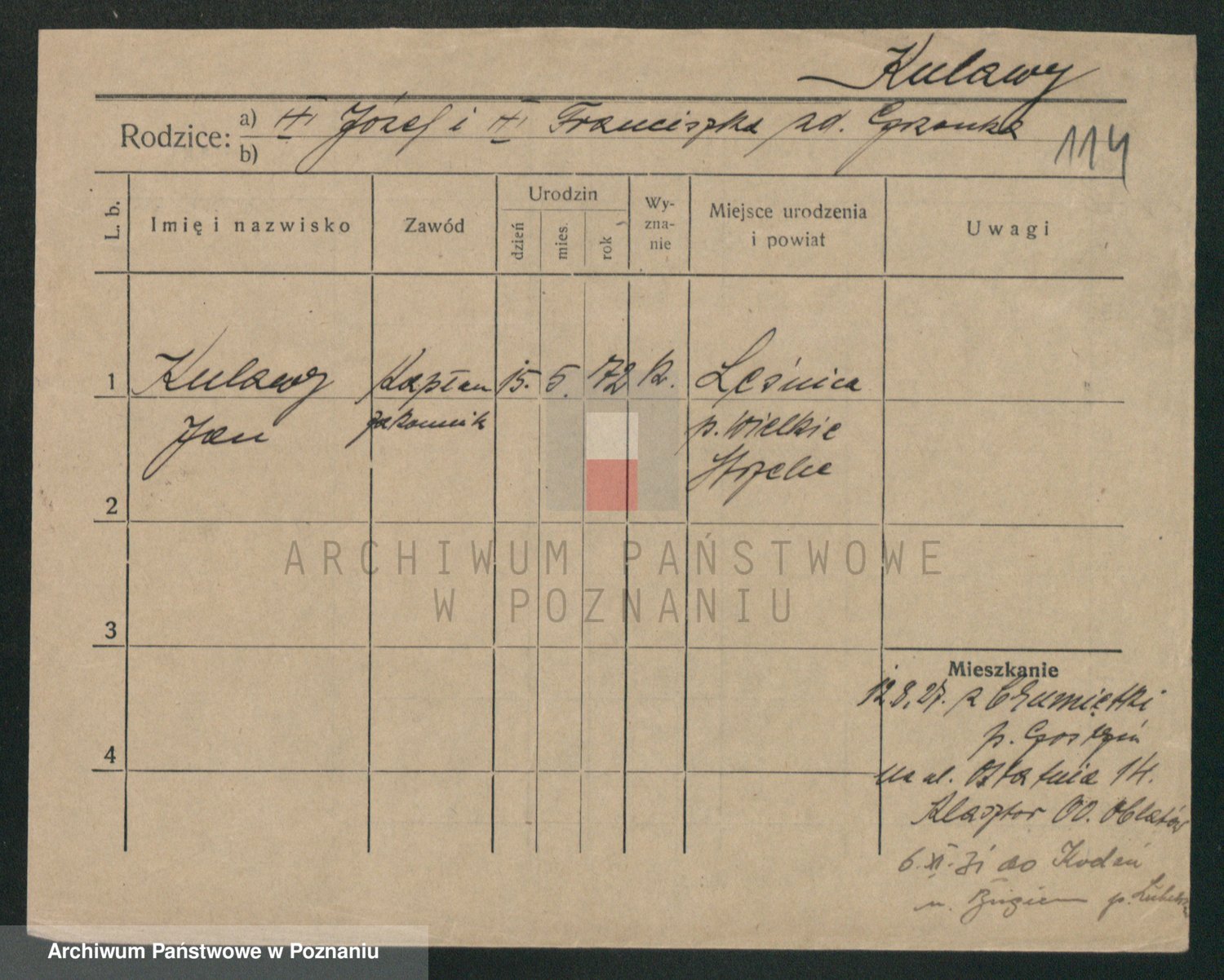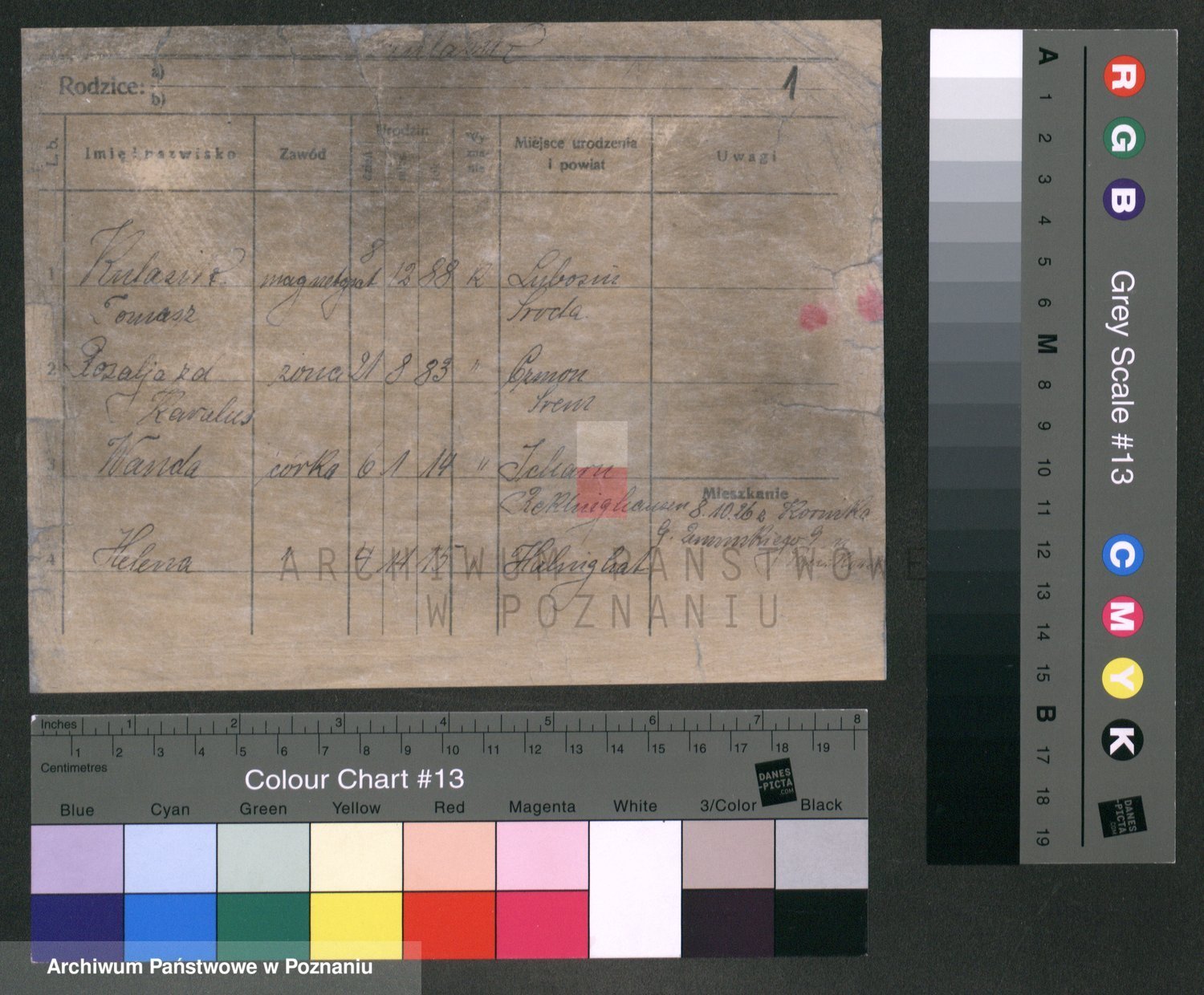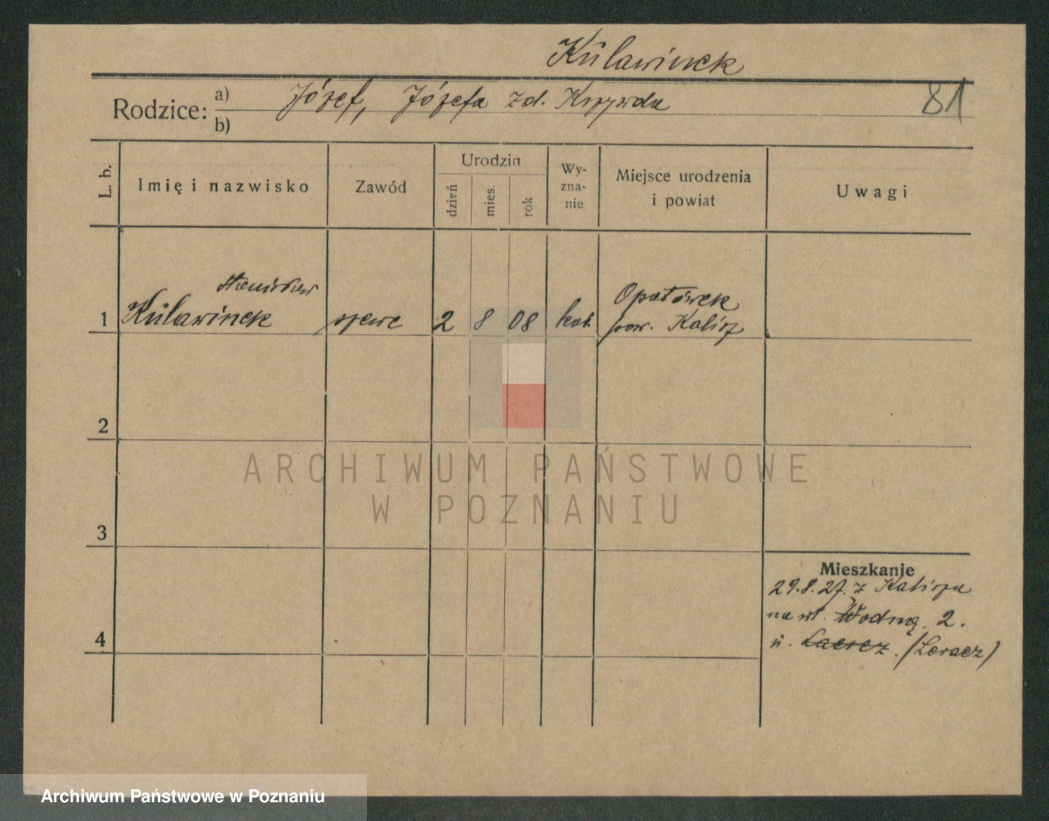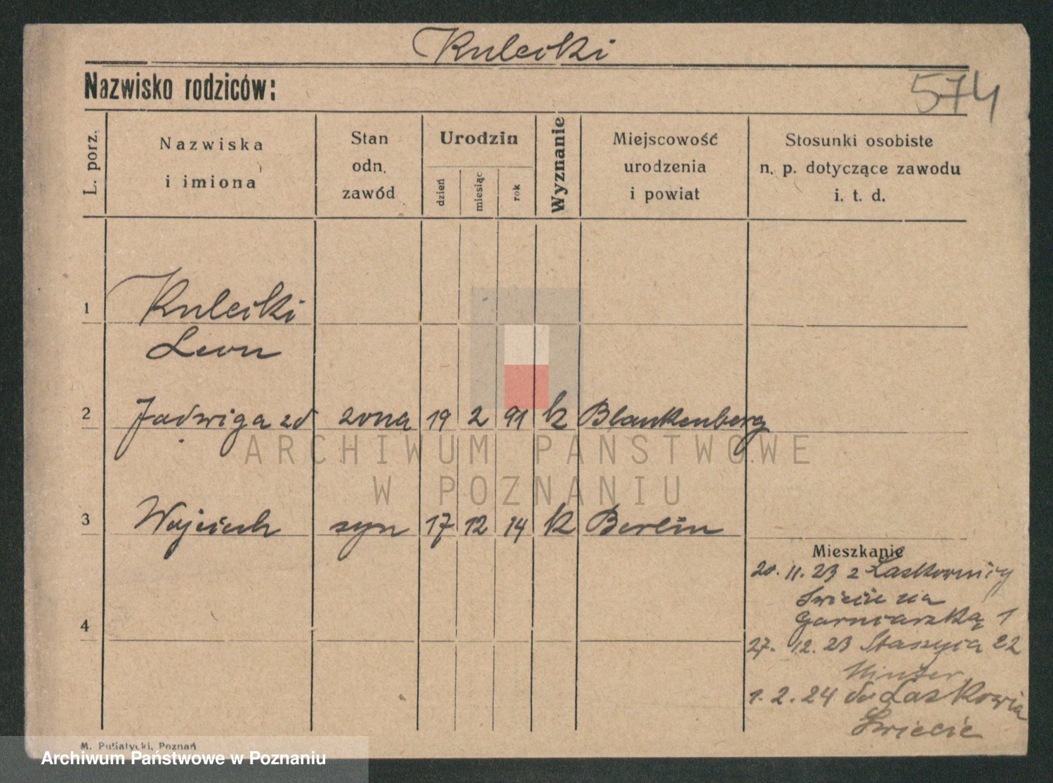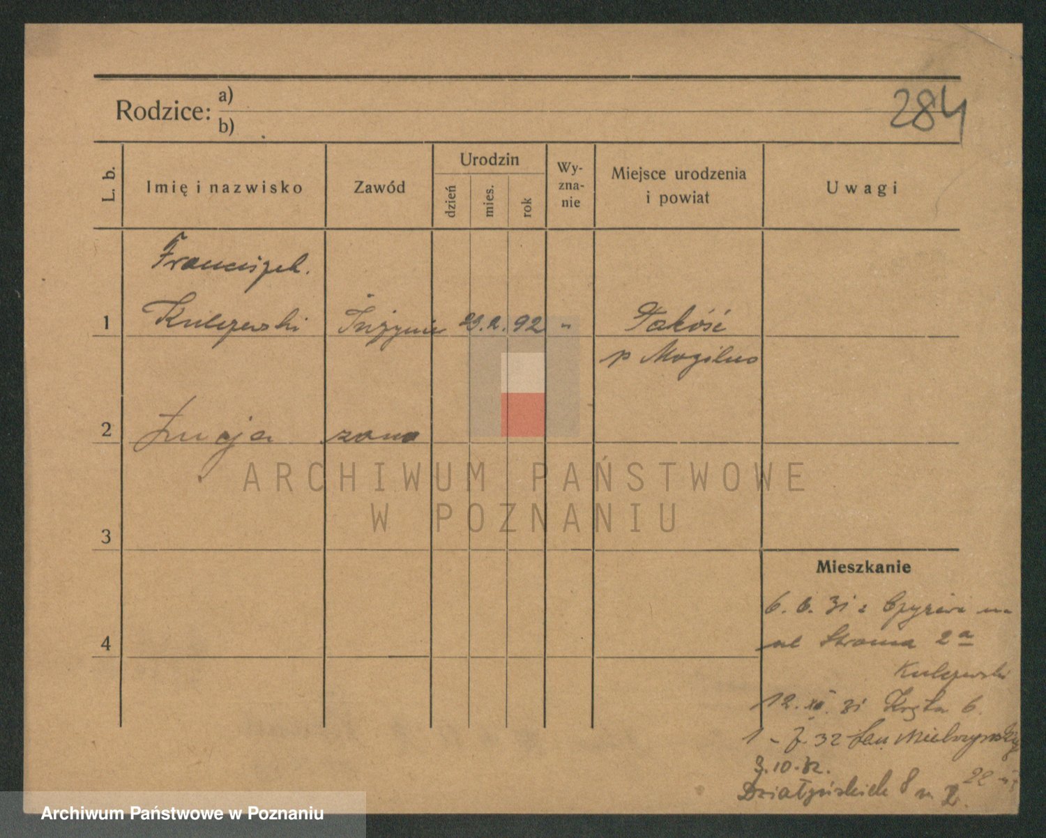 Podgląd karty osobowej dostępny jest po kliknięciu na nazwisko lub ikonkę karty. Można dokonywać powiększenia (ikony na górze) lub przechodzić między kolejnymi skanami (strzałki po bokach).