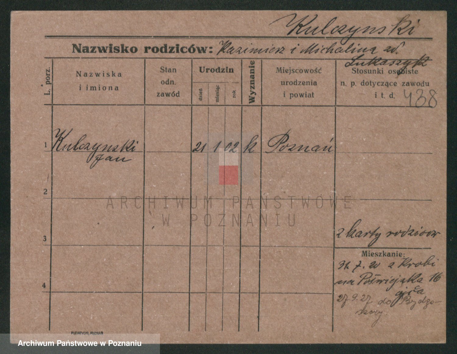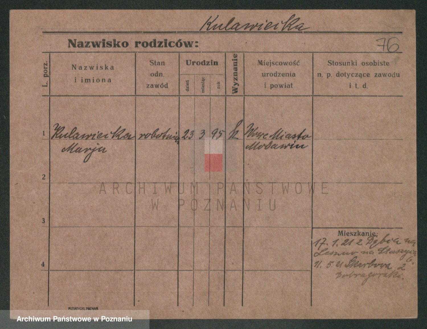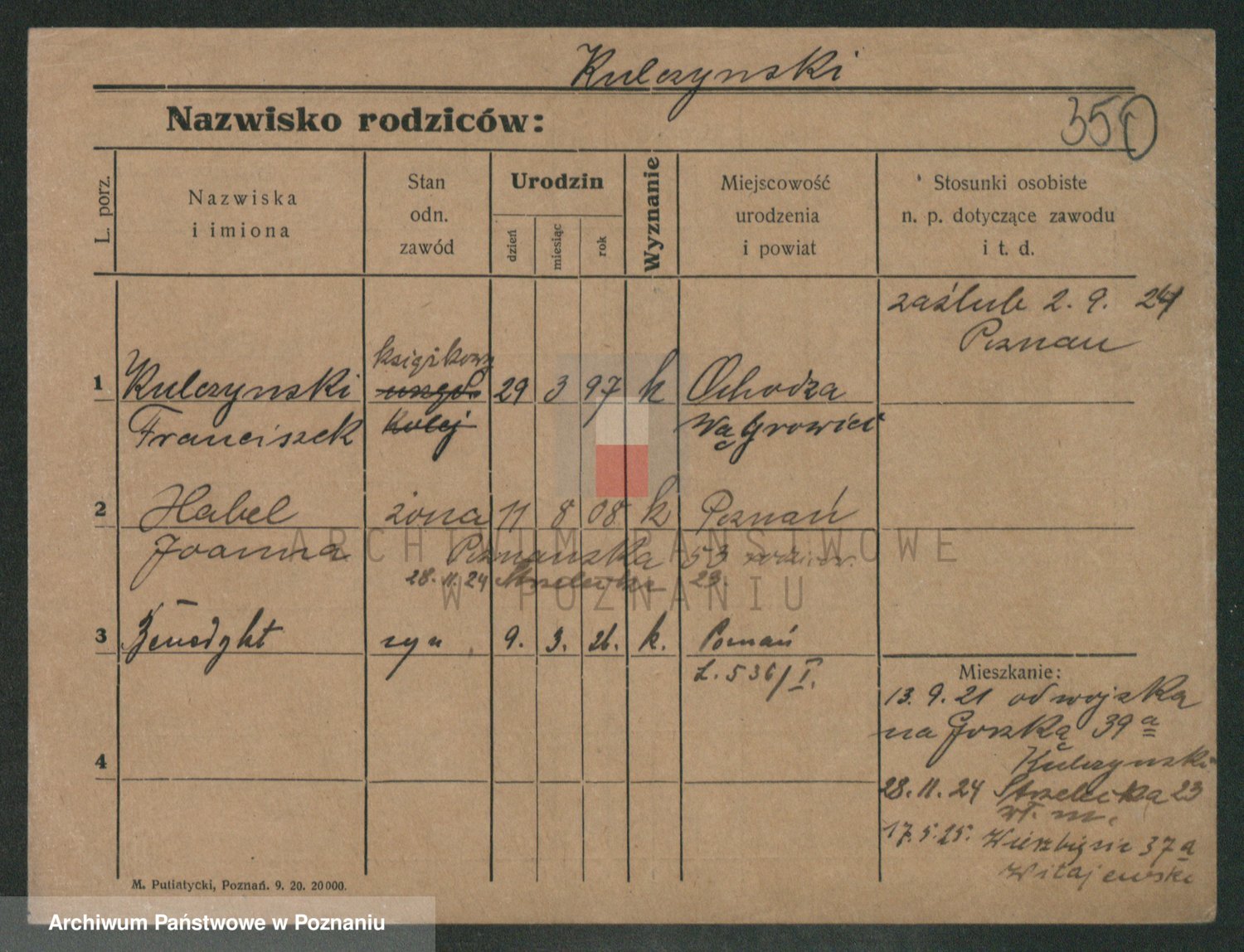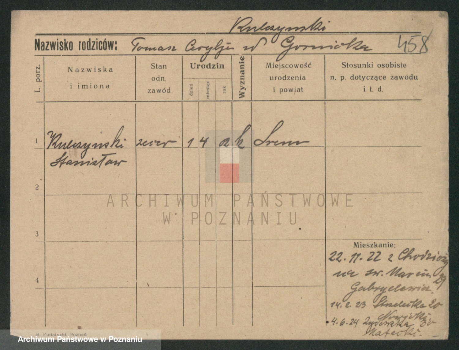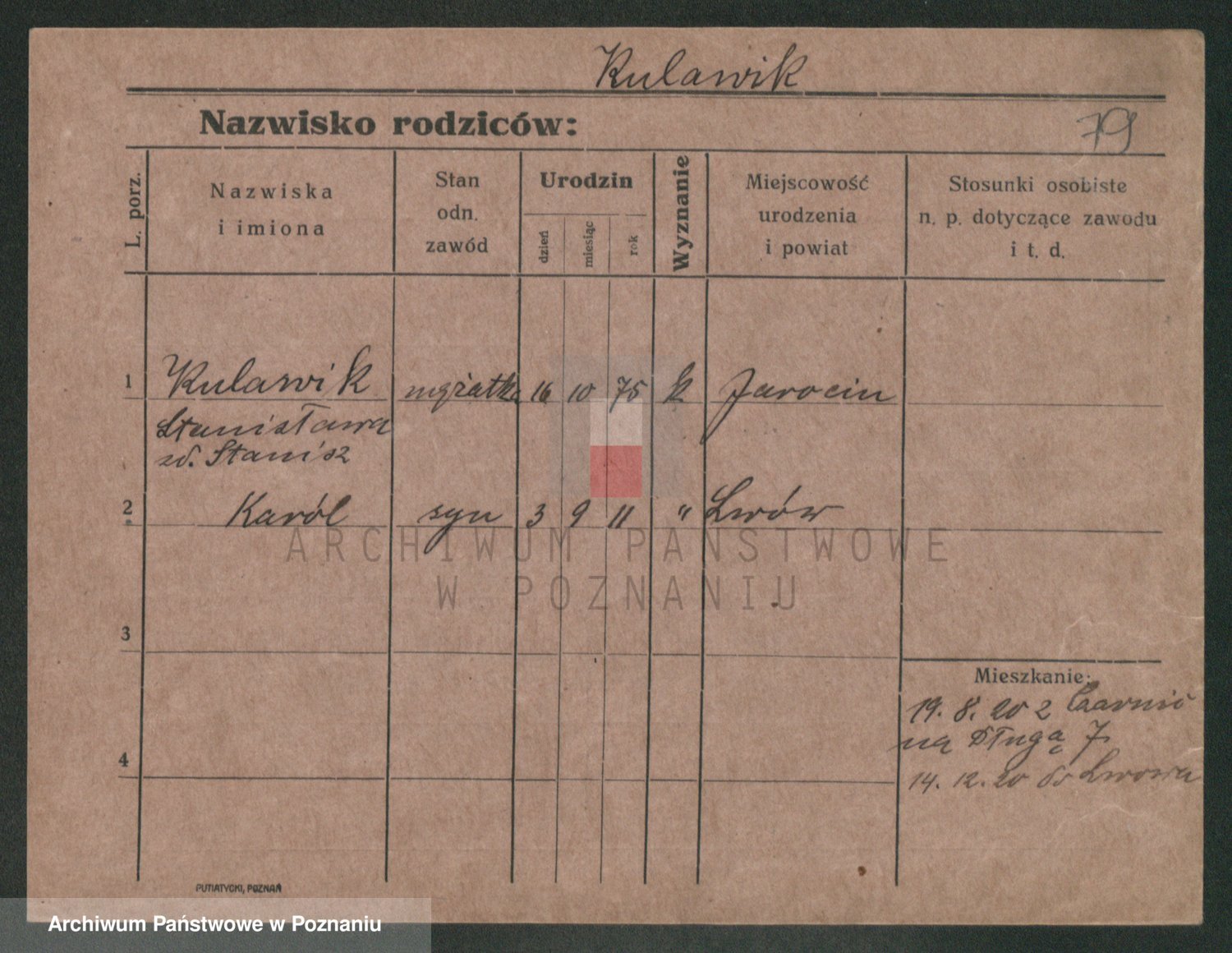 Podgląd karty osobowej dostępny jest po kliknięciu na nazwisko lub ikonkę karty. Można dokonywać powiększenia (ikony na górze) lub przechodzić między kolejnymi skanami (strzałki po bokach).