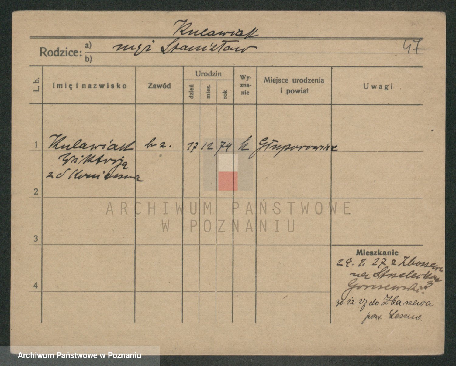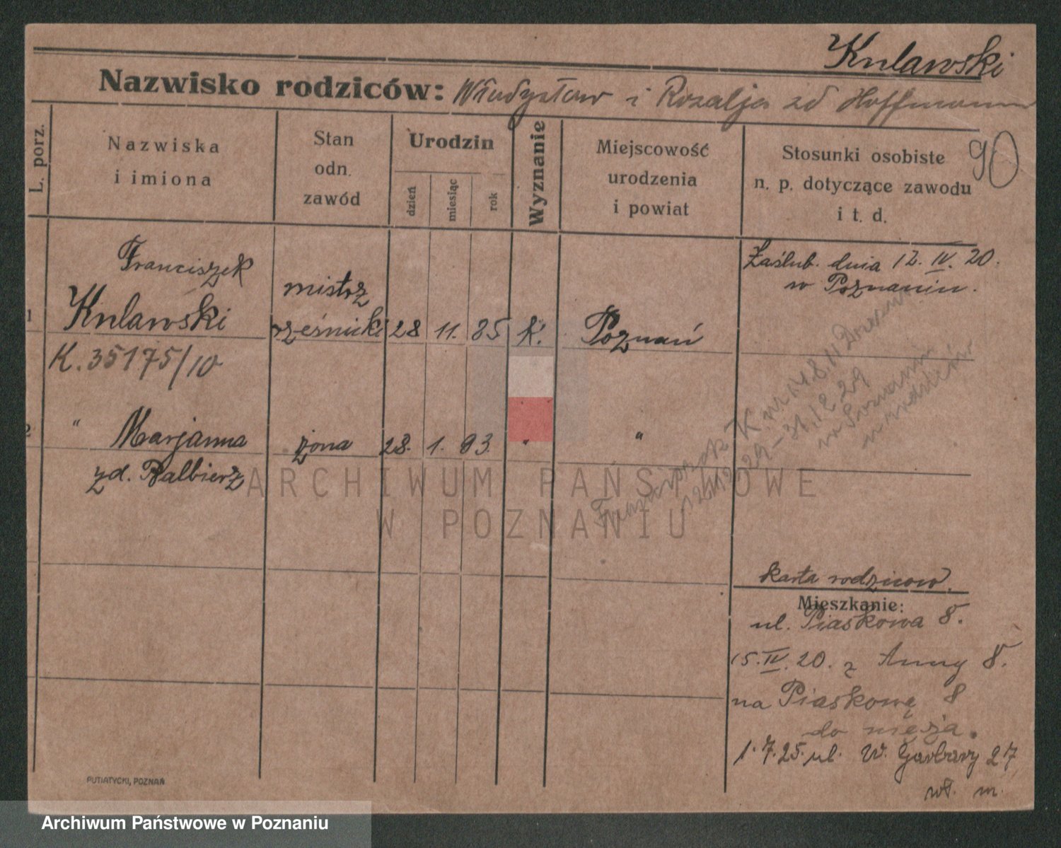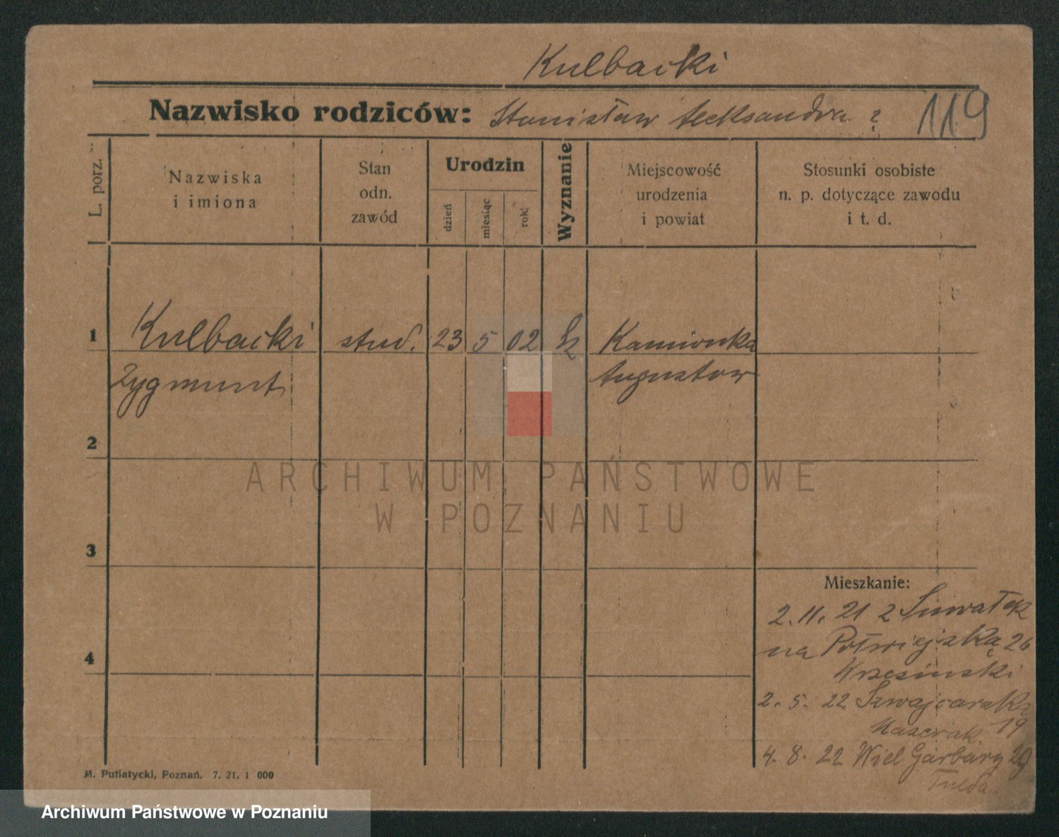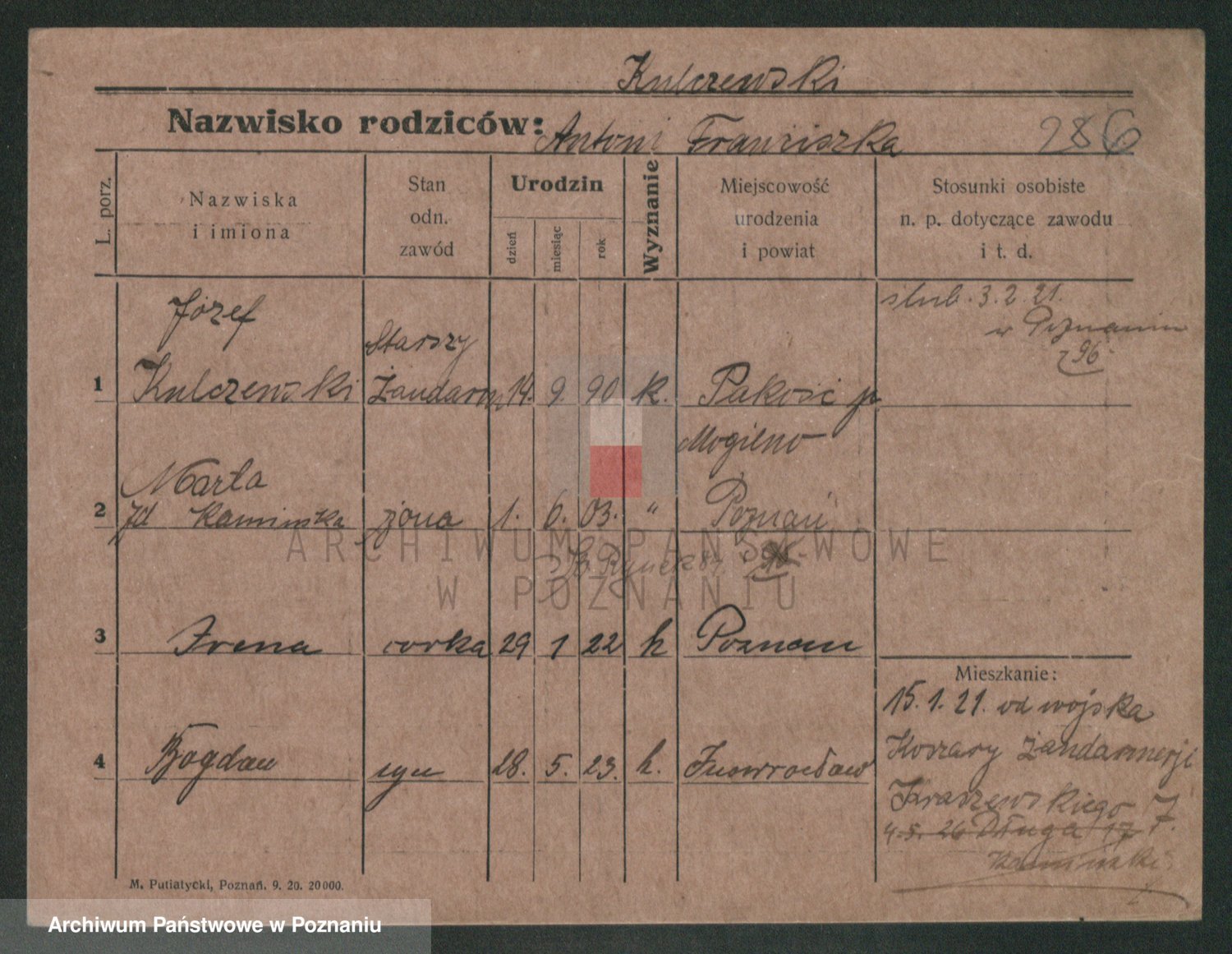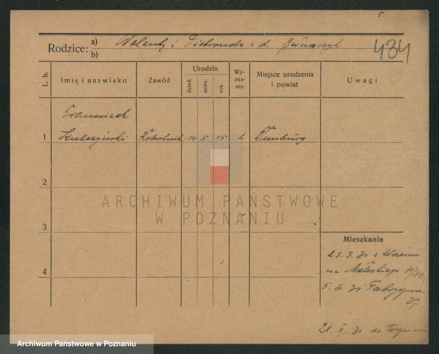 Podgląd karty osobowej dostępny jest po kliknięciu na nazwisko lub ikonkę karty. Można dokonywać powiększenia (ikony na górze) lub przechodzić między kolejnymi skanami (strzałki po bokach).
