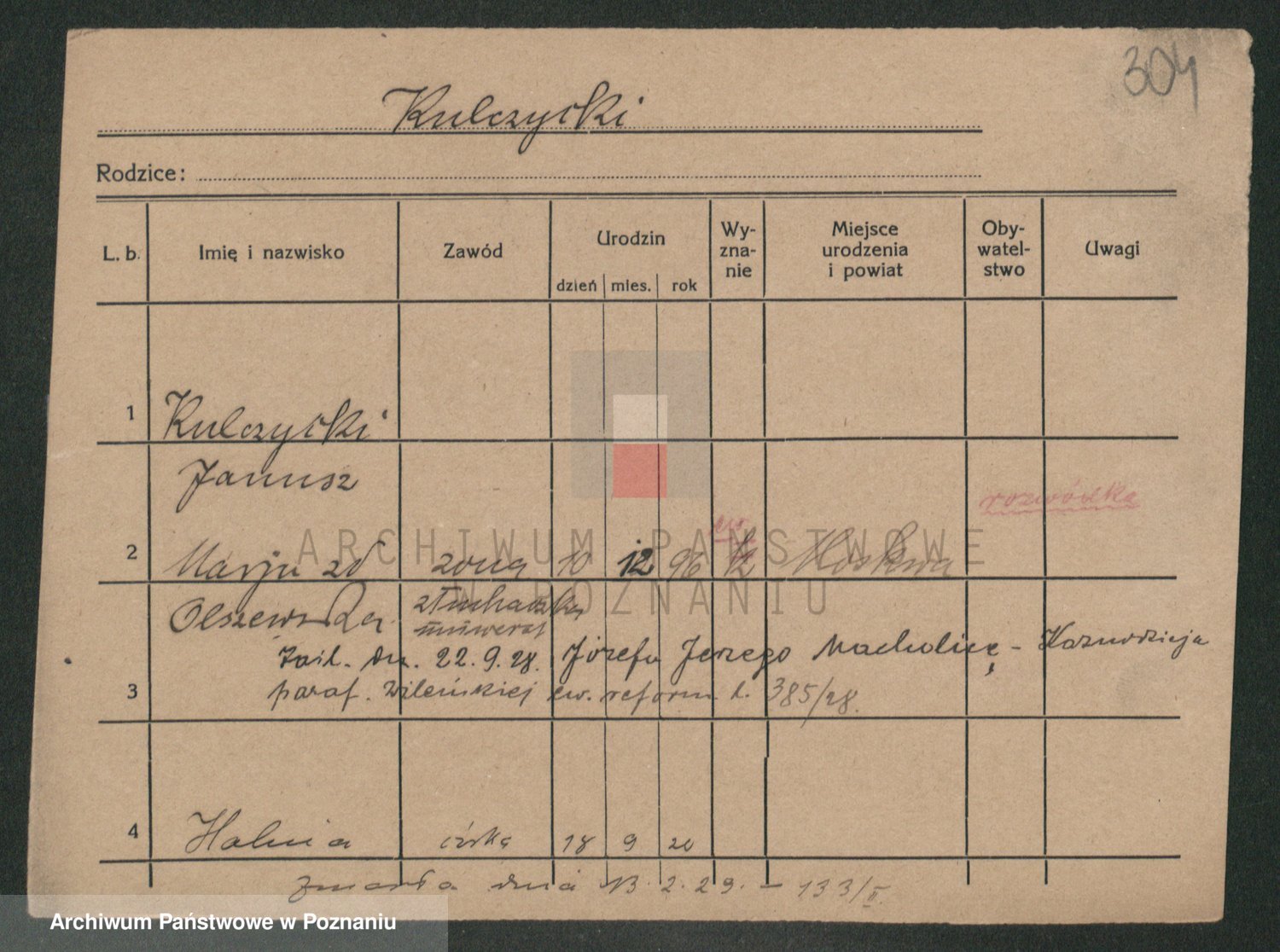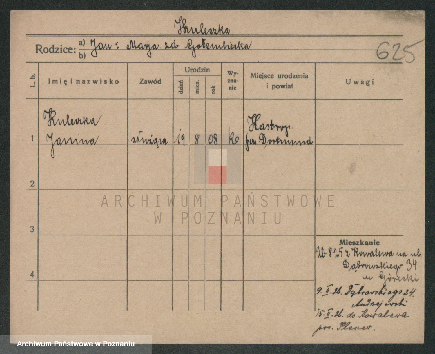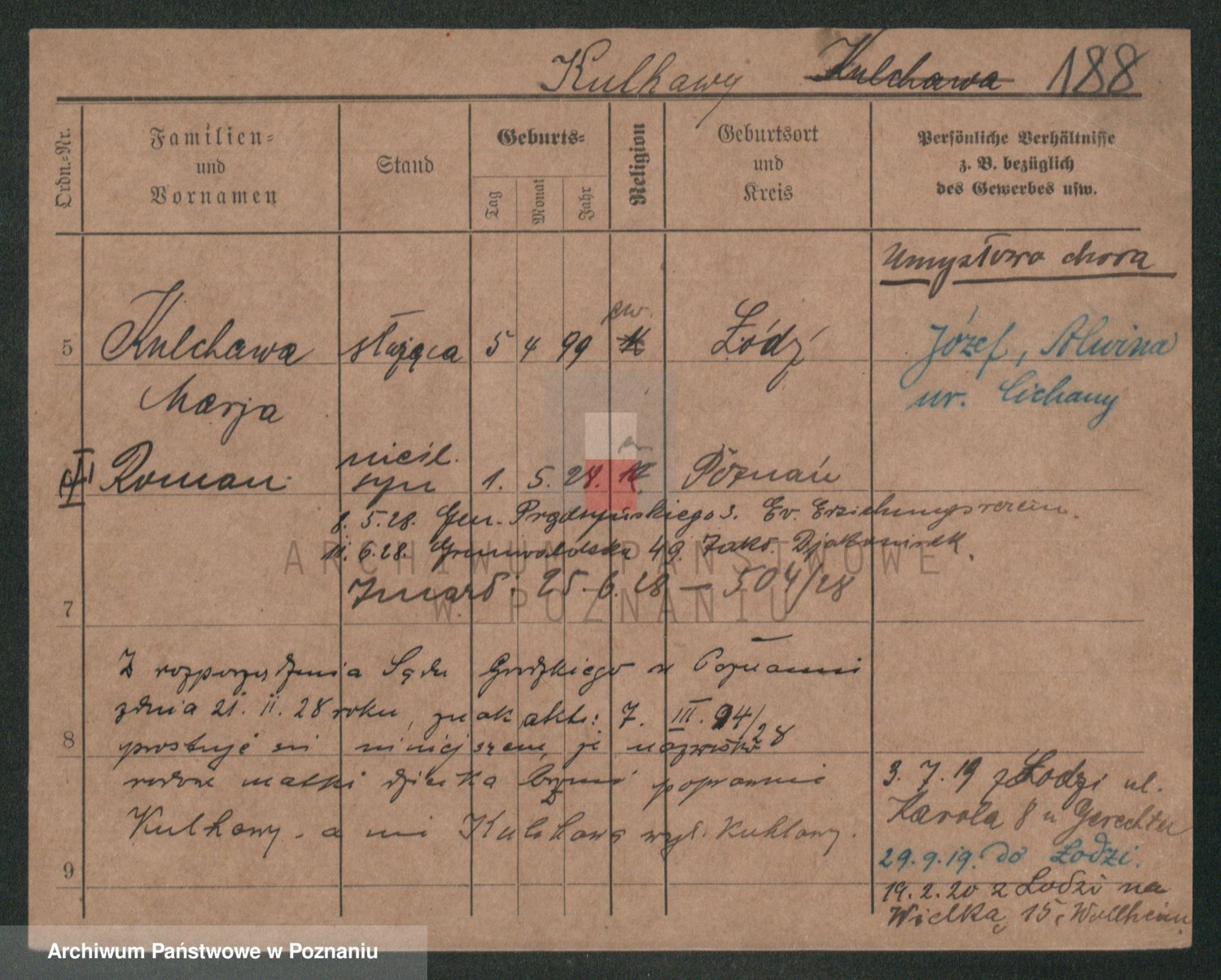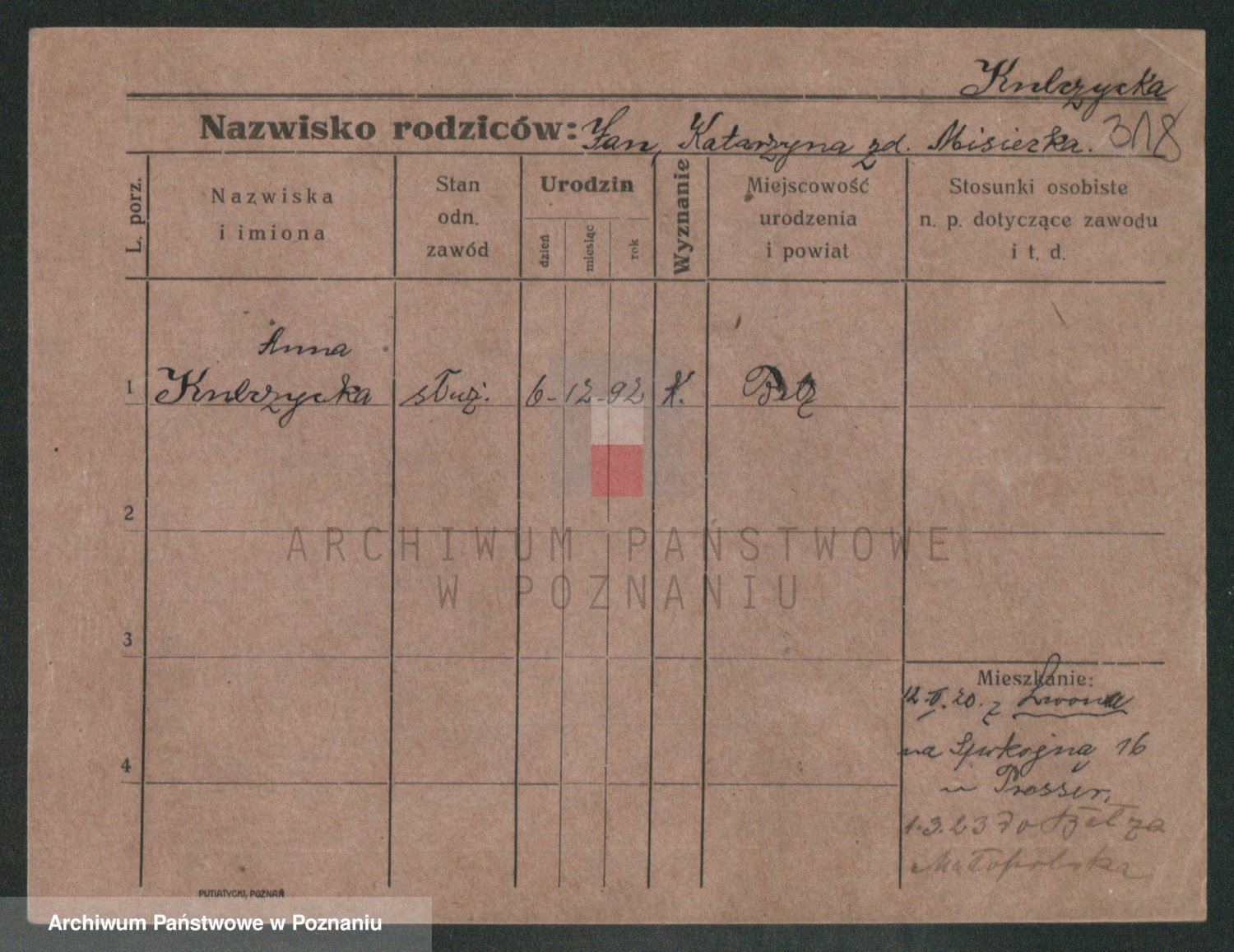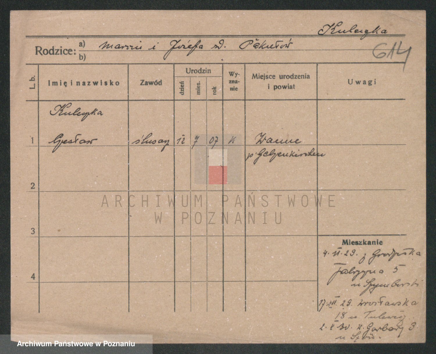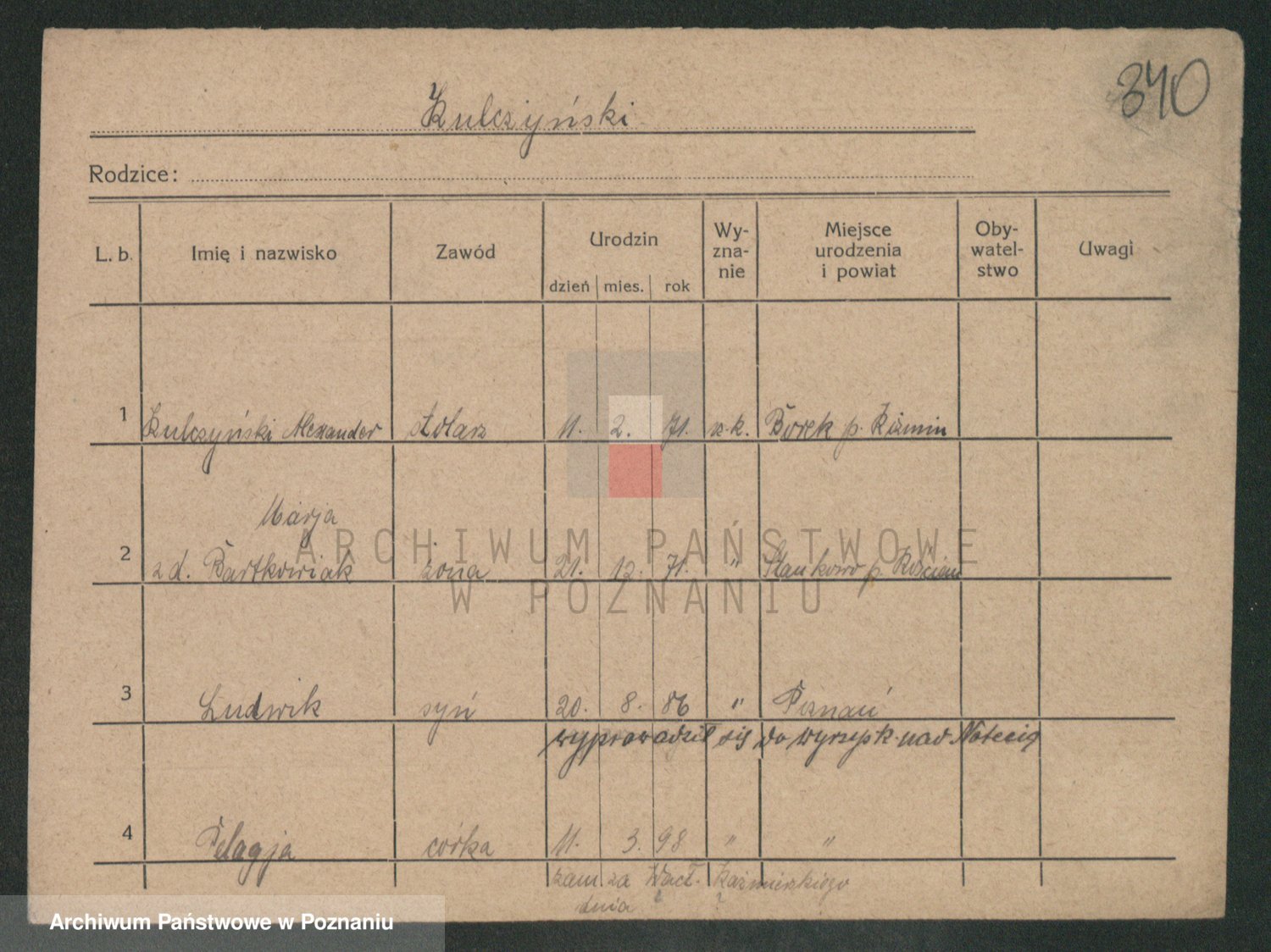 Podgląd karty osobowej dostępny jest po kliknięciu na nazwisko lub ikonkę karty. Można dokonywać powiększenia (ikony na górze) lub przechodzić między kolejnymi skanami (strzałki po bokach).