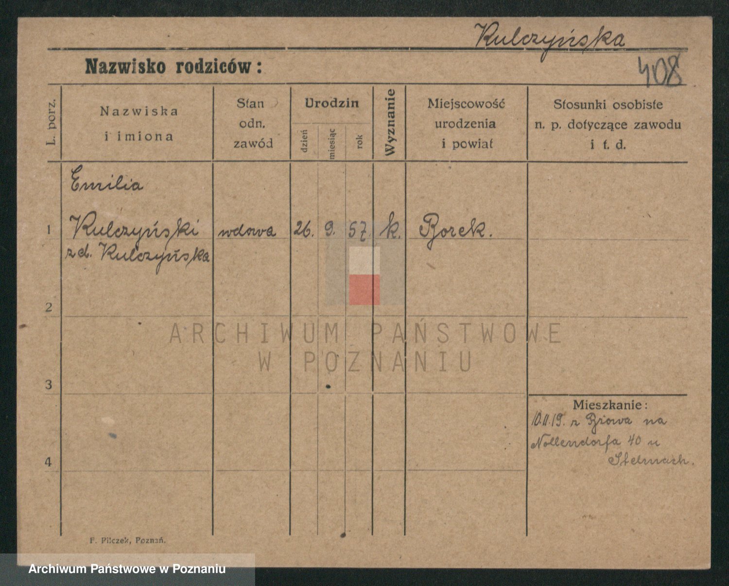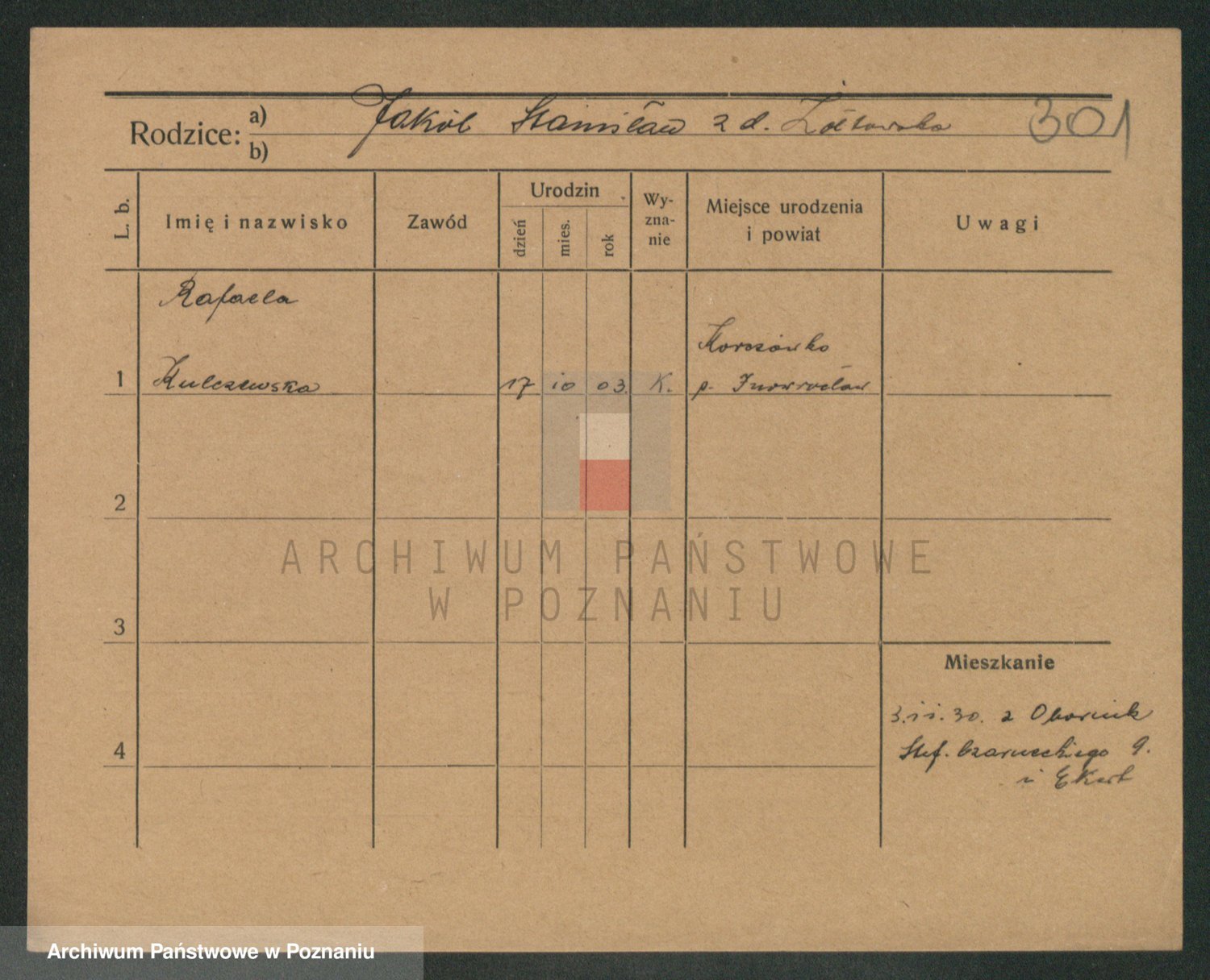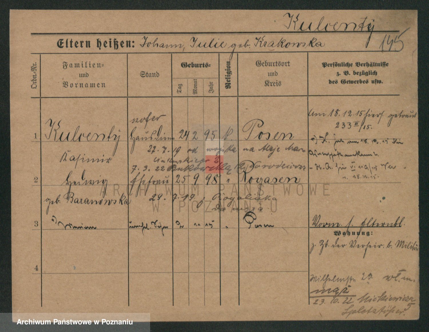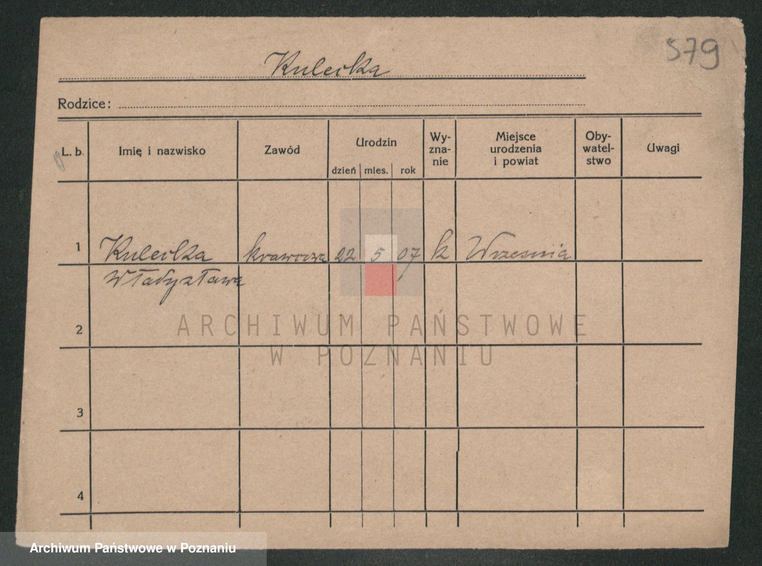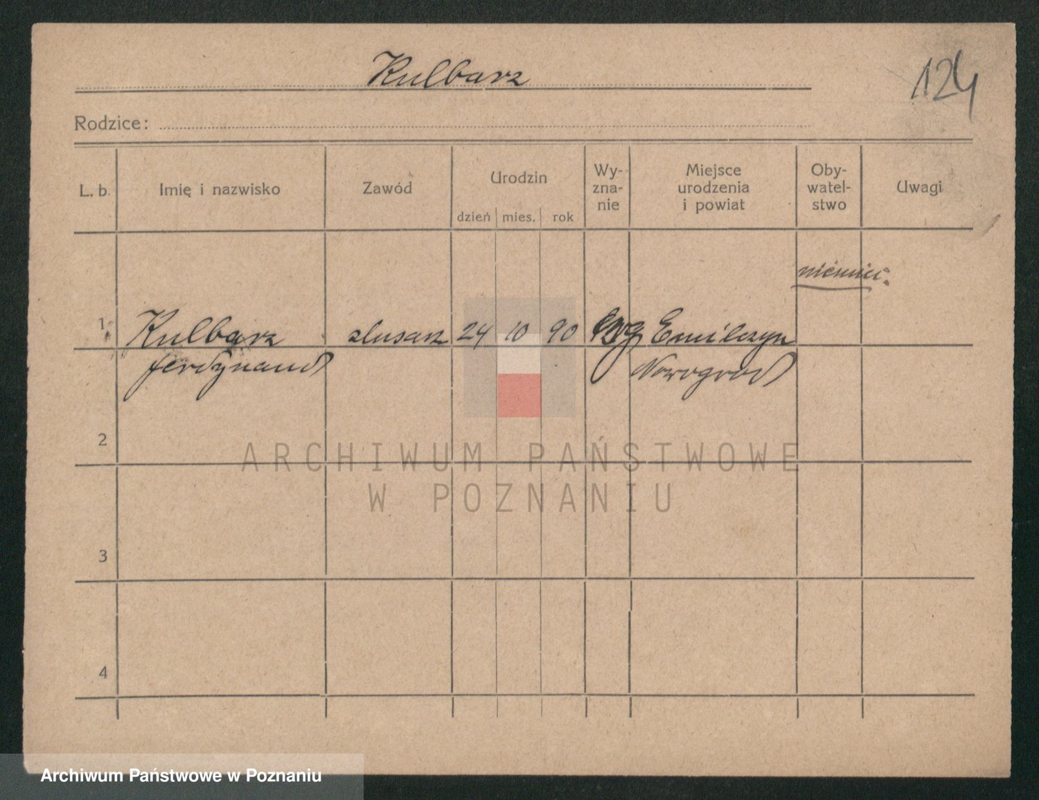 Podgląd karty osobowej dostępny jest po kliknięciu na nazwisko lub ikonkę karty. Można dokonywać powiększenia (ikony na górze) lub przechodzić między kolejnymi skanami (strzałki po bokach).