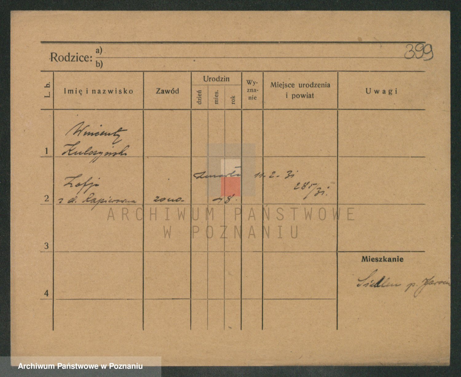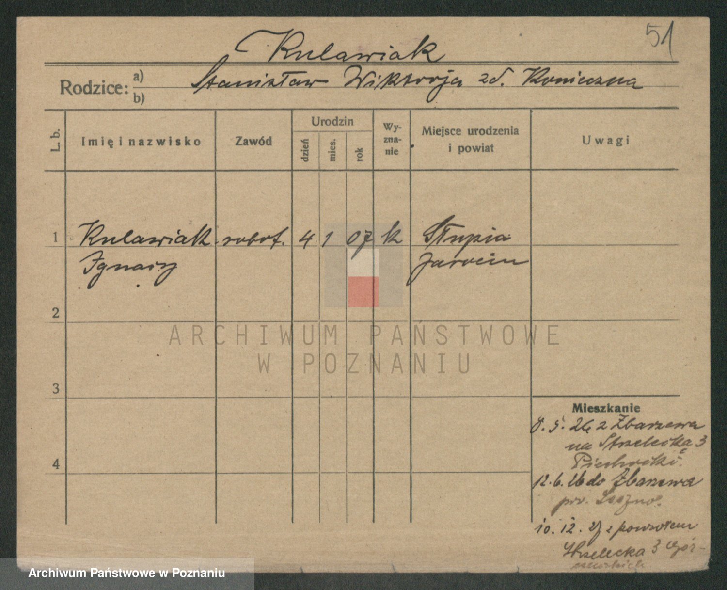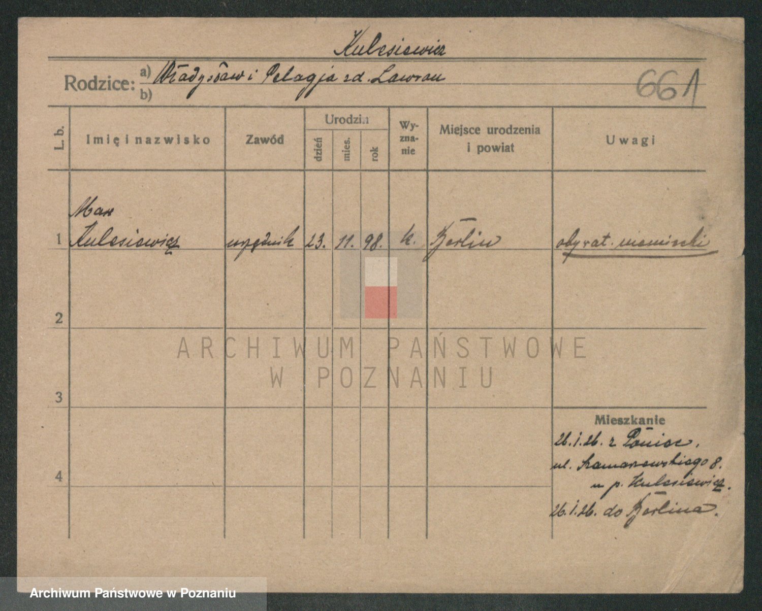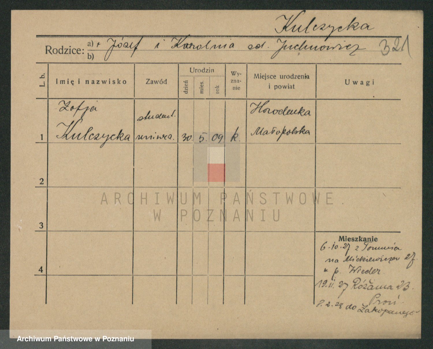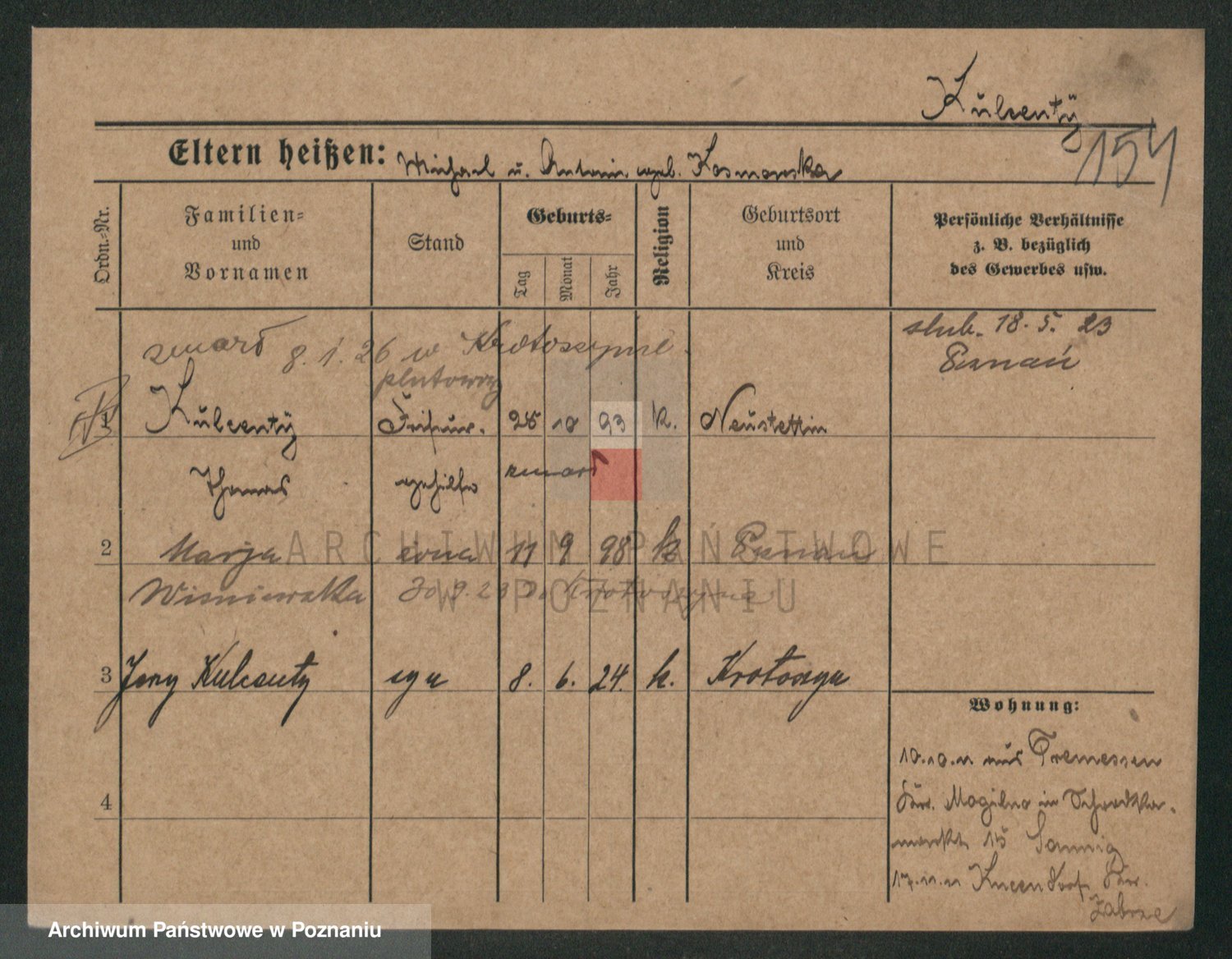Podgląd karty osobowej dostępny jest po kliknięciu na nazwisko lub ikonkę karty. Można dokonywać powiększenia (ikony na górze) lub przechodzić między kolejnymi skanami (strzałki po bokach).