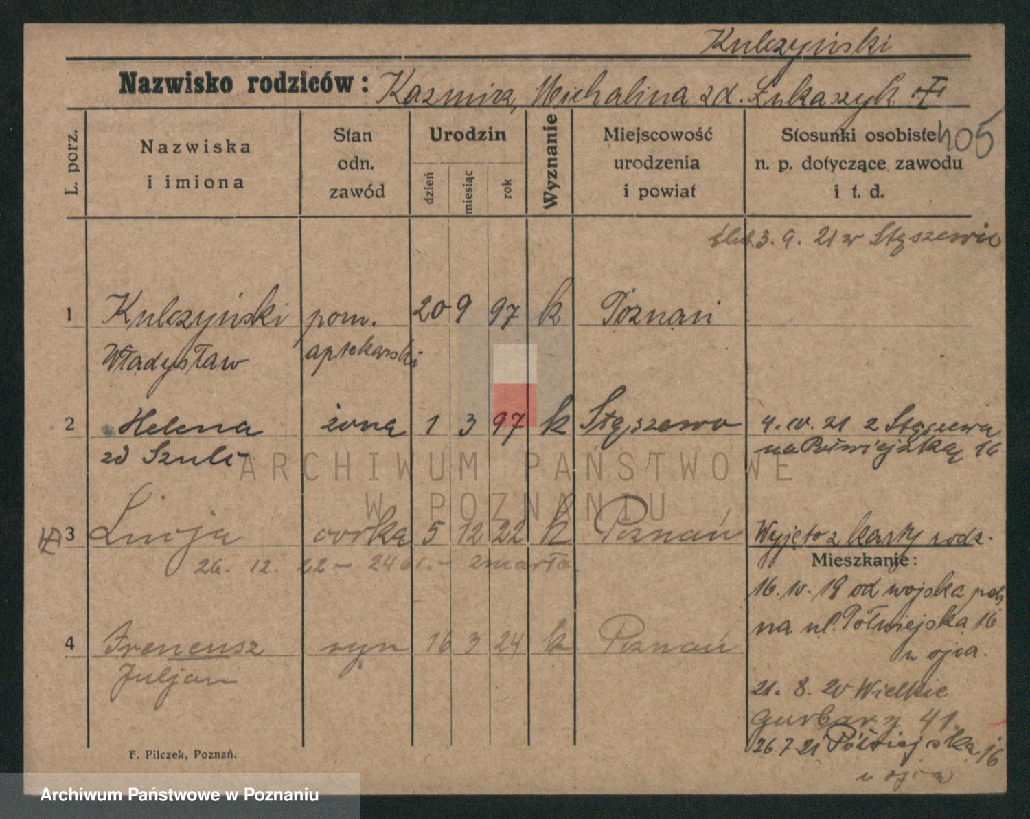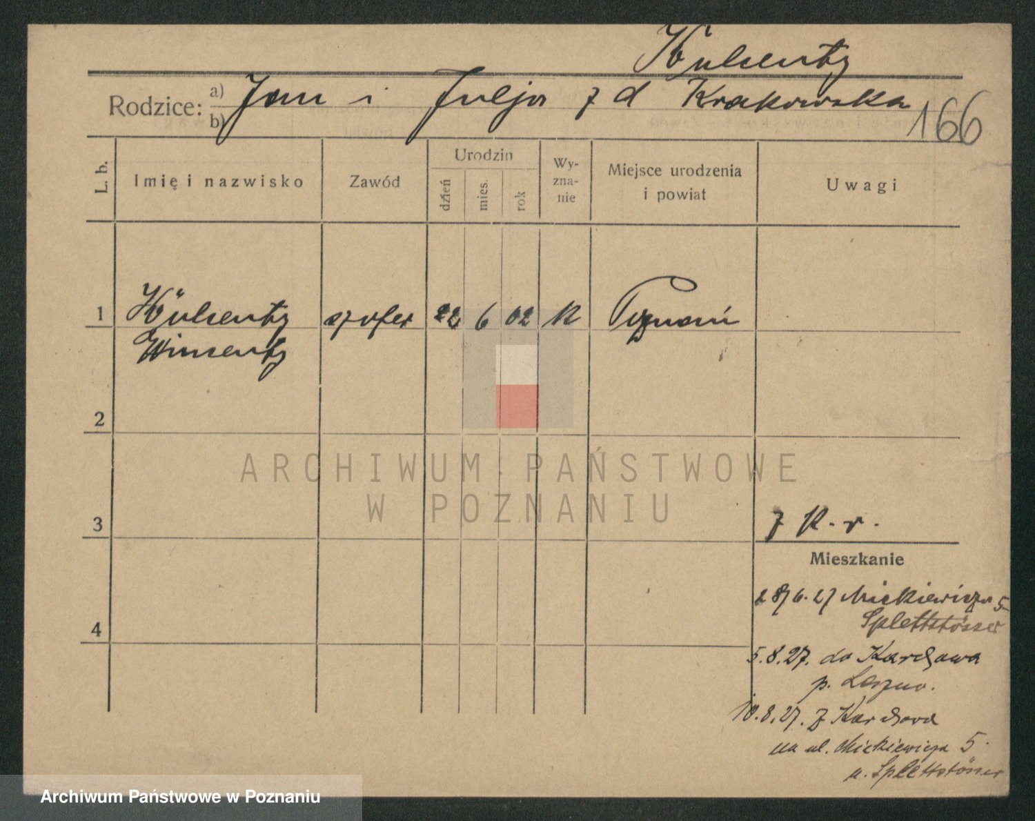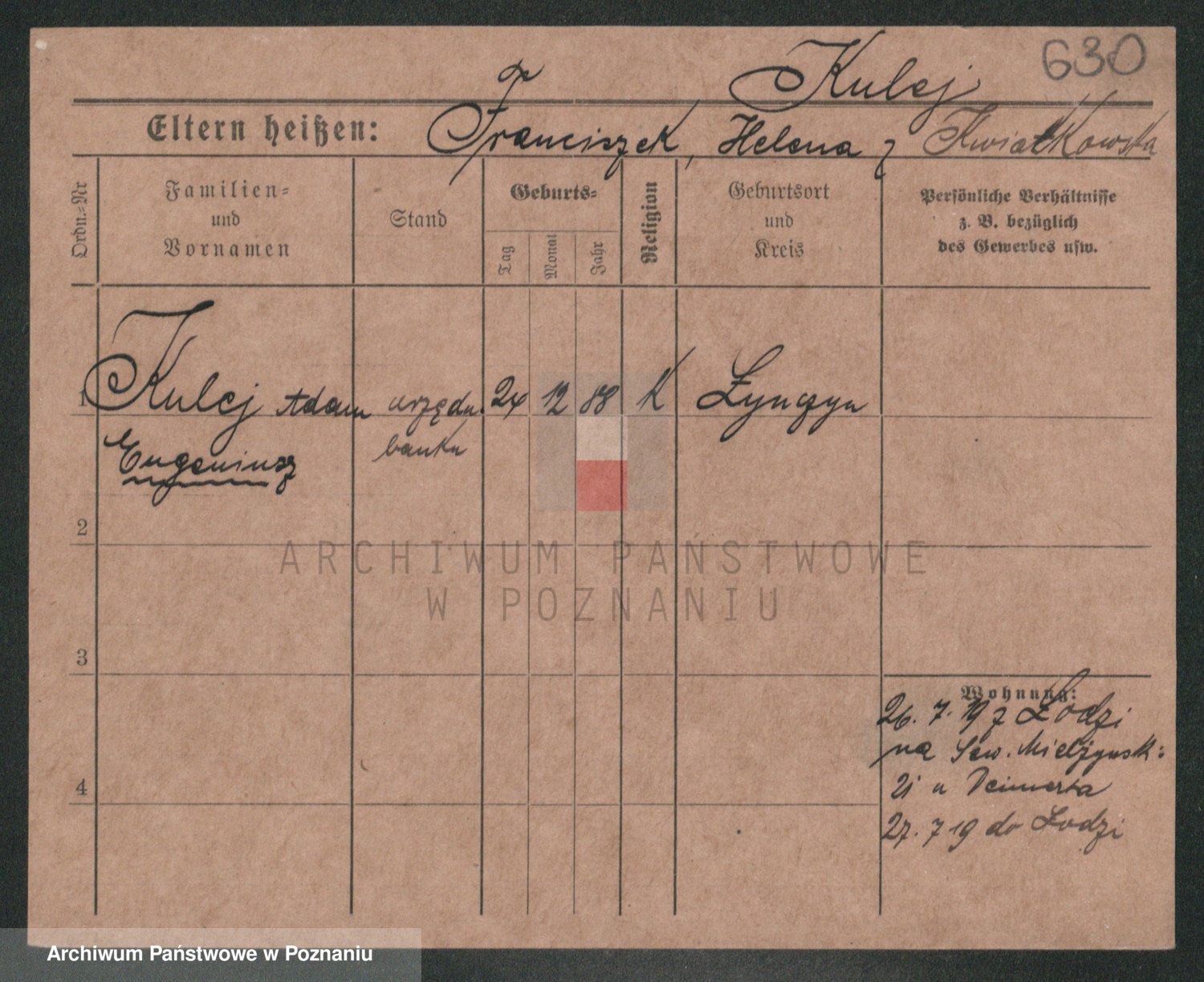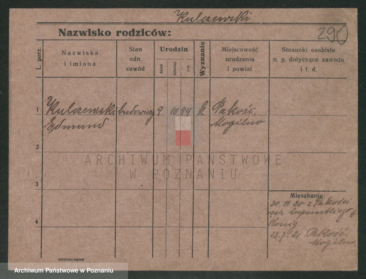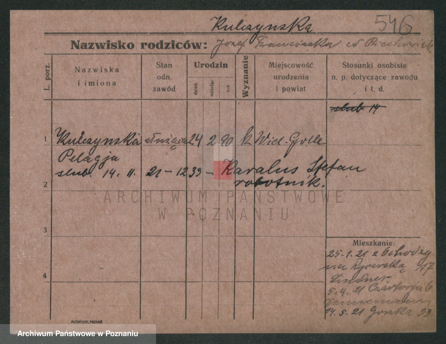 Podgląd karty osobowej dostępny jest po kliknięciu na nazwisko lub ikonkę karty. Można dokonywać powiększenia (ikony na górze) lub przechodzić między kolejnymi skanami (strzałki po bokach).