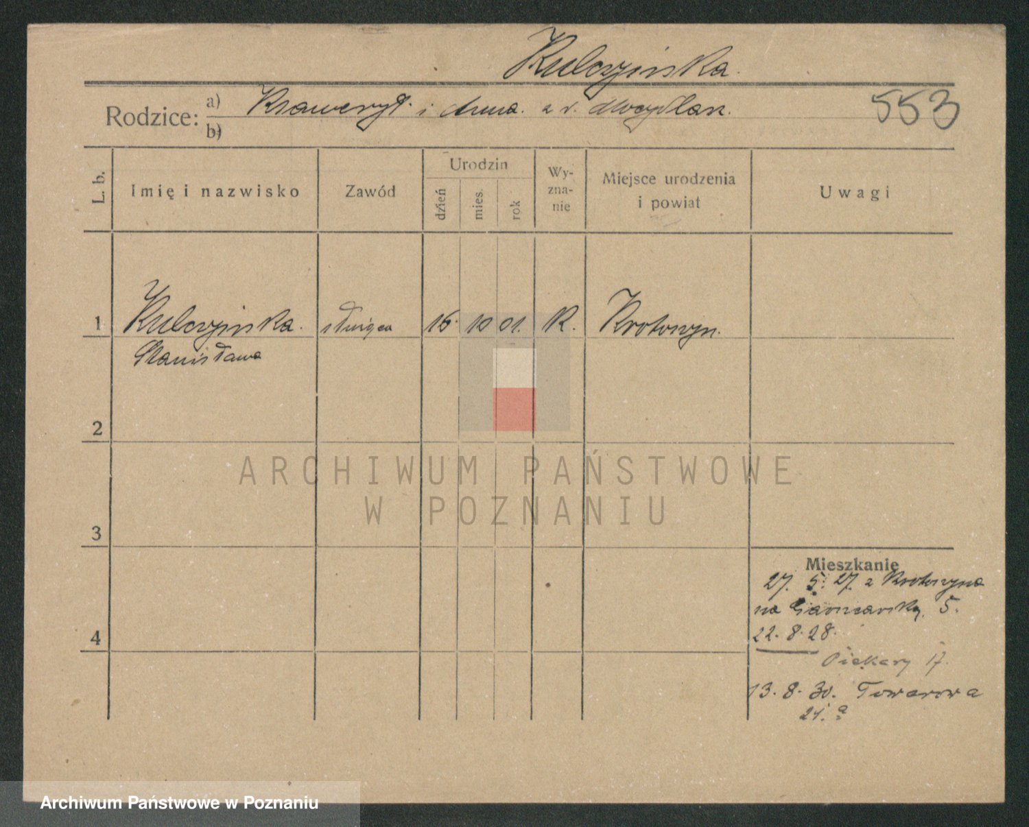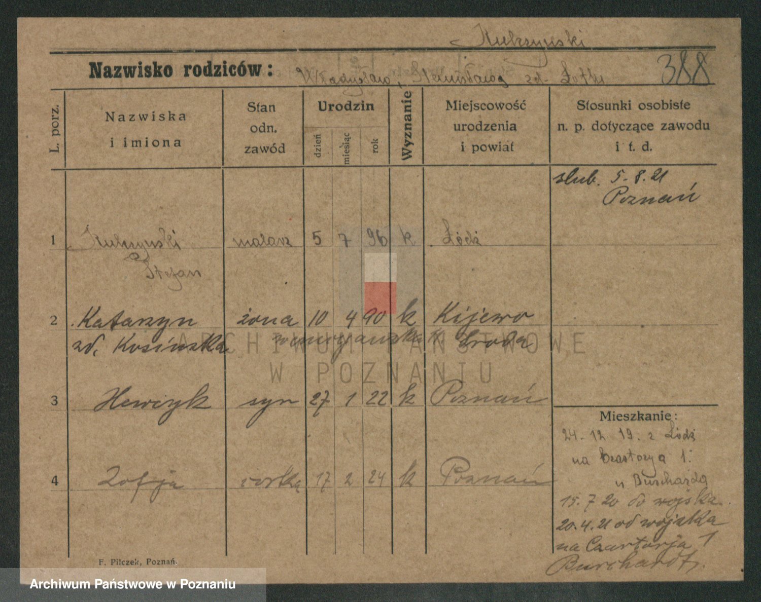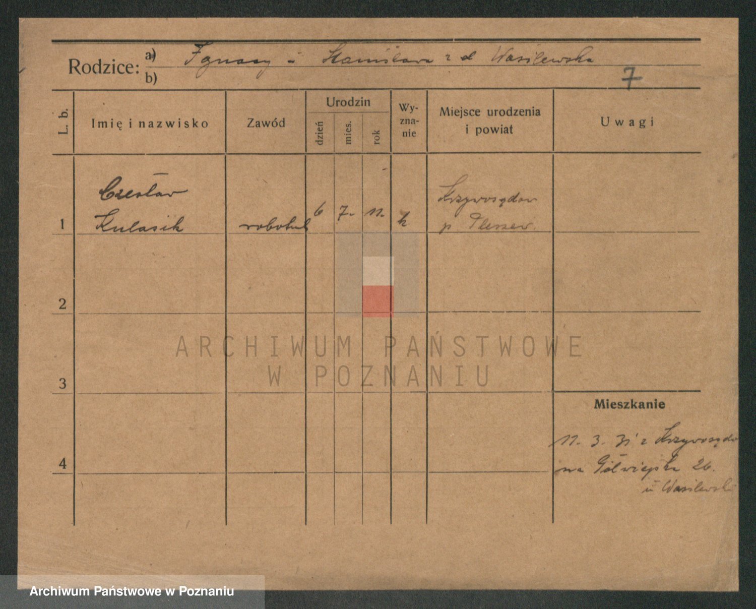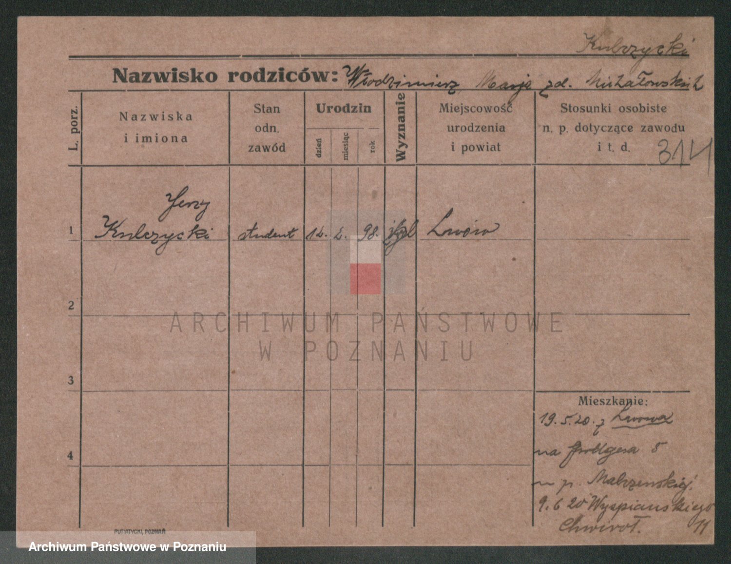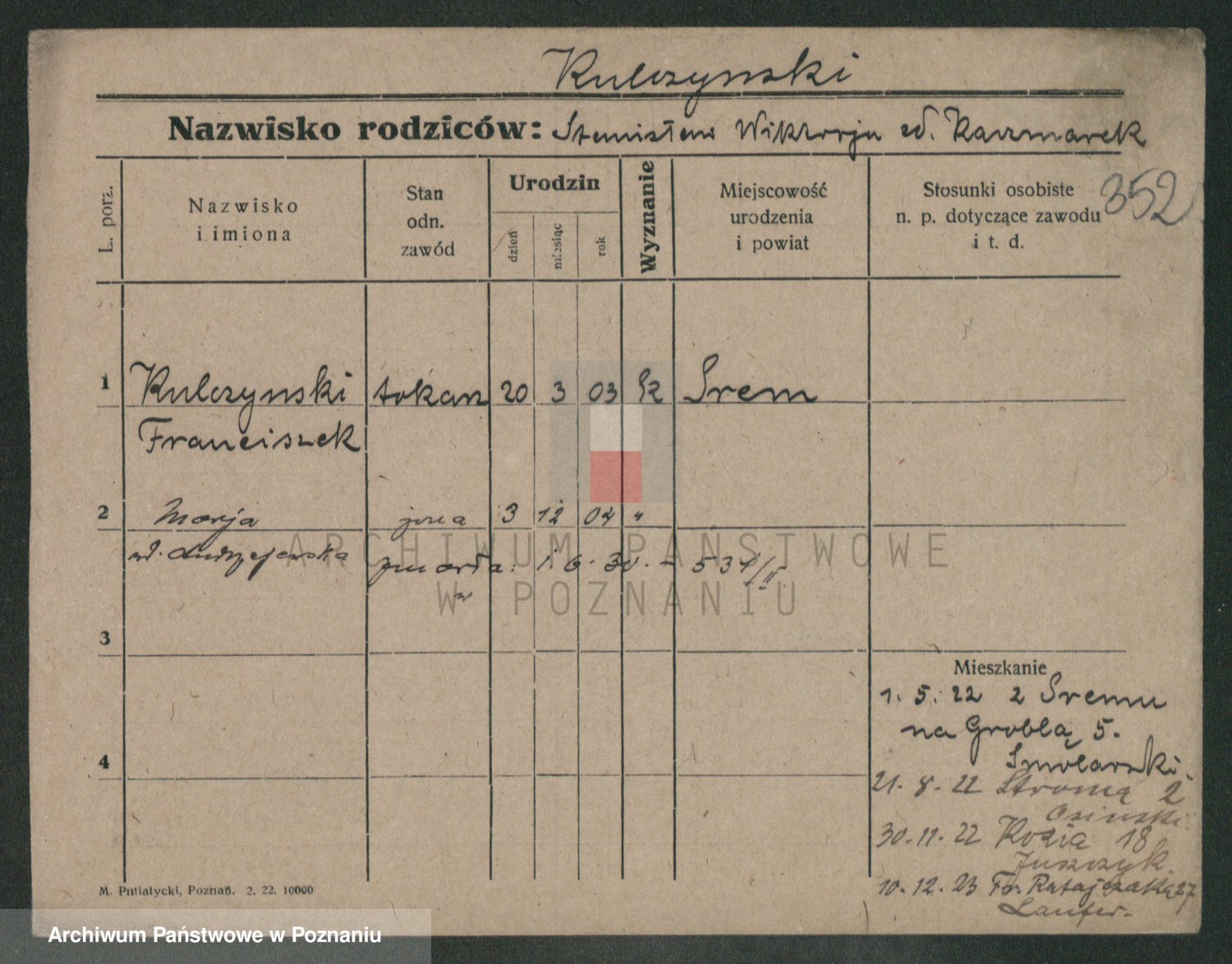 Podgląd karty osobowej dostępny jest po kliknięciu na nazwisko lub ikonkę karty. Można dokonywać powiększenia (ikony na górze) lub przechodzić między kolejnymi skanami (strzałki po bokach).
