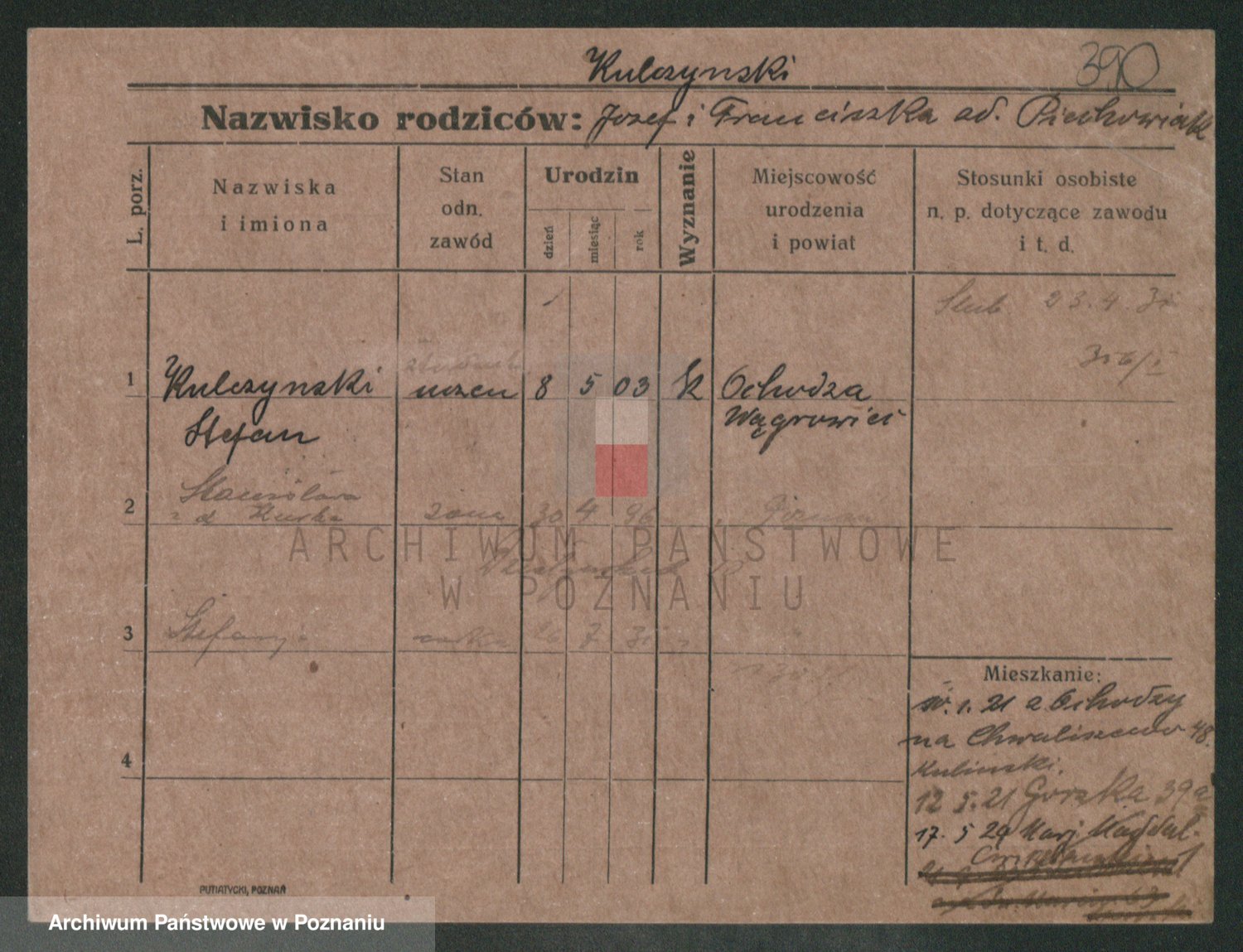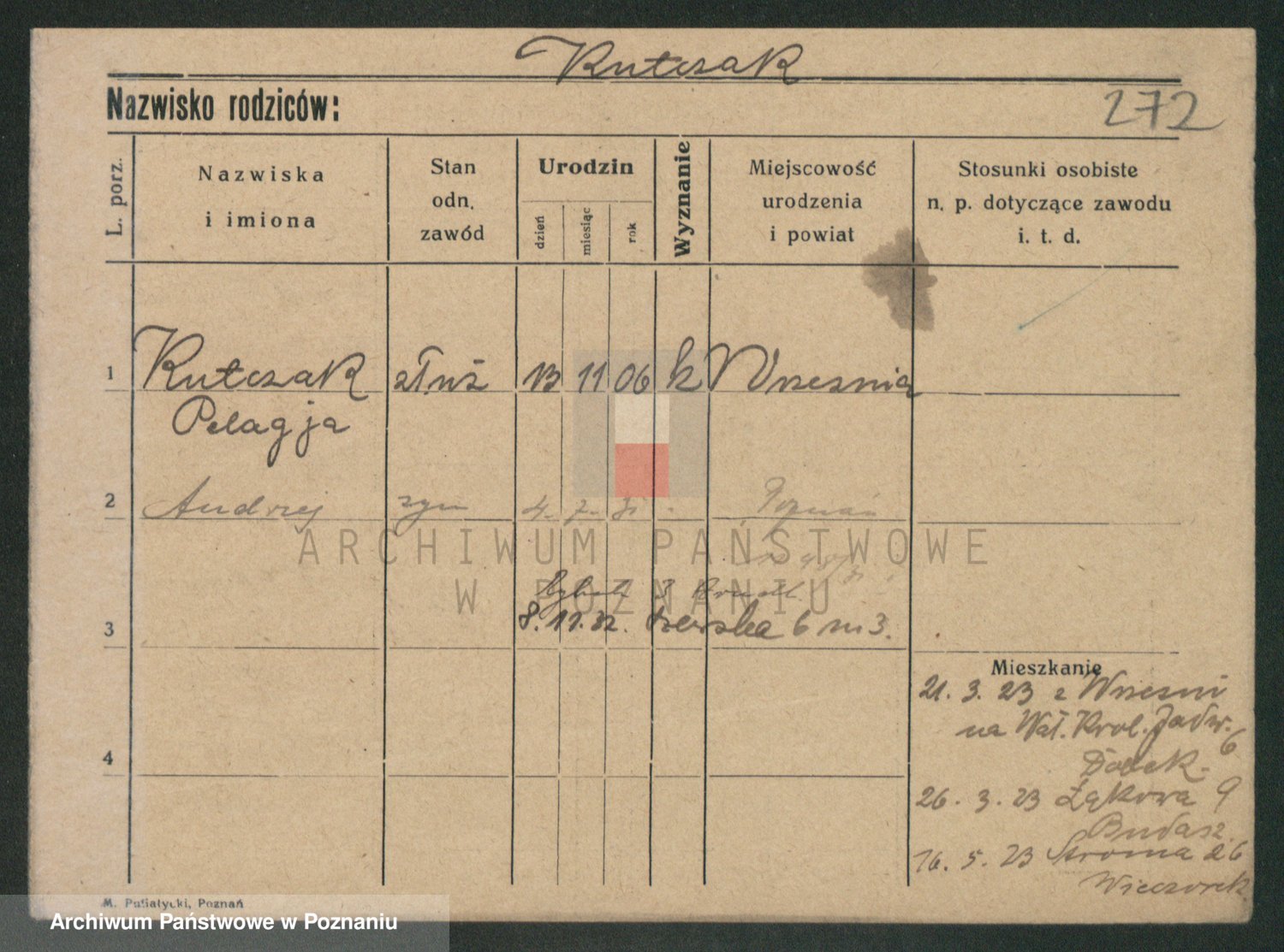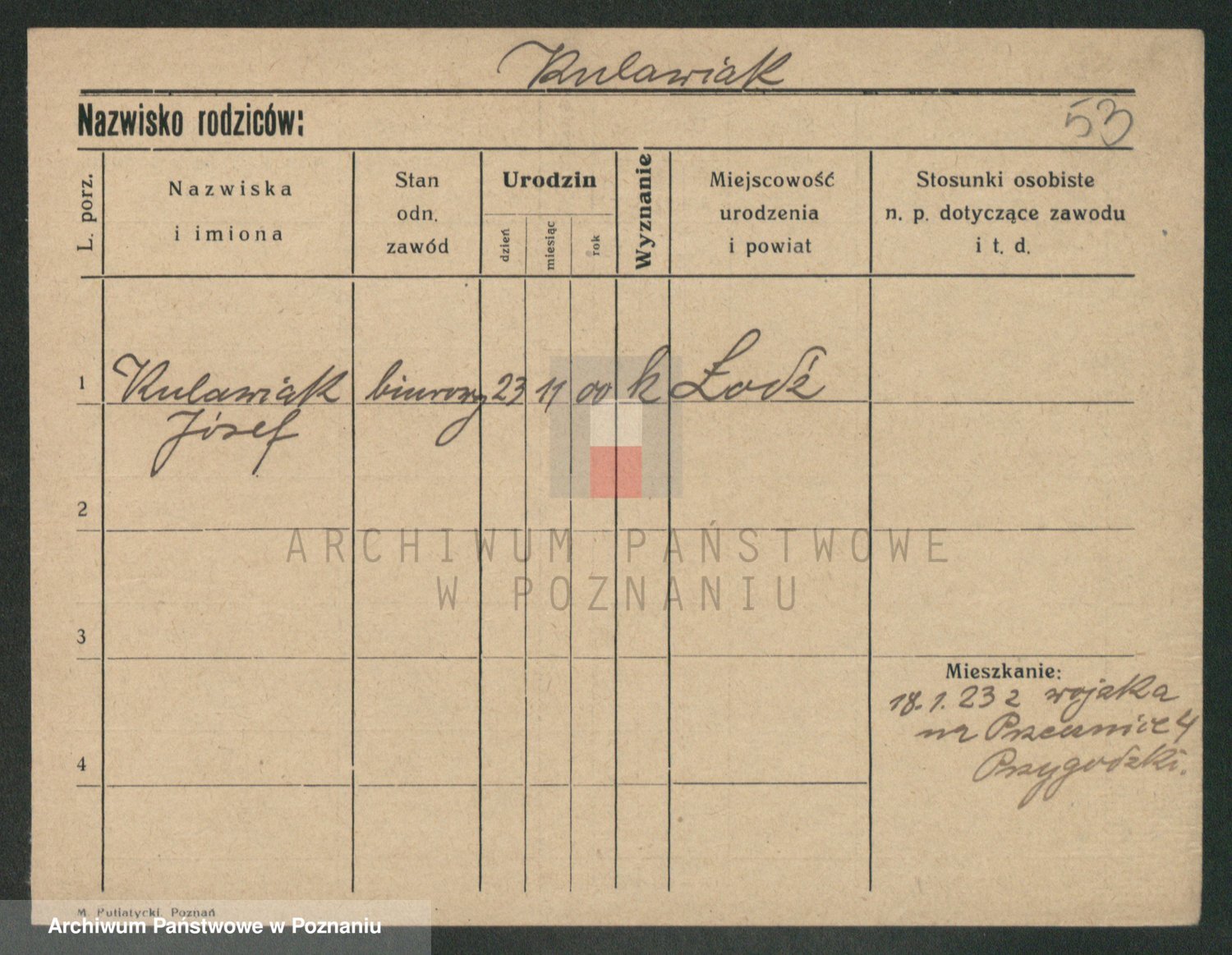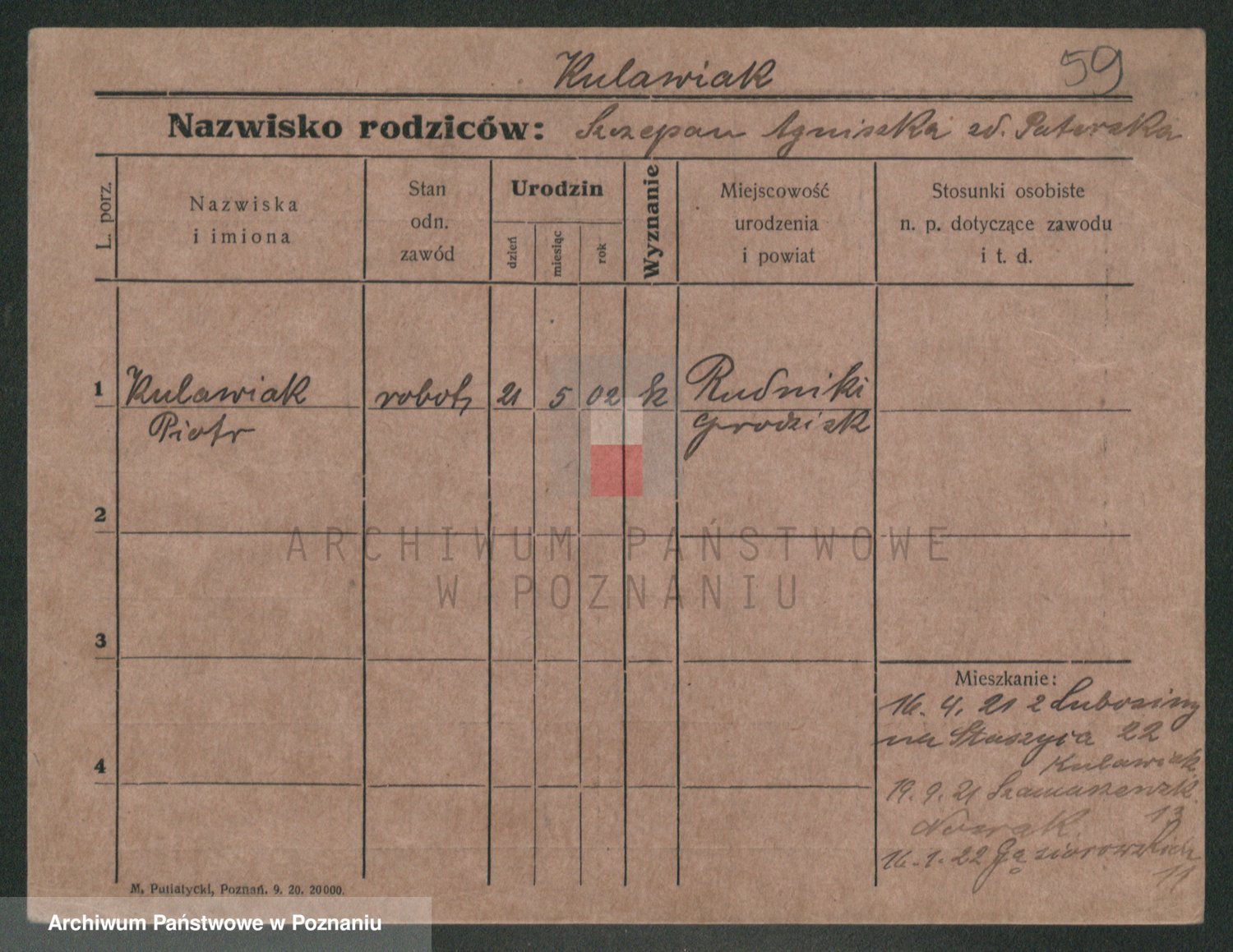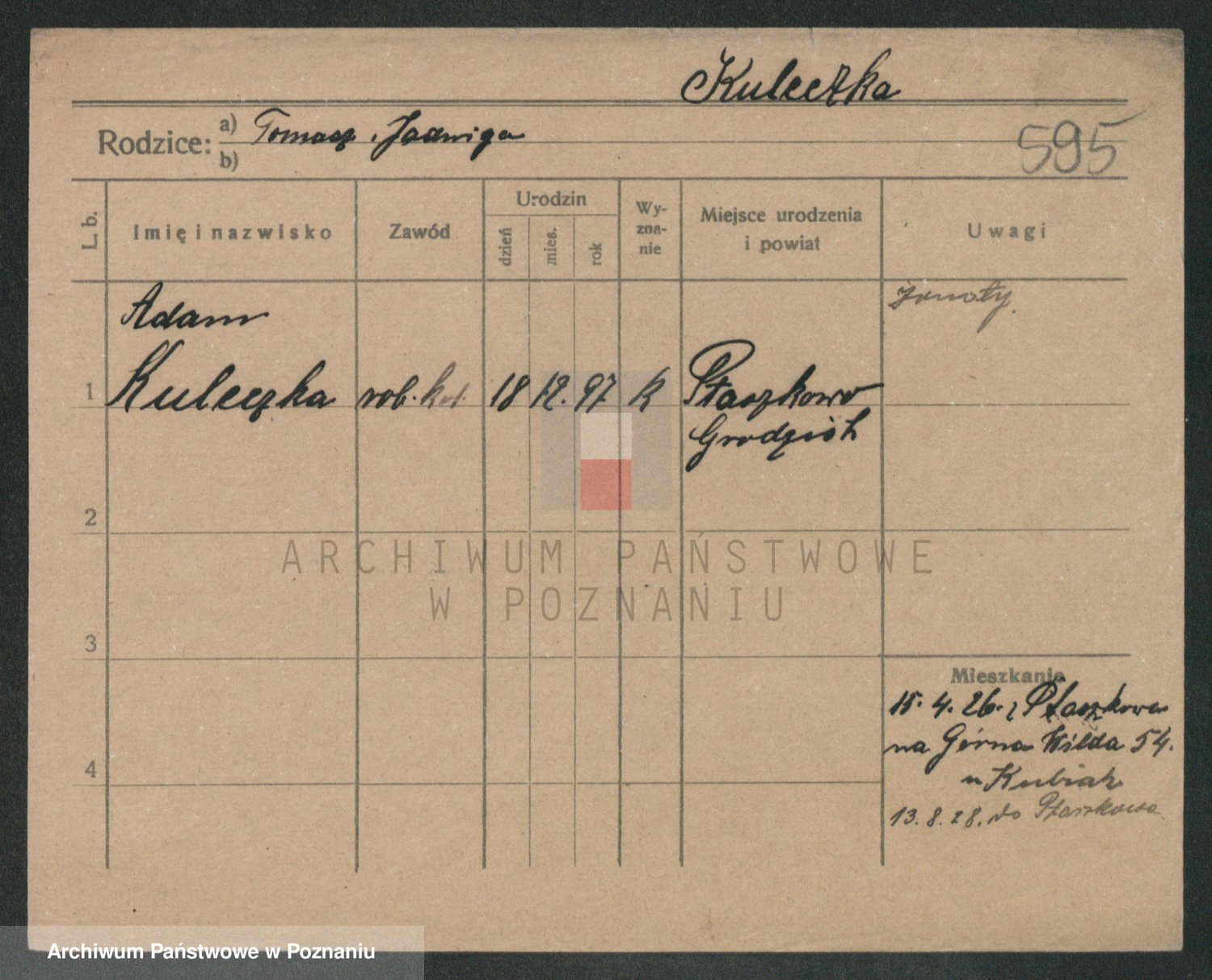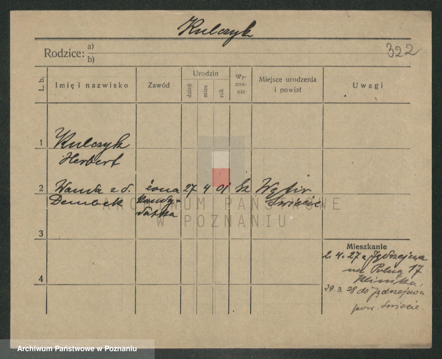 Podgląd karty osobowej dostępny jest po kliknięciu na nazwisko lub ikonkę karty. Można dokonywać powiększenia (ikony na górze) lub przechodzić między kolejnymi skanami (strzałki po bokach).