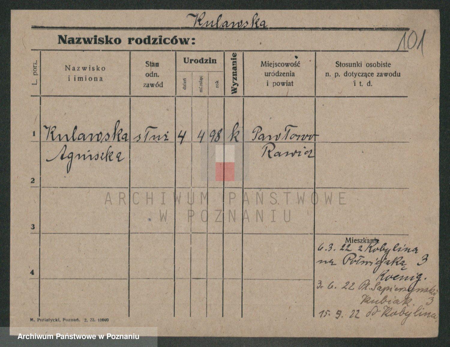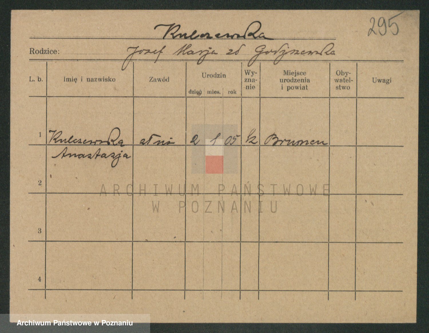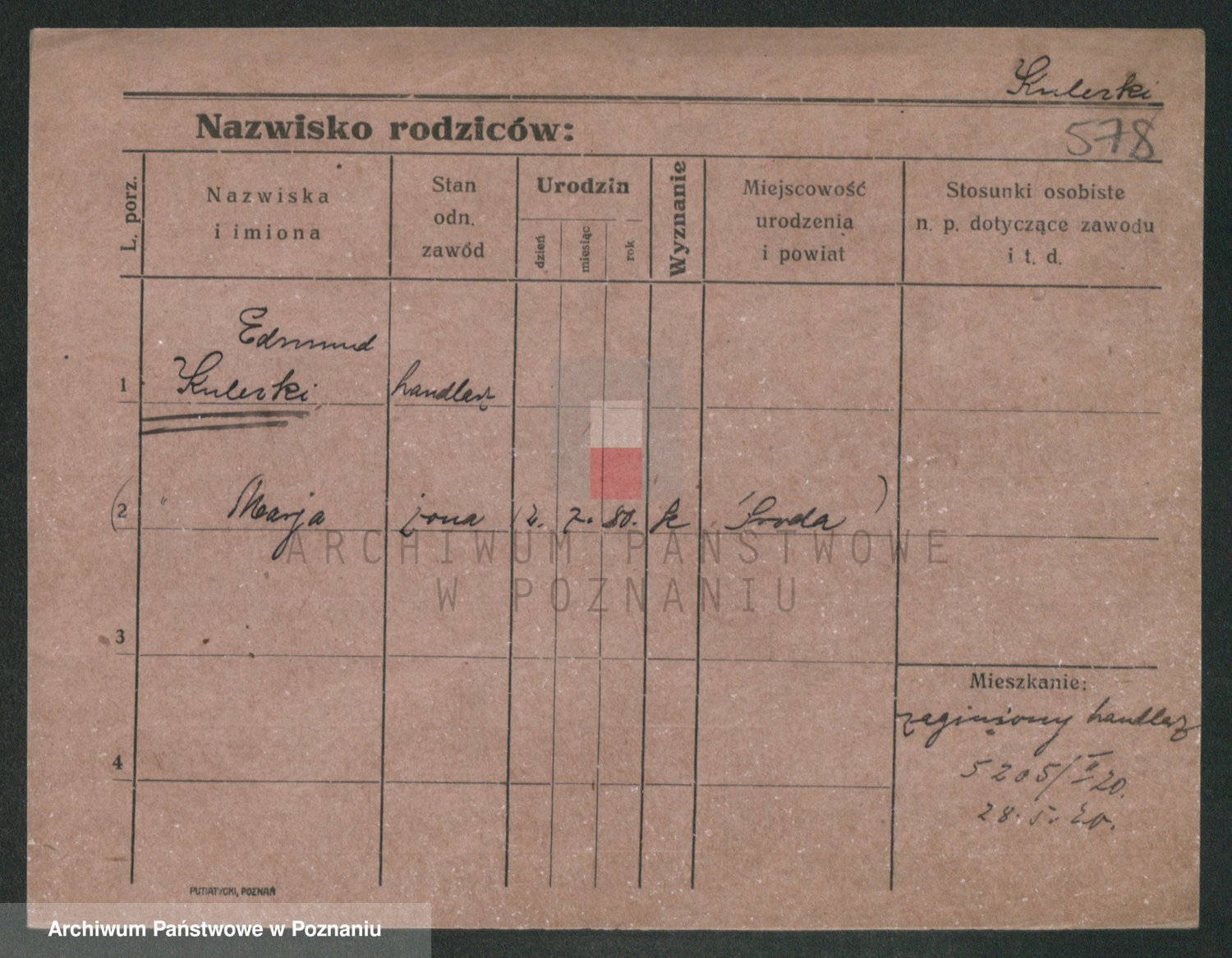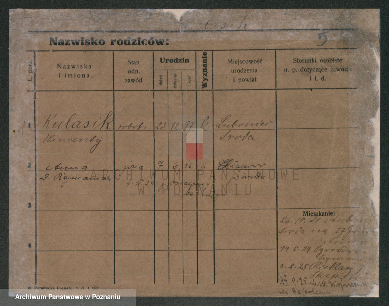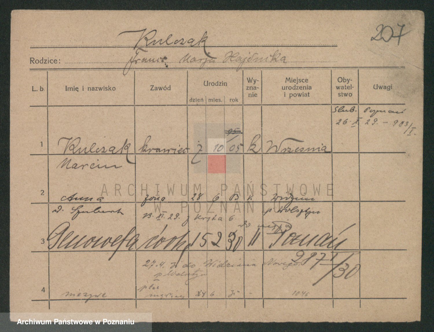 Podgląd karty osobowej dostępny jest po kliknięciu na nazwisko lub ikonkę karty. Można dokonywać powiększenia (ikony na górze) lub przechodzić między kolejnymi skanami (strzałki po bokach).