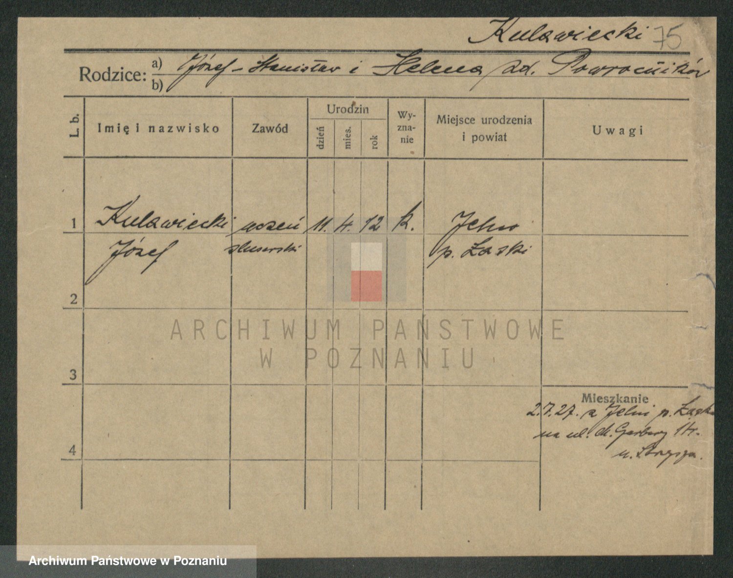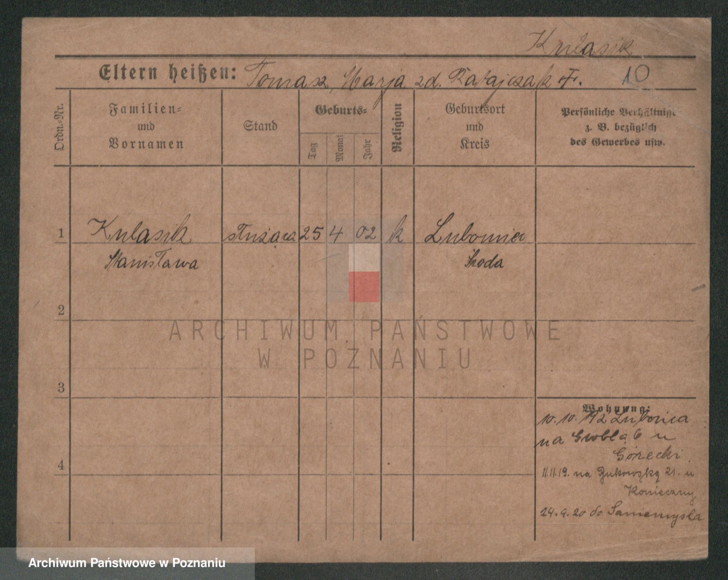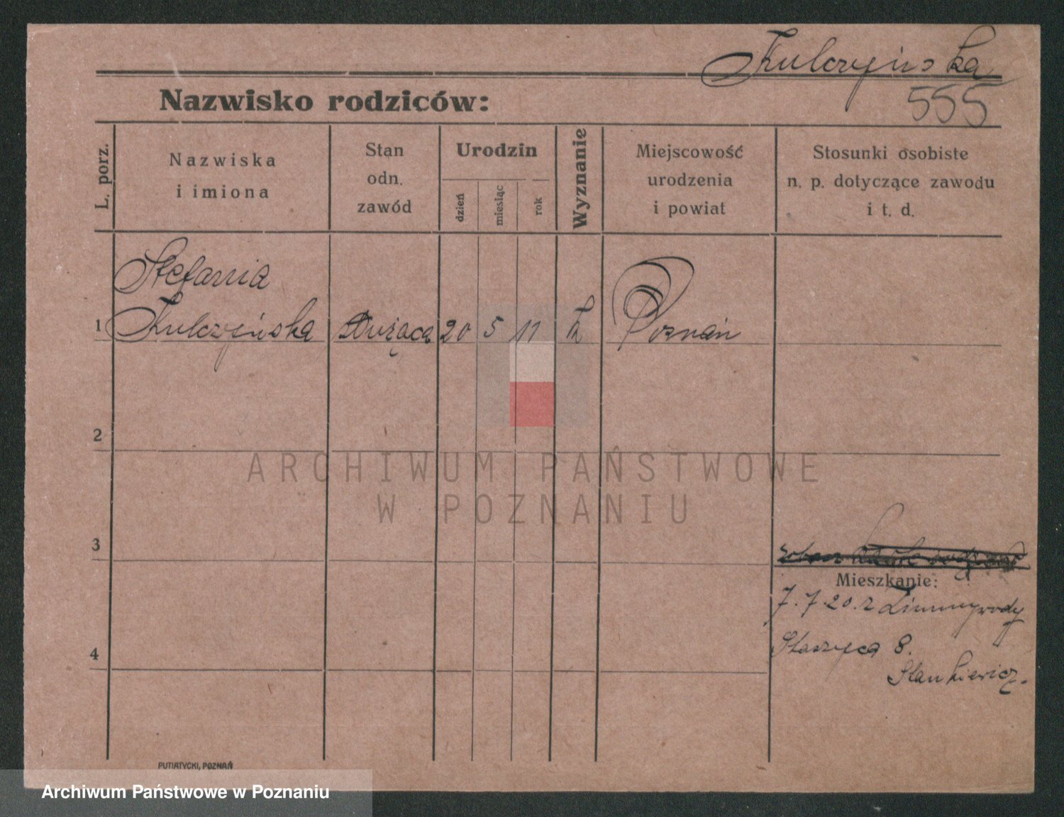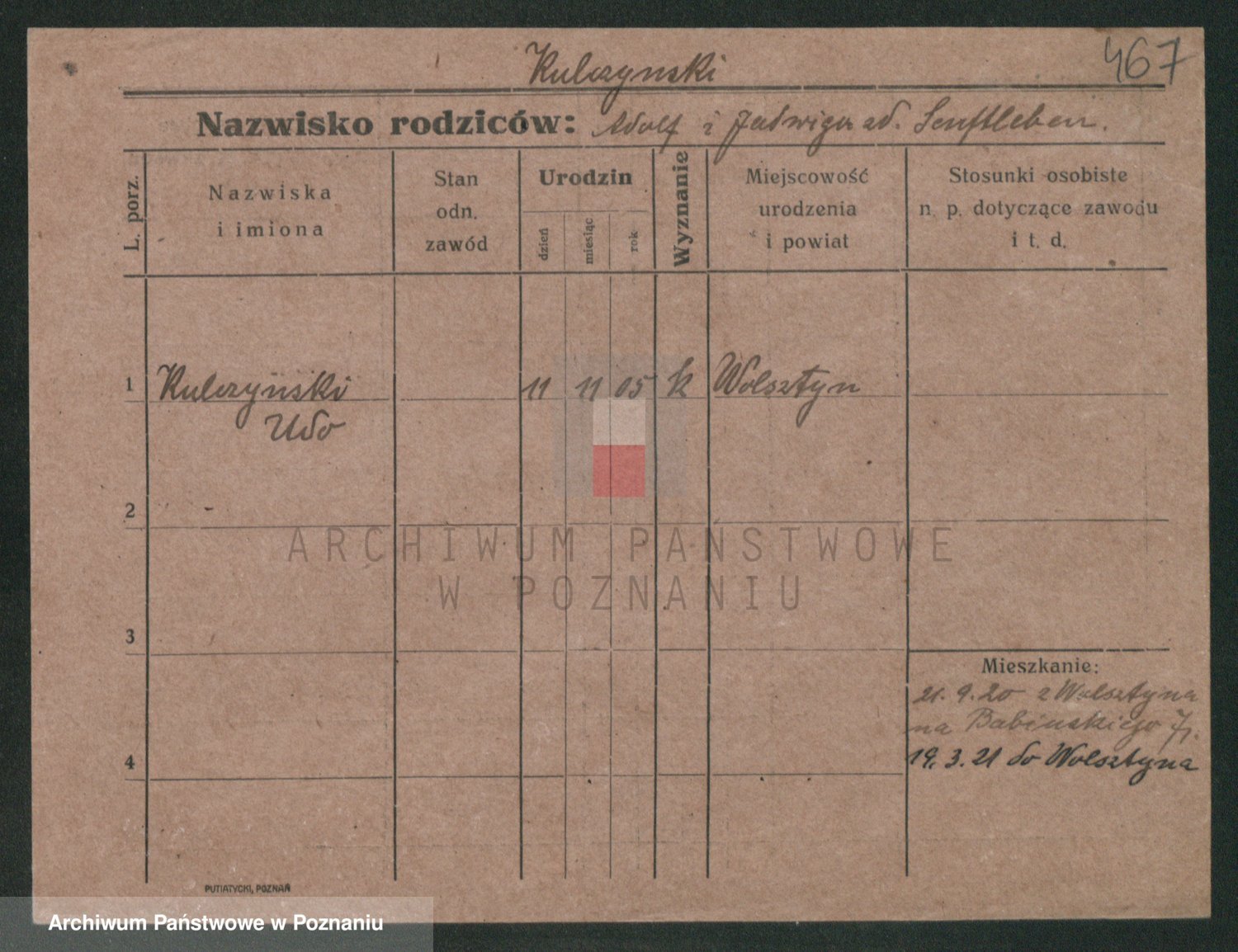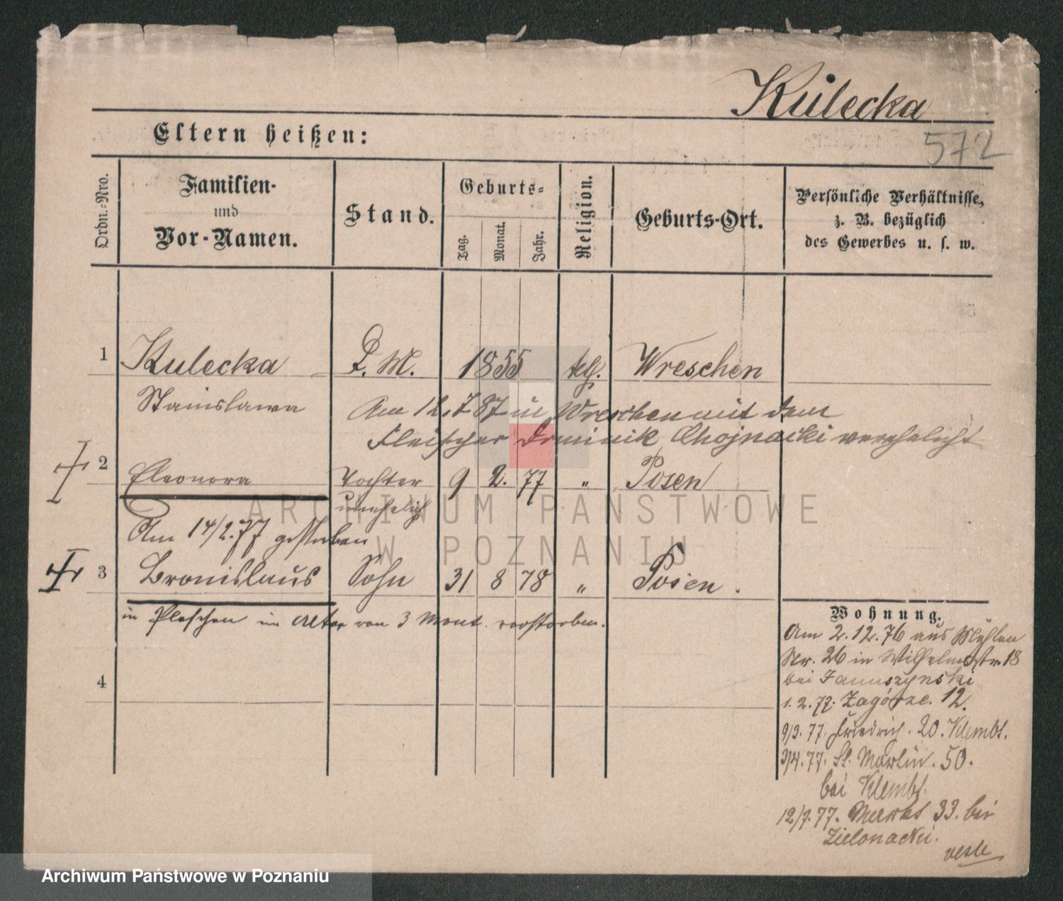 Podgląd karty osobowej dostępny jest po kliknięciu na nazwisko lub ikonkę karty. Można dokonywać powiększenia (ikony na górze) lub przechodzić między kolejnymi skanami (strzałki po bokach).