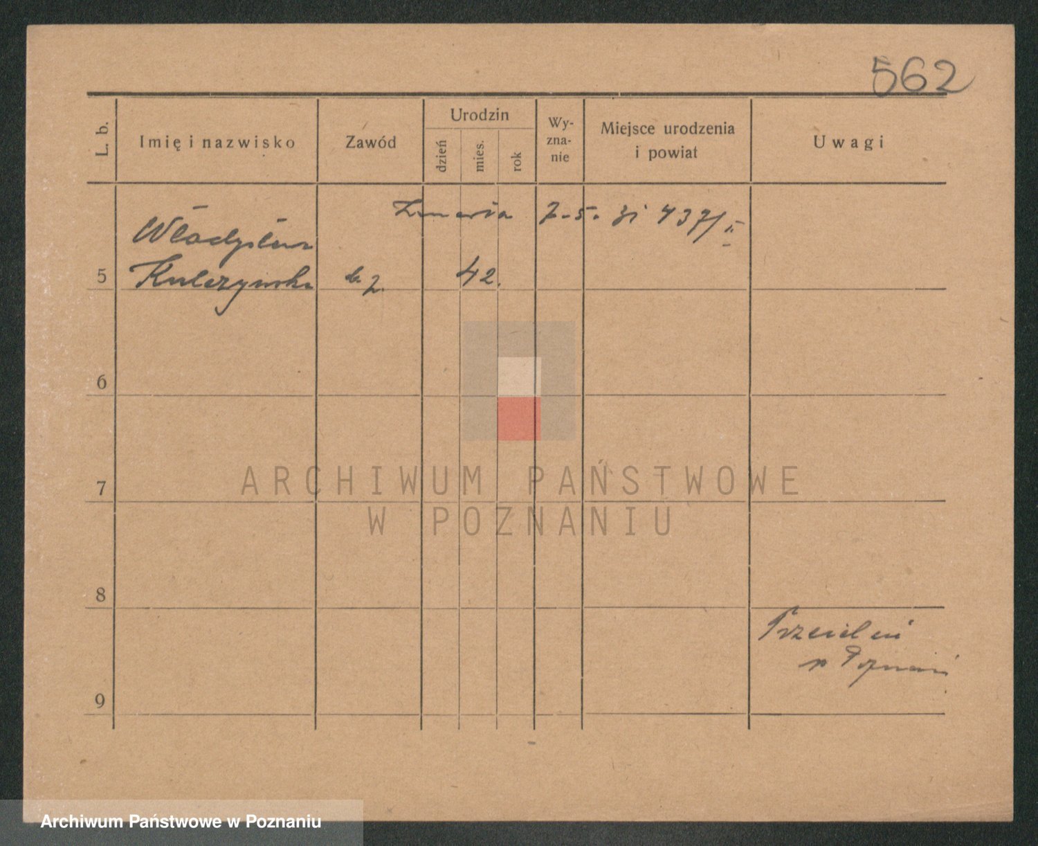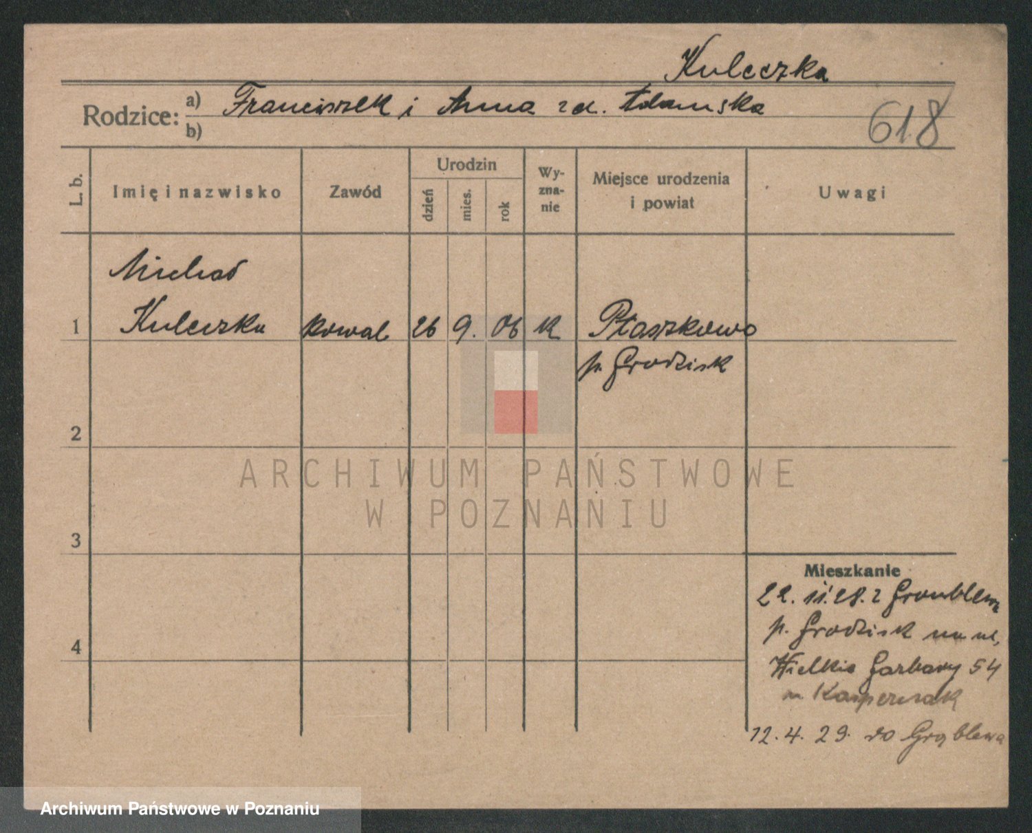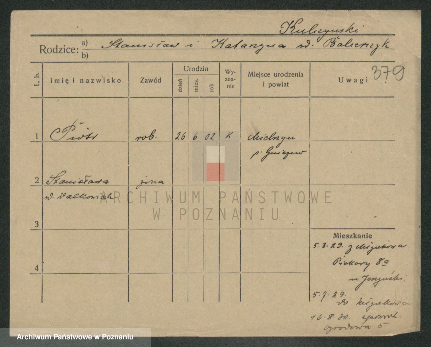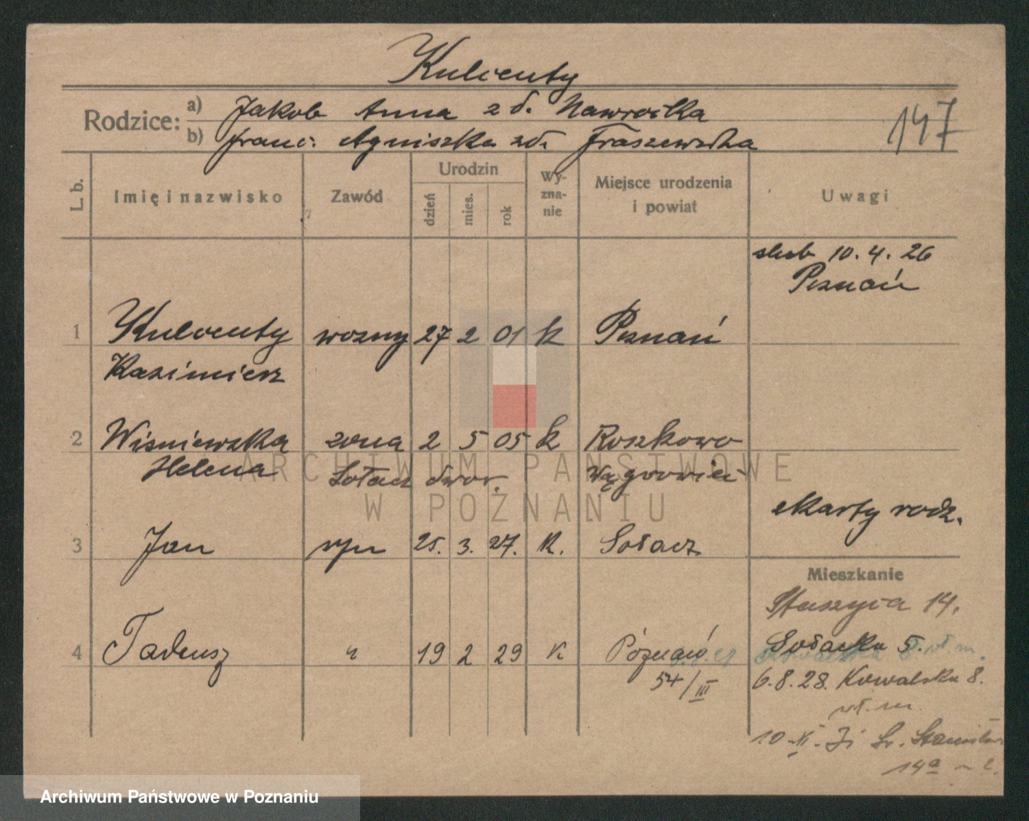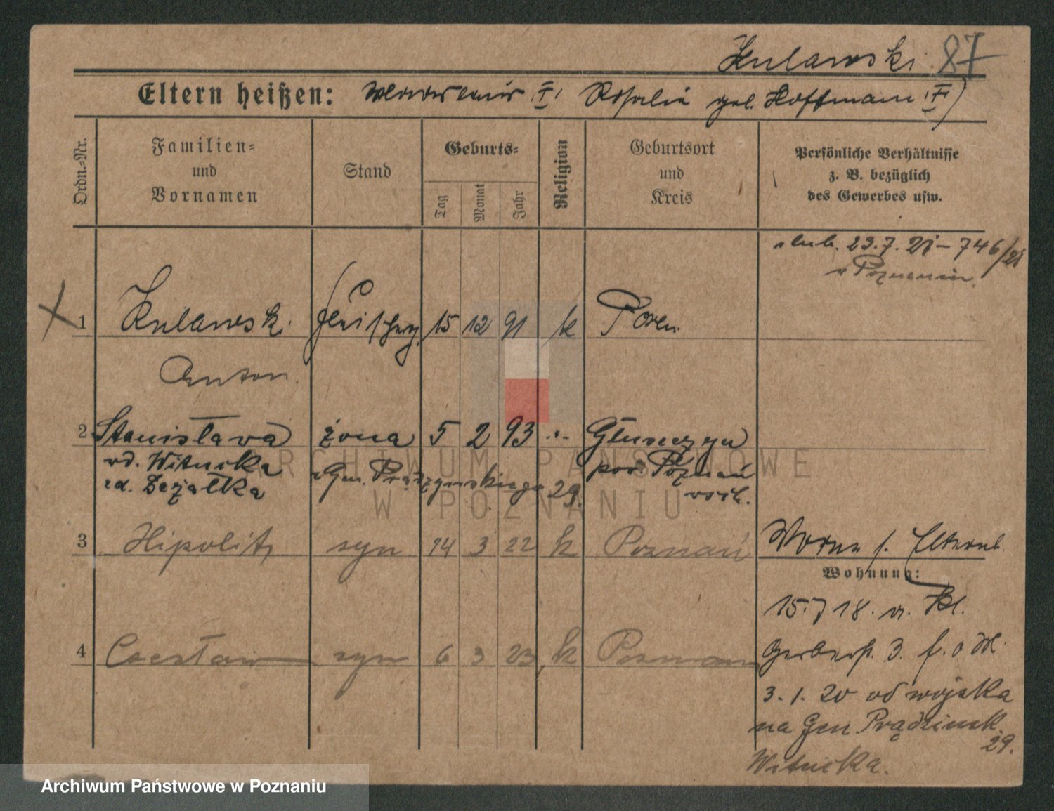 Podgląd karty osobowej dostępny jest po kliknięciu na nazwisko lub ikonkę karty. Można dokonywać powiększenia (ikony na górze) lub przechodzić między kolejnymi skanami (strzałki po bokach).