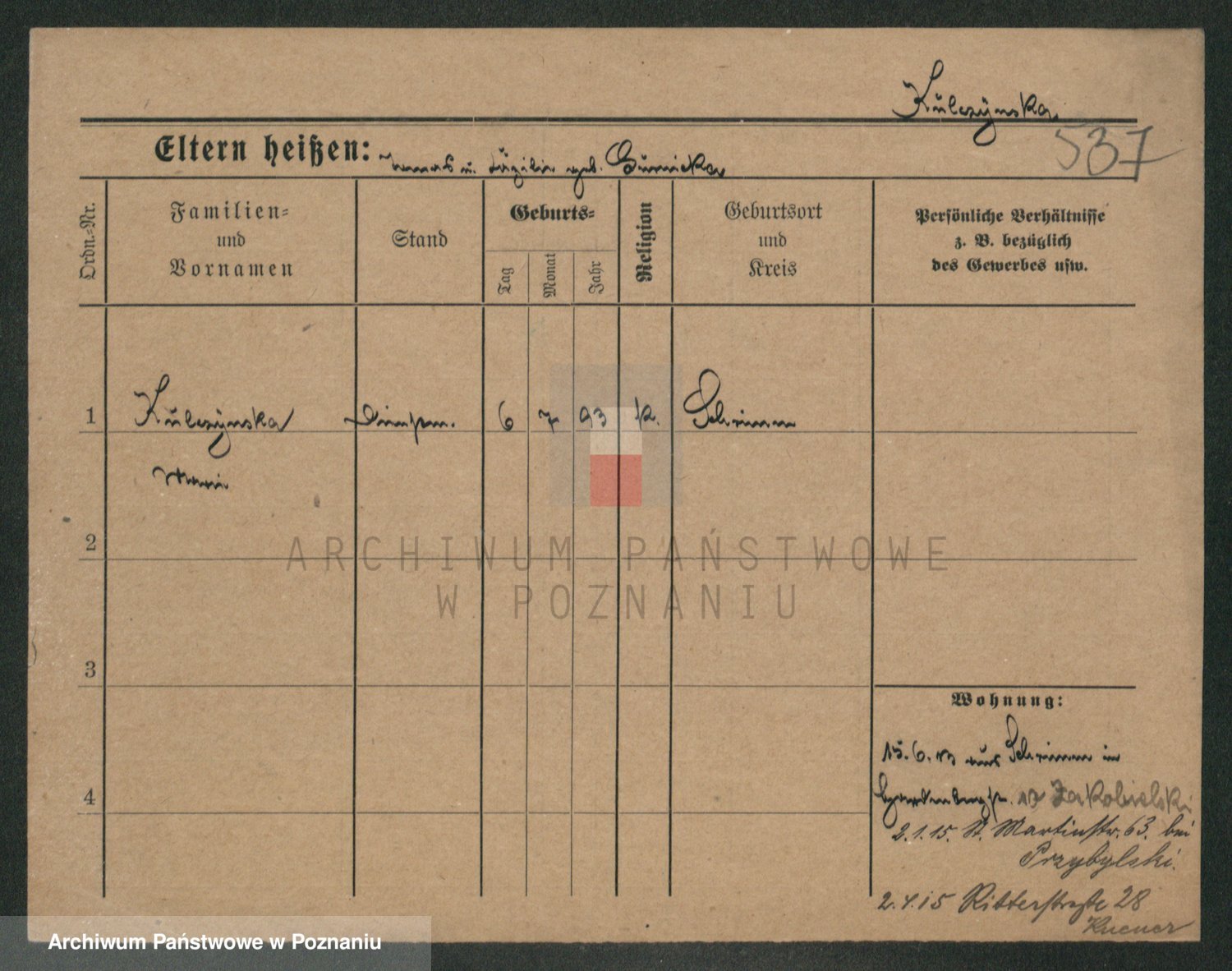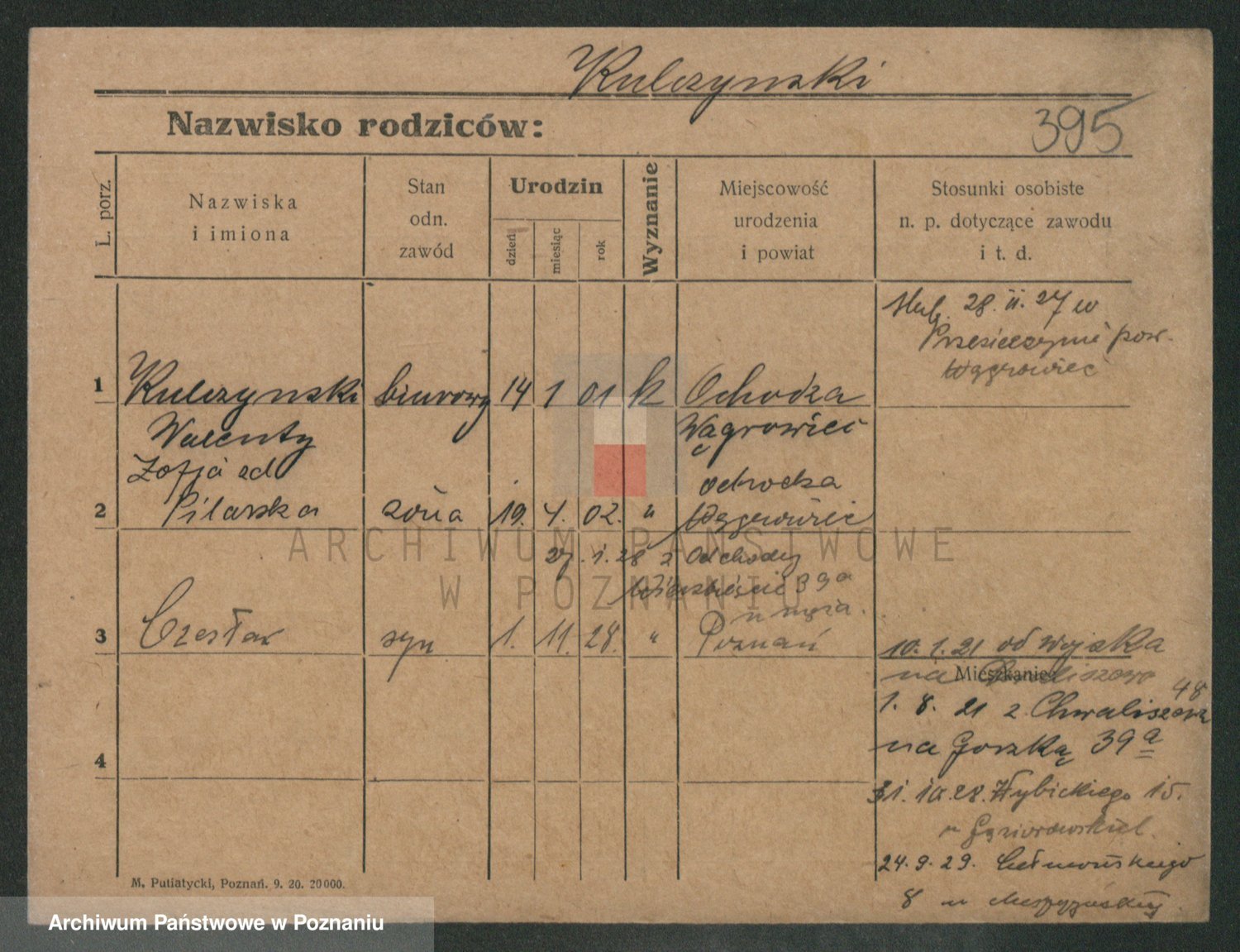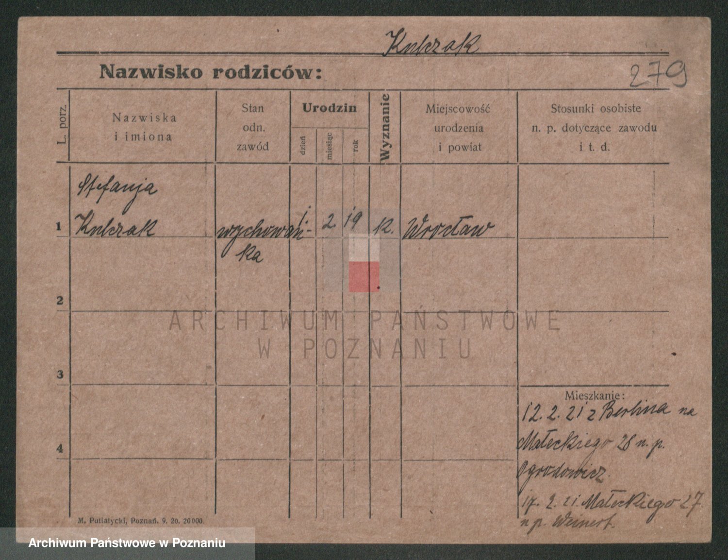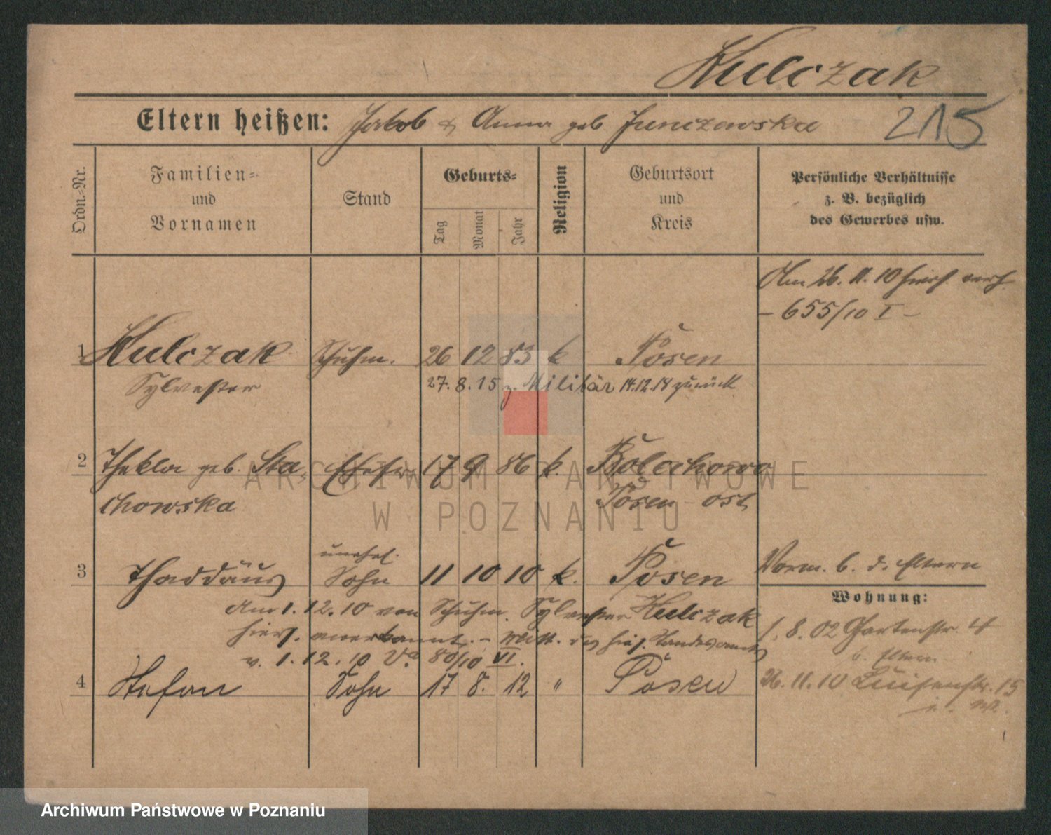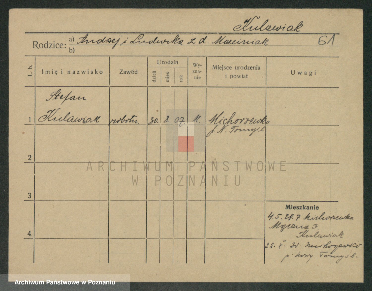 Podgląd karty osobowej dostępny jest po kliknięciu na nazwisko lub ikonkę karty. Można dokonywać powiększenia (ikony na górze) lub przechodzić między kolejnymi skanami (strzałki po bokach).