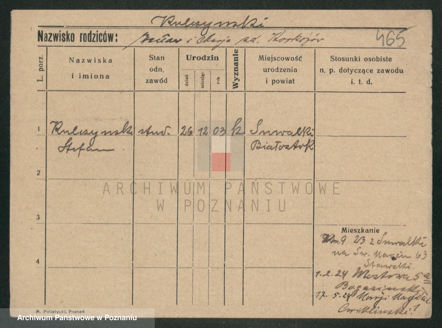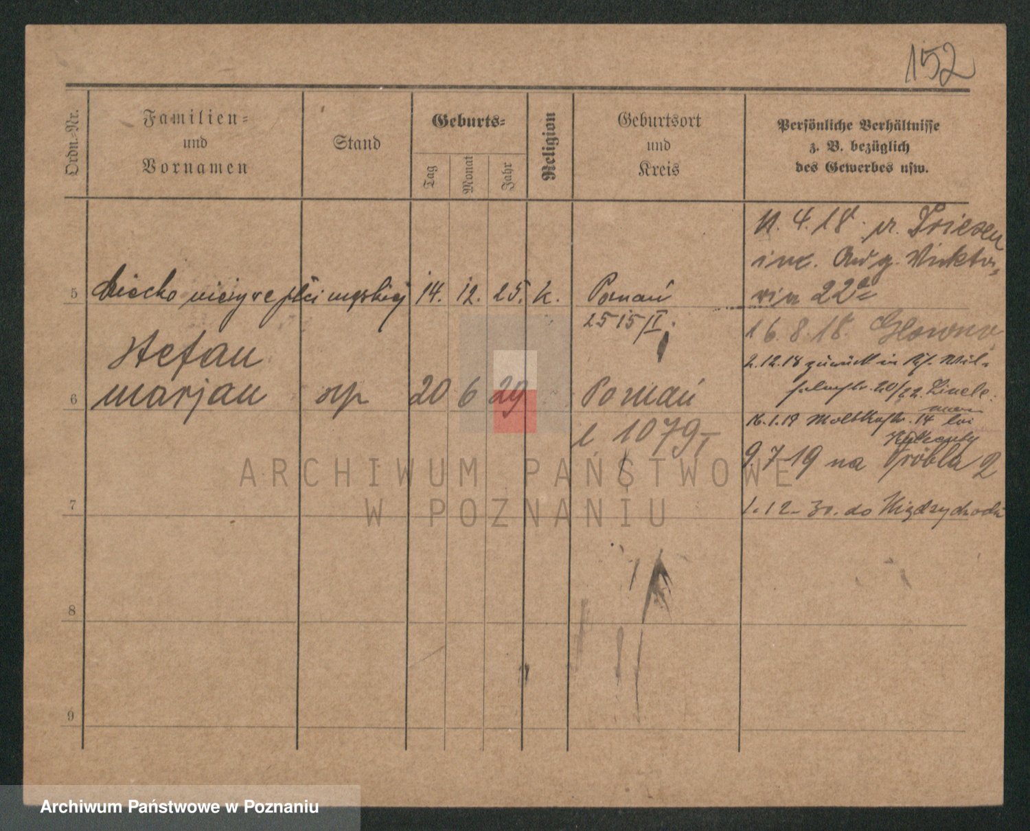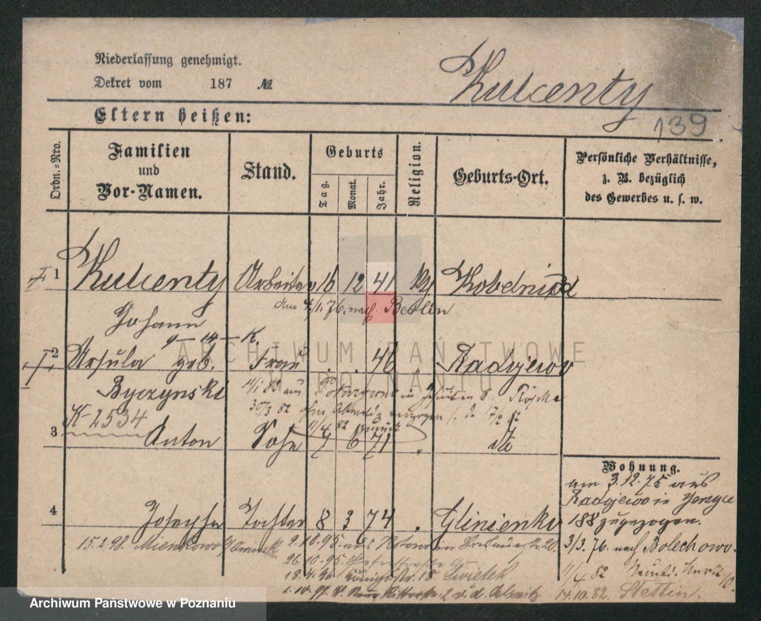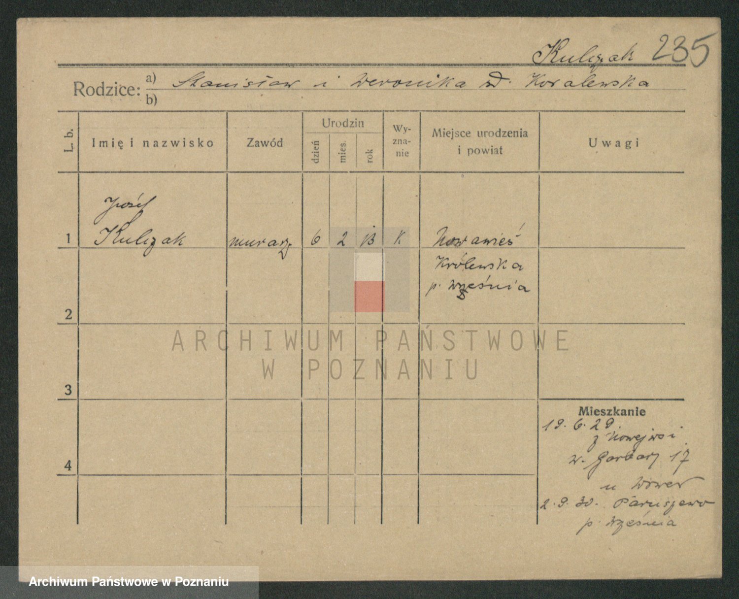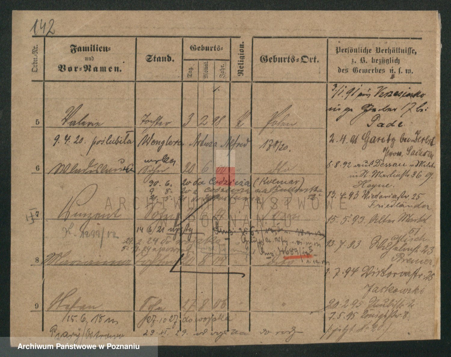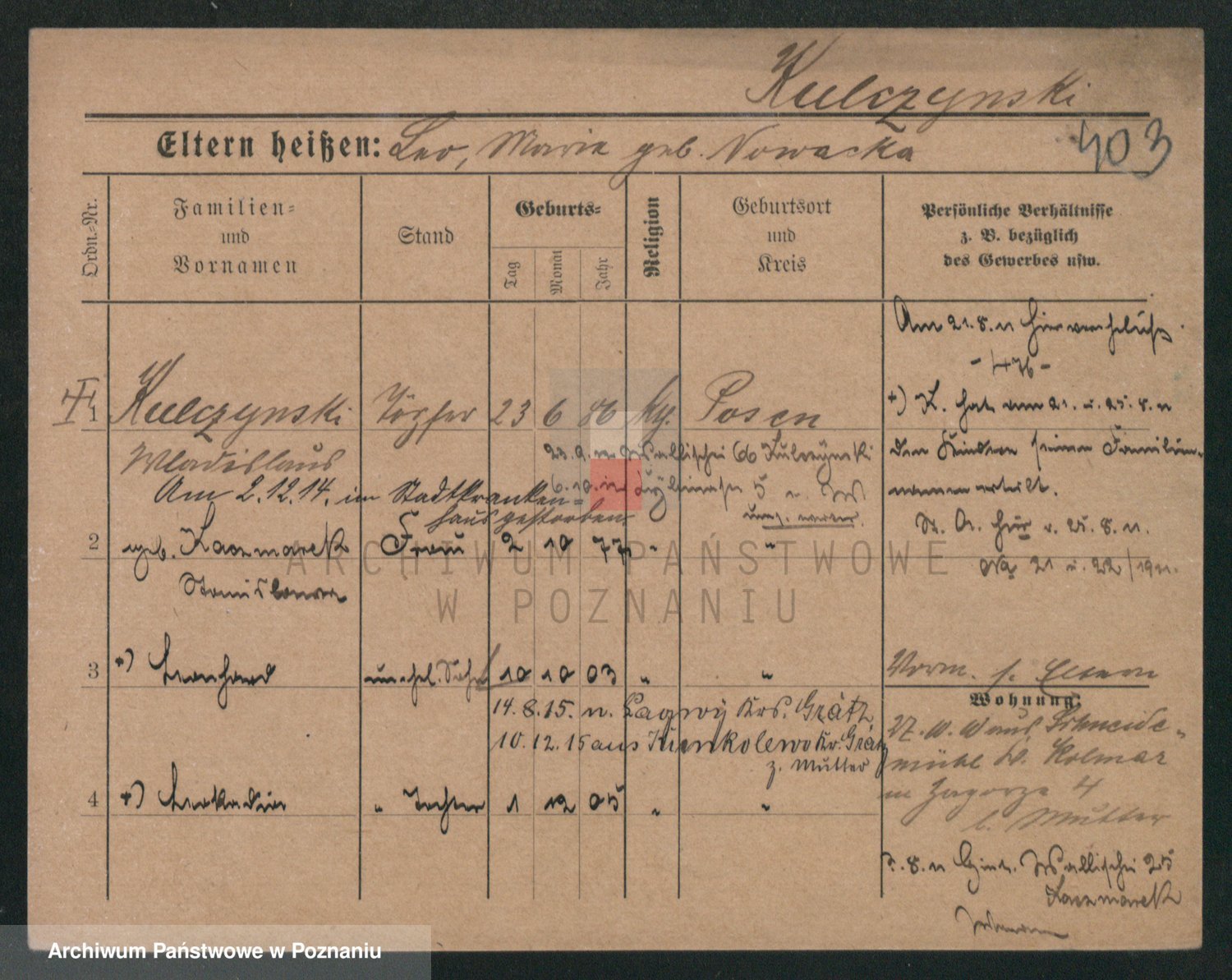 Podgląd karty osobowej dostępny jest po kliknięciu na nazwisko lub ikonkę karty. Można dokonywać powiększenia (ikony na górze) lub przechodzić między kolejnymi skanami (strzałki po bokach).