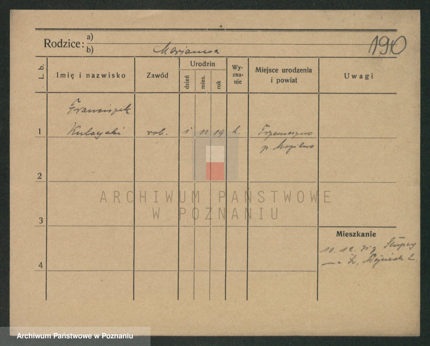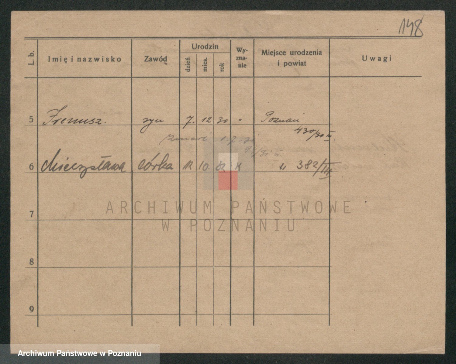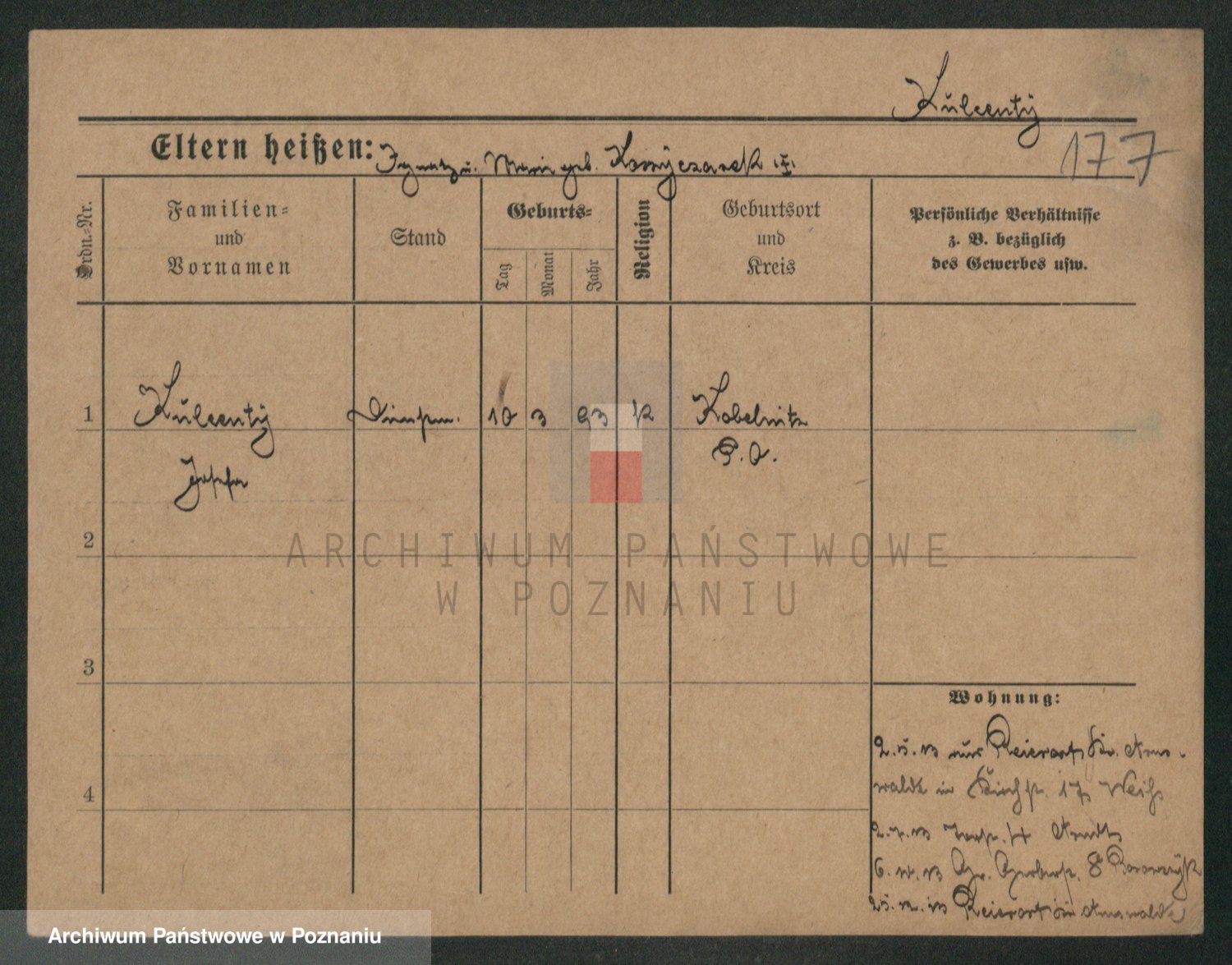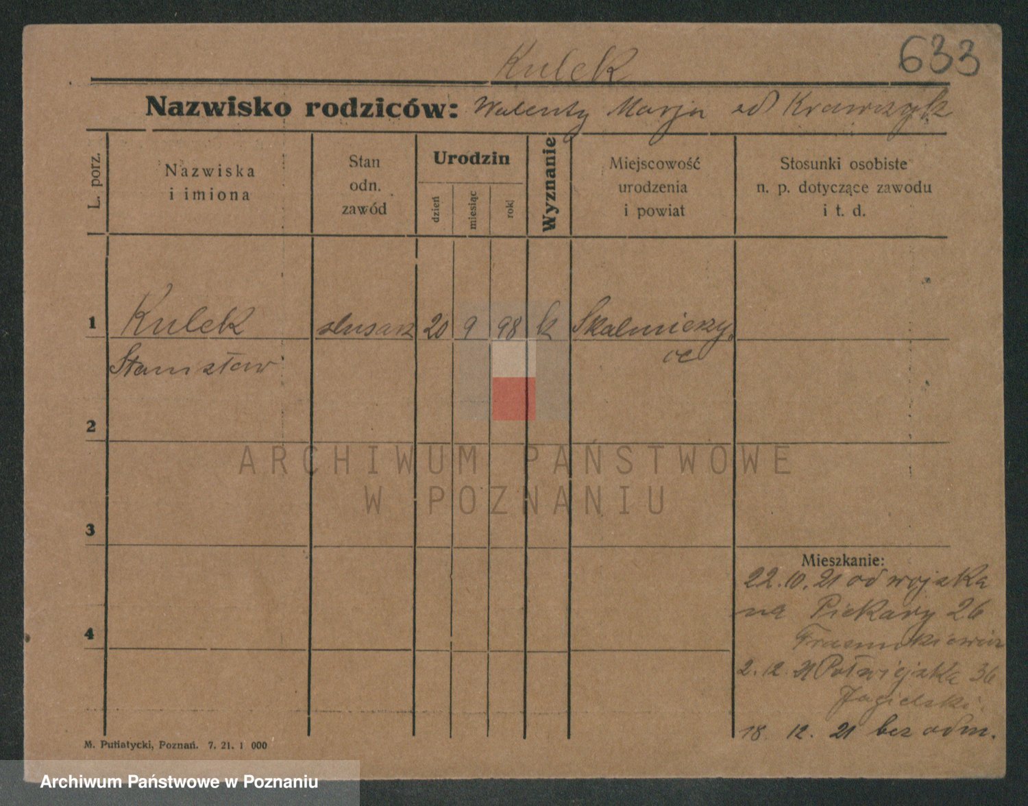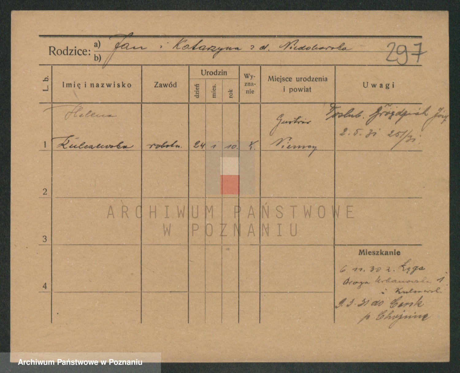 Podgląd karty osobowej dostępny jest po kliknięciu na nazwisko lub ikonkę karty. Można dokonywać powiększenia (ikony na górze) lub przechodzić między kolejnymi skanami (strzałki po bokach).