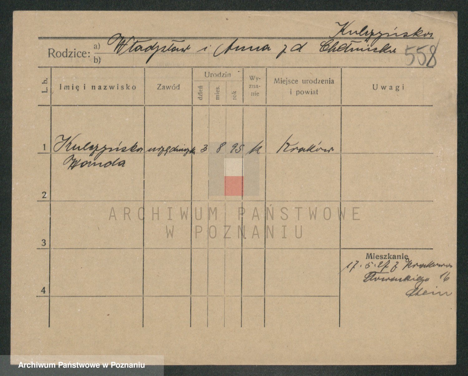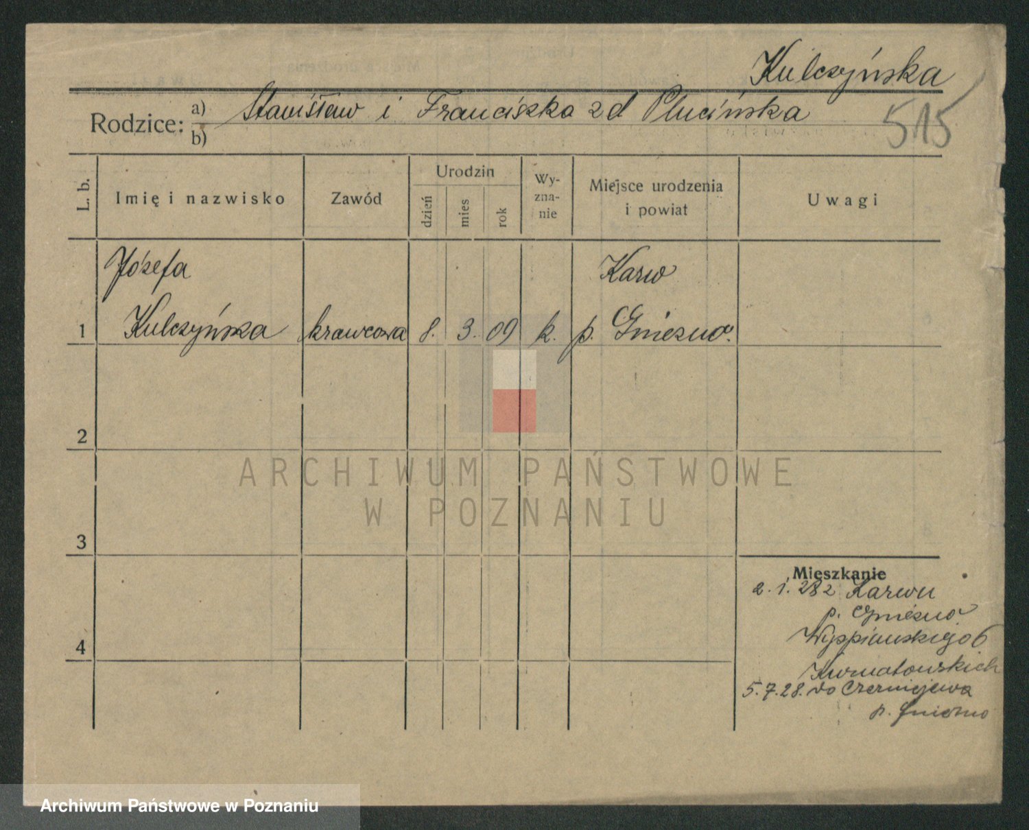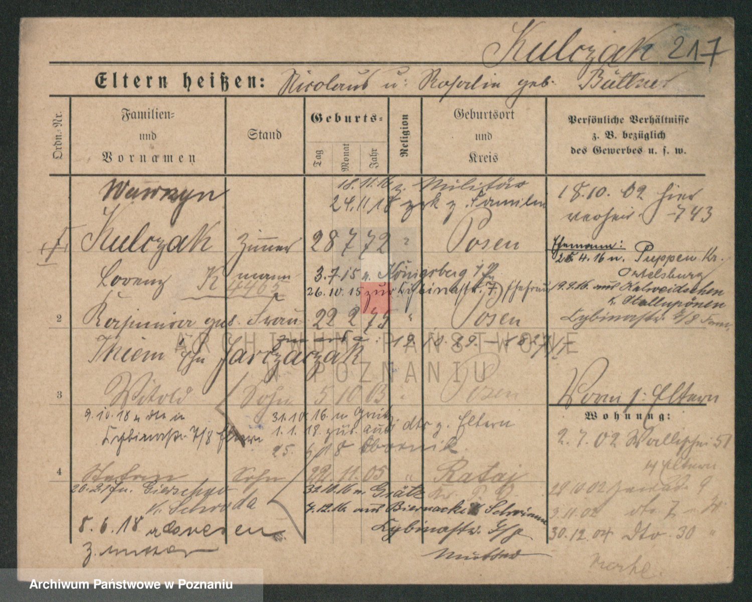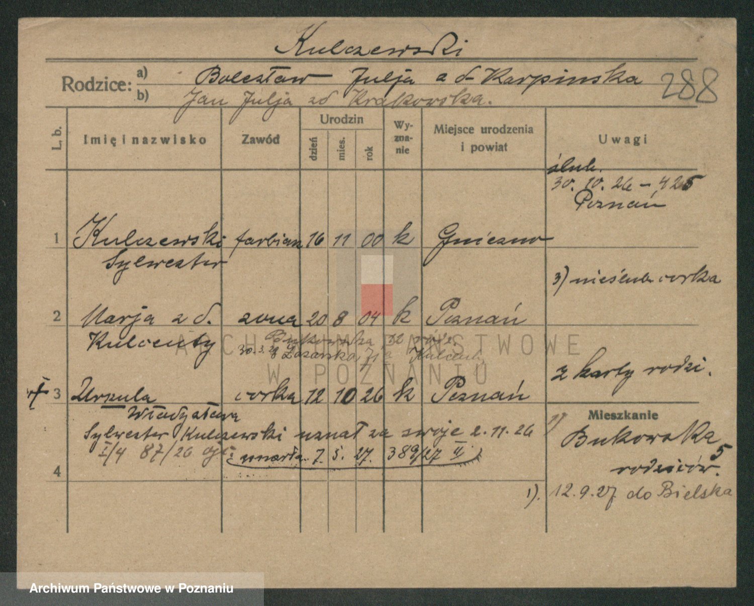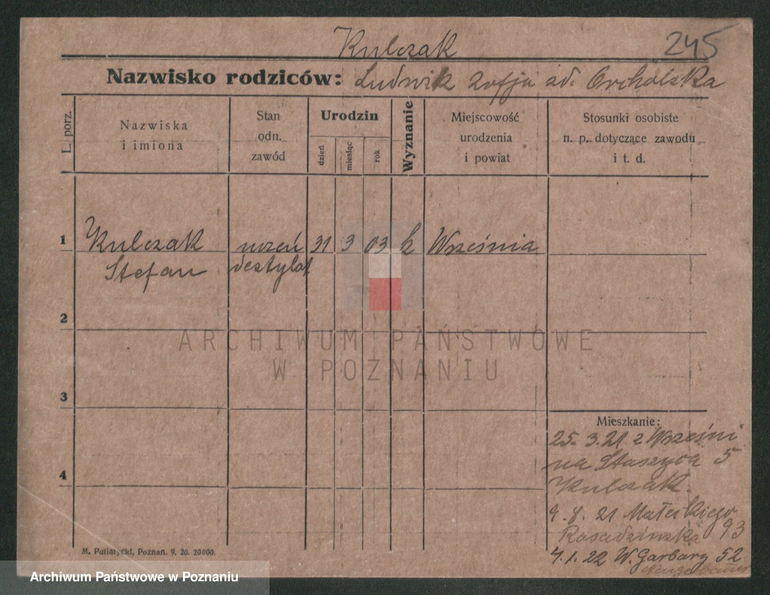 Podgląd karty osobowej dostępny jest po kliknięciu na nazwisko lub ikonkę karty. Można dokonywać powiększenia (ikony na górze) lub przechodzić między kolejnymi skanami (strzałki po bokach).