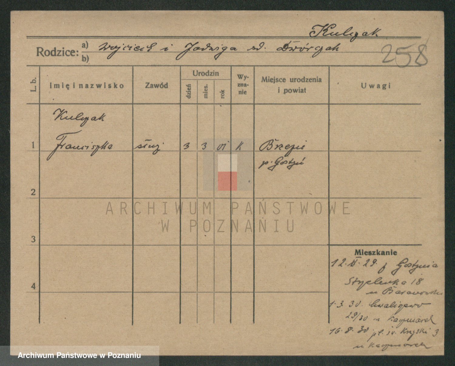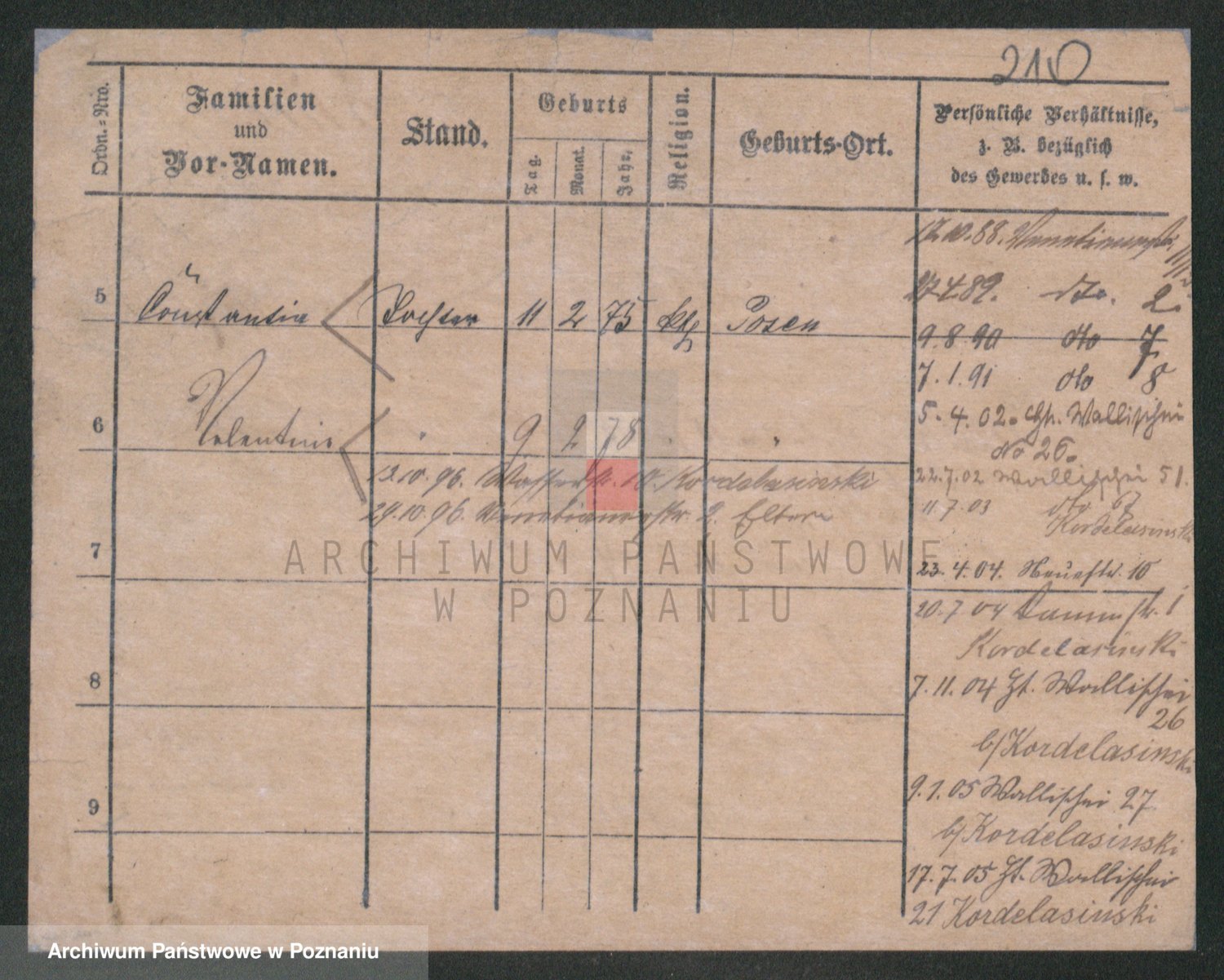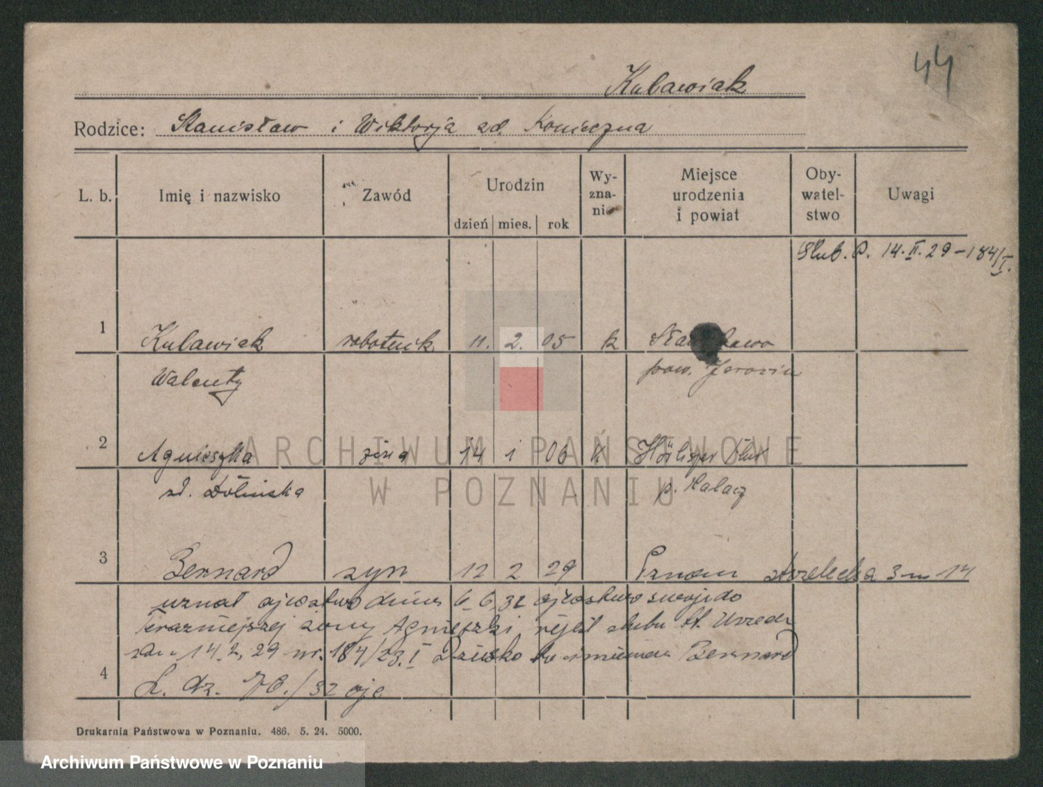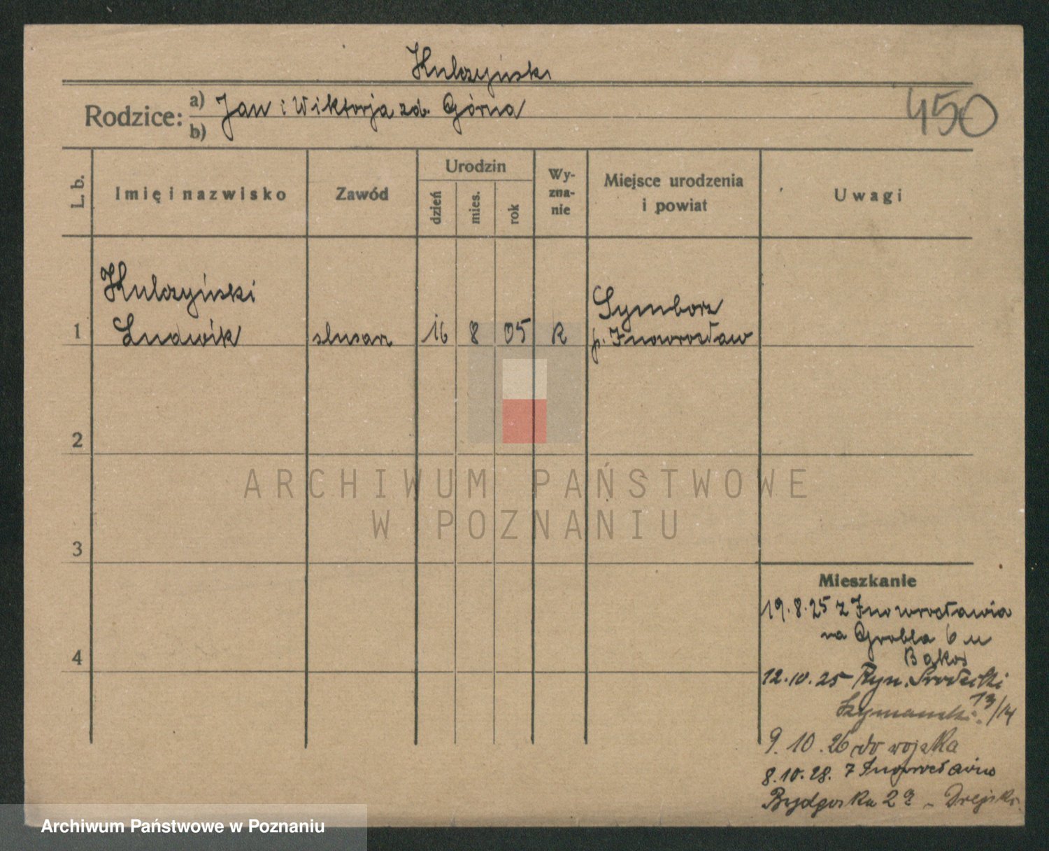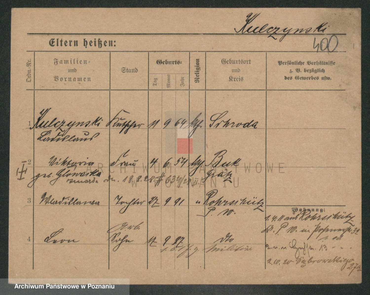 Podgląd karty osobowej dostępny jest po kliknięciu na nazwisko lub ikonkę karty. Można dokonywać powiększenia (ikony na górze) lub przechodzić między kolejnymi skanami (strzałki po bokach).