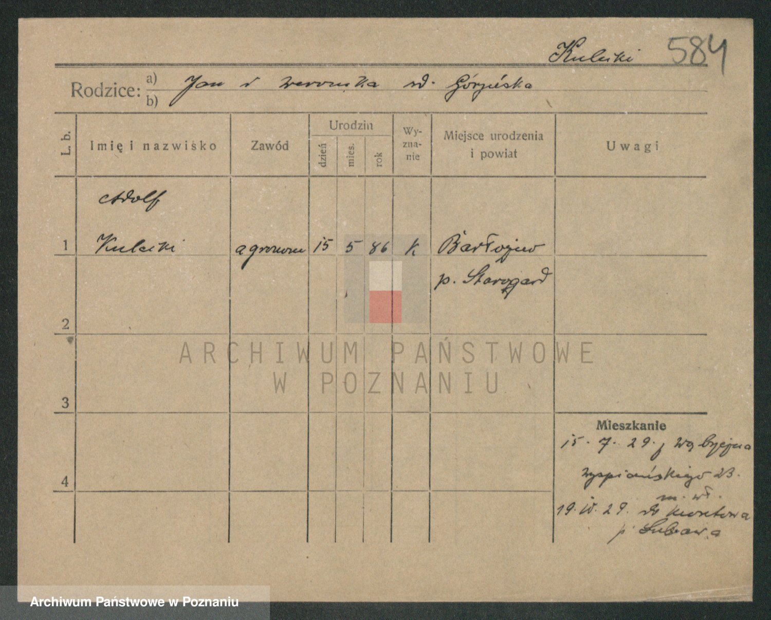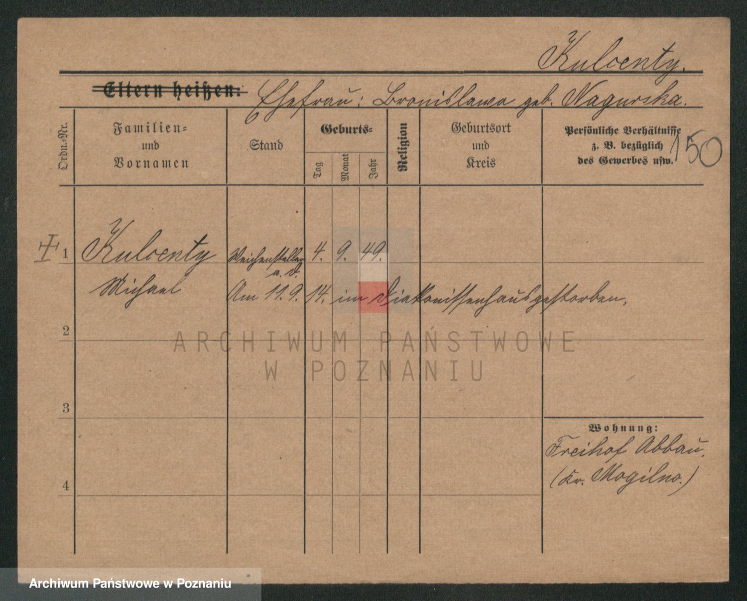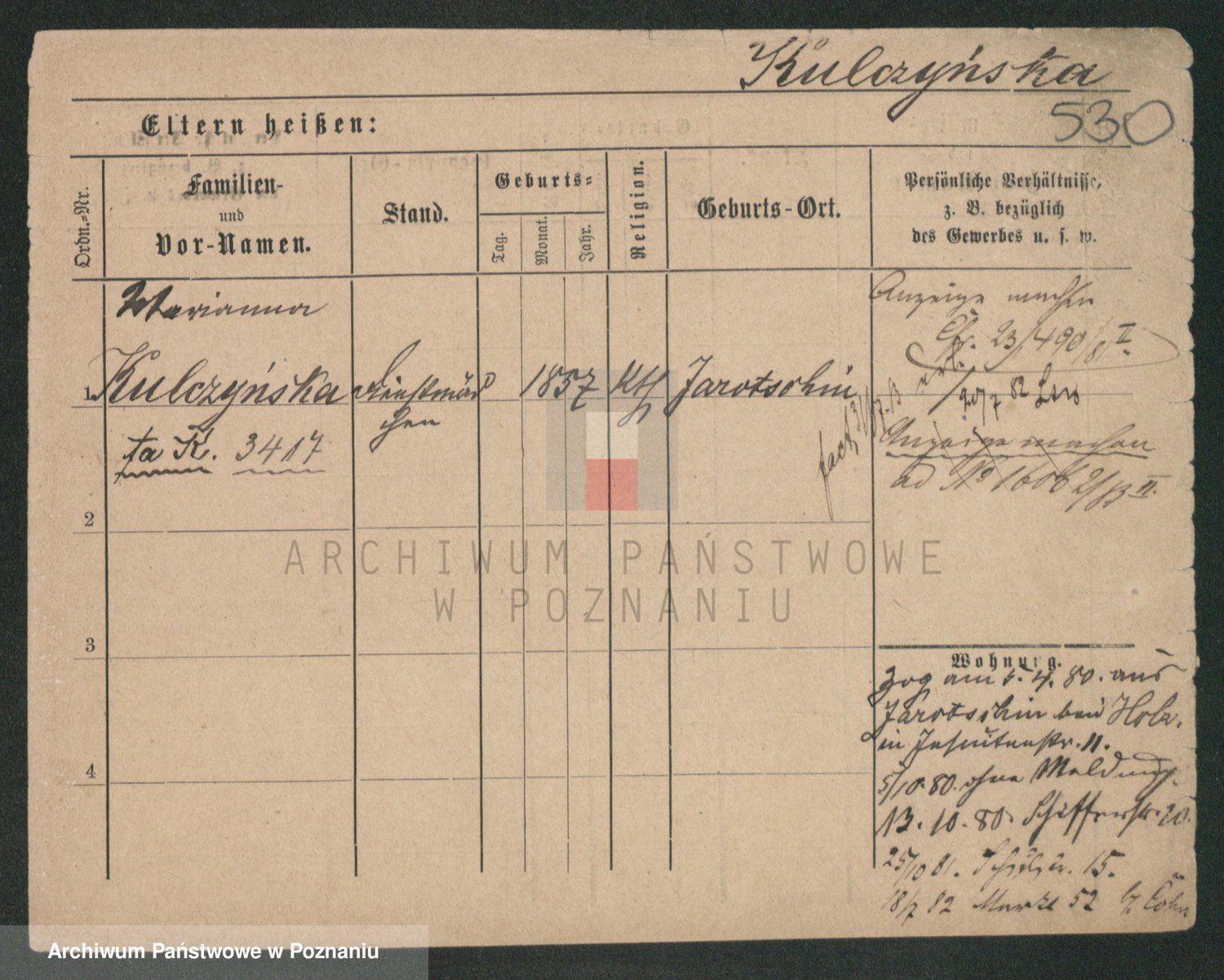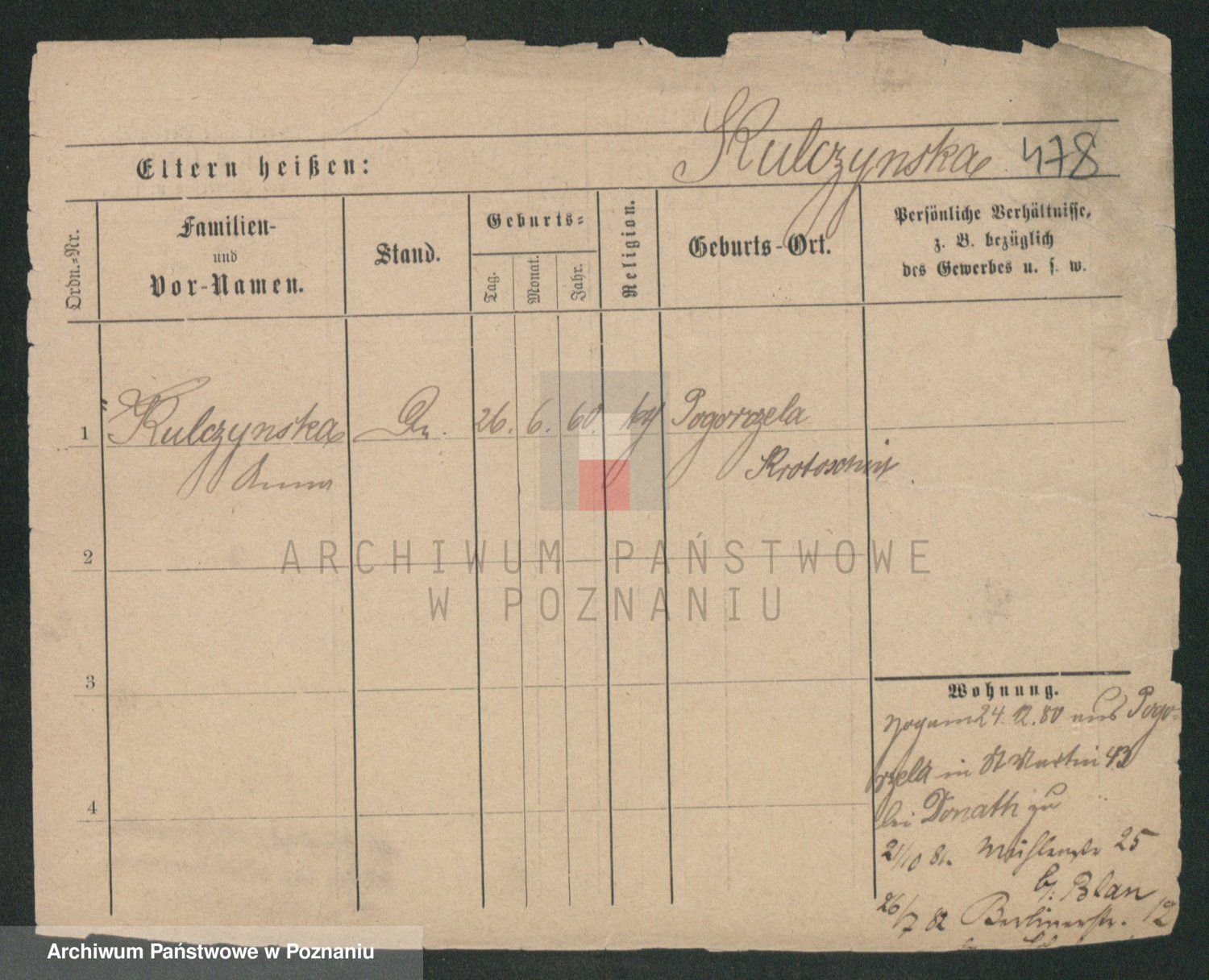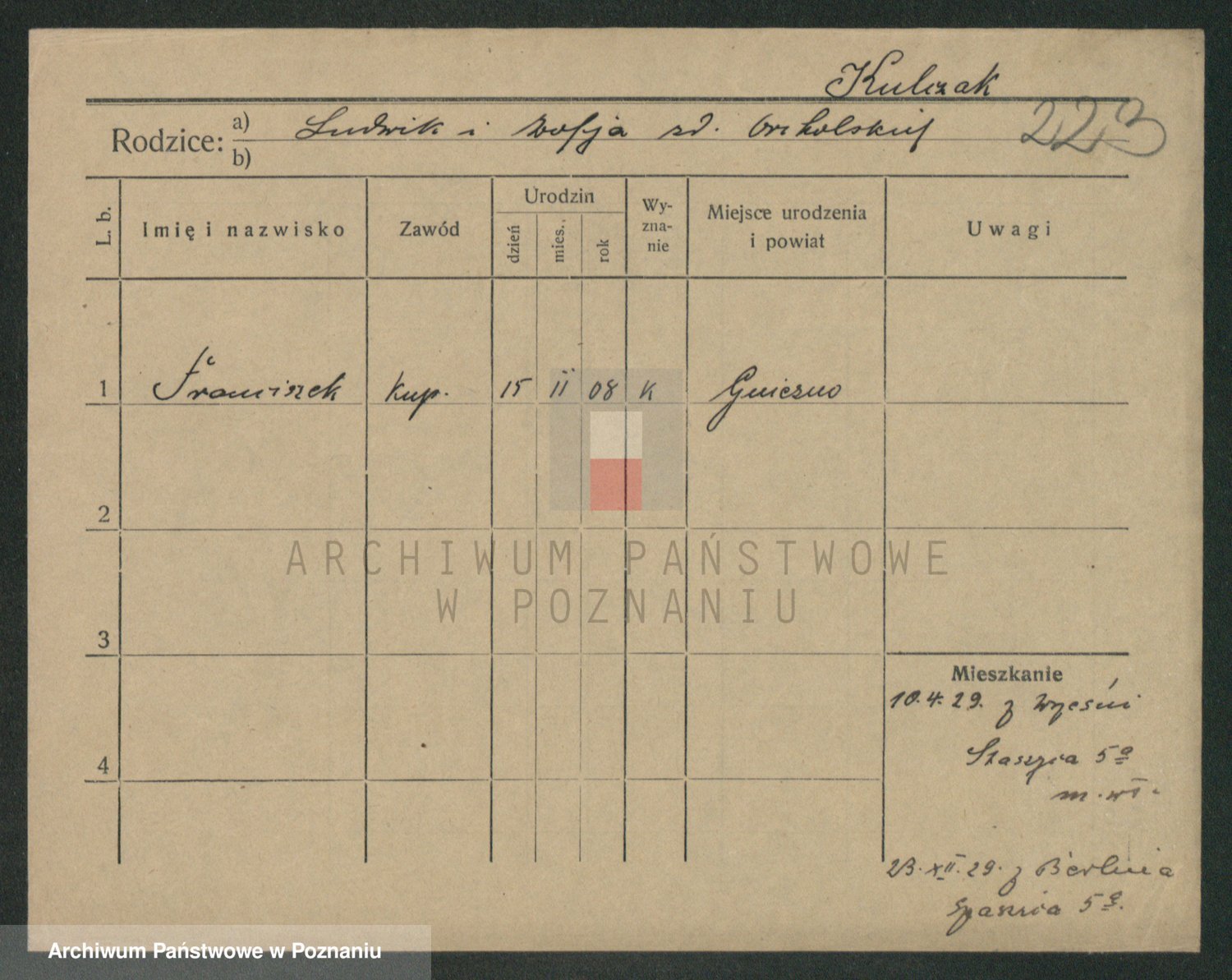 Podgląd karty osobowej dostępny jest po kliknięciu na nazwisko lub ikonkę karty. Można dokonywać powiększenia (ikony na górze) lub przechodzić między kolejnymi skanami (strzałki po bokach).