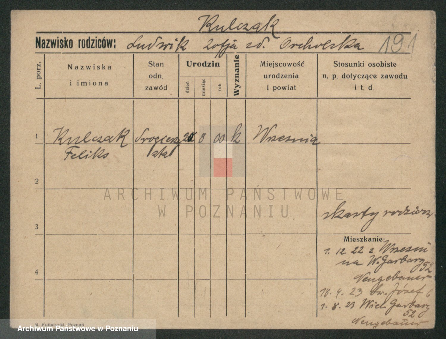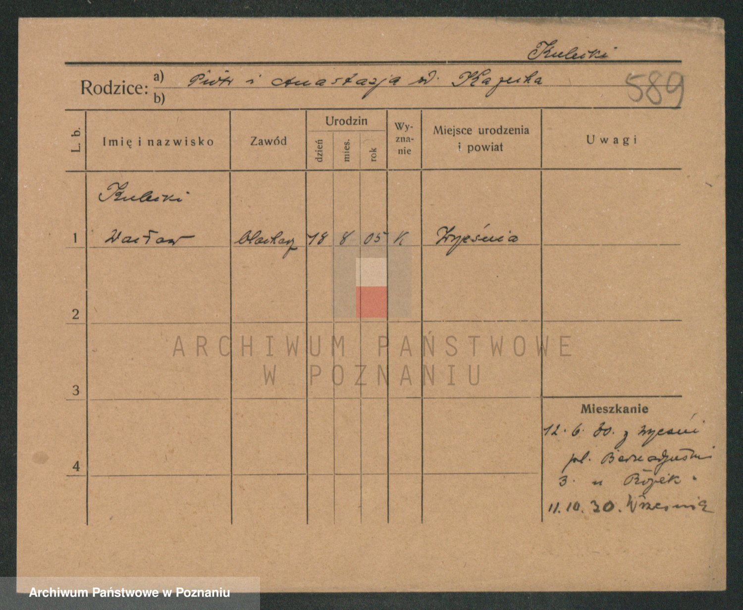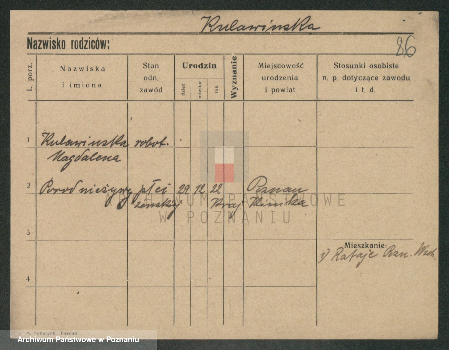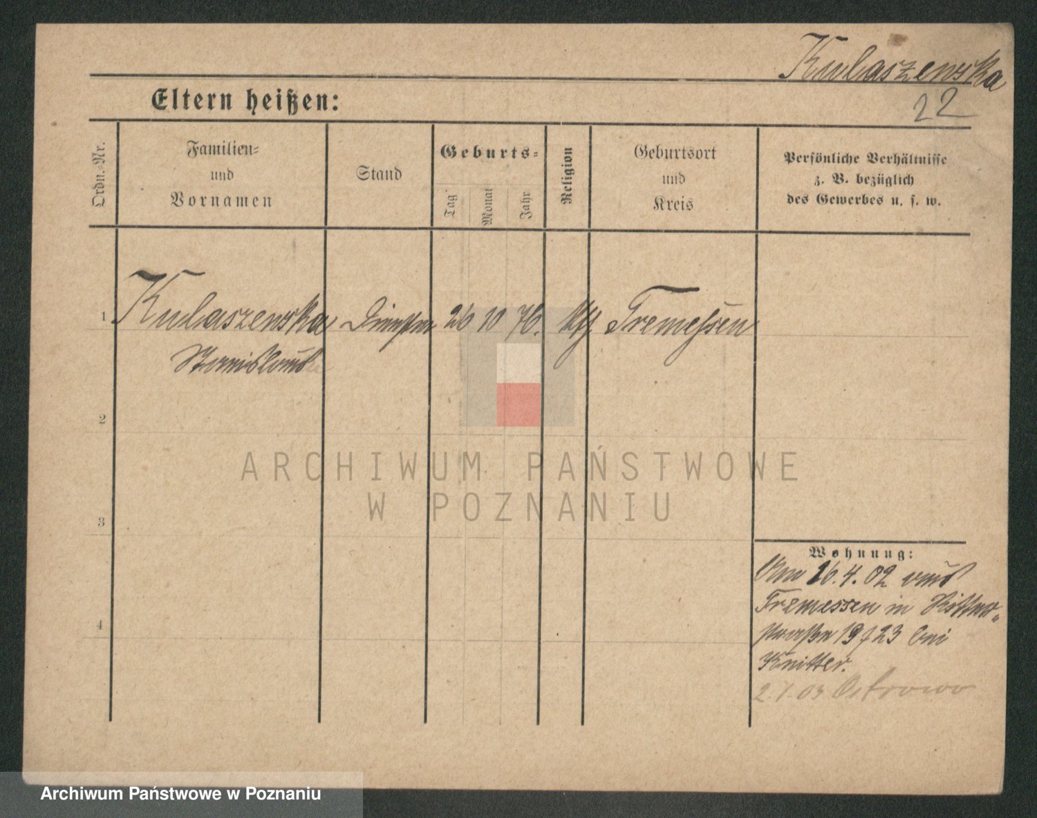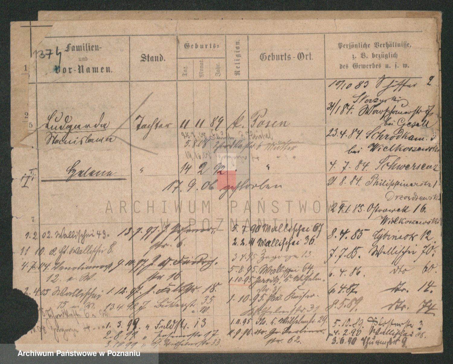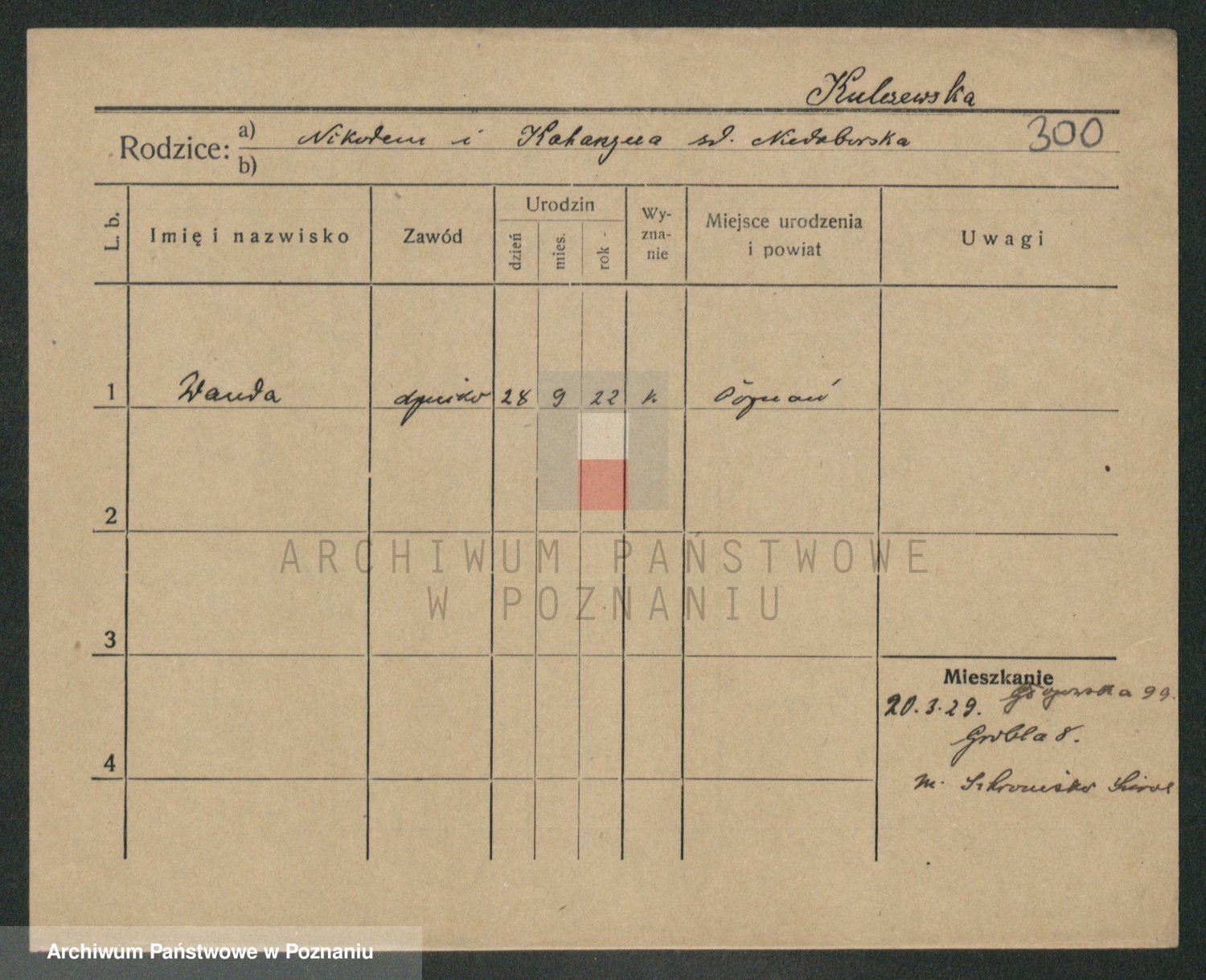 Podgląd karty osobowej dostępny jest po kliknięciu na nazwisko lub ikonkę karty. Można dokonywać powiększenia (ikony na górze) lub przechodzić między kolejnymi skanami (strzałki po bokach).