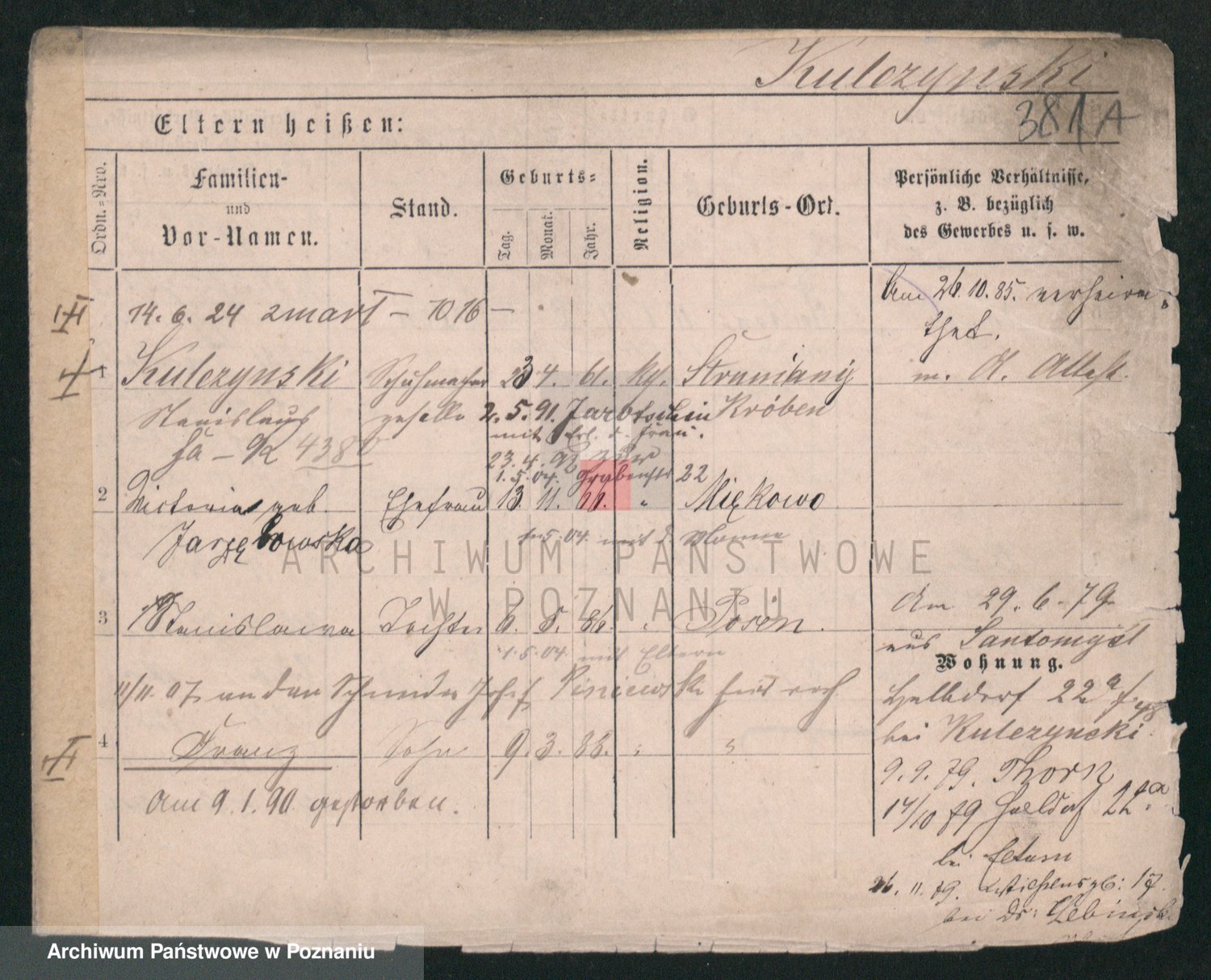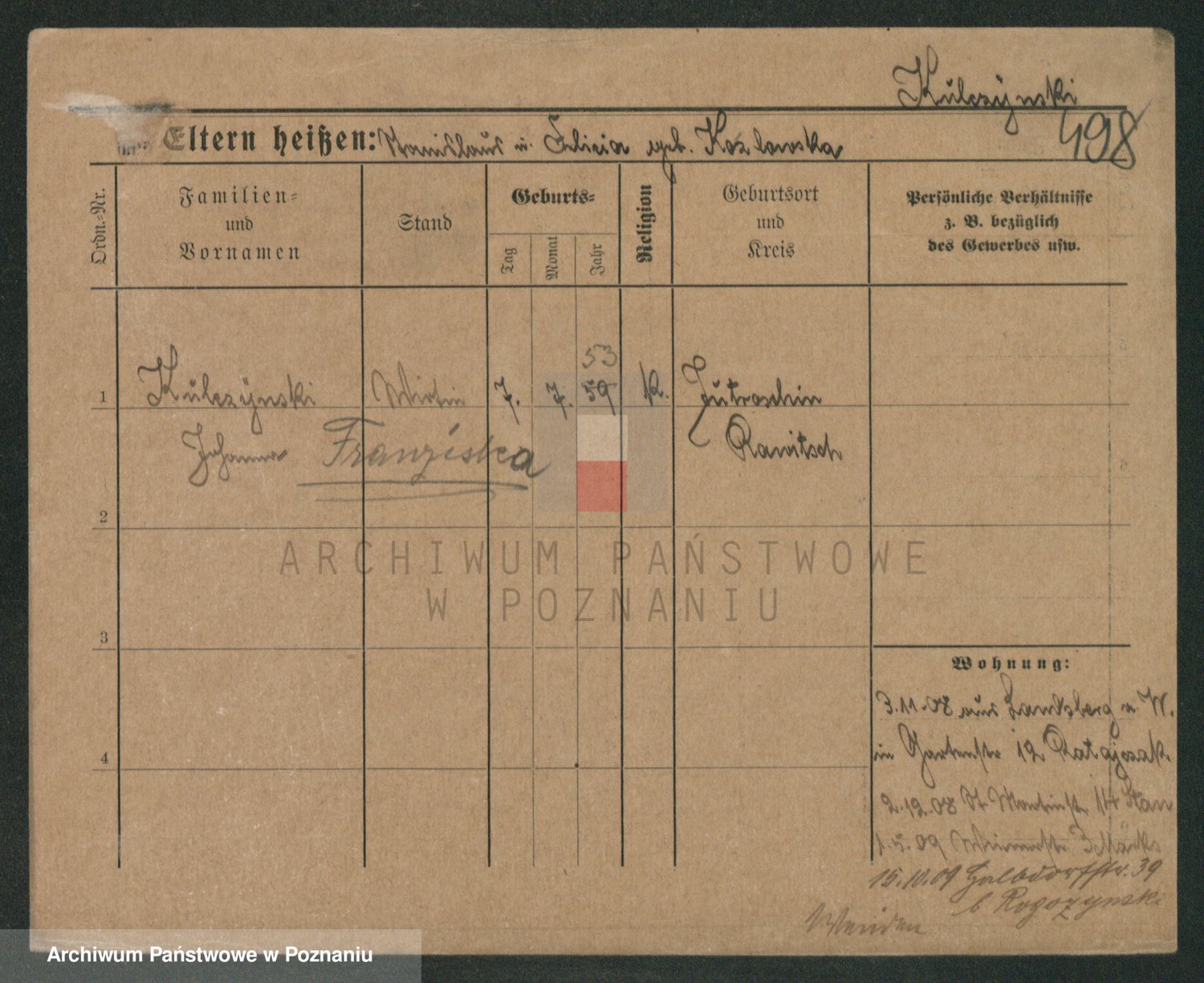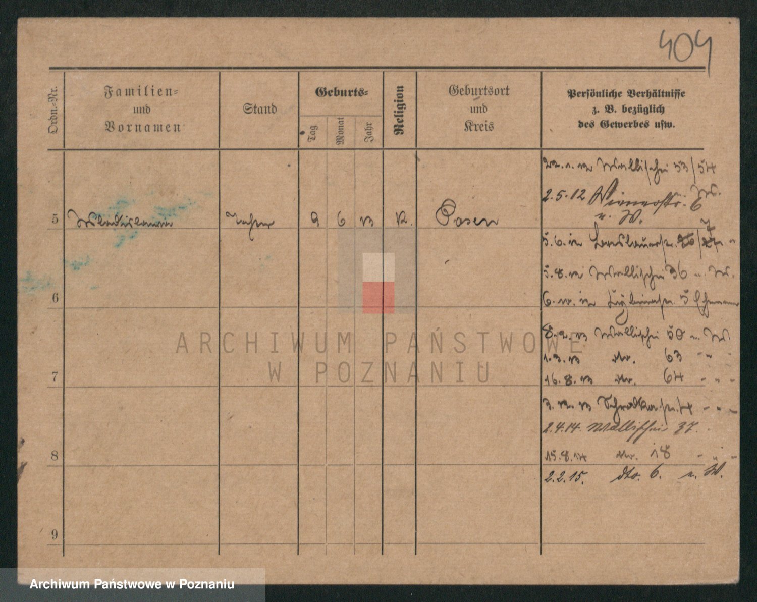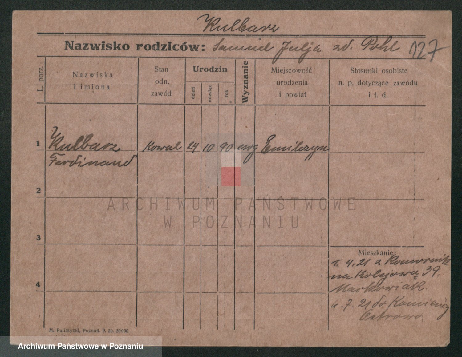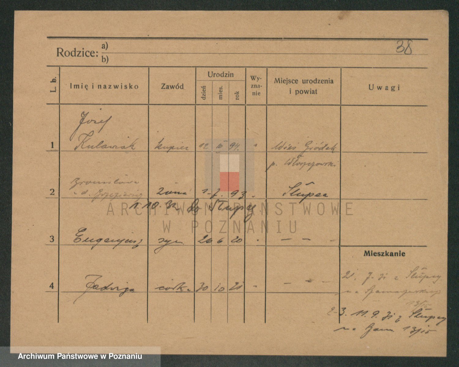 Podgląd karty osobowej dostępny jest po kliknięciu na nazwisko lub ikonkę karty. Można dokonywać powiększenia (ikony na górze) lub przechodzić między kolejnymi skanami (strzałki po bokach).