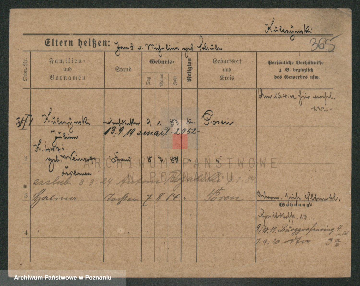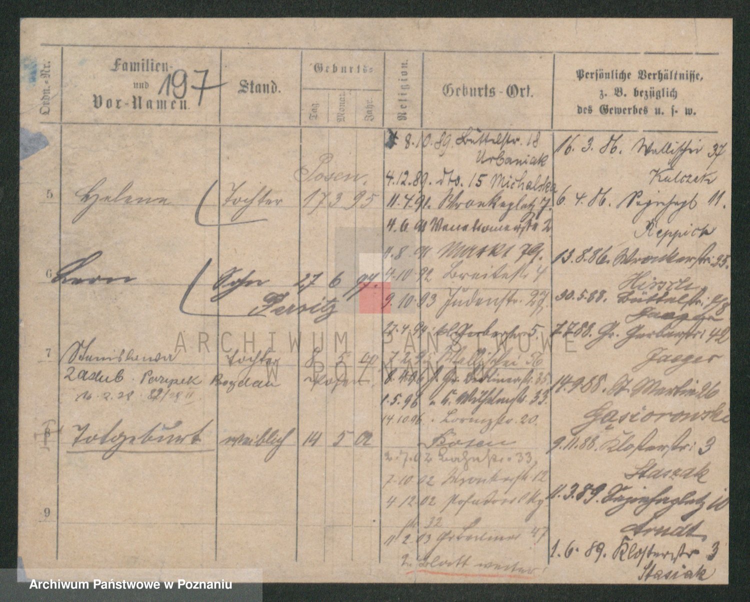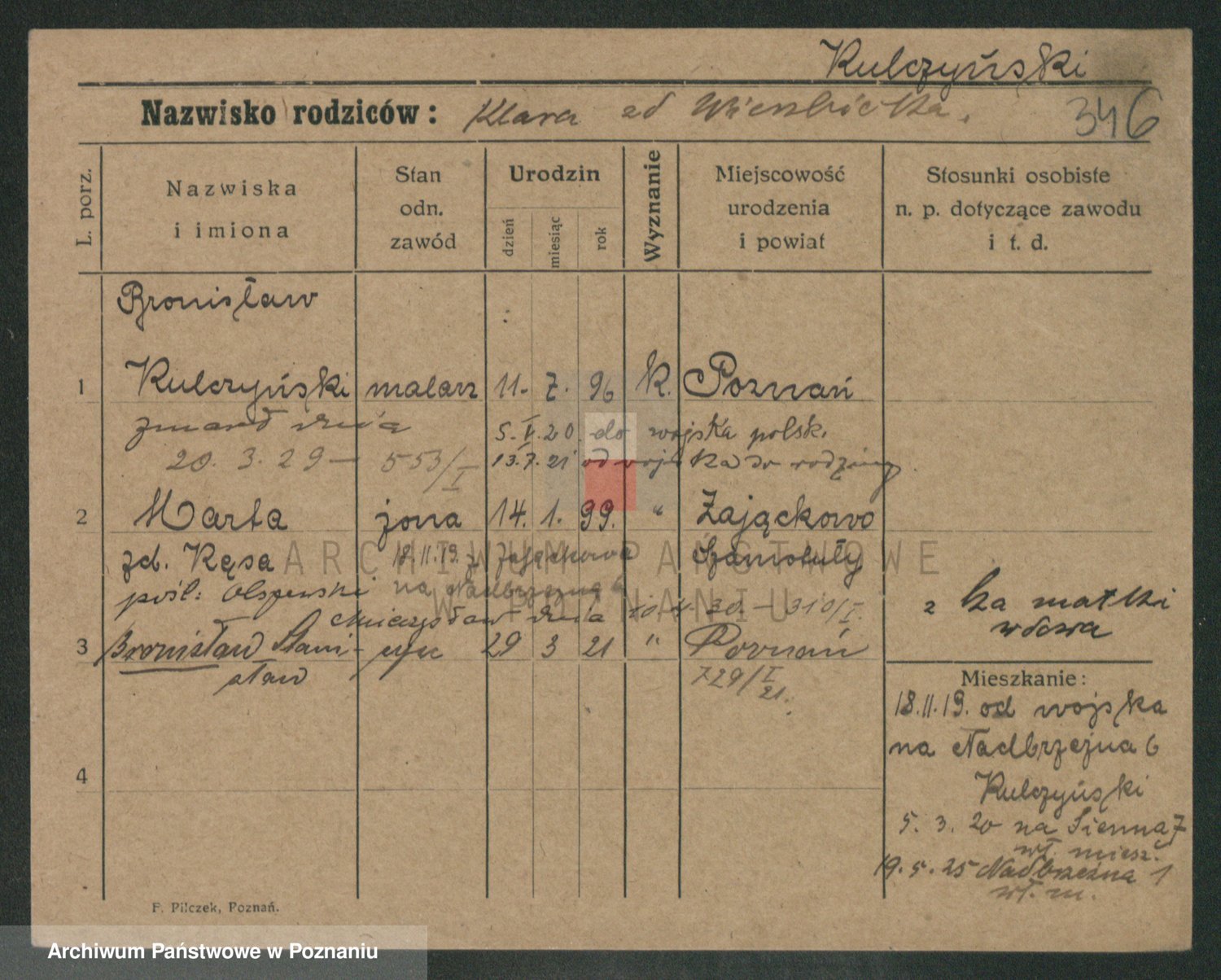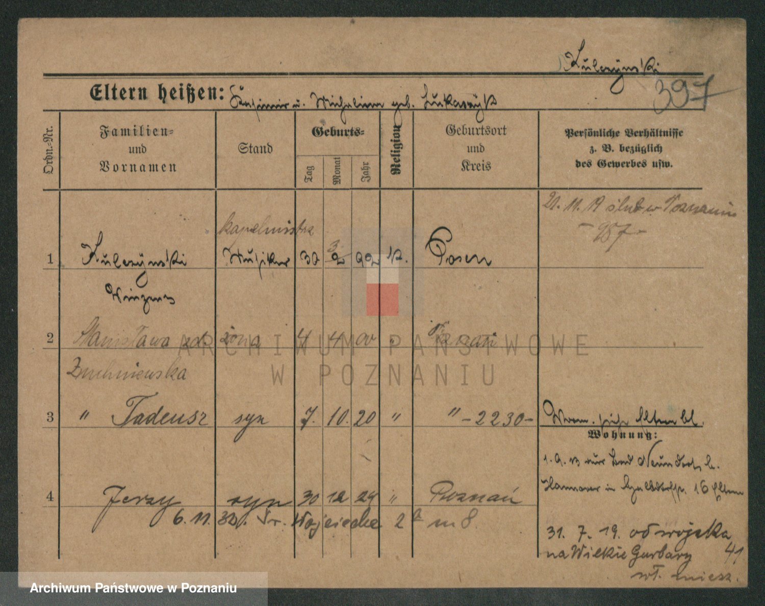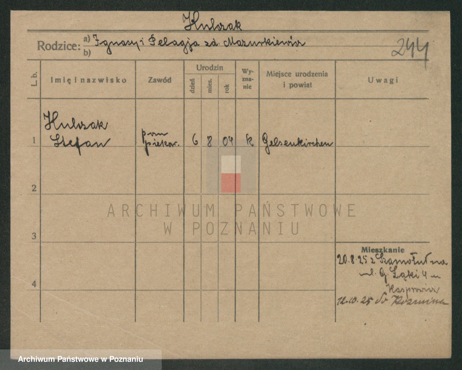 Podgląd karty osobowej dostępny jest po kliknięciu na nazwisko lub ikonkę karty. Można dokonywać powiększenia (ikony na górze) lub przechodzić między kolejnymi skanami (strzałki po bokach).