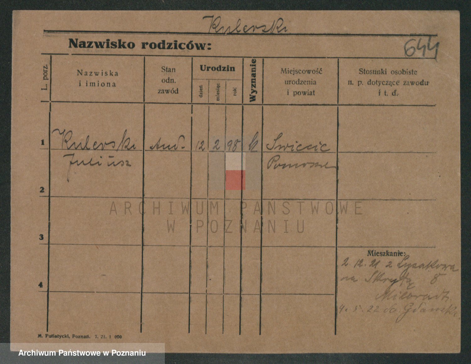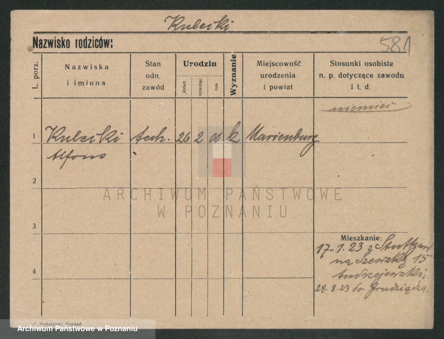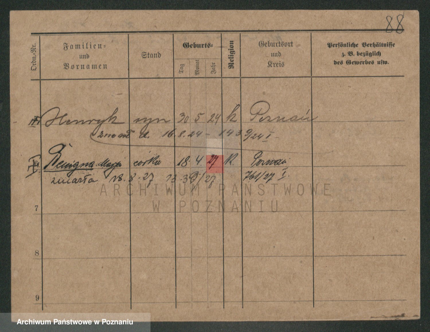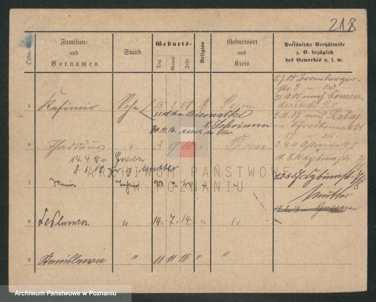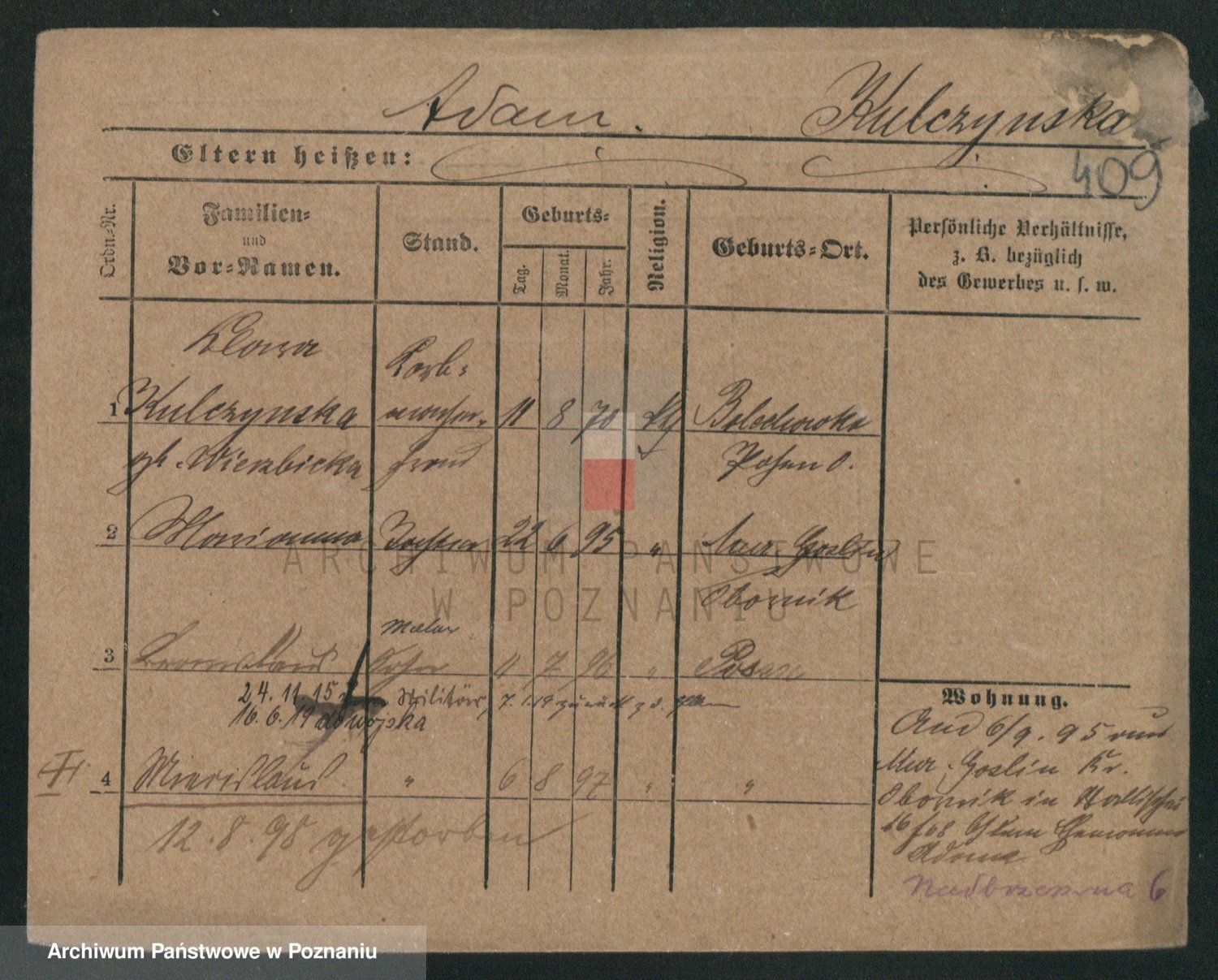 Podgląd karty osobowej dostępny jest po kliknięciu na nazwisko lub ikonkę karty. Można dokonywać powiększenia (ikony na górze) lub przechodzić między kolejnymi skanami (strzałki po bokach).