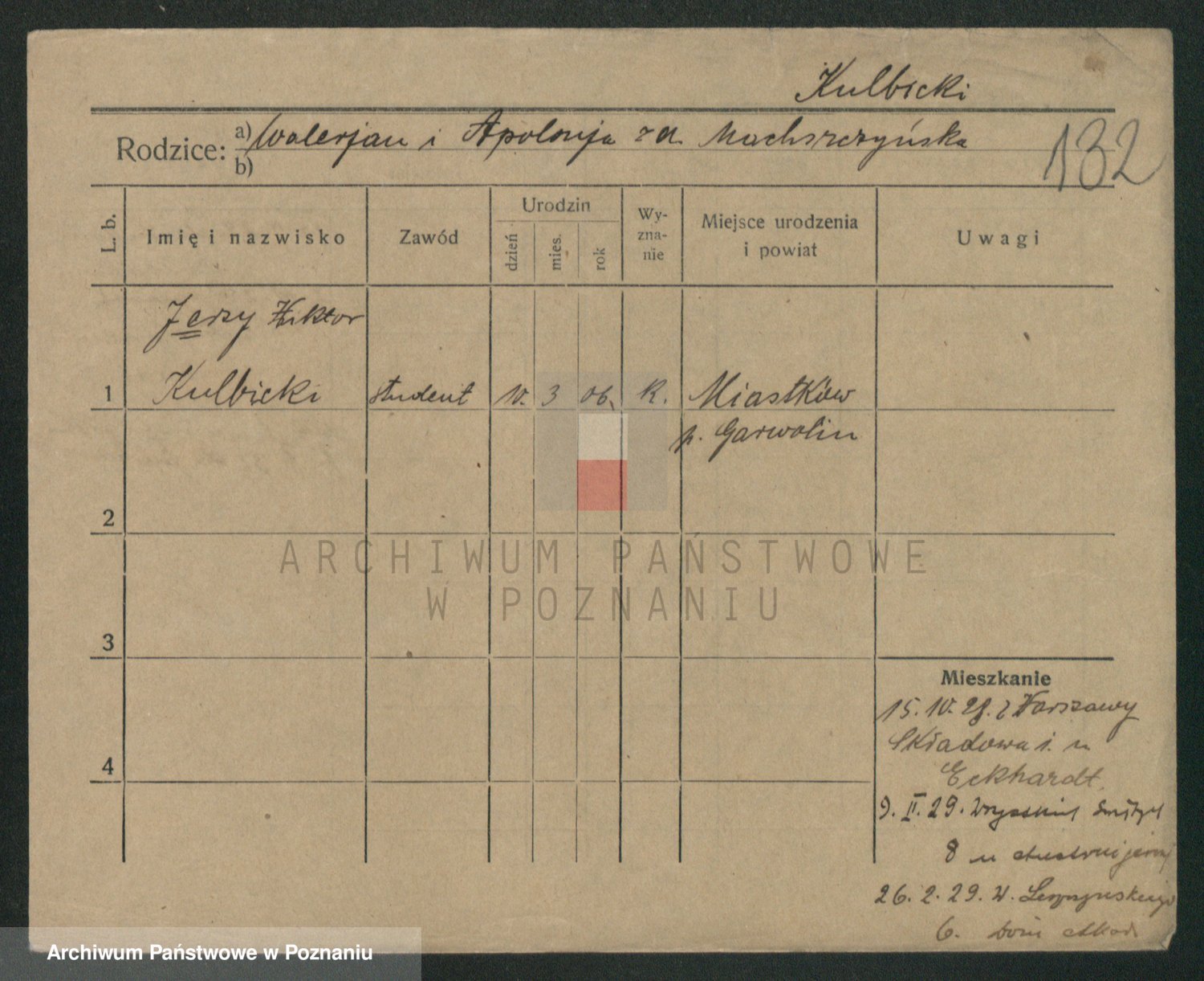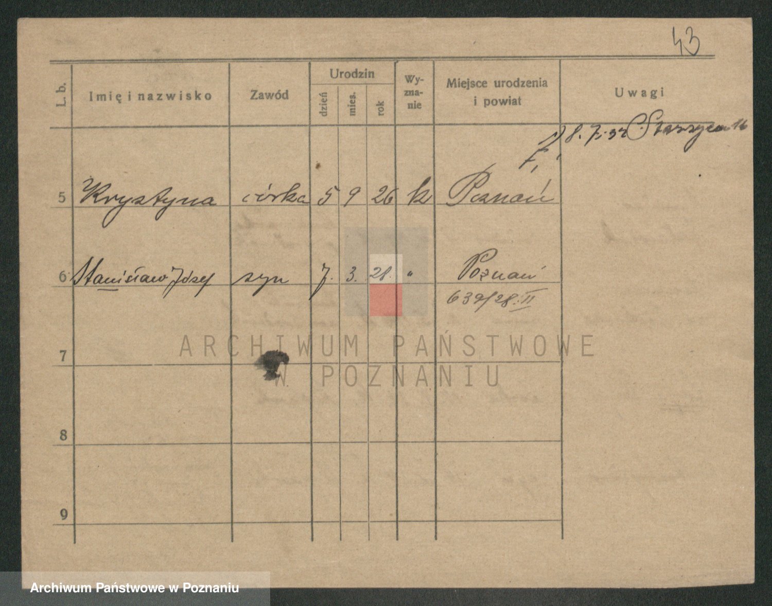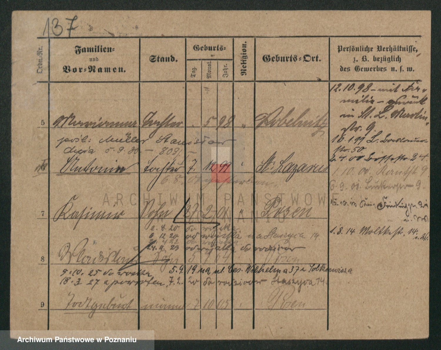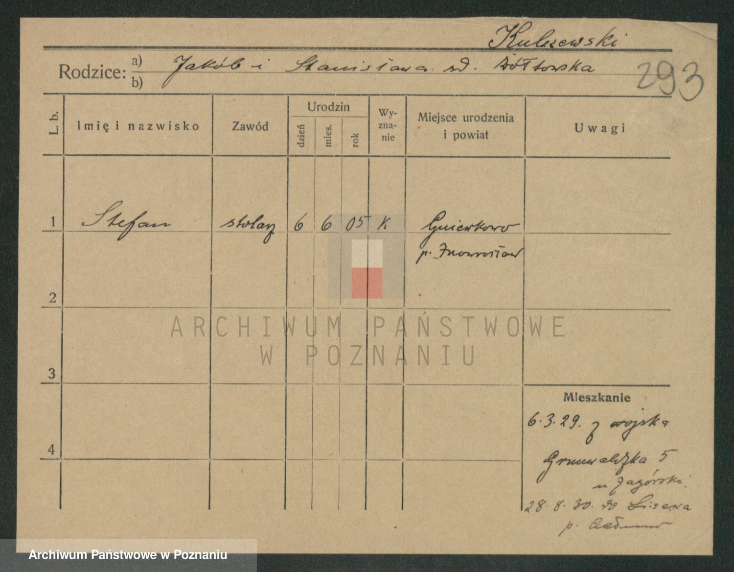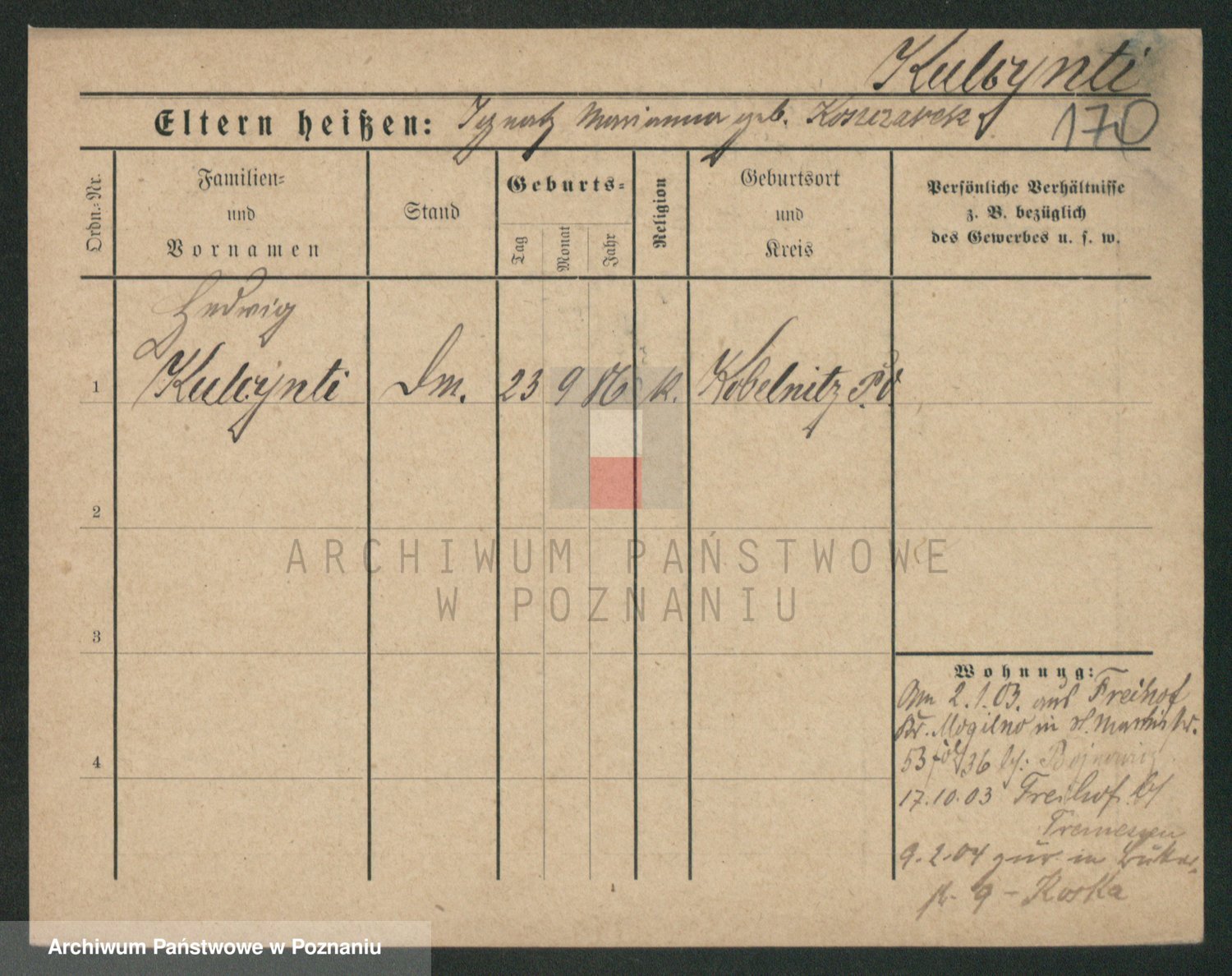 Podgląd karty osobowej dostępny jest po kliknięciu na nazwisko lub ikonkę karty. Można dokonywać powiększenia (ikony na górze) lub przechodzić między kolejnymi skanami (strzałki po bokach).