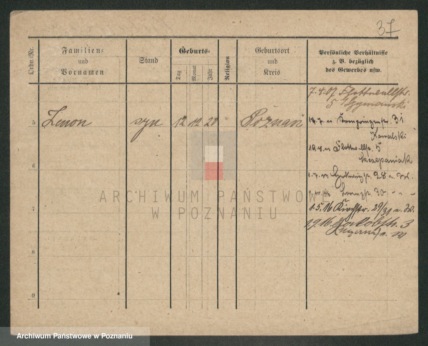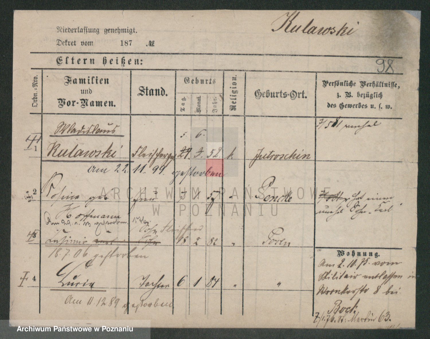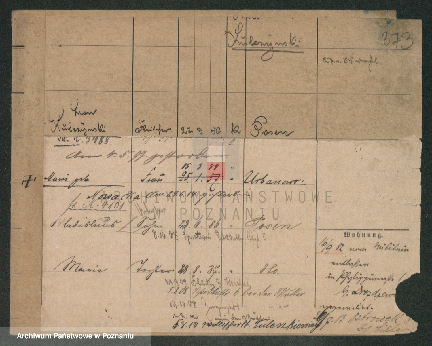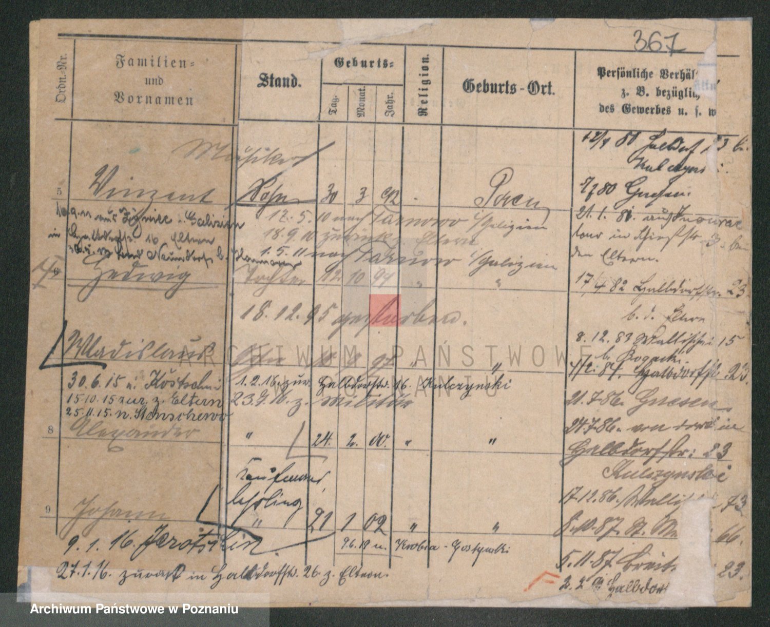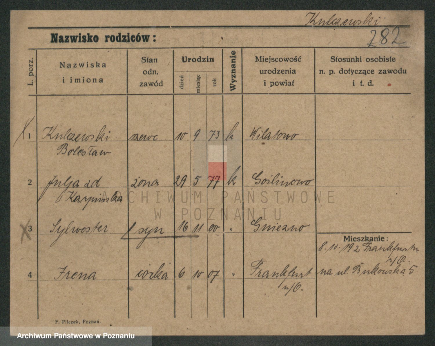 Podgląd karty osobowej dostępny jest po kliknięciu na nazwisko lub ikonkę karty. Można dokonywać powiększenia (ikony na górze) lub przechodzić między kolejnymi skanami (strzałki po bokach).