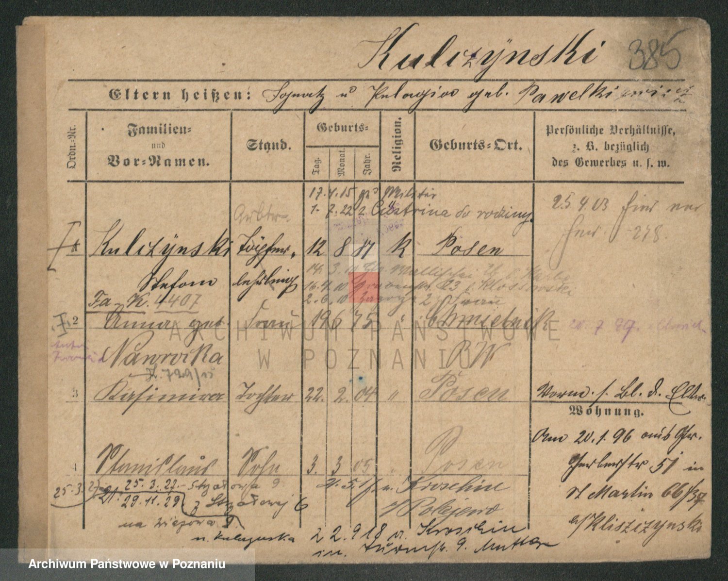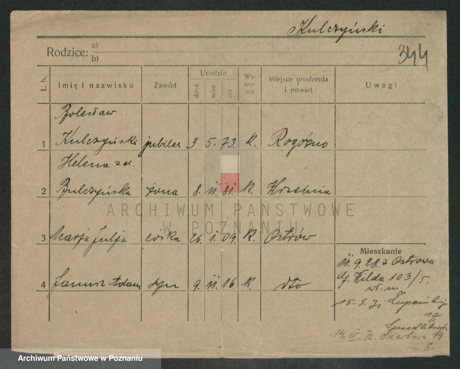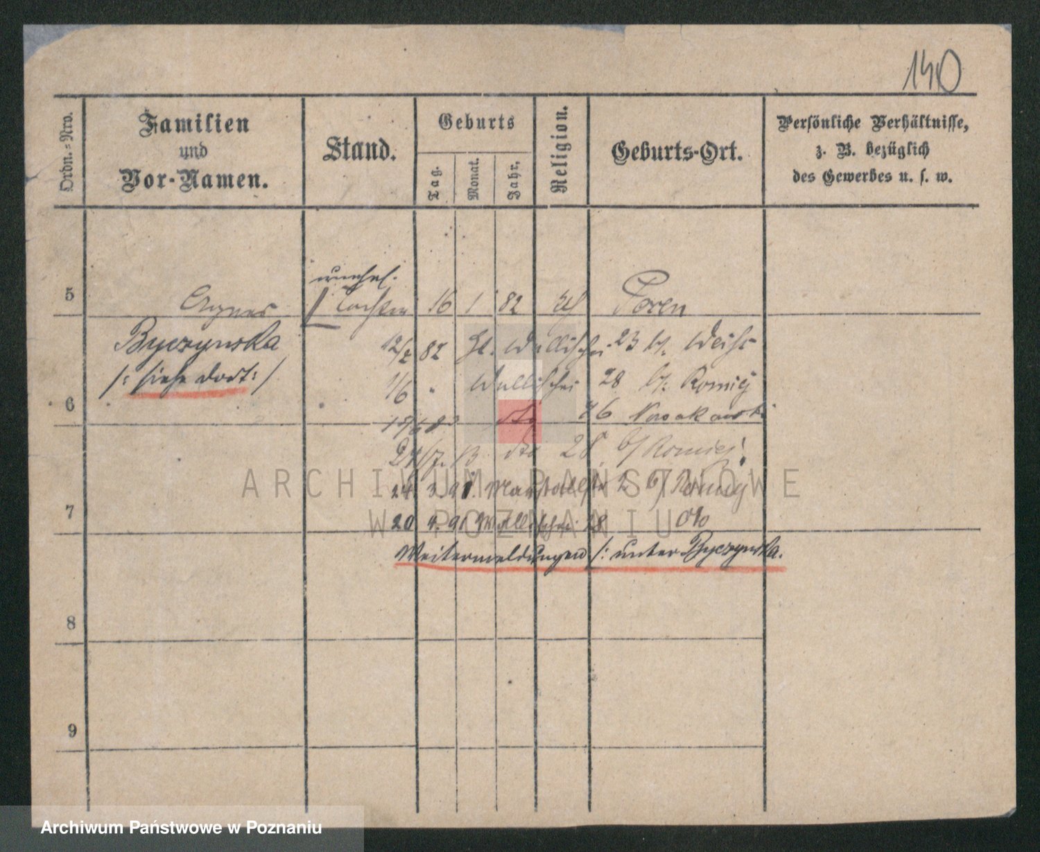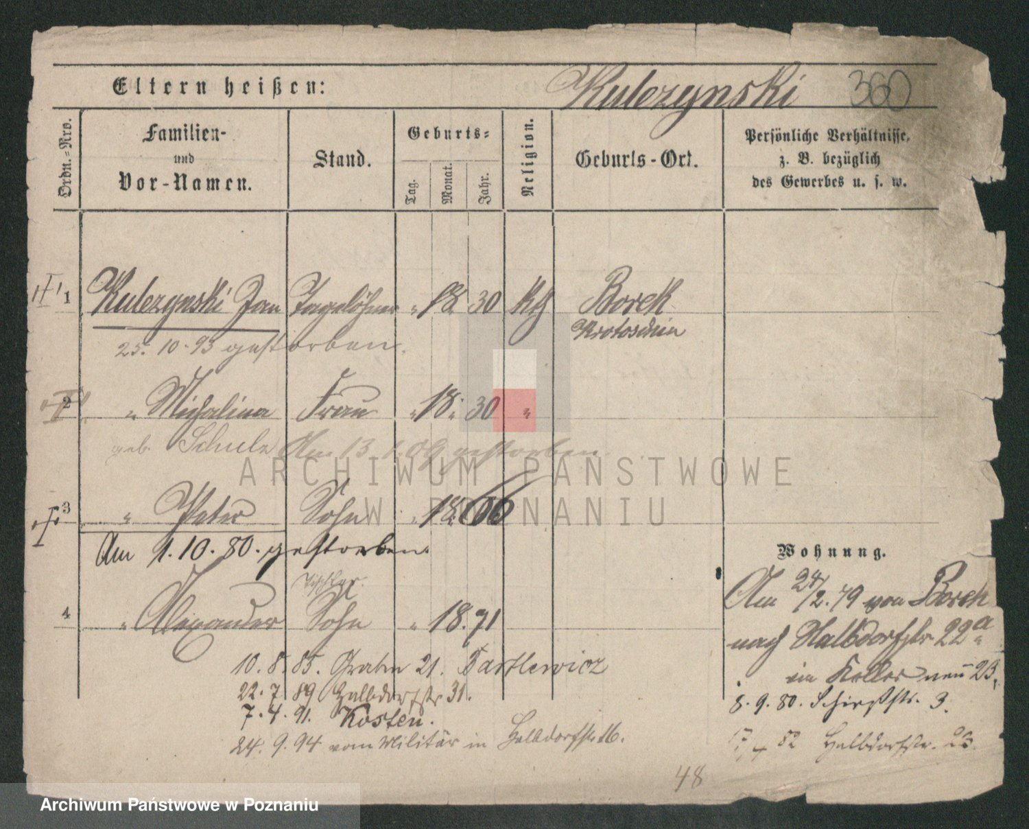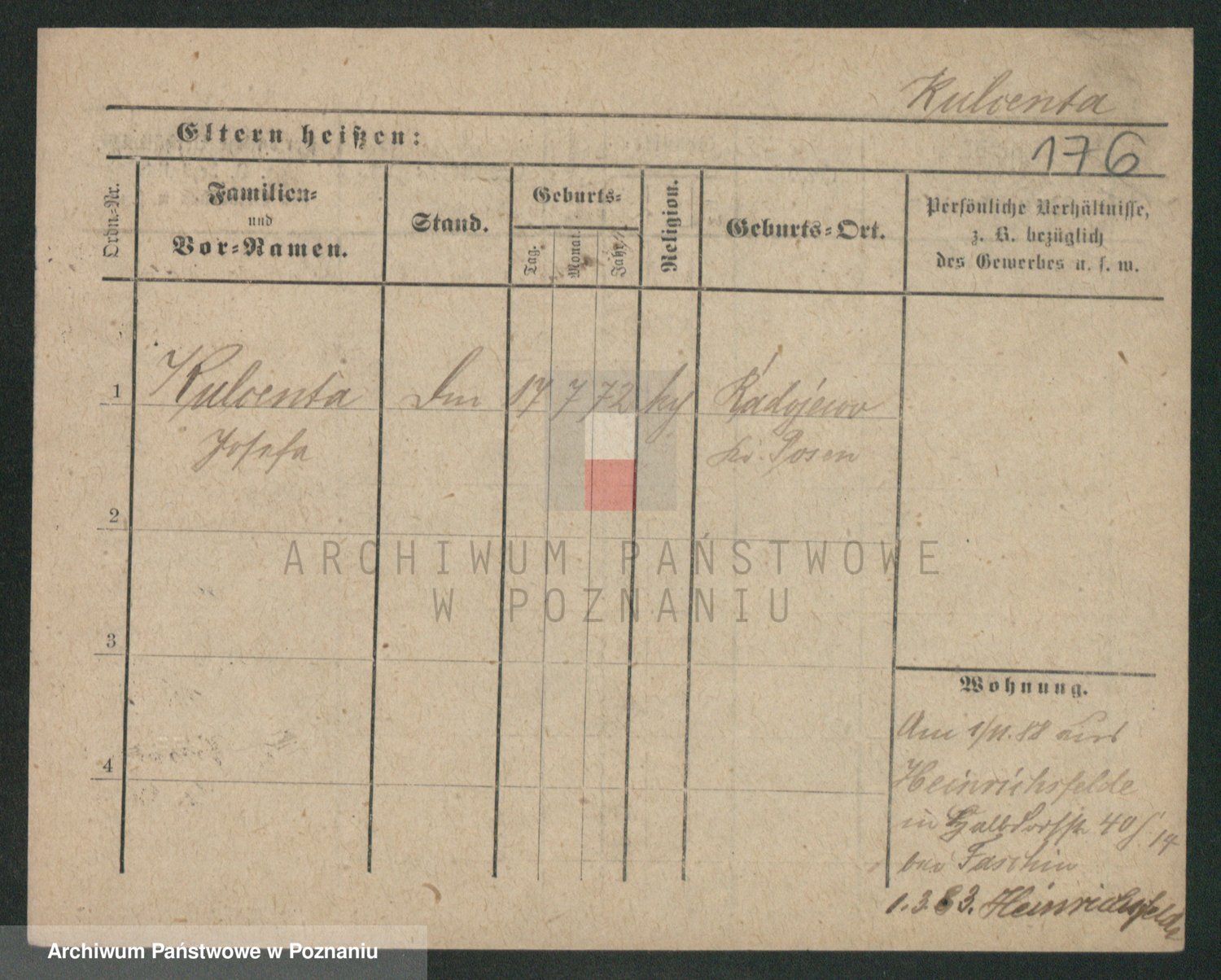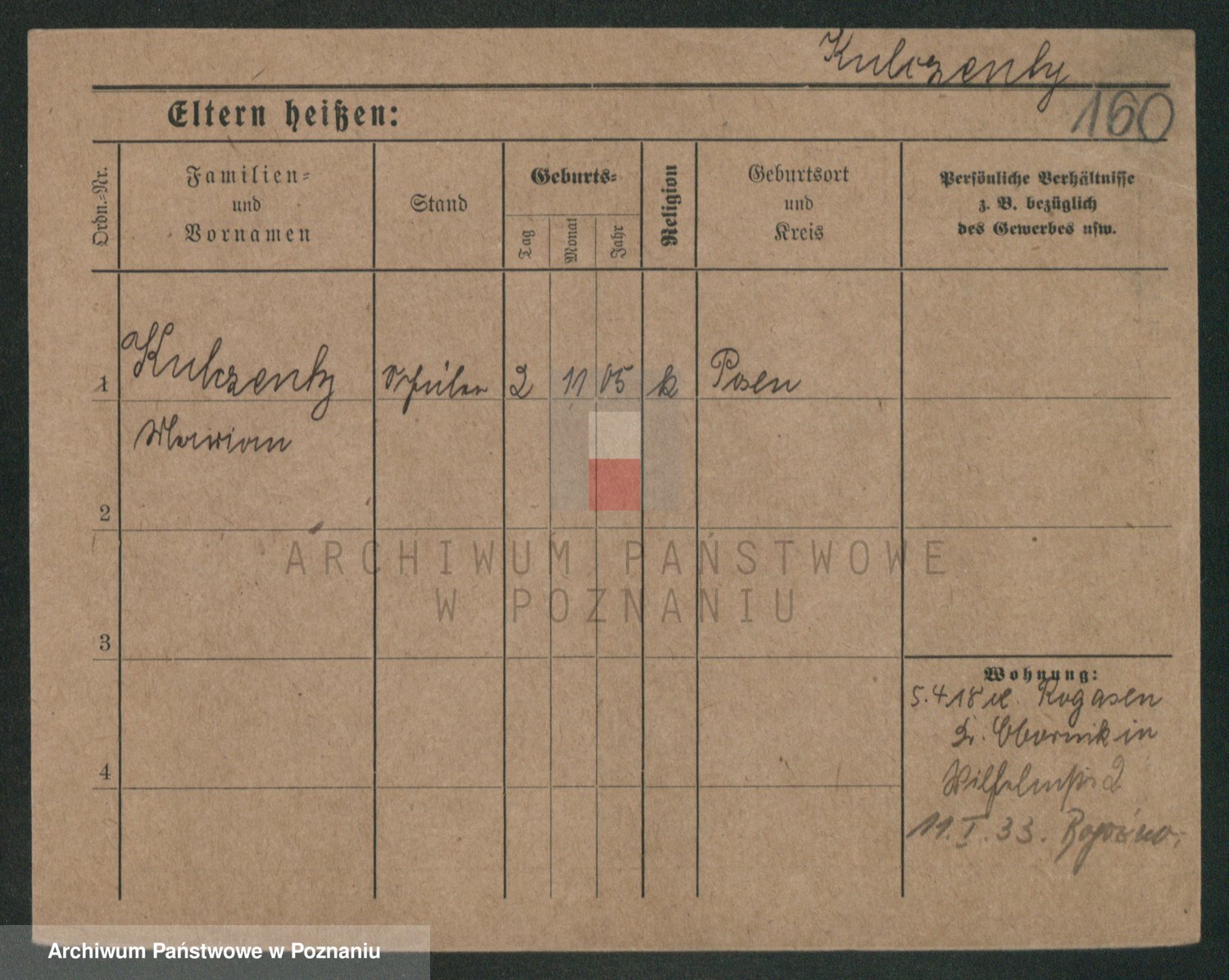 Podgląd karty osobowej dostępny jest po kliknięciu na nazwisko lub ikonkę karty. Można dokonywać powiększenia (ikony na górze) lub przechodzić między kolejnymi skanami (strzałki po bokach).