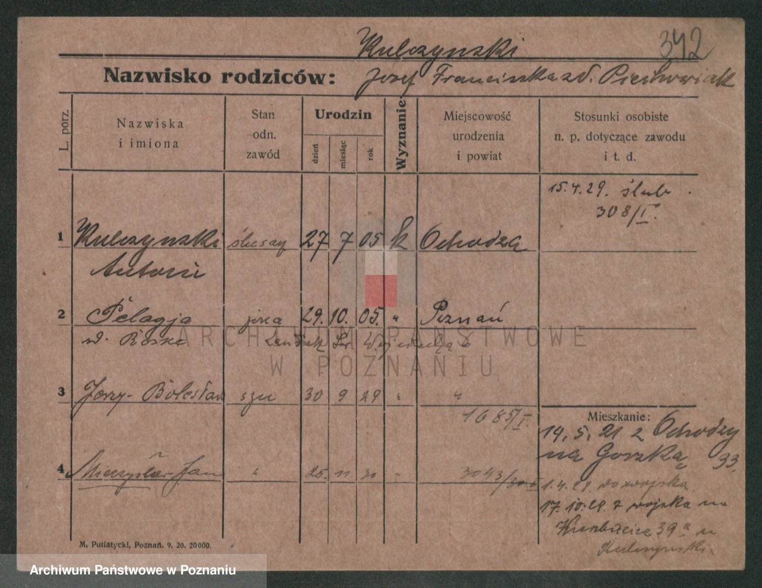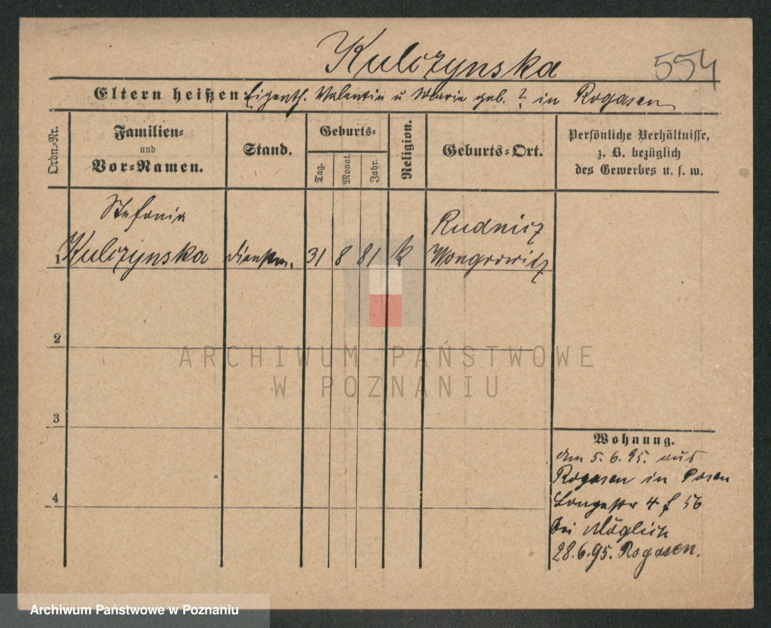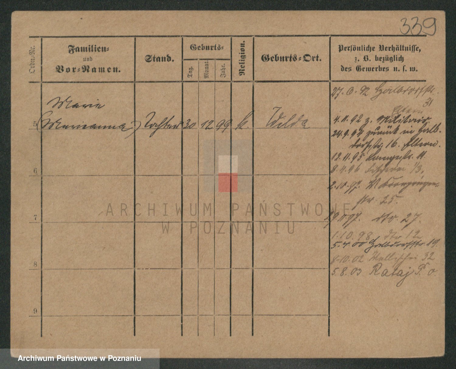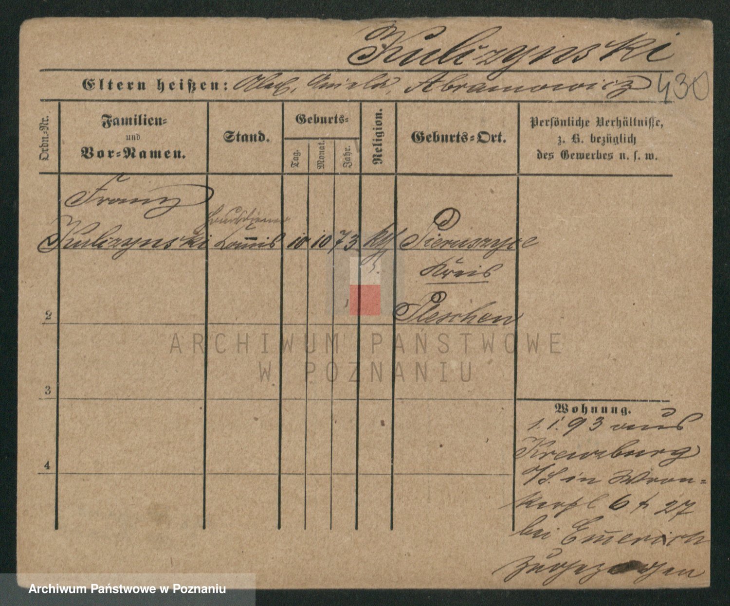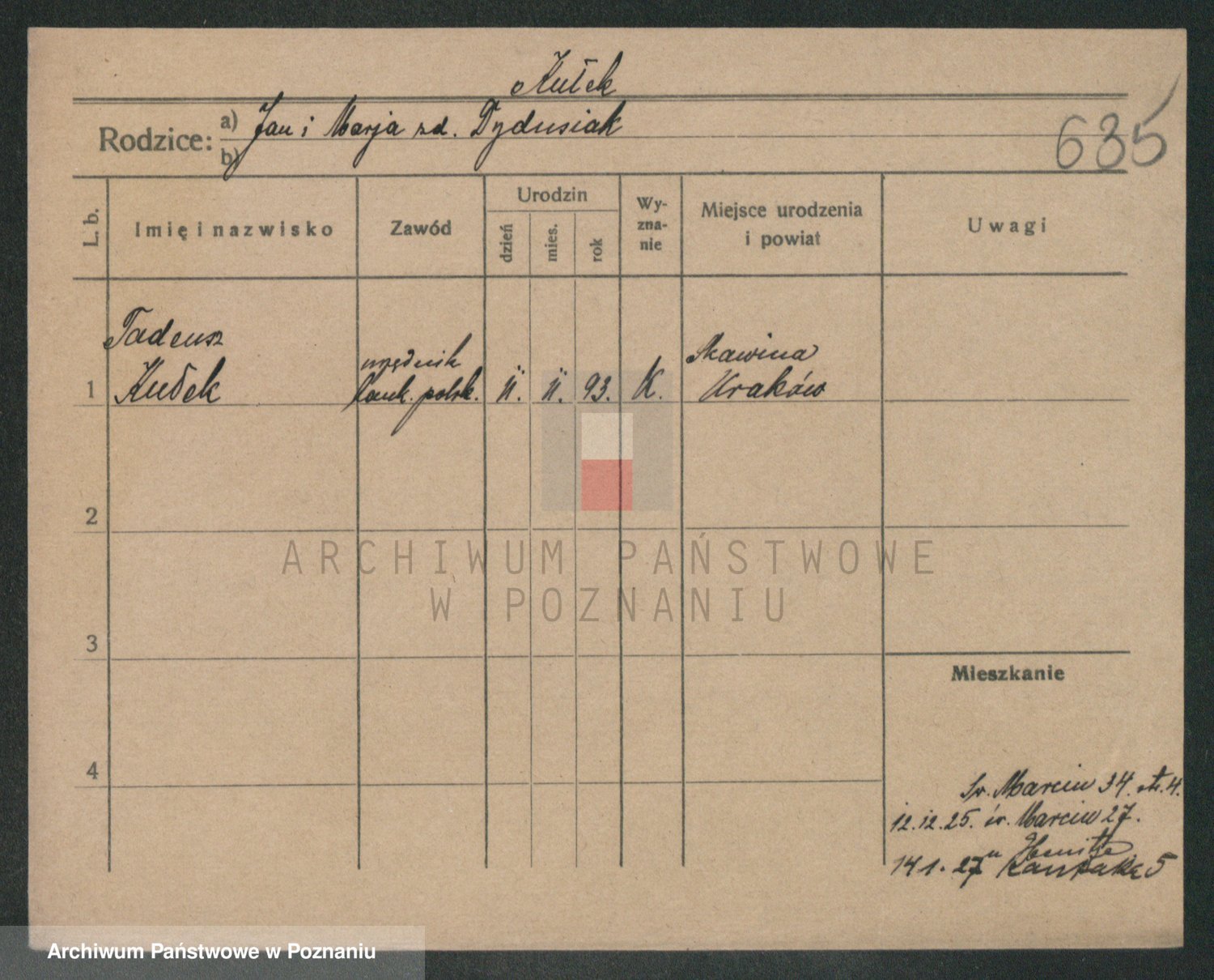 Podgląd karty osobowej dostępny jest po kliknięciu na nazwisko lub ikonkę karty. Można dokonywać powiększenia (ikony na górze) lub przechodzić między kolejnymi skanami (strzałki po bokach).