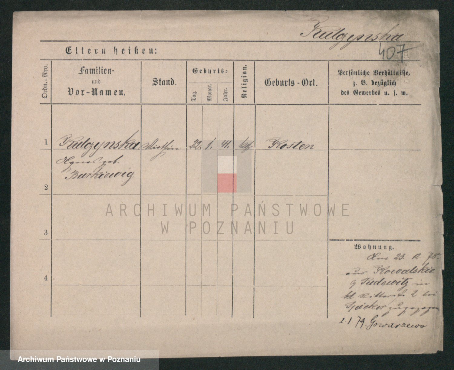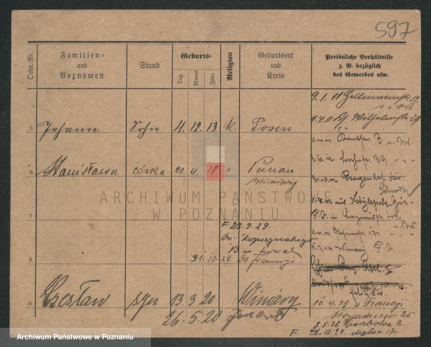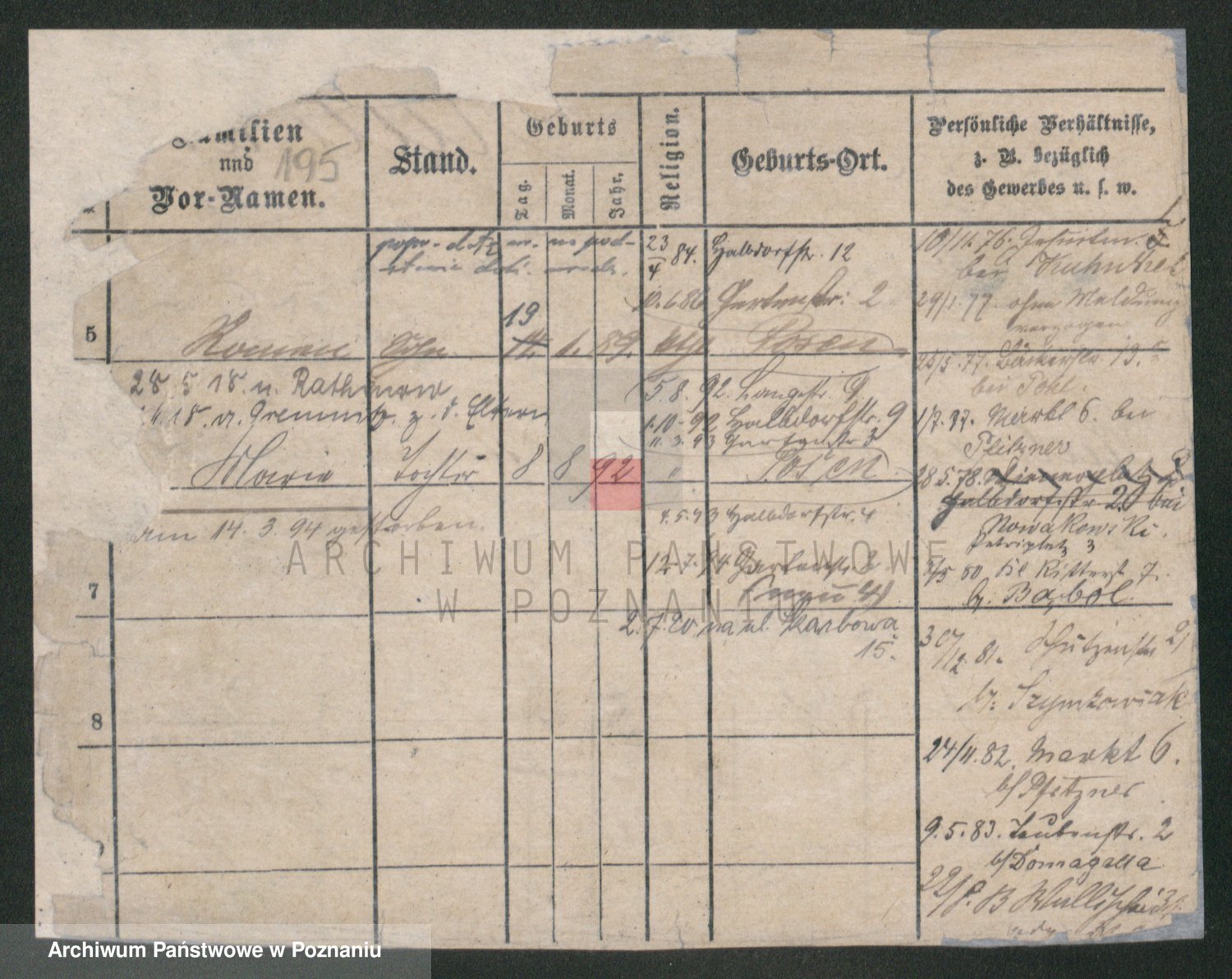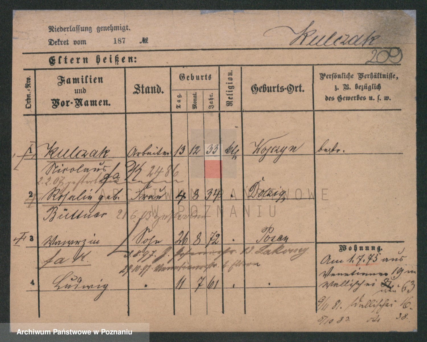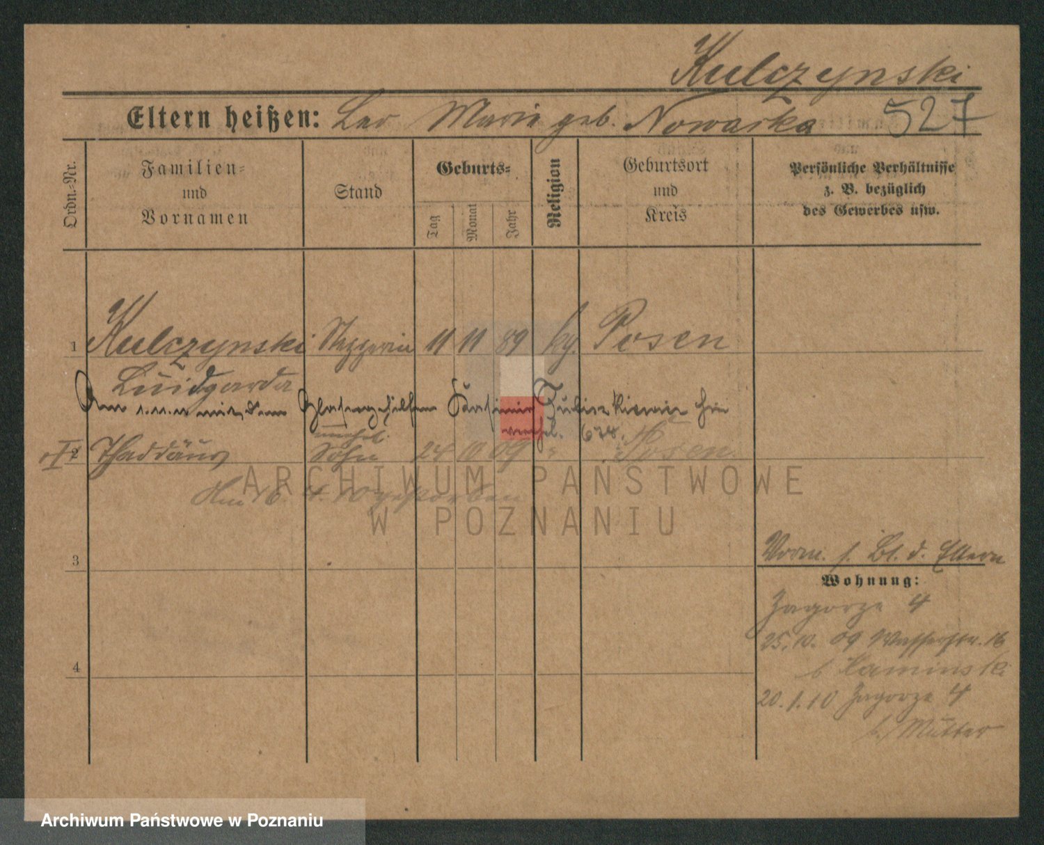 Podgląd karty osobowej dostępny jest po kliknięciu na nazwisko lub ikonkę karty. Można dokonywać powiększenia (ikony na górze) lub przechodzić między kolejnymi skanami (strzałki po bokach).