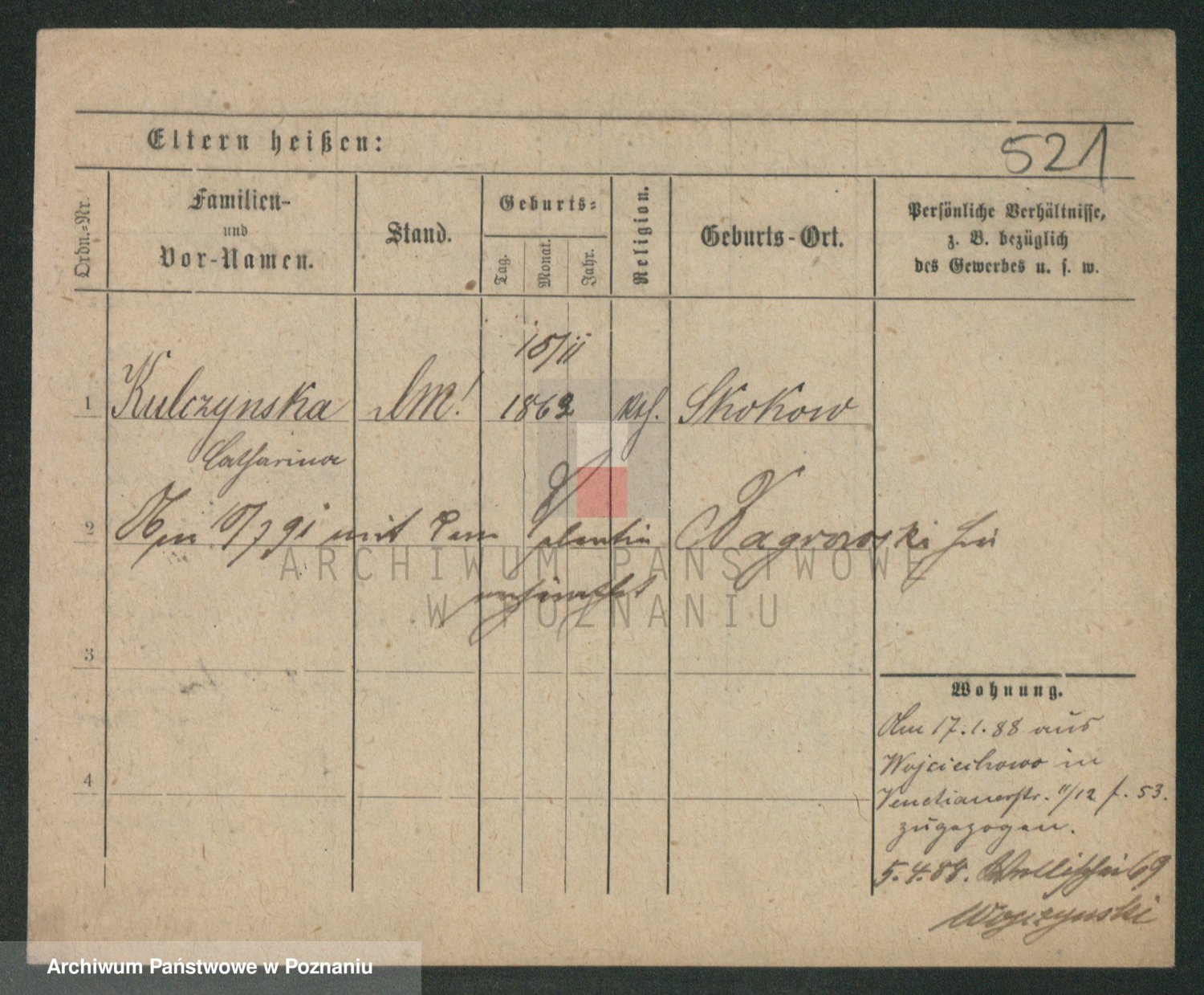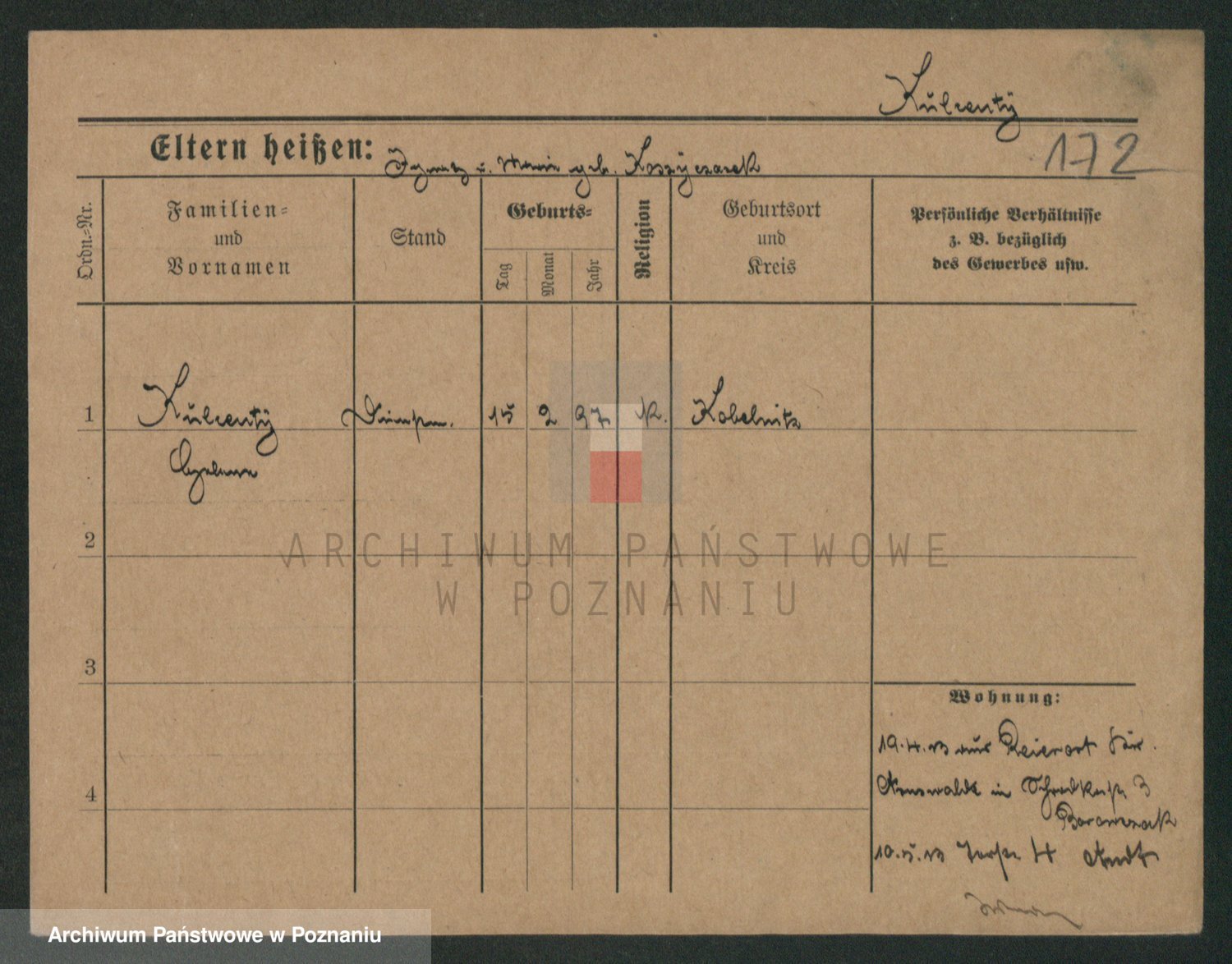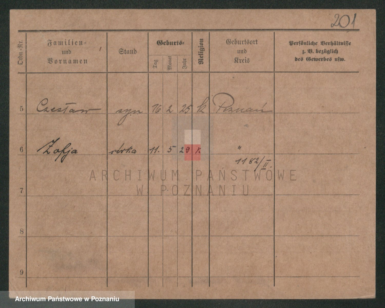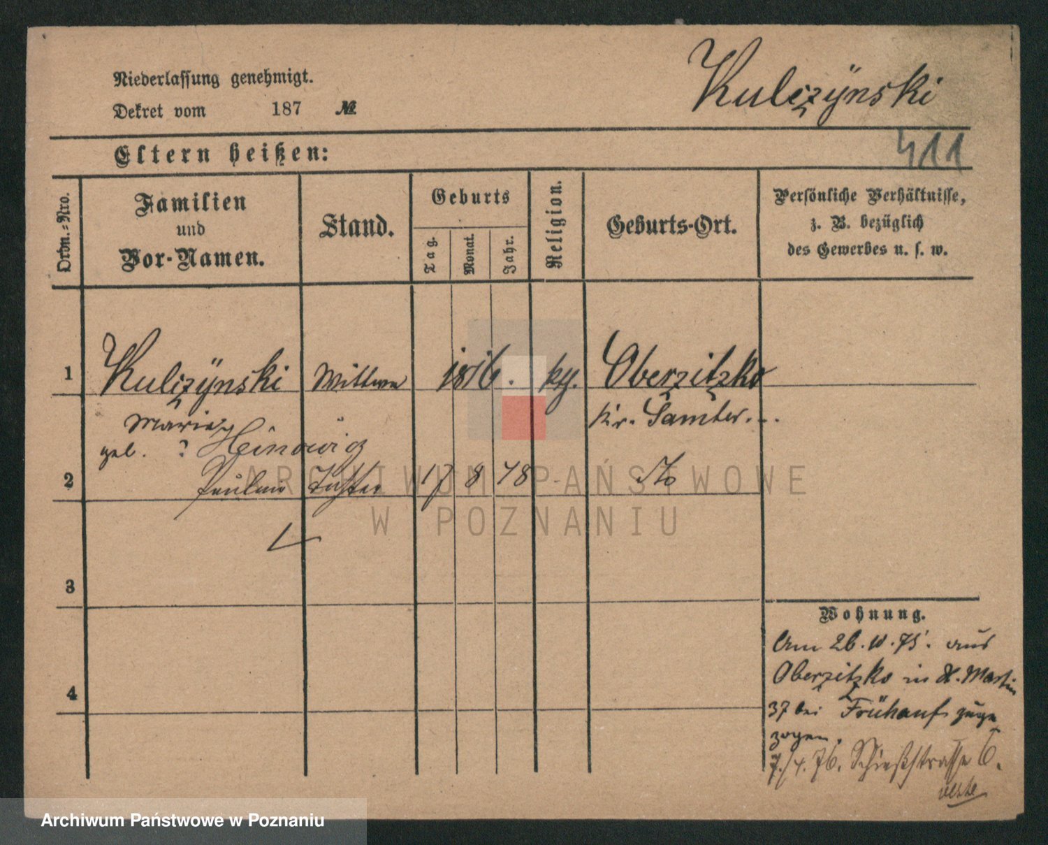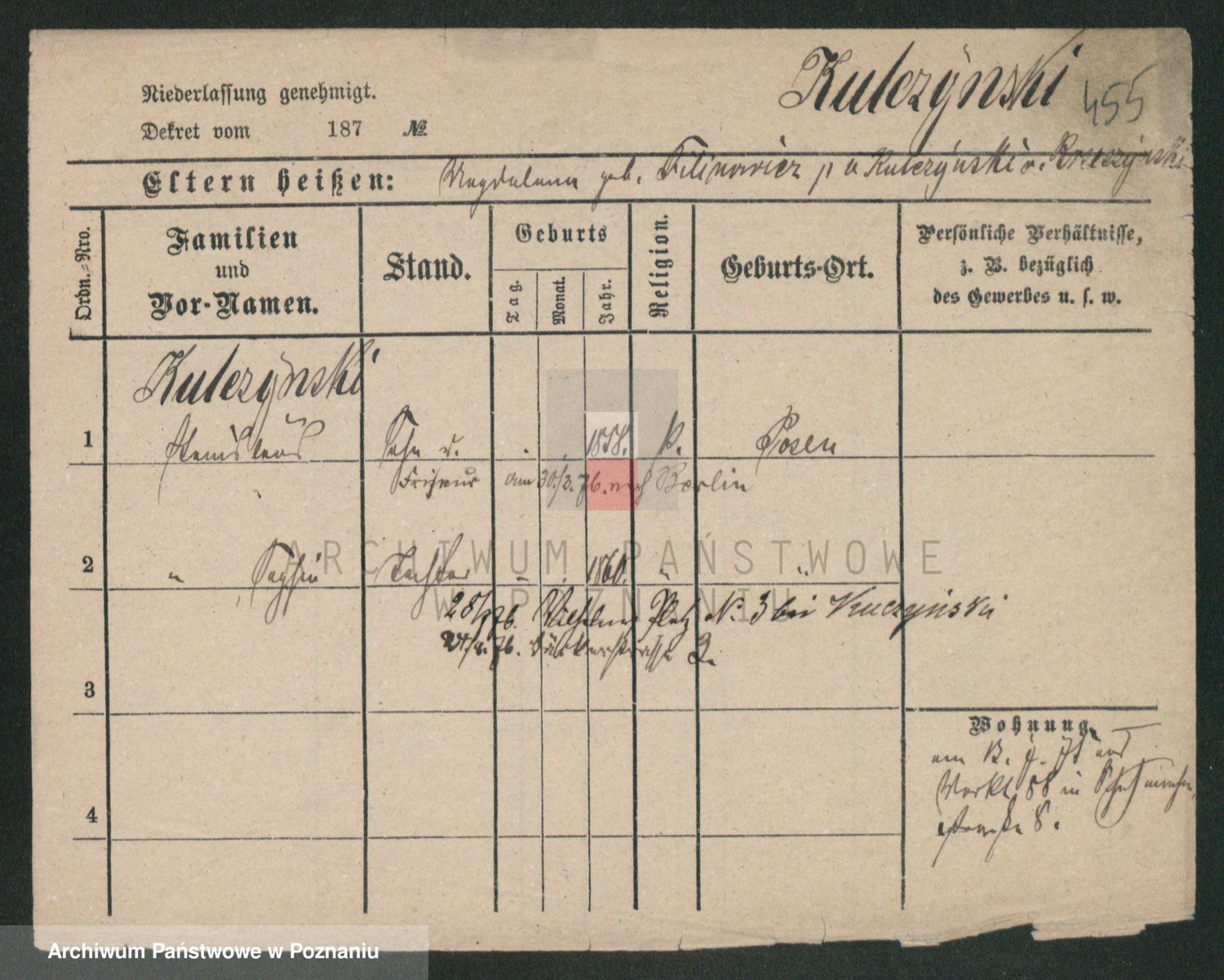 Podgląd karty osobowej dostępny jest po kliknięciu na nazwisko lub ikonkę karty. Można dokonywać powiększenia (ikony na górze) lub przechodzić między kolejnymi skanami (strzałki po bokach).