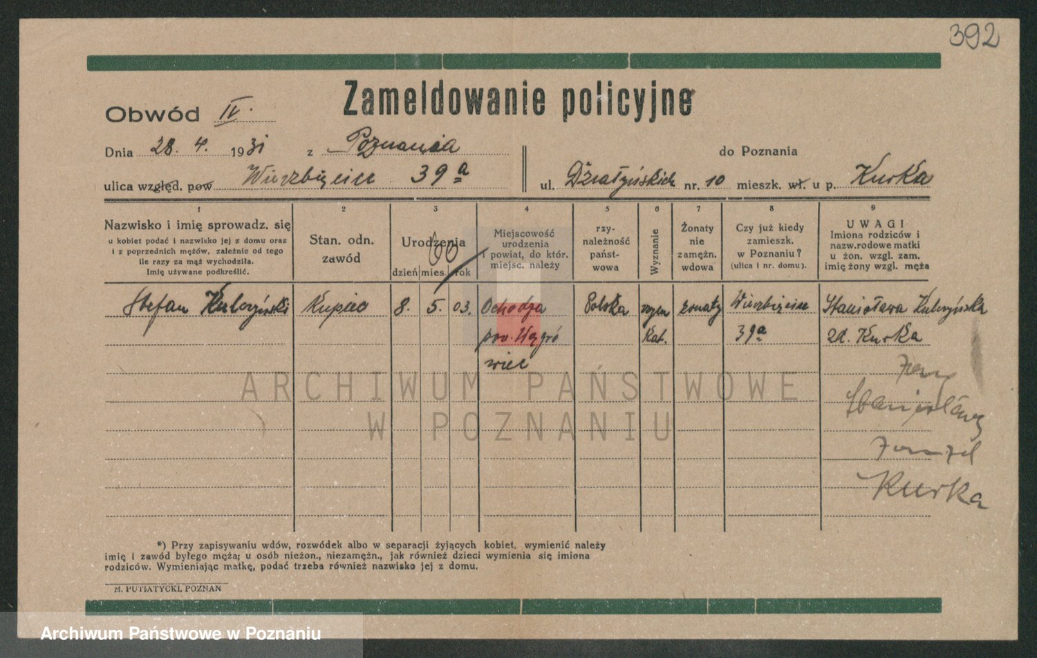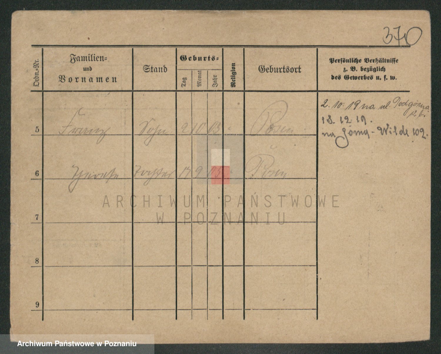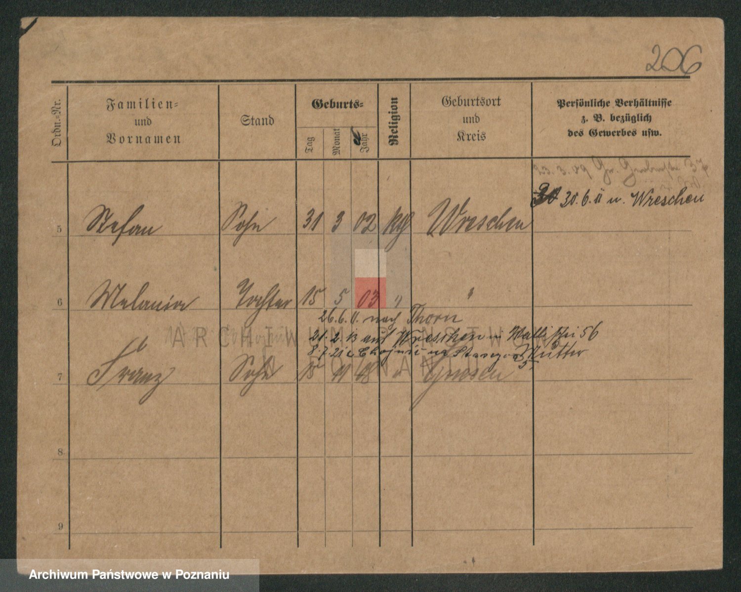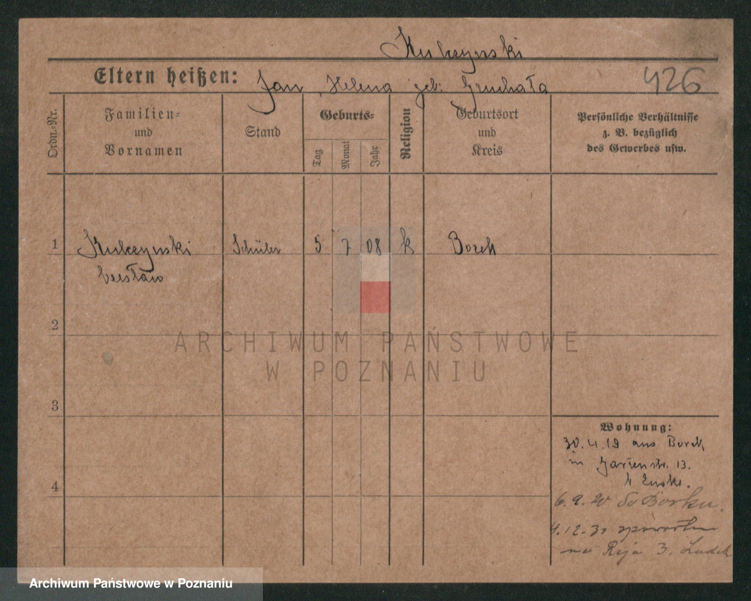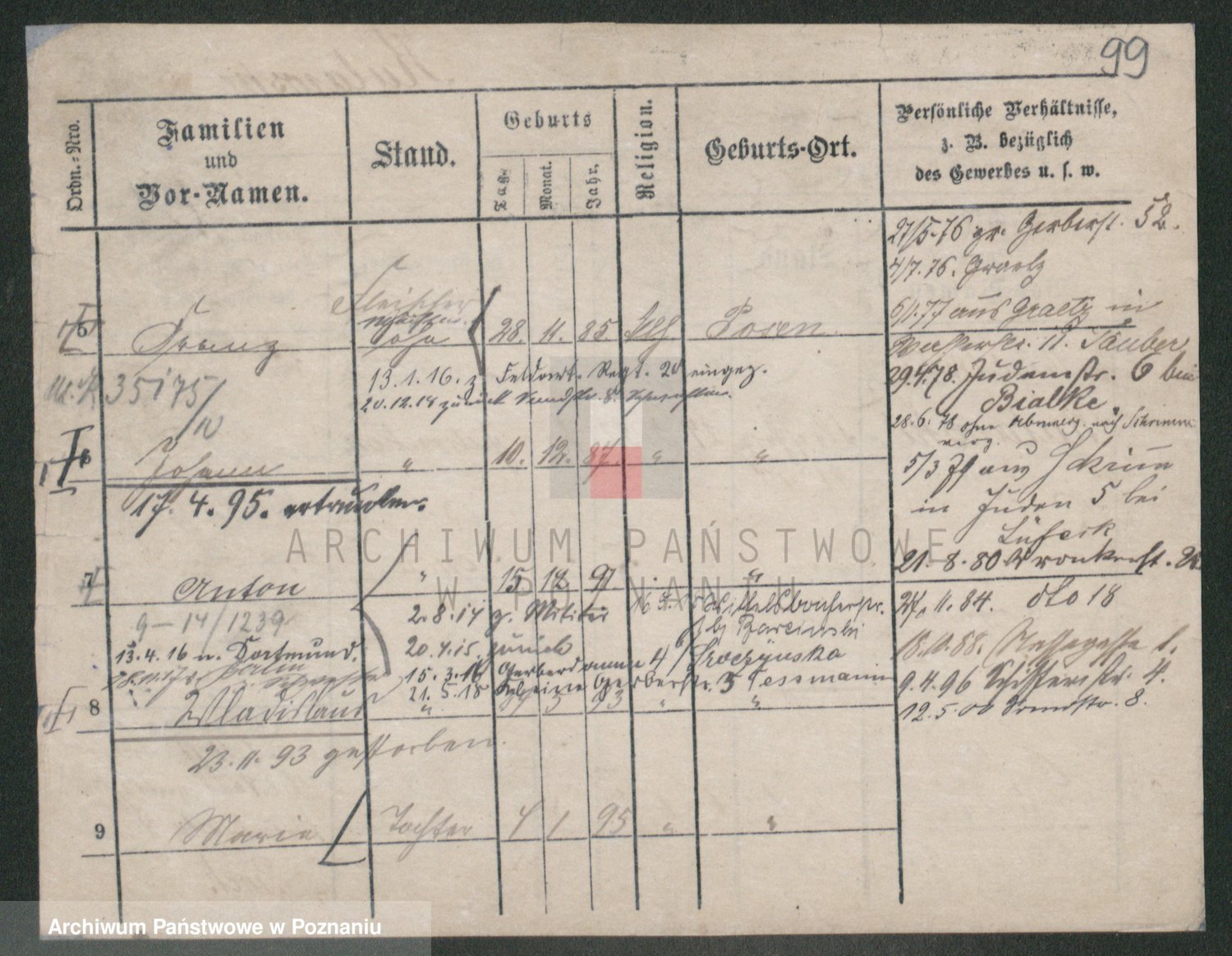 Podgląd karty osobowej dostępny jest po kliknięciu na nazwisko lub ikonkę karty. Można dokonywać powiększenia (ikony na górze) lub przechodzić między kolejnymi skanami (strzałki po bokach).