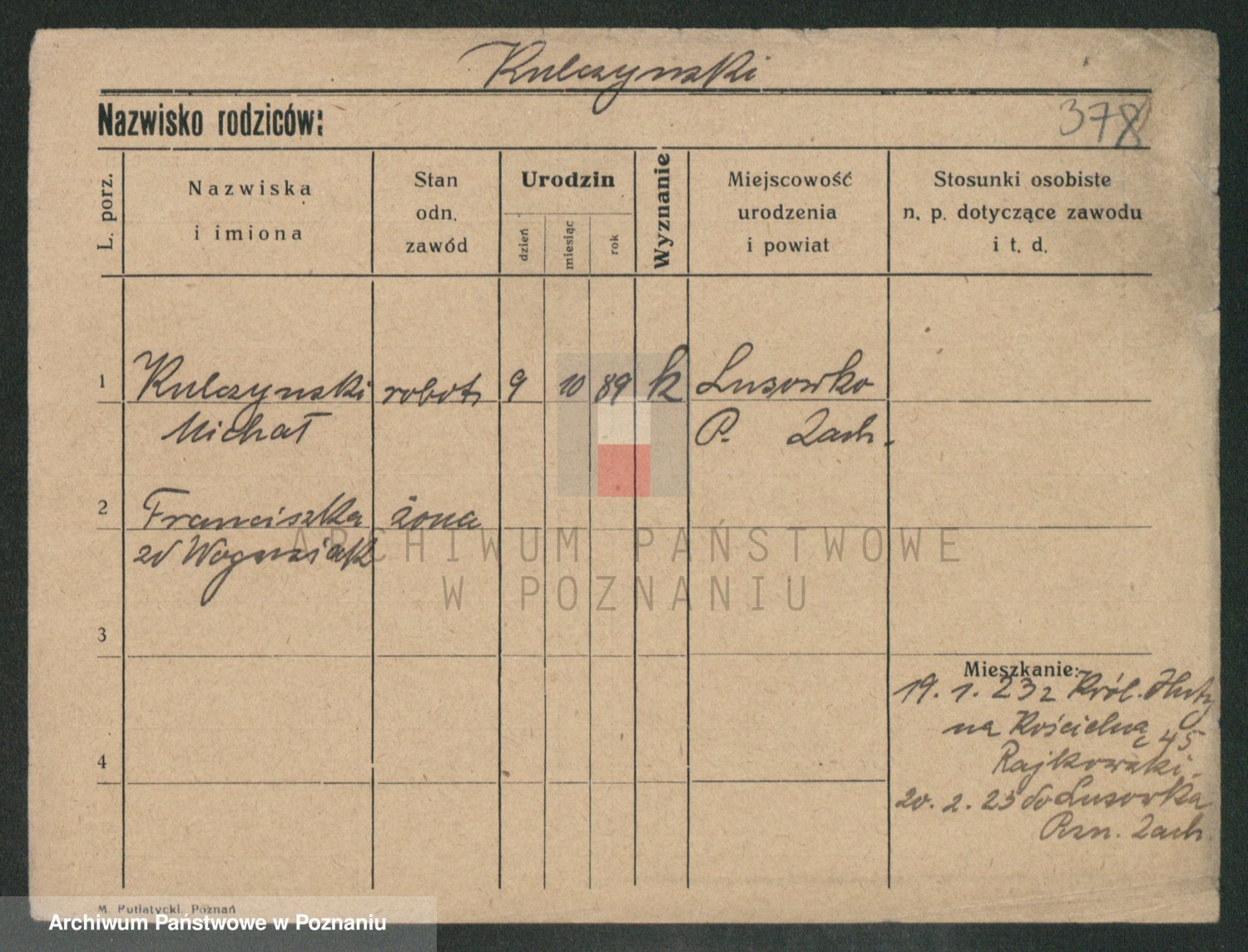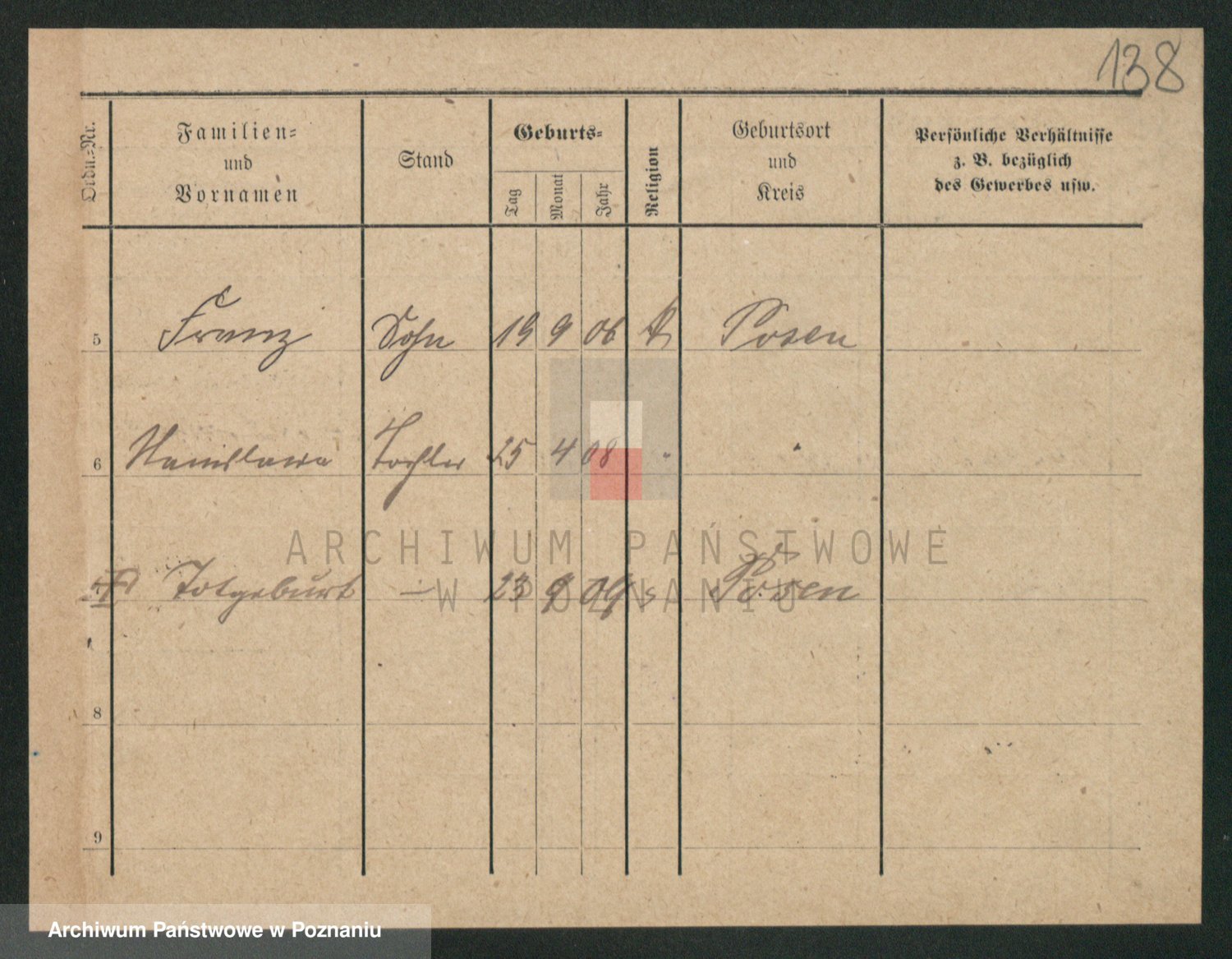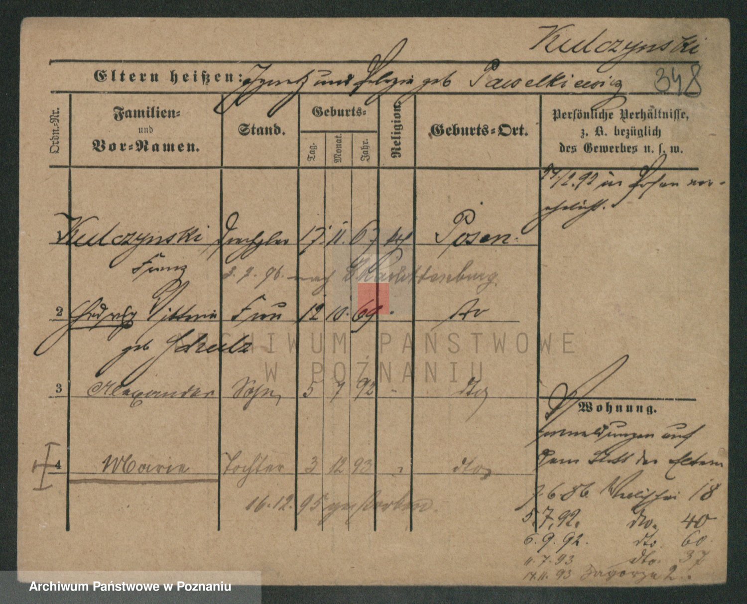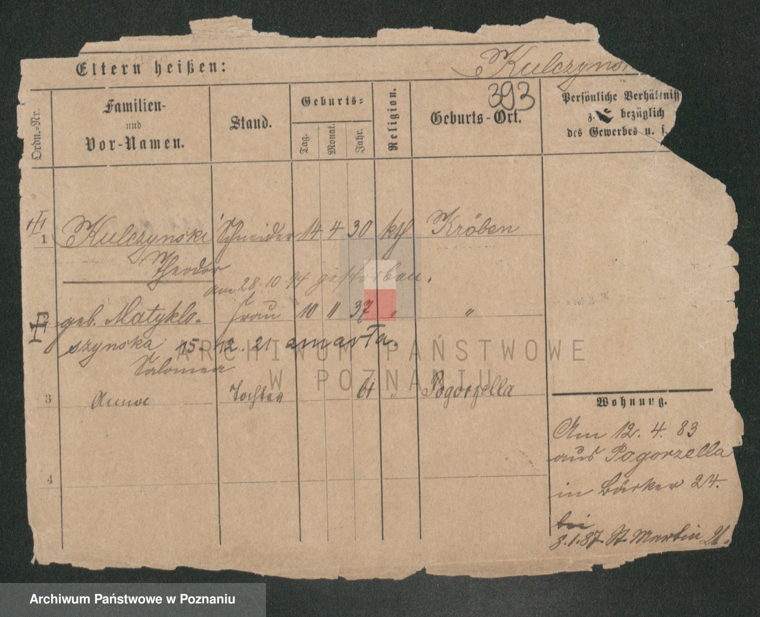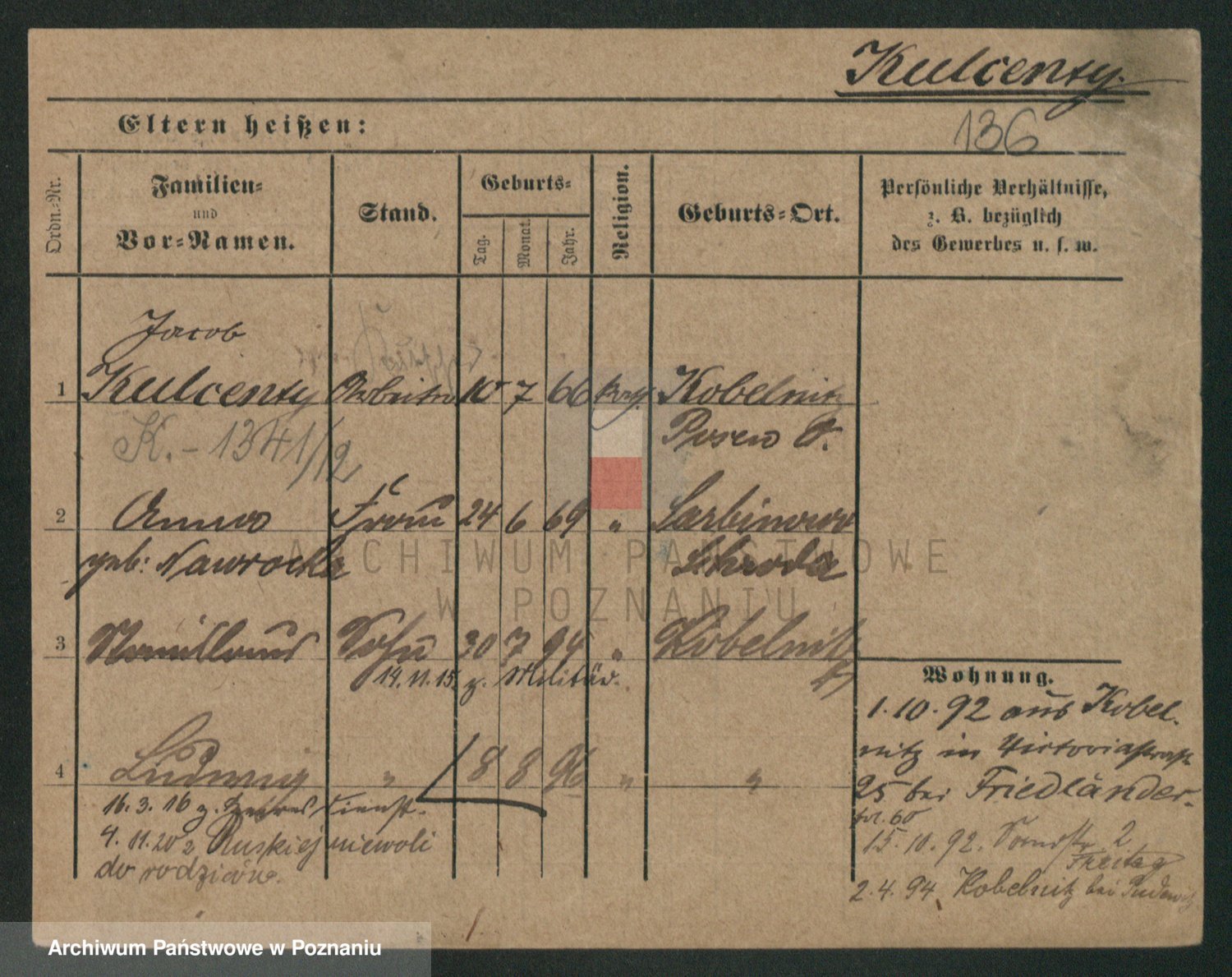 Podgląd karty osobowej dostępny jest po kliknięciu na nazwisko lub ikonkę karty. Można dokonywać powiększenia (ikony na górze) lub przechodzić między kolejnymi skanami (strzałki po bokach).