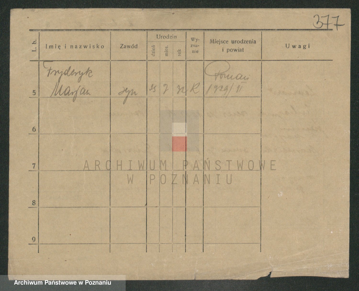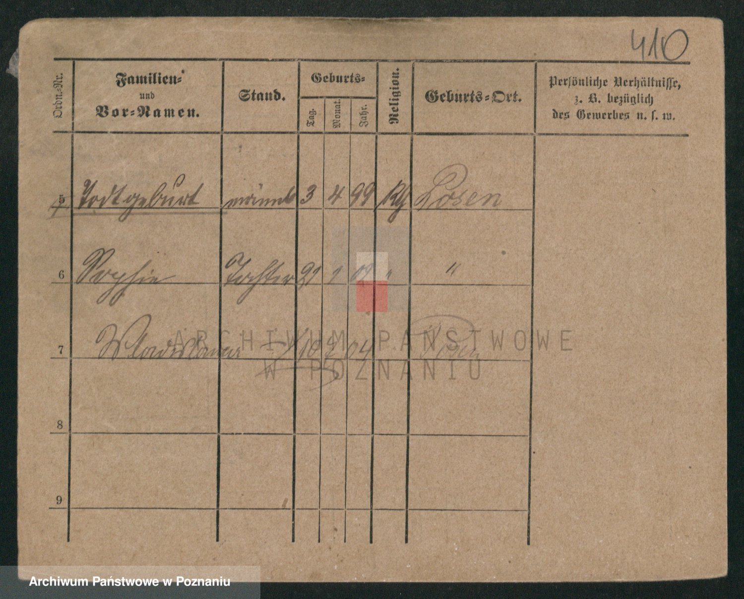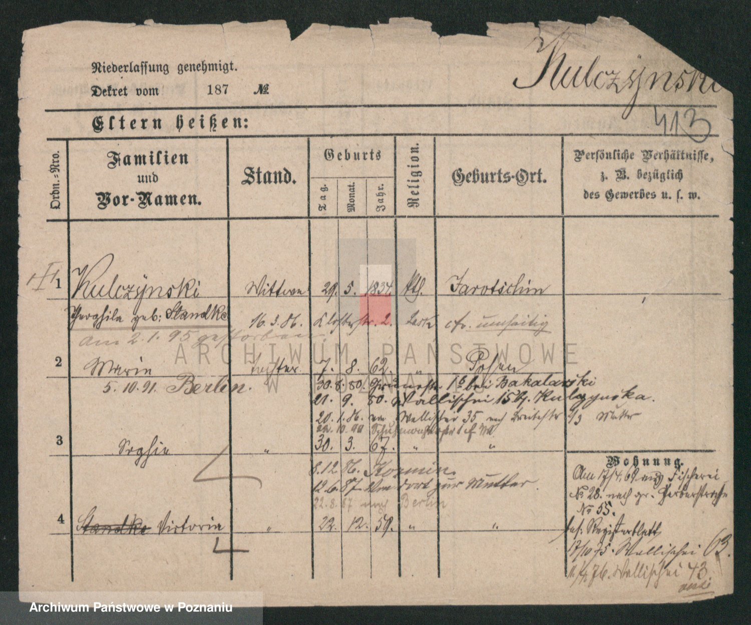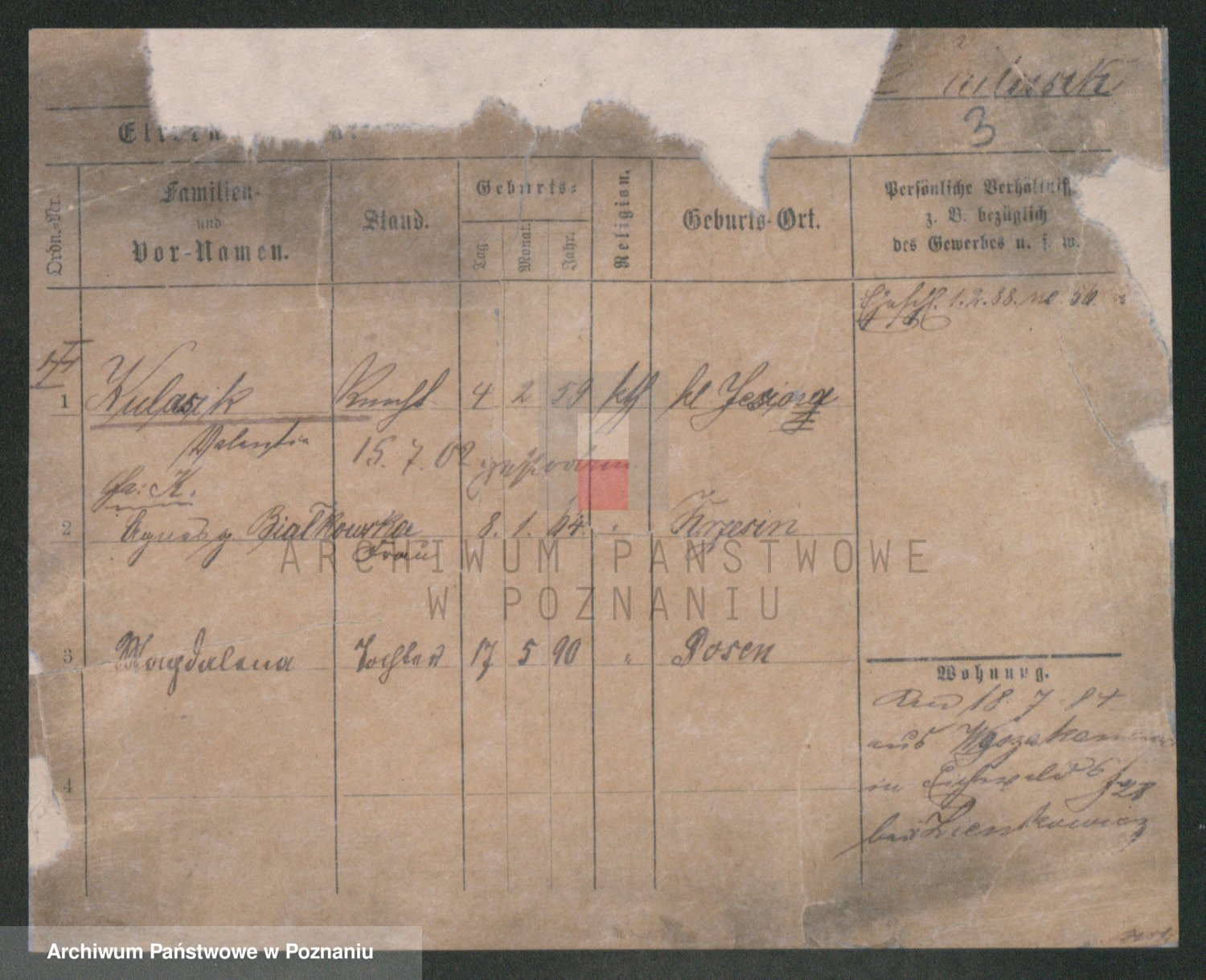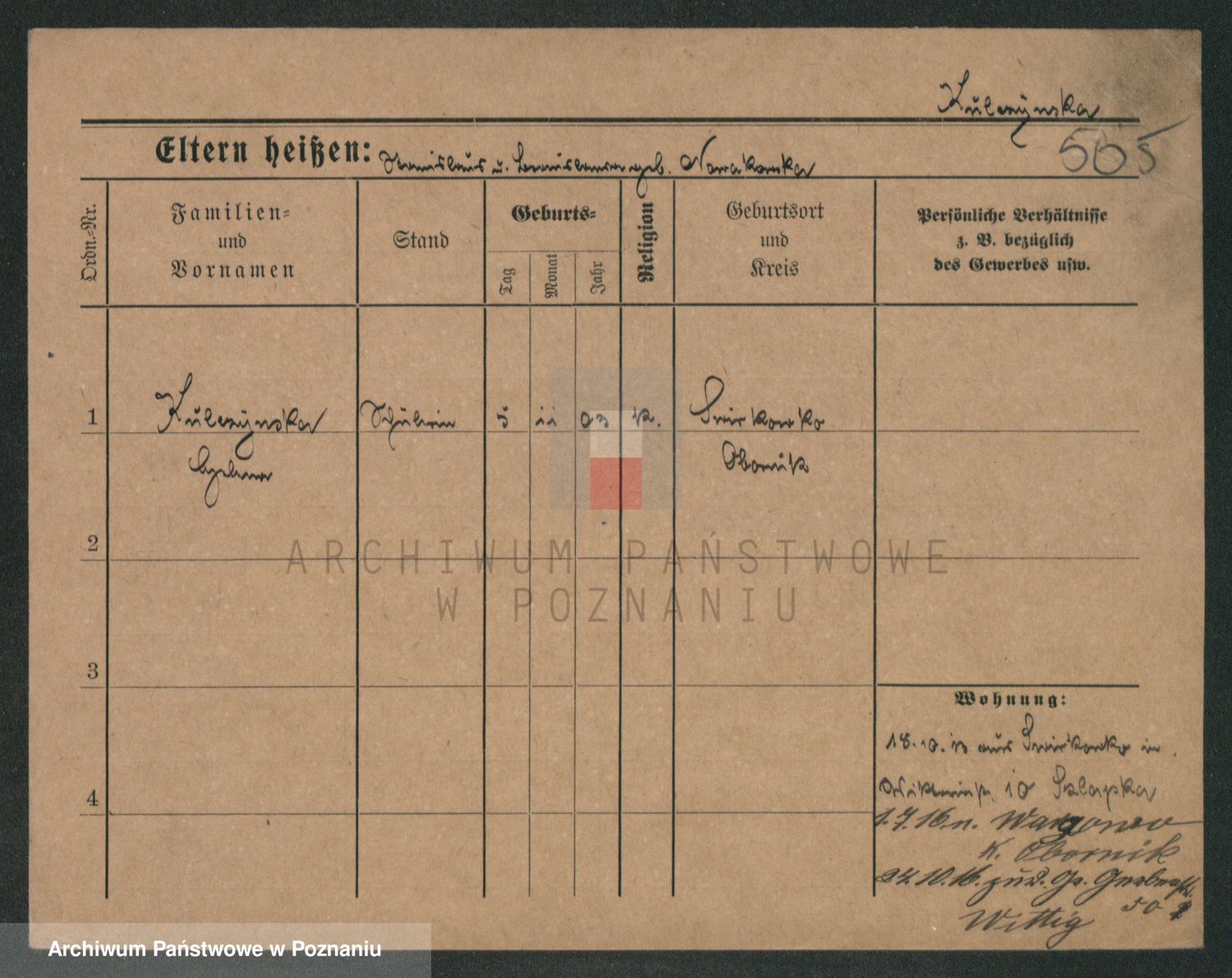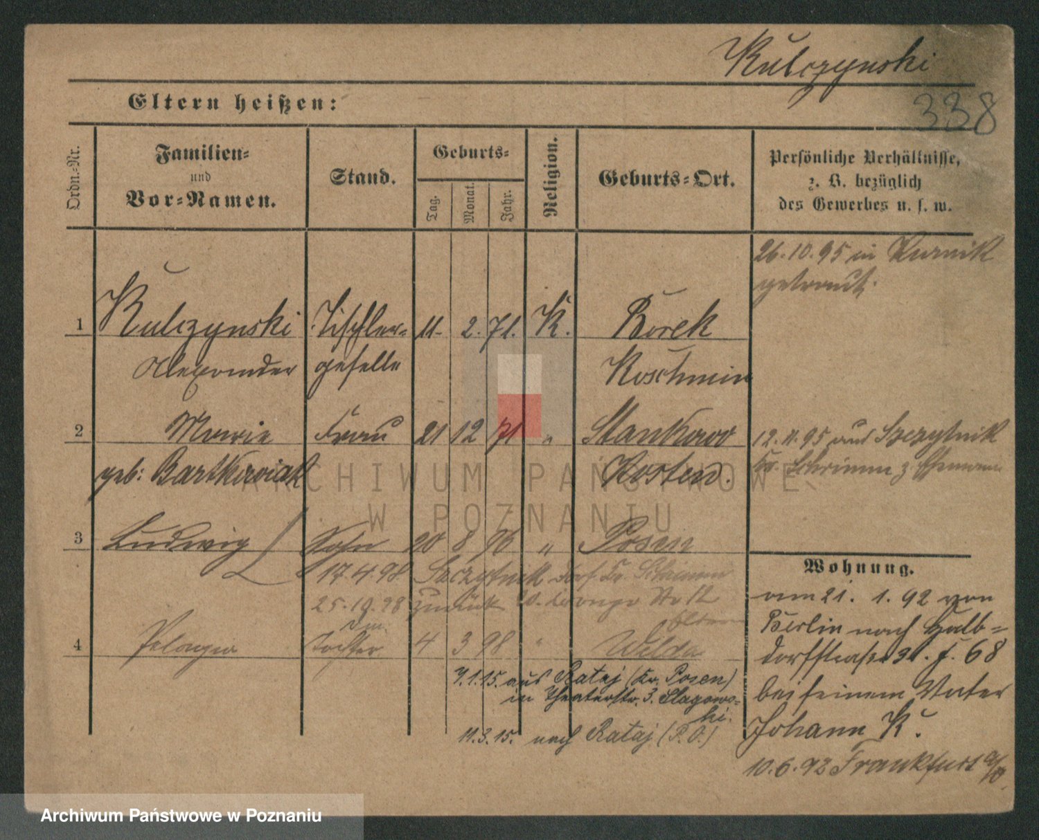 Podgląd karty osobowej dostępny jest po kliknięciu na nazwisko lub ikonkę karty. Można dokonywać powiększenia (ikony na górze) lub przechodzić między kolejnymi skanami (strzałki po bokach).