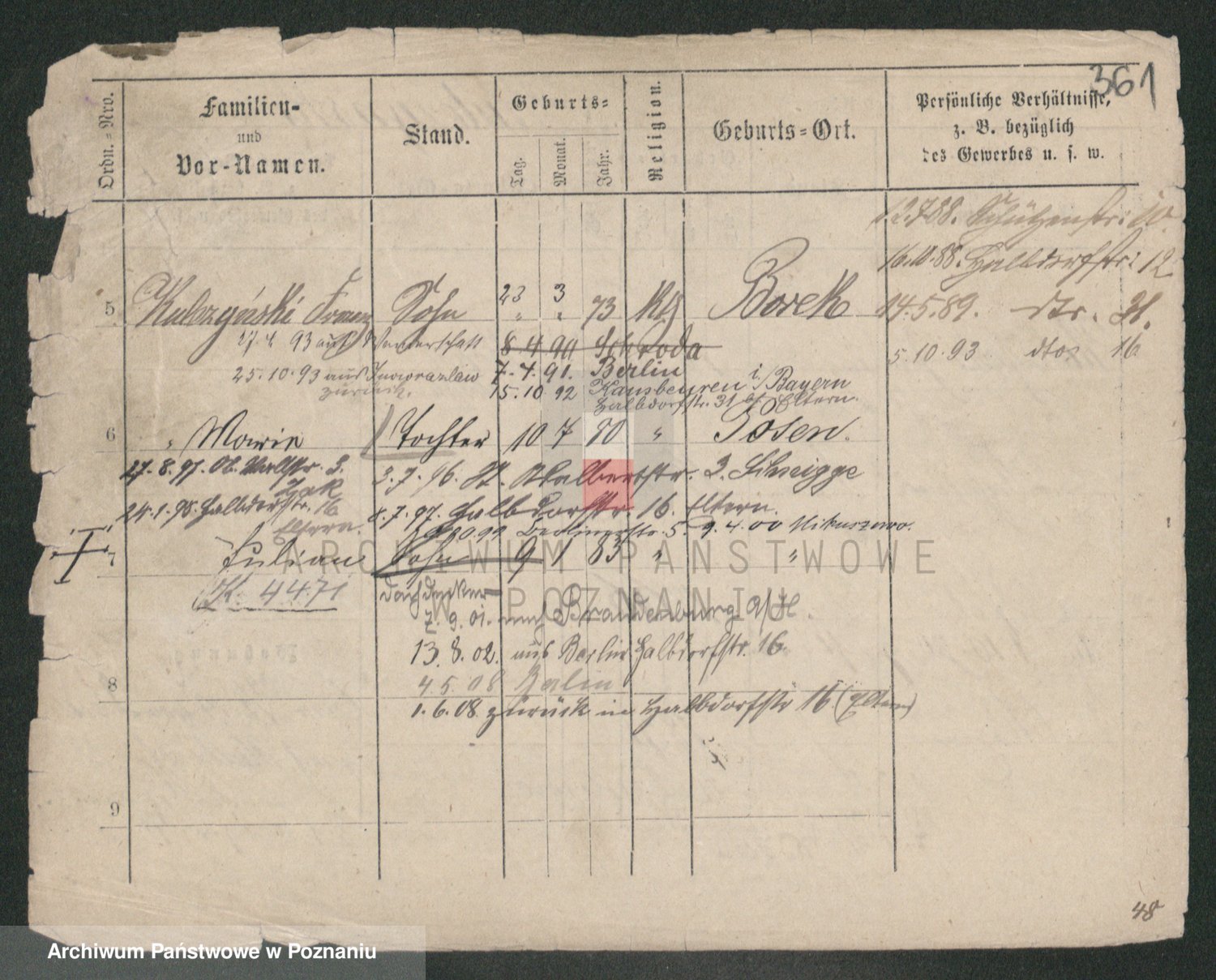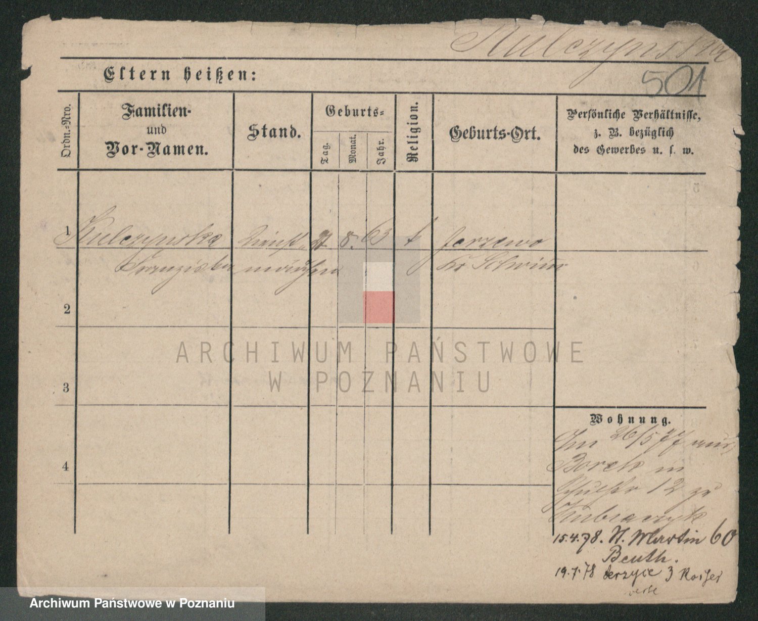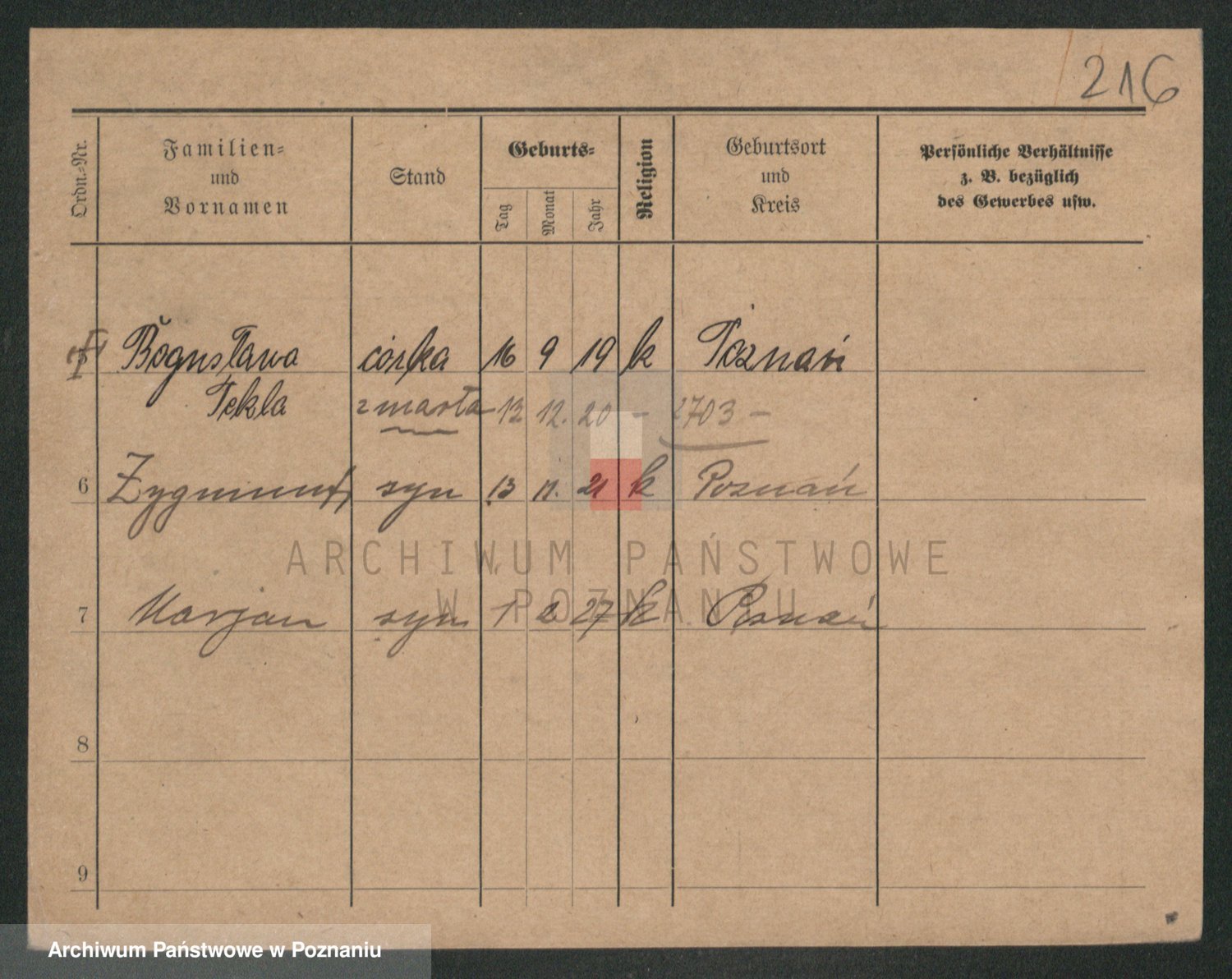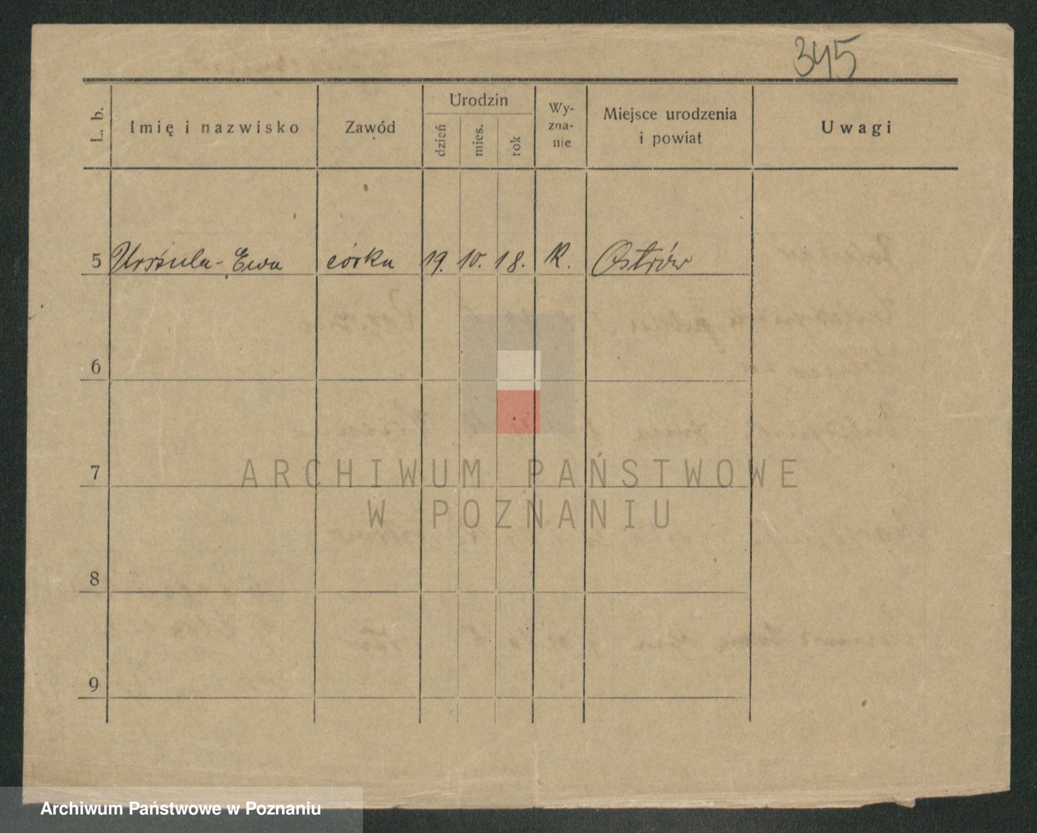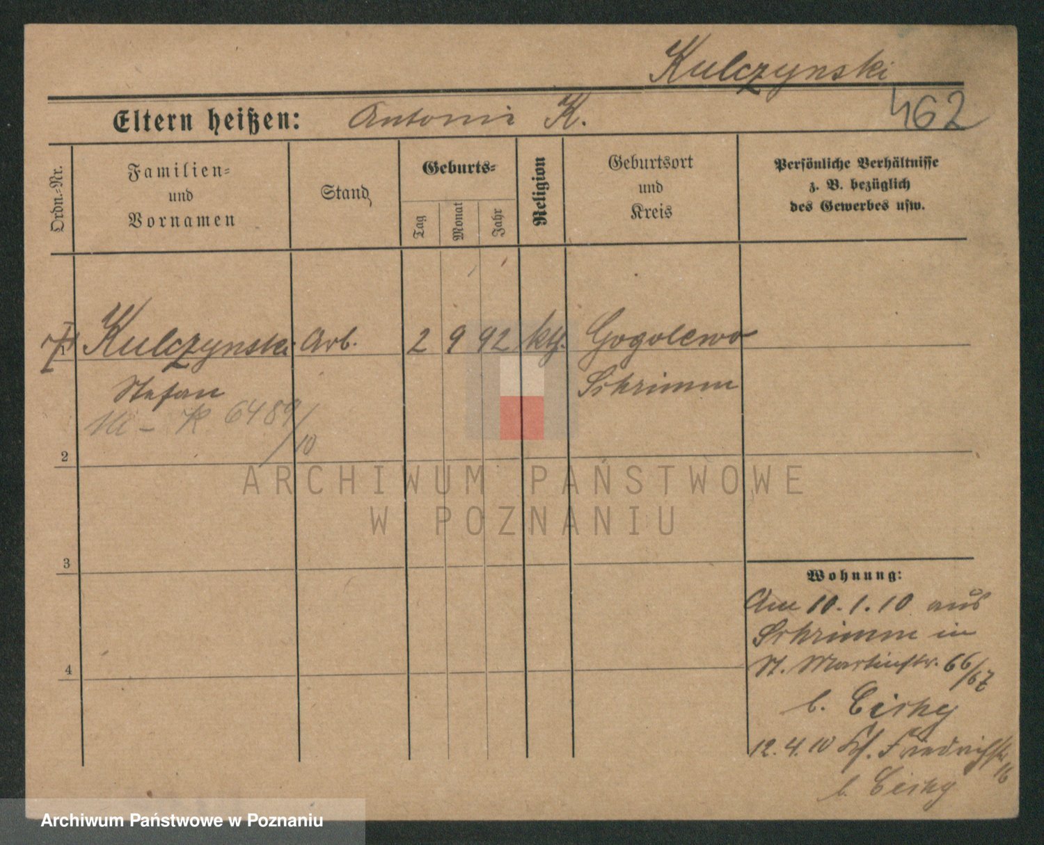Podgląd karty osobowej dostępny jest po kliknięciu na nazwisko lub ikonkę karty. Można dokonywać powiększenia (ikony na górze) lub przechodzić między kolejnymi skanami (strzałki po bokach).