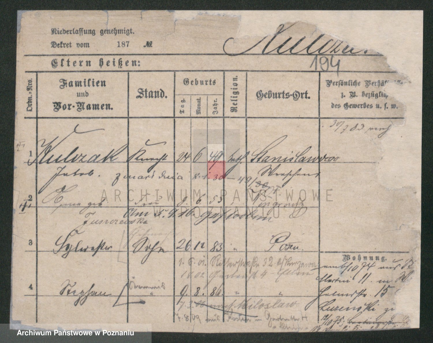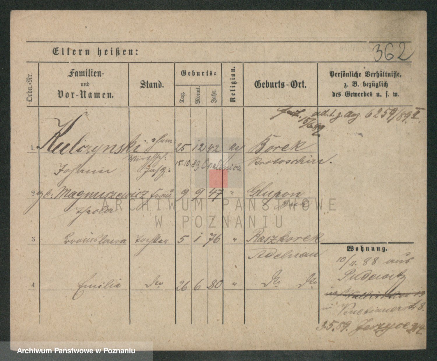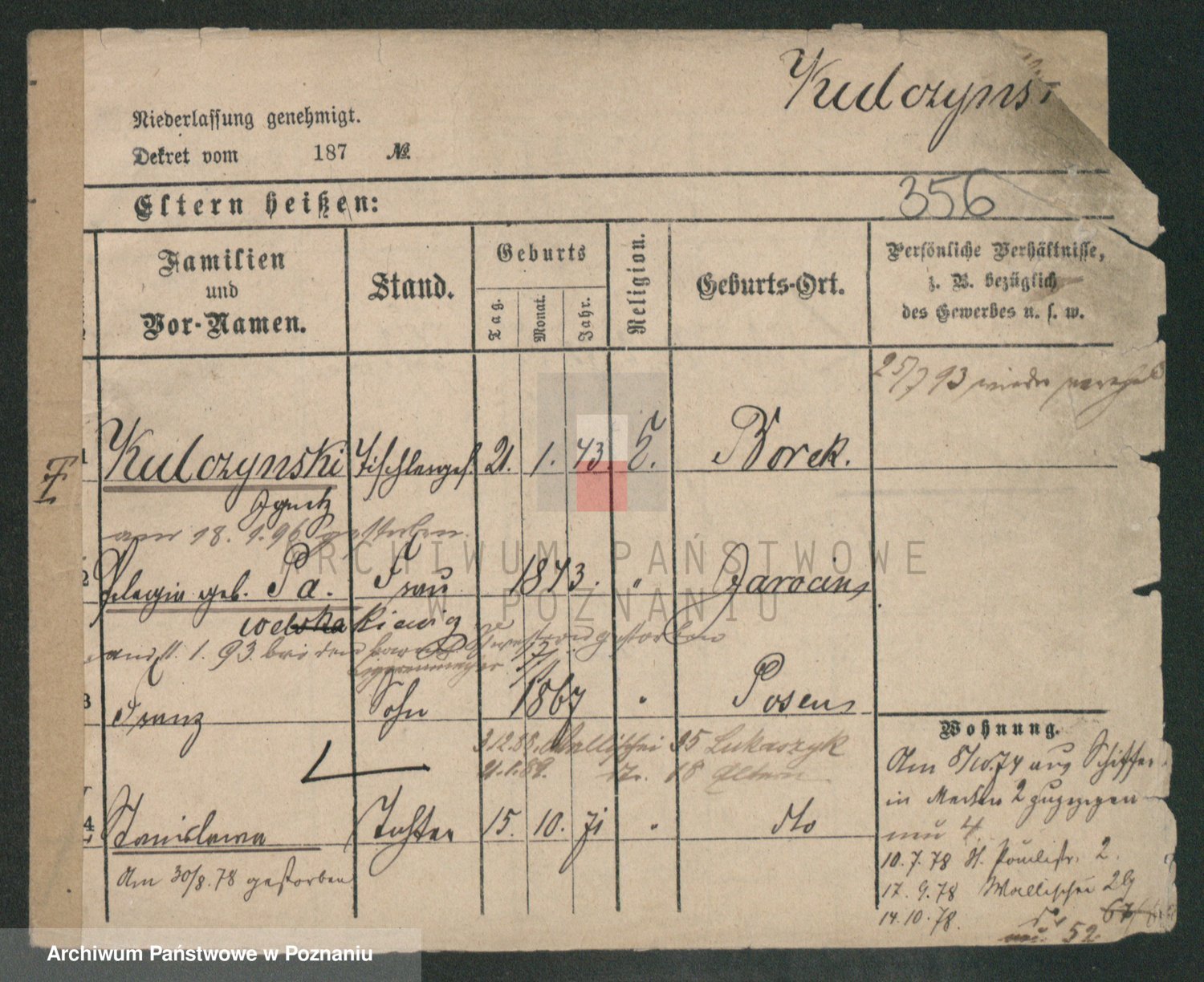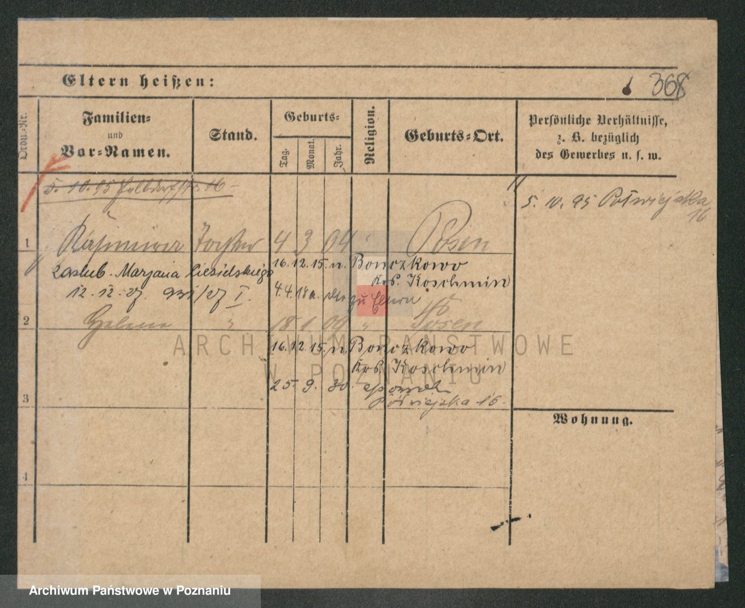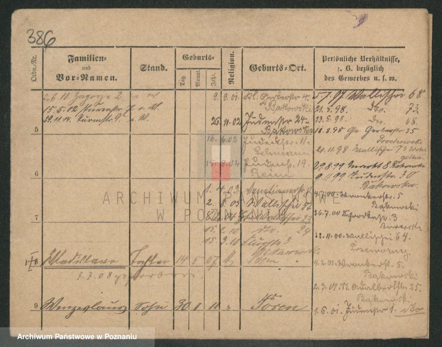 Podgląd karty osobowej dostępny jest po kliknięciu na nazwisko lub ikonkę karty. Można dokonywać powiększenia (ikony na górze) lub przechodzić między kolejnymi skanami (strzałki po bokach).