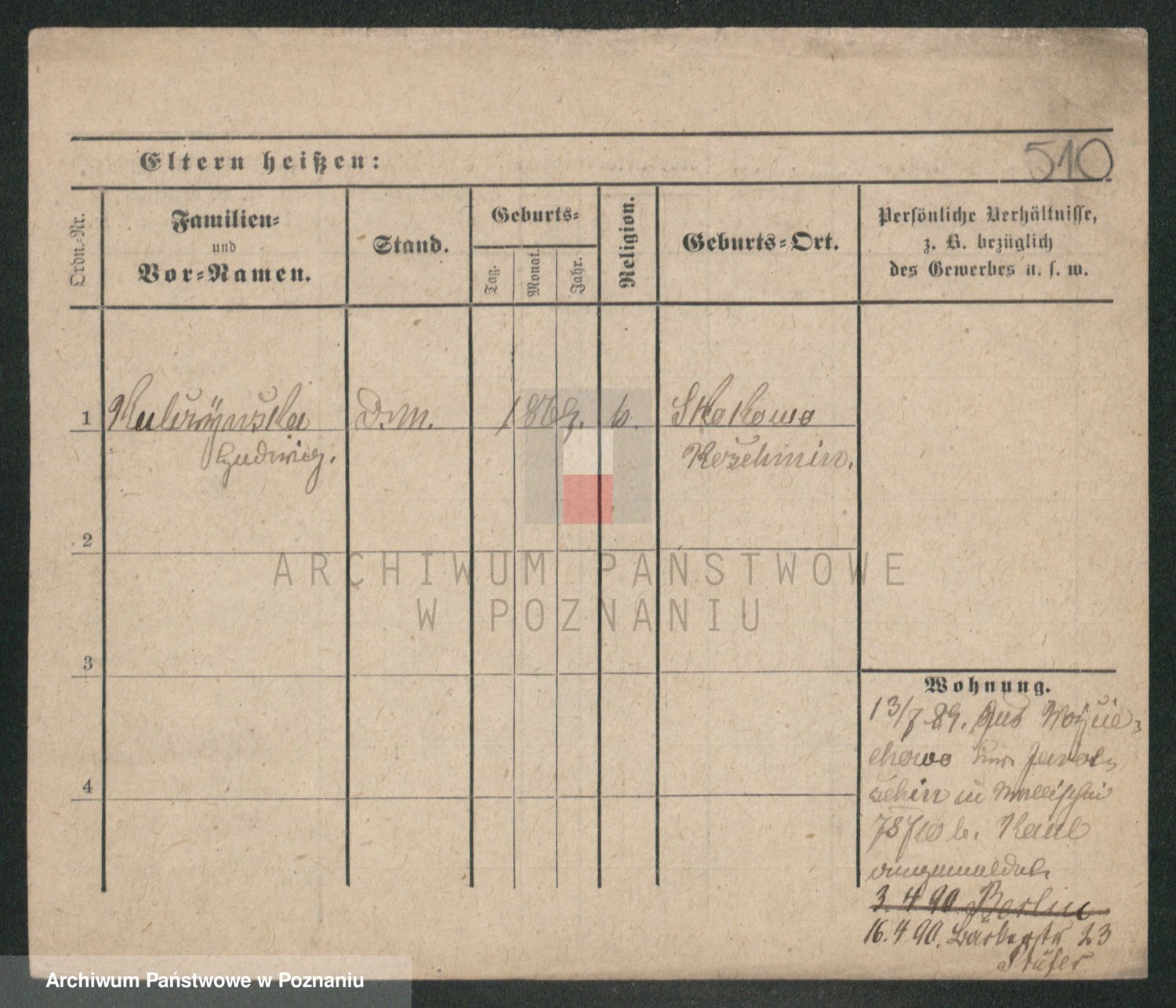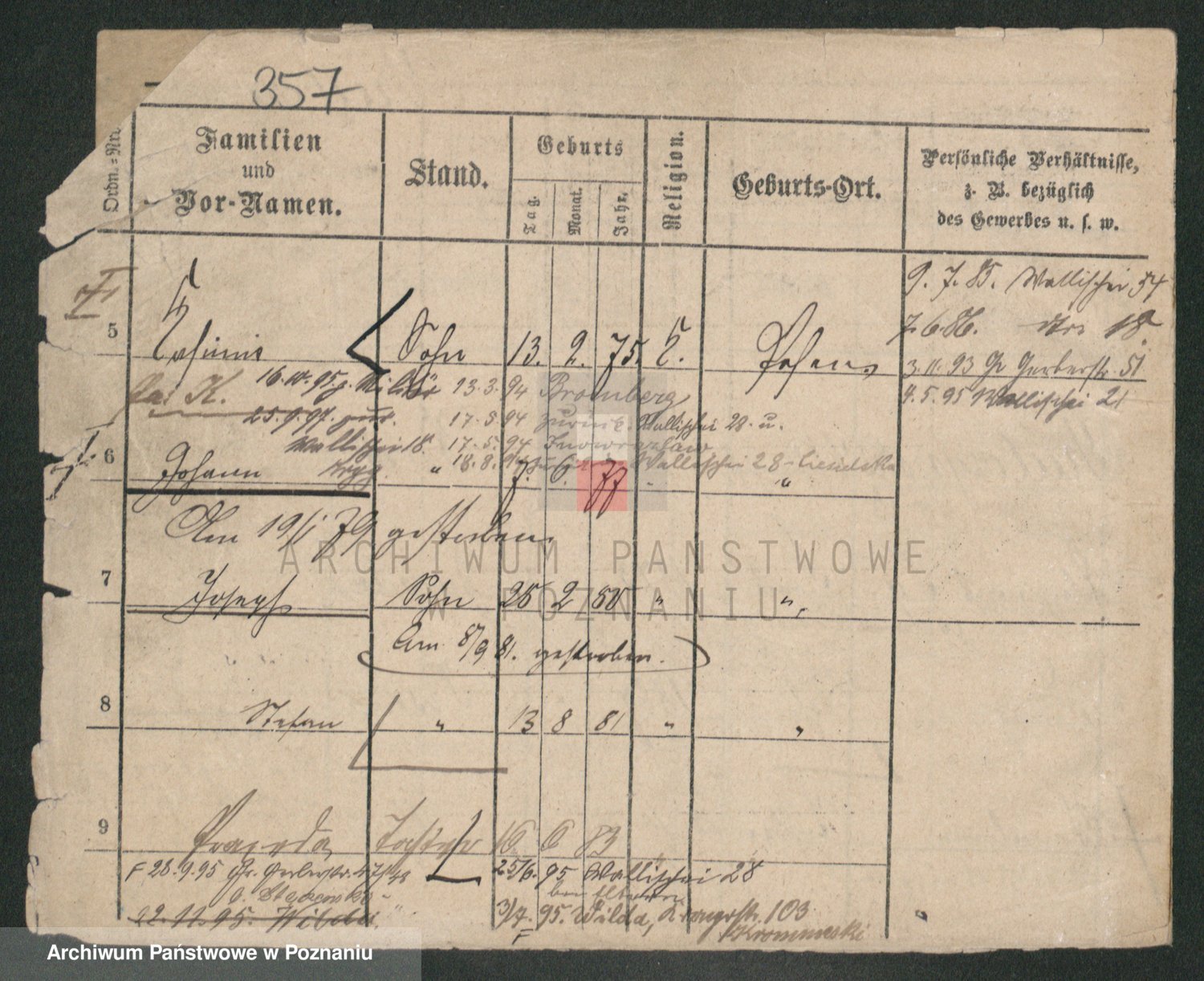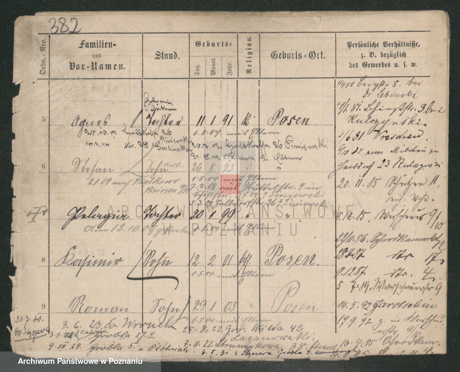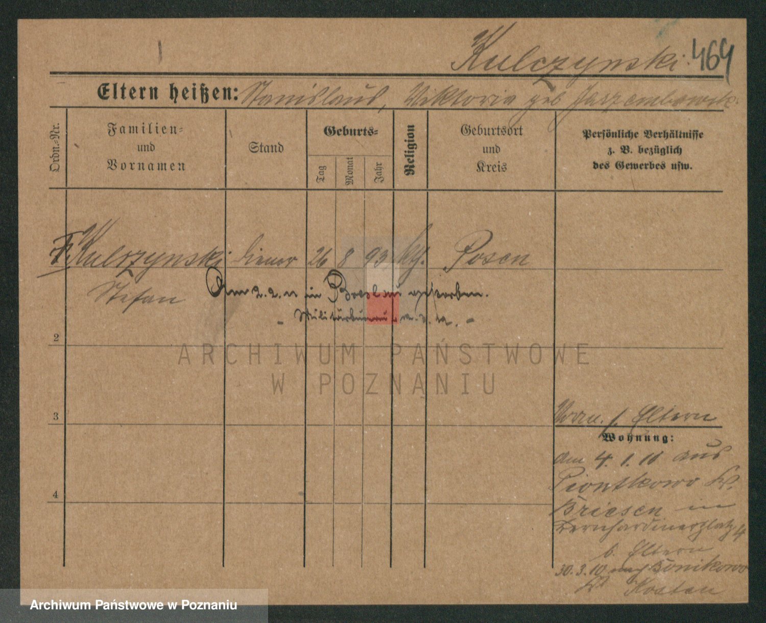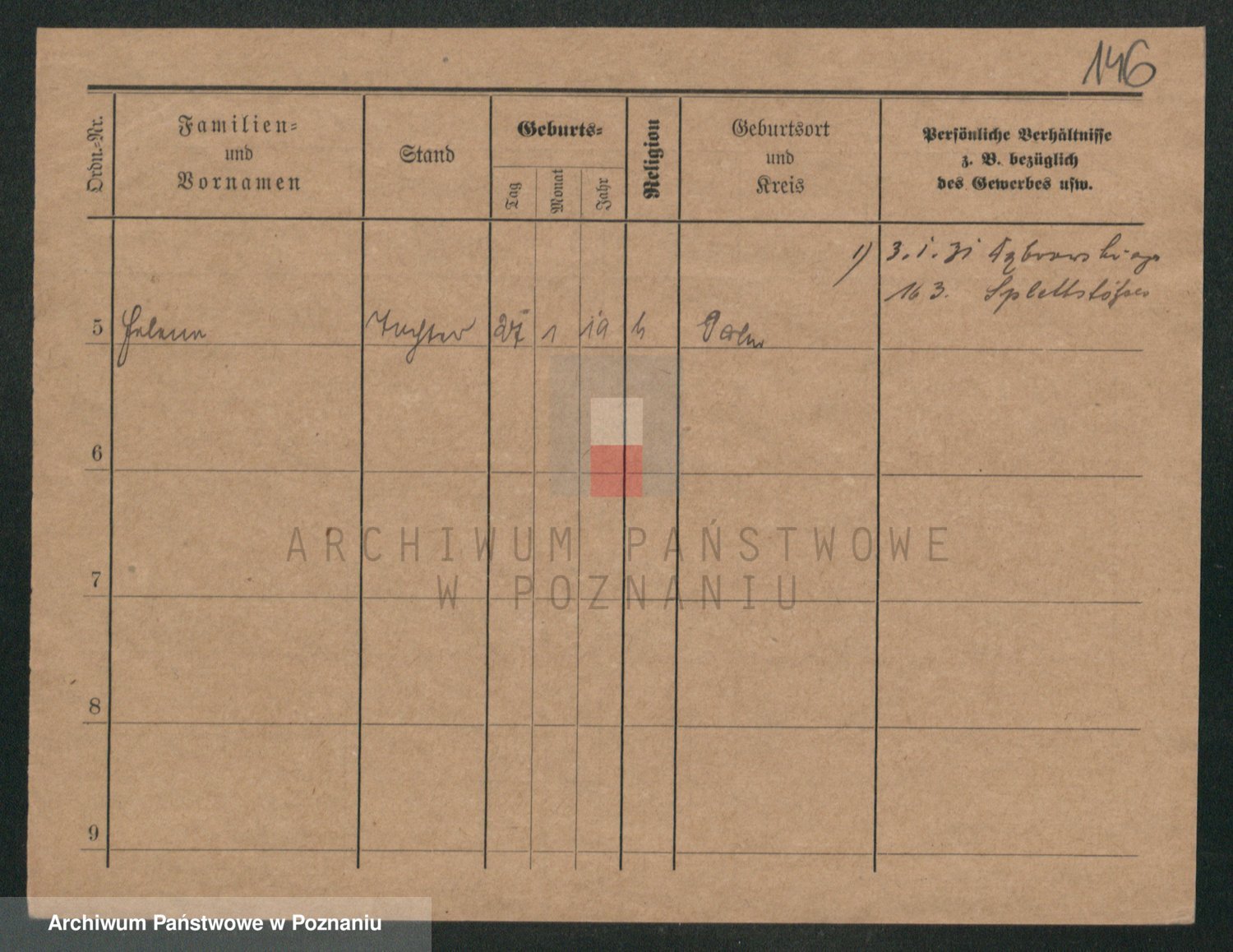Podgląd karty osobowej dostępny jest po kliknięciu na nazwisko lub ikonkę karty. Można dokonywać powiększenia (ikony na górze) lub przechodzić między kolejnymi skanami (strzałki po bokach).