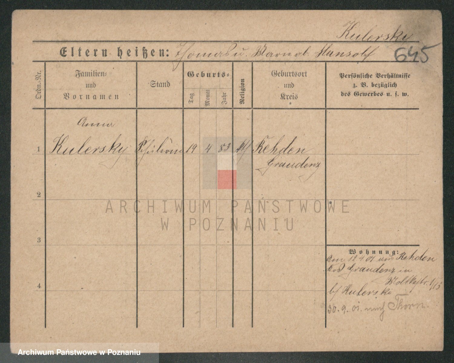 Kulerski z d. Petkewitz, Frieda