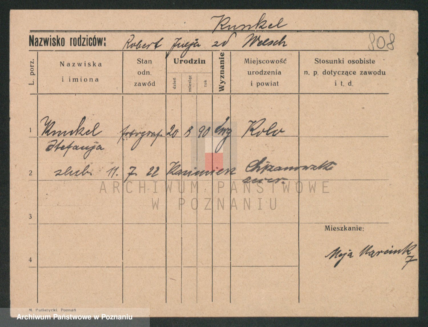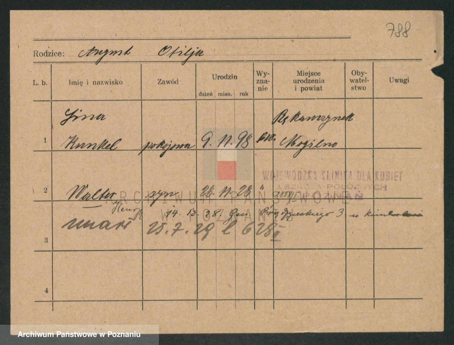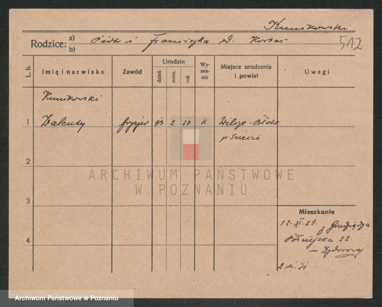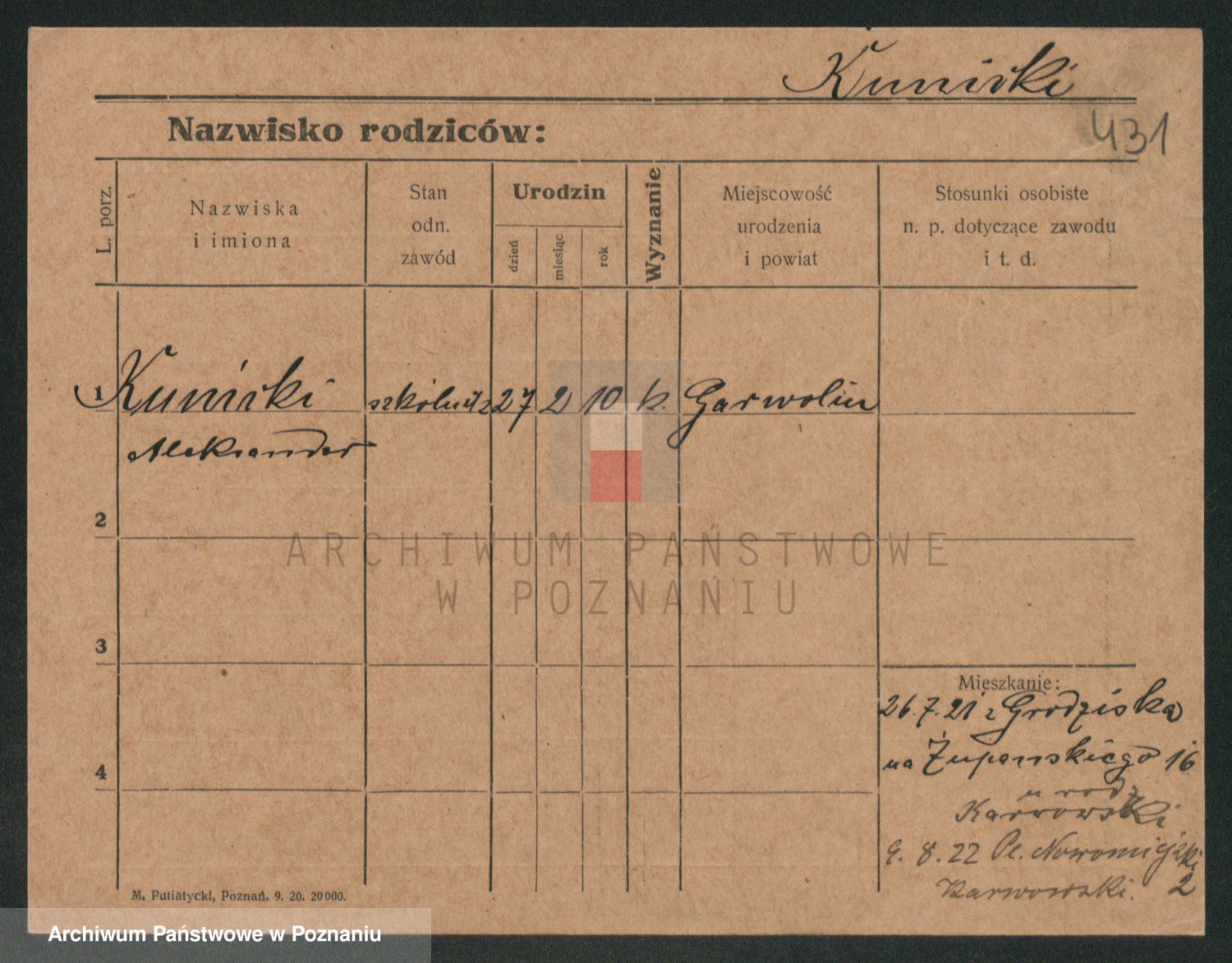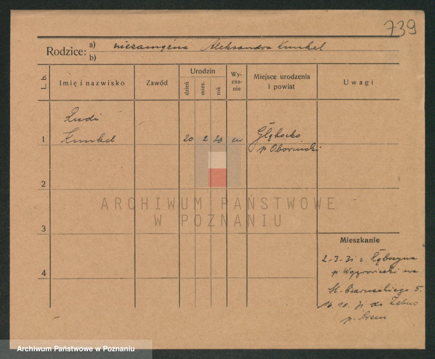 Podgląd karty osobowej dostępny jest po kliknięciu na nazwisko lub ikonkę karty. Można dokonywać powiększenia (ikony na górze) lub przechodzić między kolejnymi skanami (strzałki po bokach).
