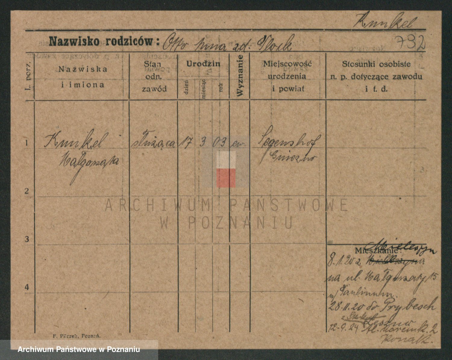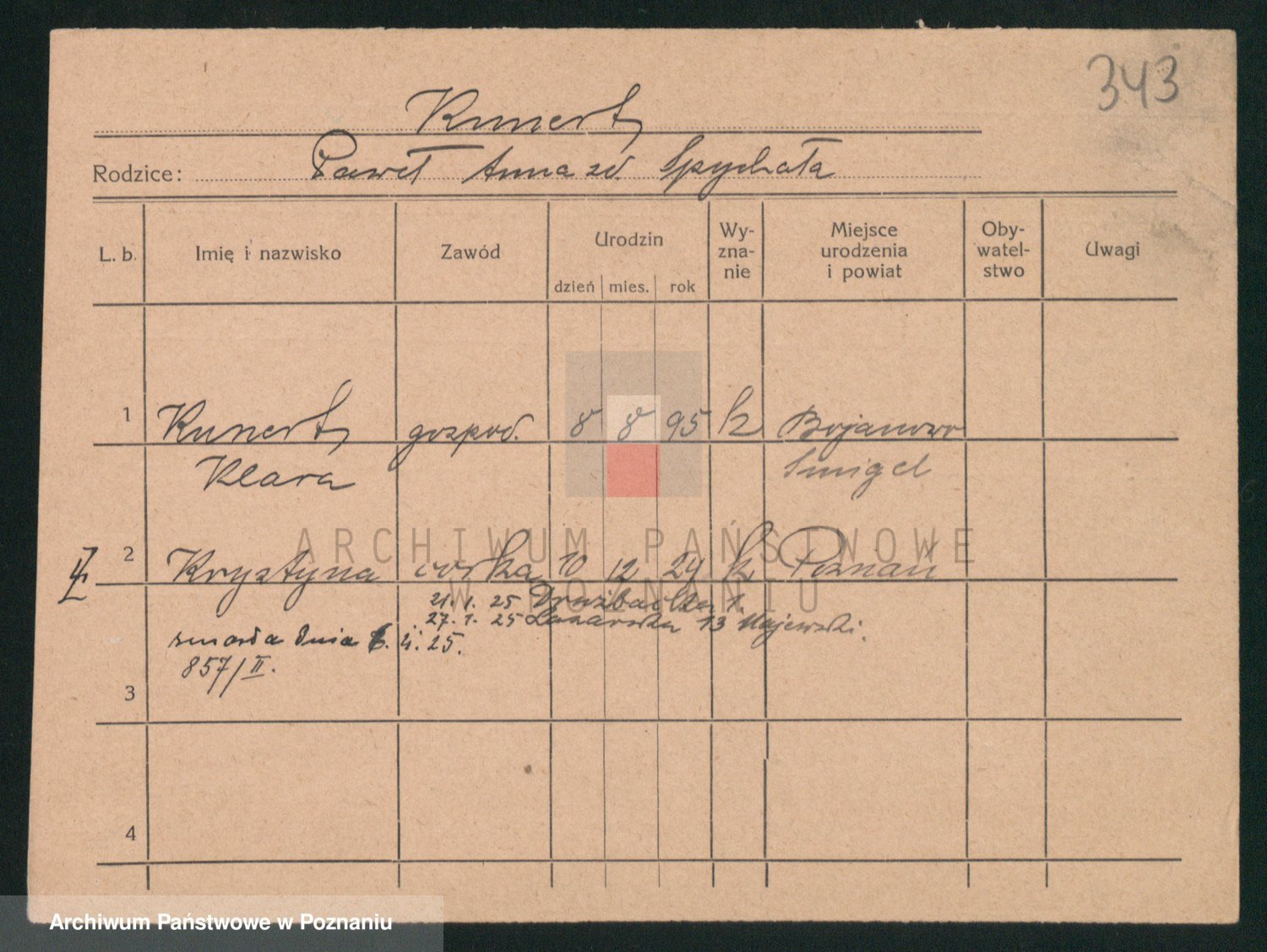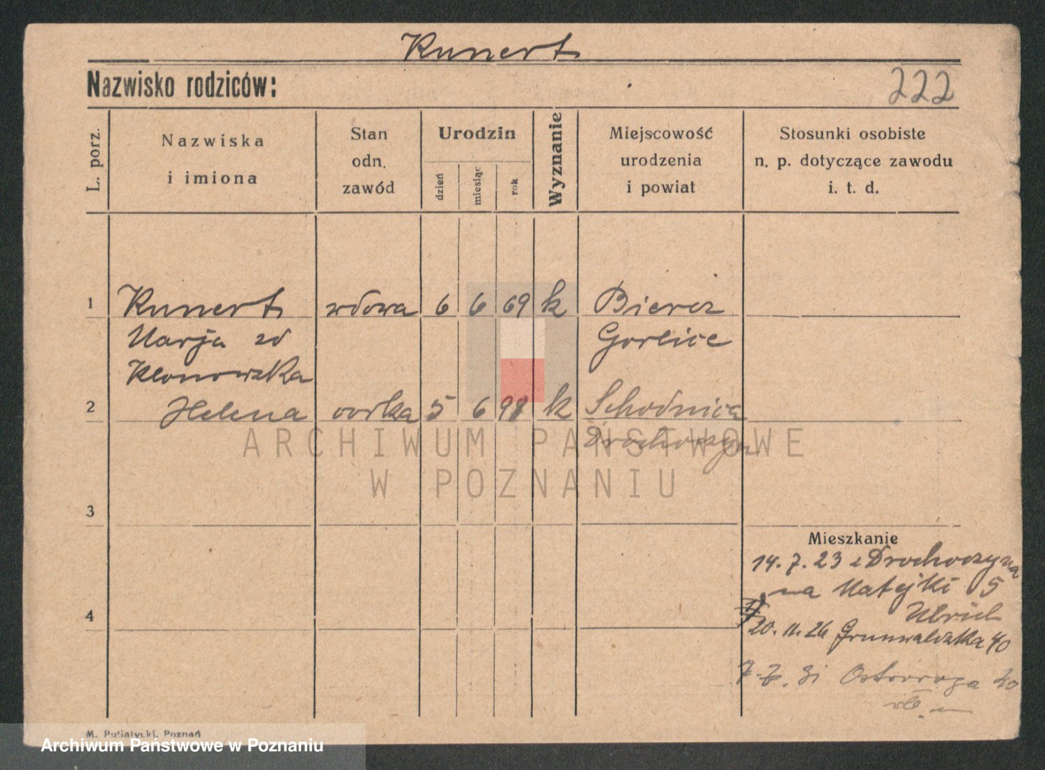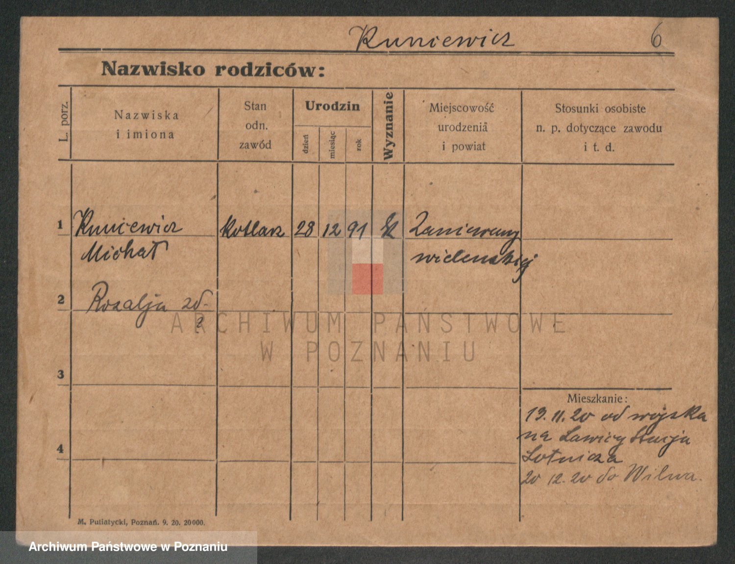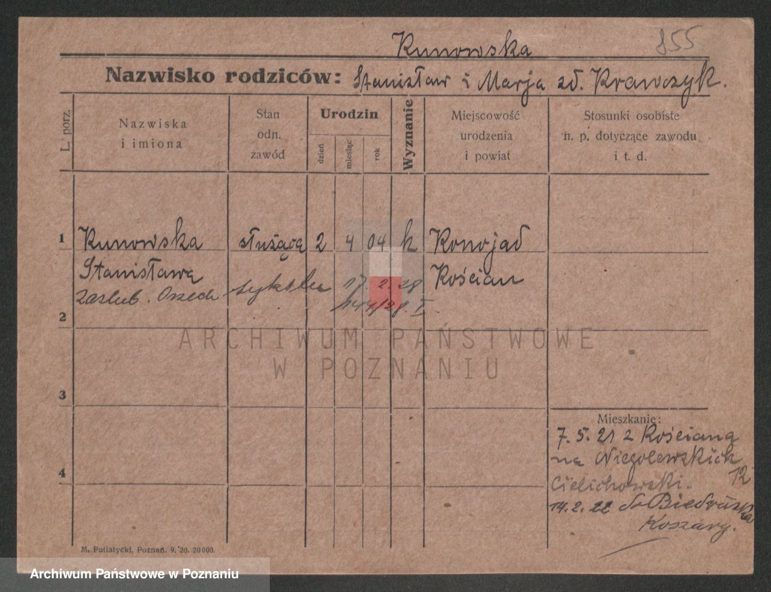Podgląd karty osobowej dostępny jest po kliknięciu na nazwisko lub ikonkę karty. Można dokonywać powiększenia (ikony na górze) lub przechodzić między kolejnymi skanami (strzałki po bokach).