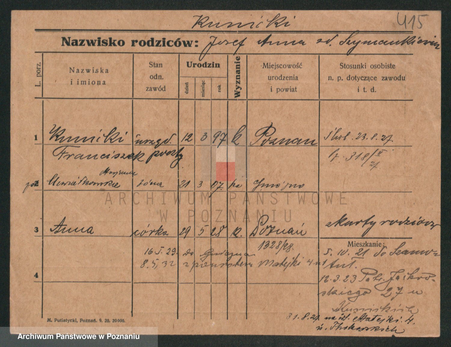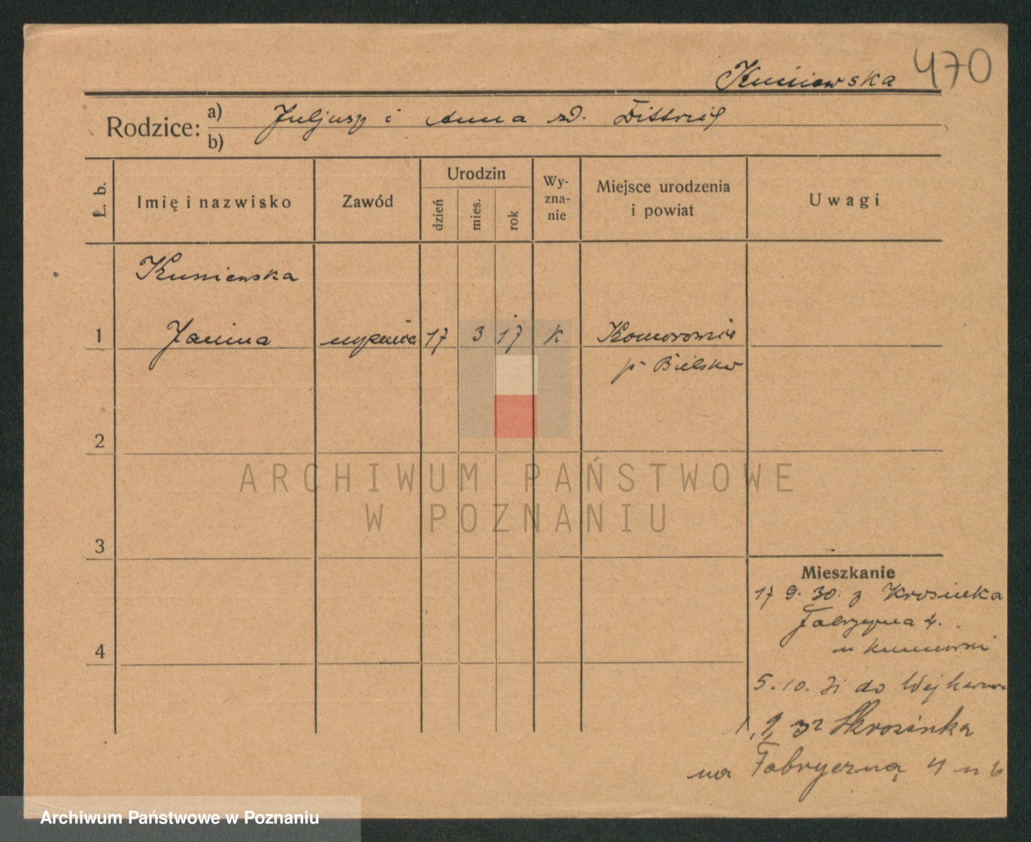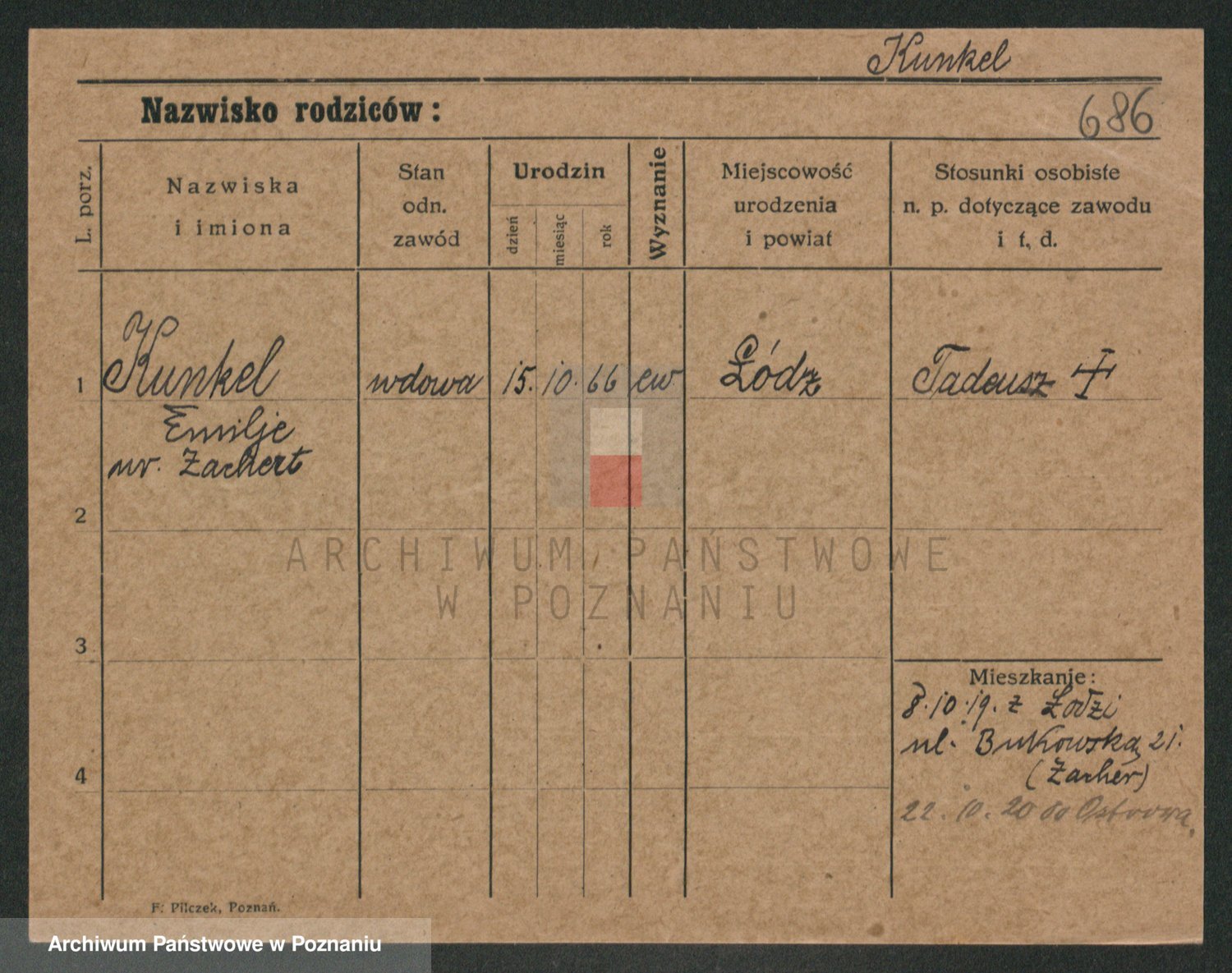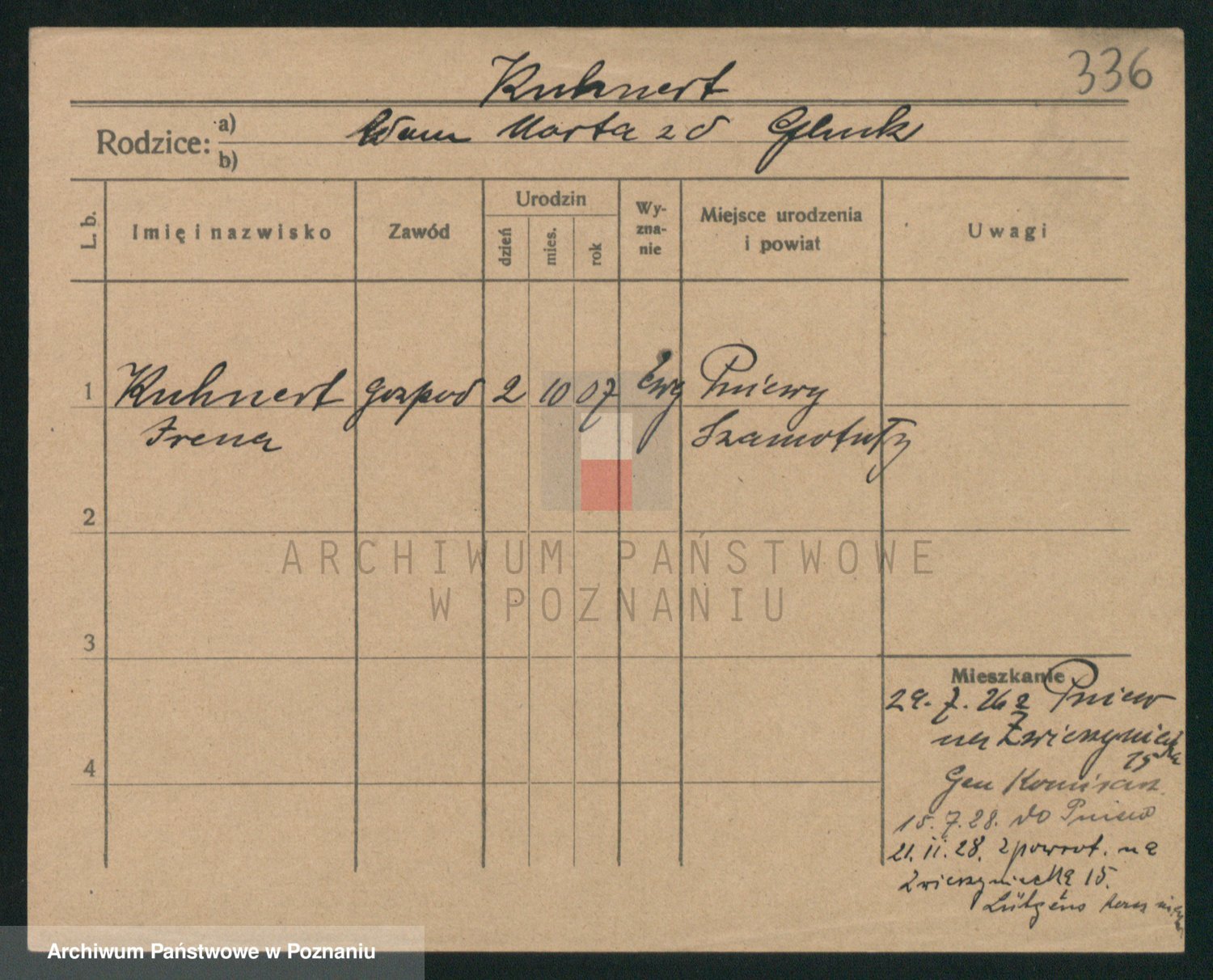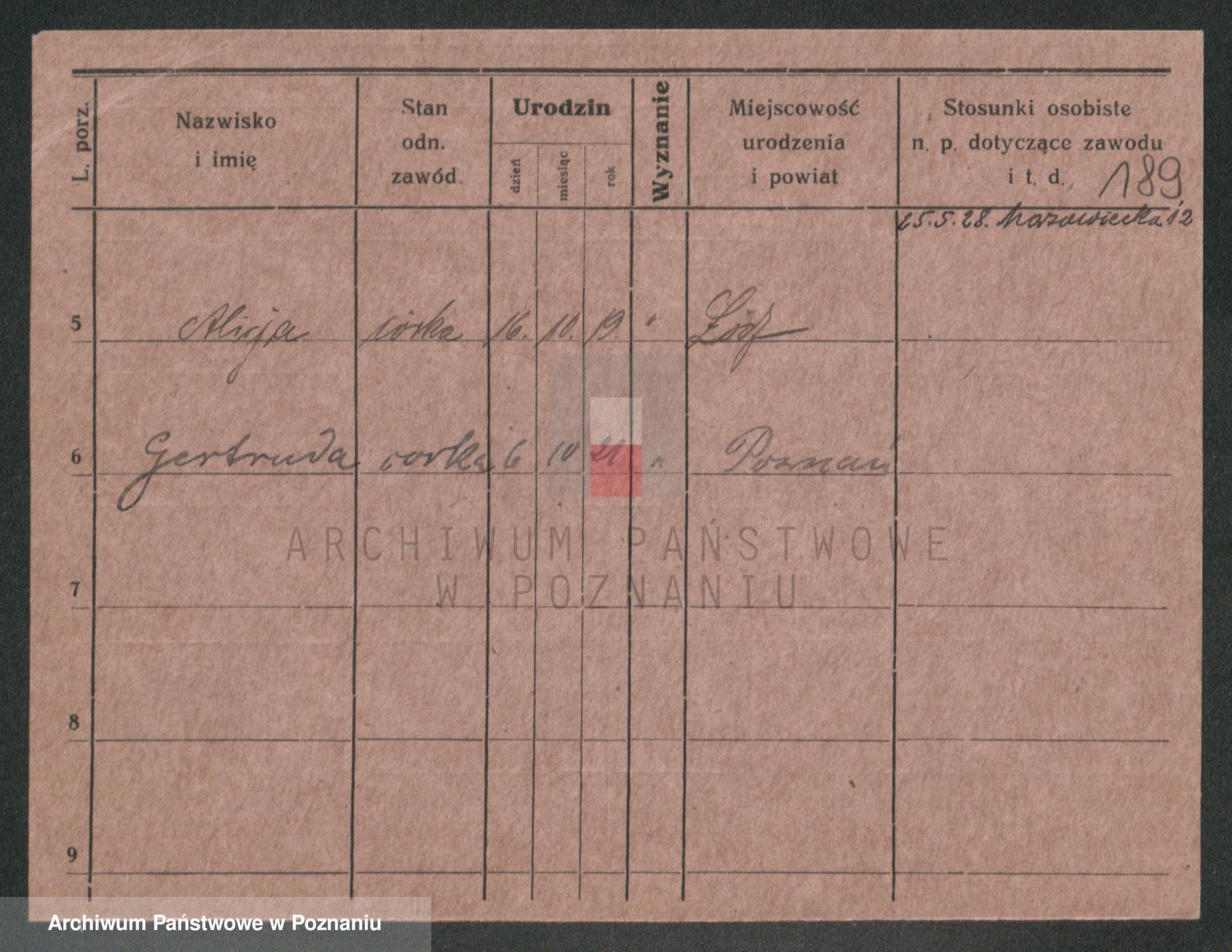Podgląd karty osobowej dostępny jest po kliknięciu na nazwisko lub ikonkę karty. Można dokonywać powiększenia (ikony na górze) lub przechodzić między kolejnymi skanami (strzałki po bokach).