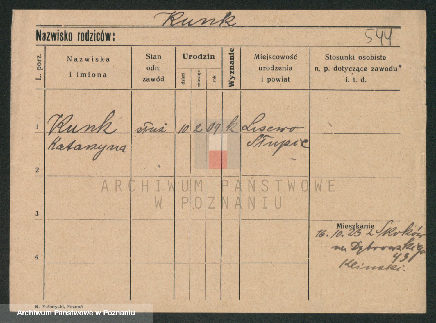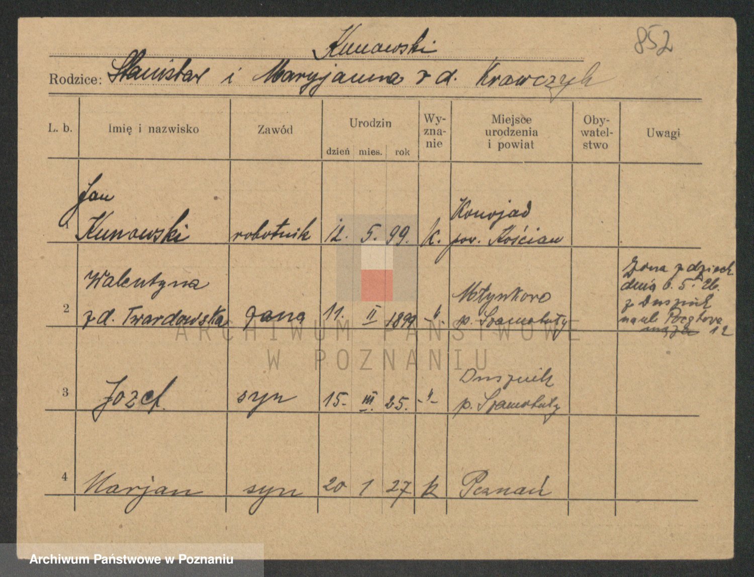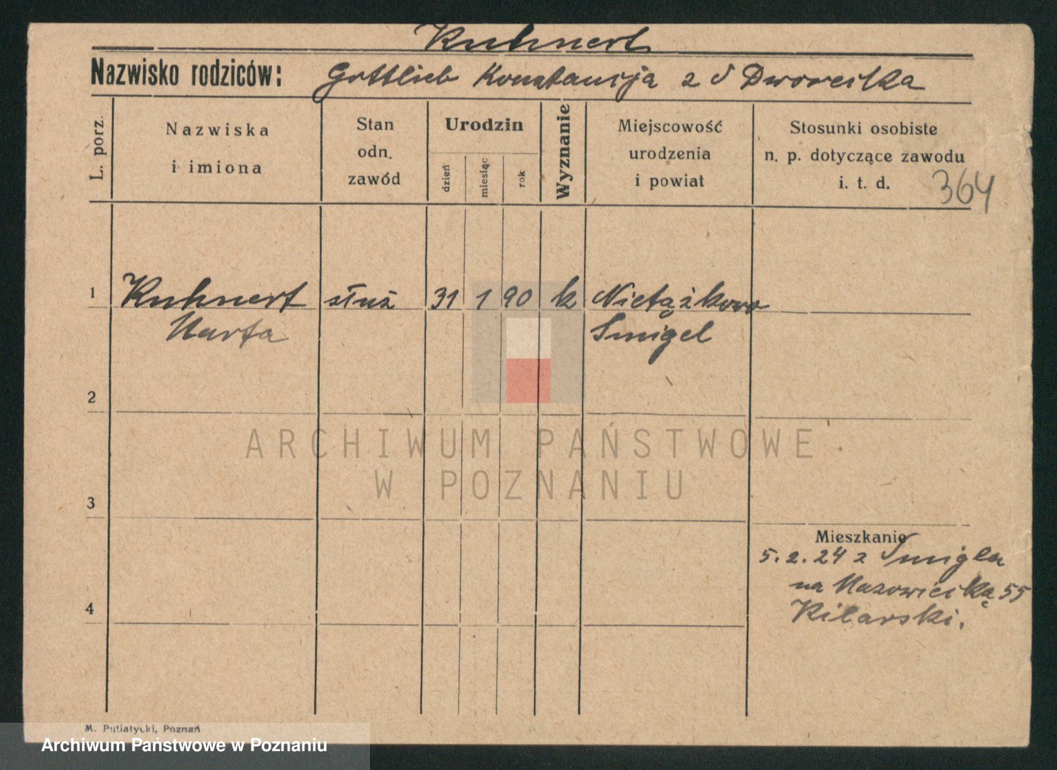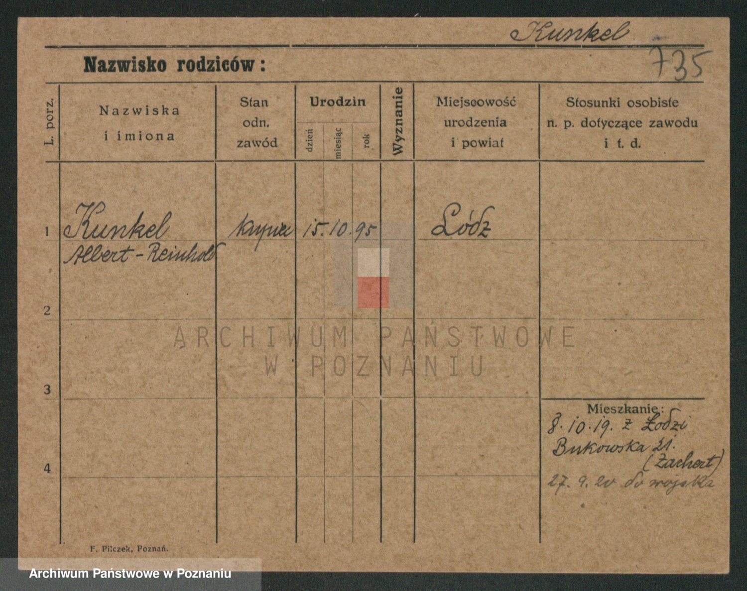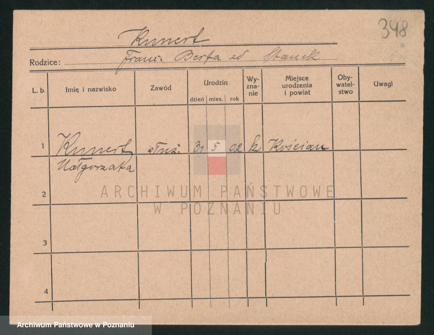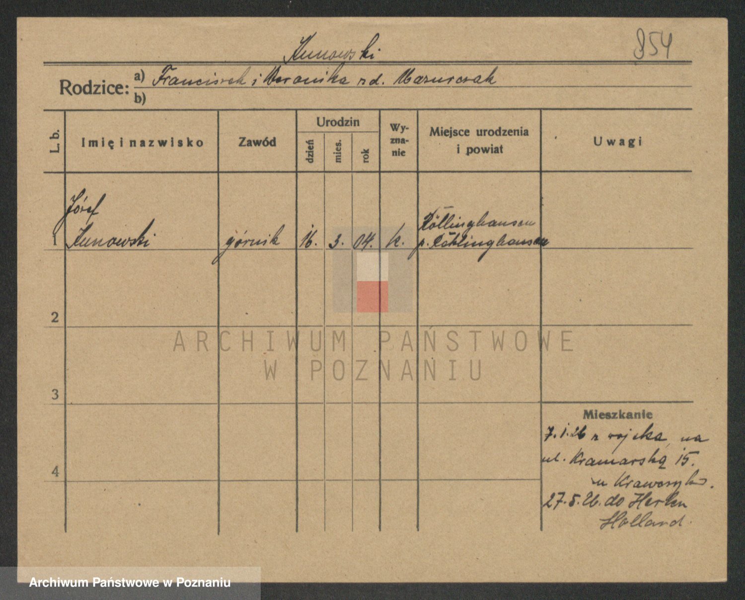 Podgląd karty osobowej dostępny jest po kliknięciu na nazwisko lub ikonkę karty. Można dokonywać powiększenia (ikony na górze) lub przechodzić między kolejnymi skanami (strzałki po bokach).