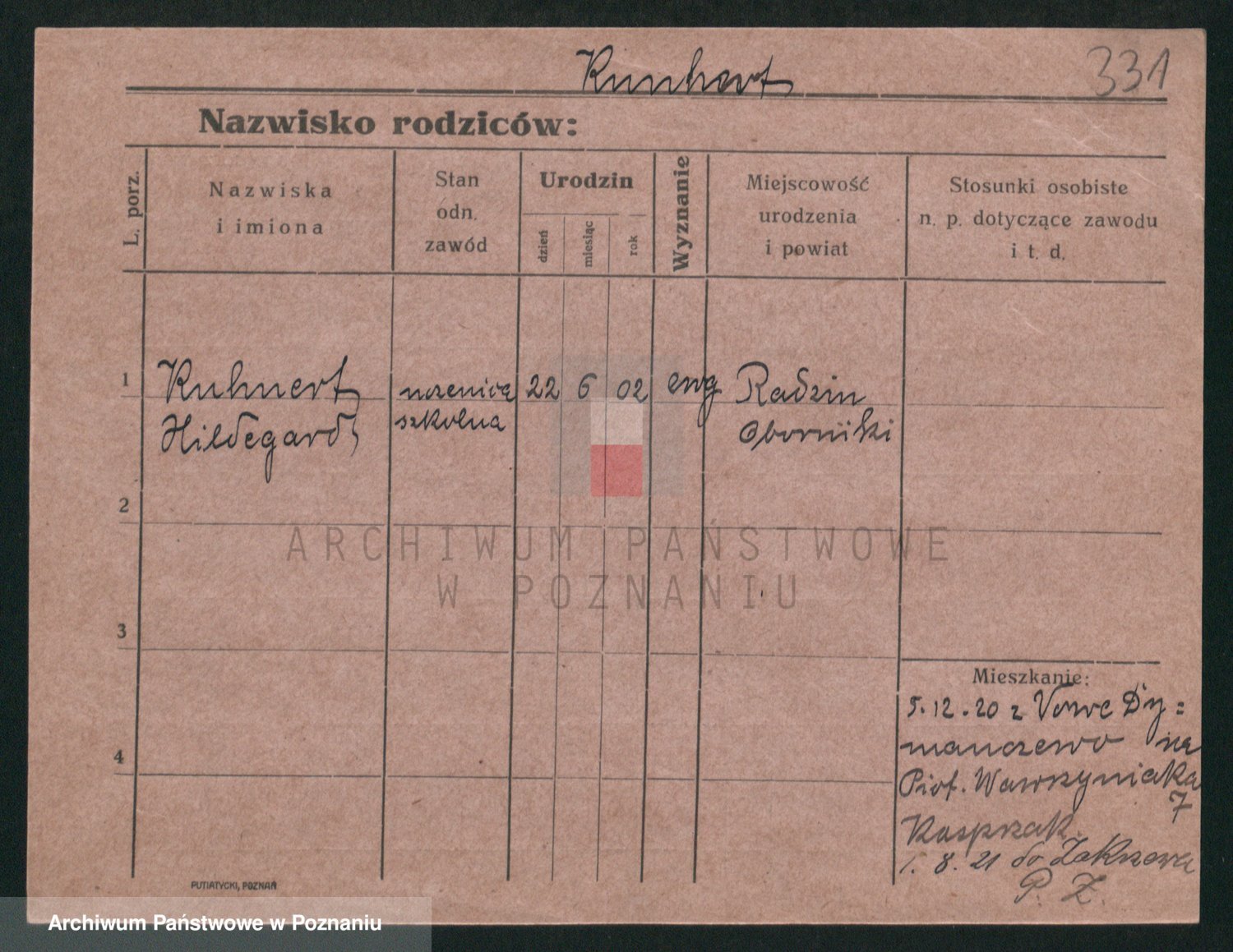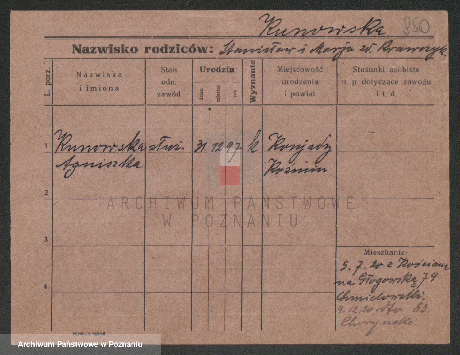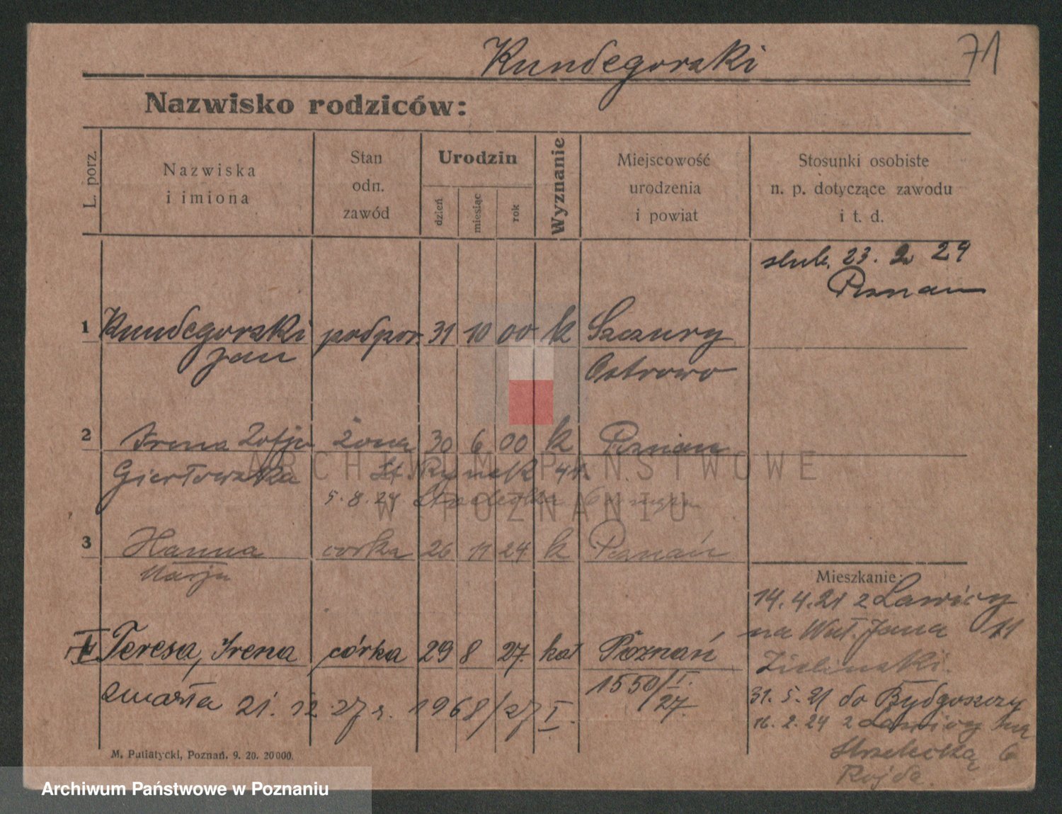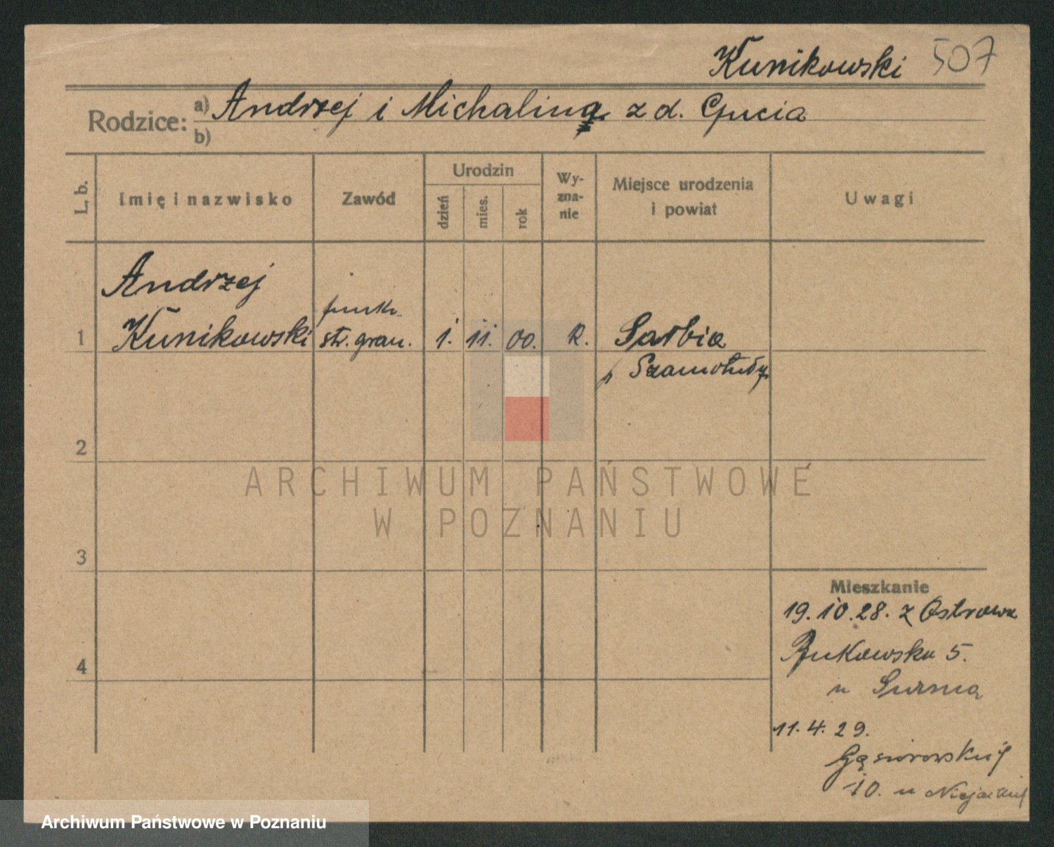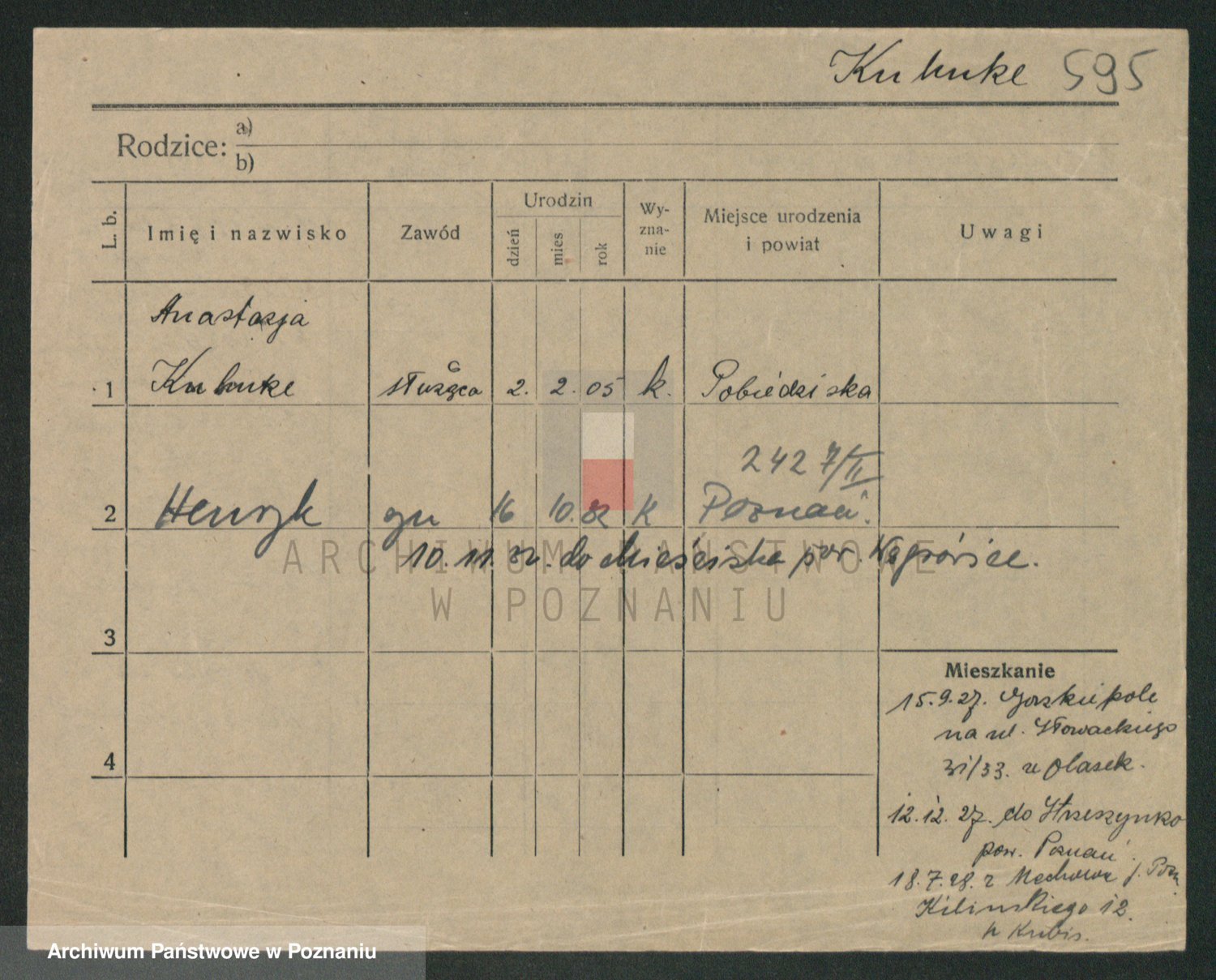 Podgląd karty osobowej dostępny jest po kliknięciu na nazwisko lub ikonkę karty. Można dokonywać powiększenia (ikony na górze) lub przechodzić między kolejnymi skanami (strzałki po bokach).