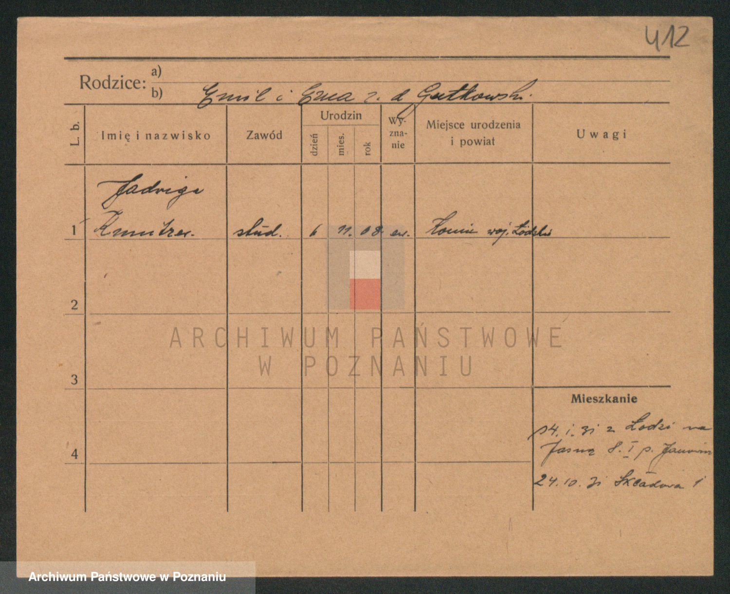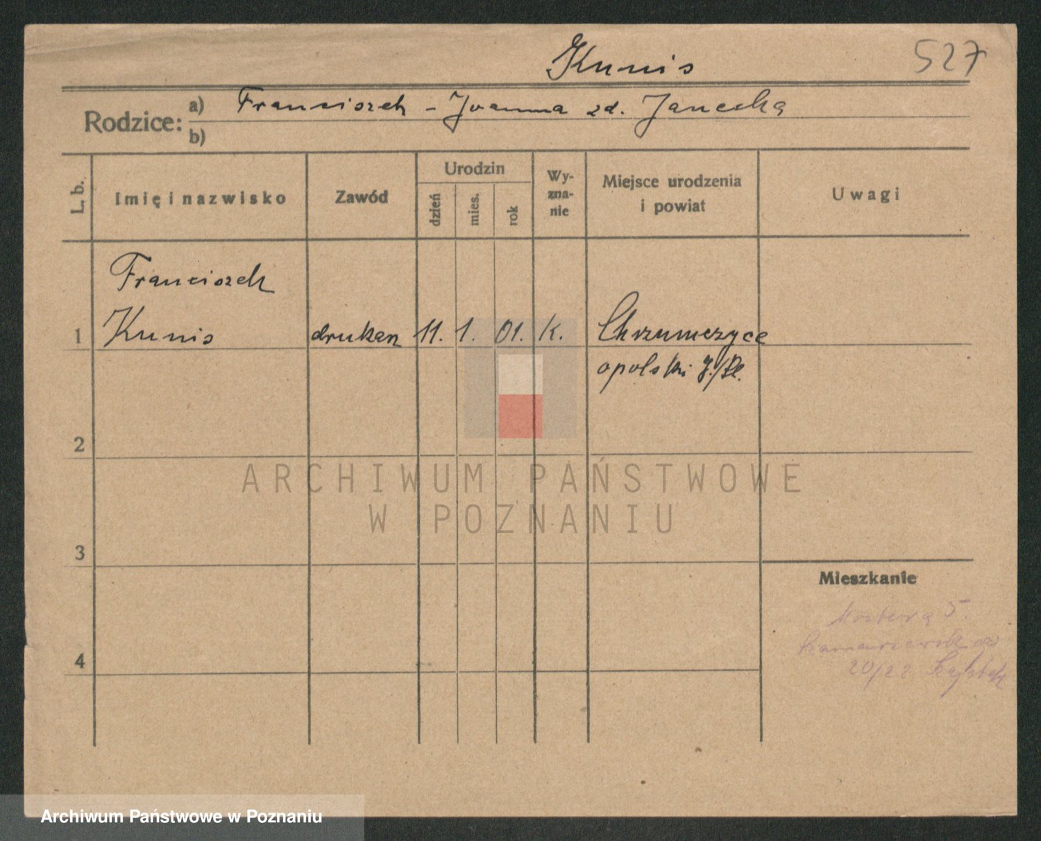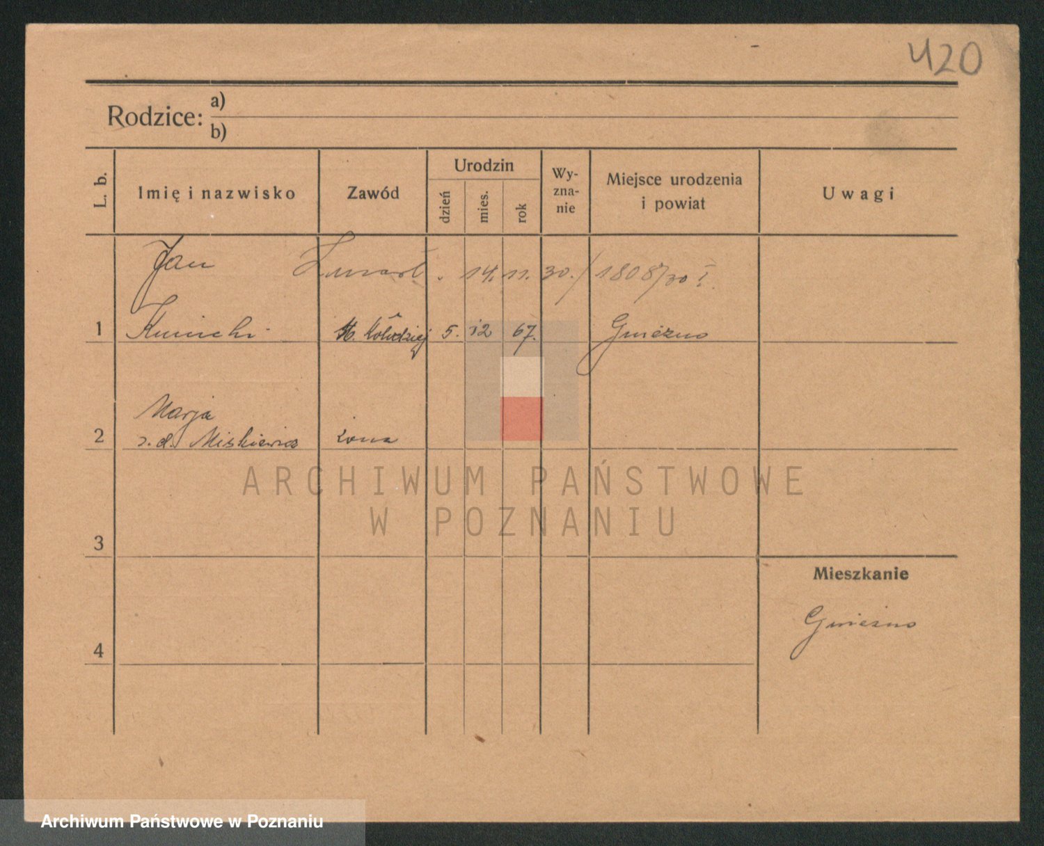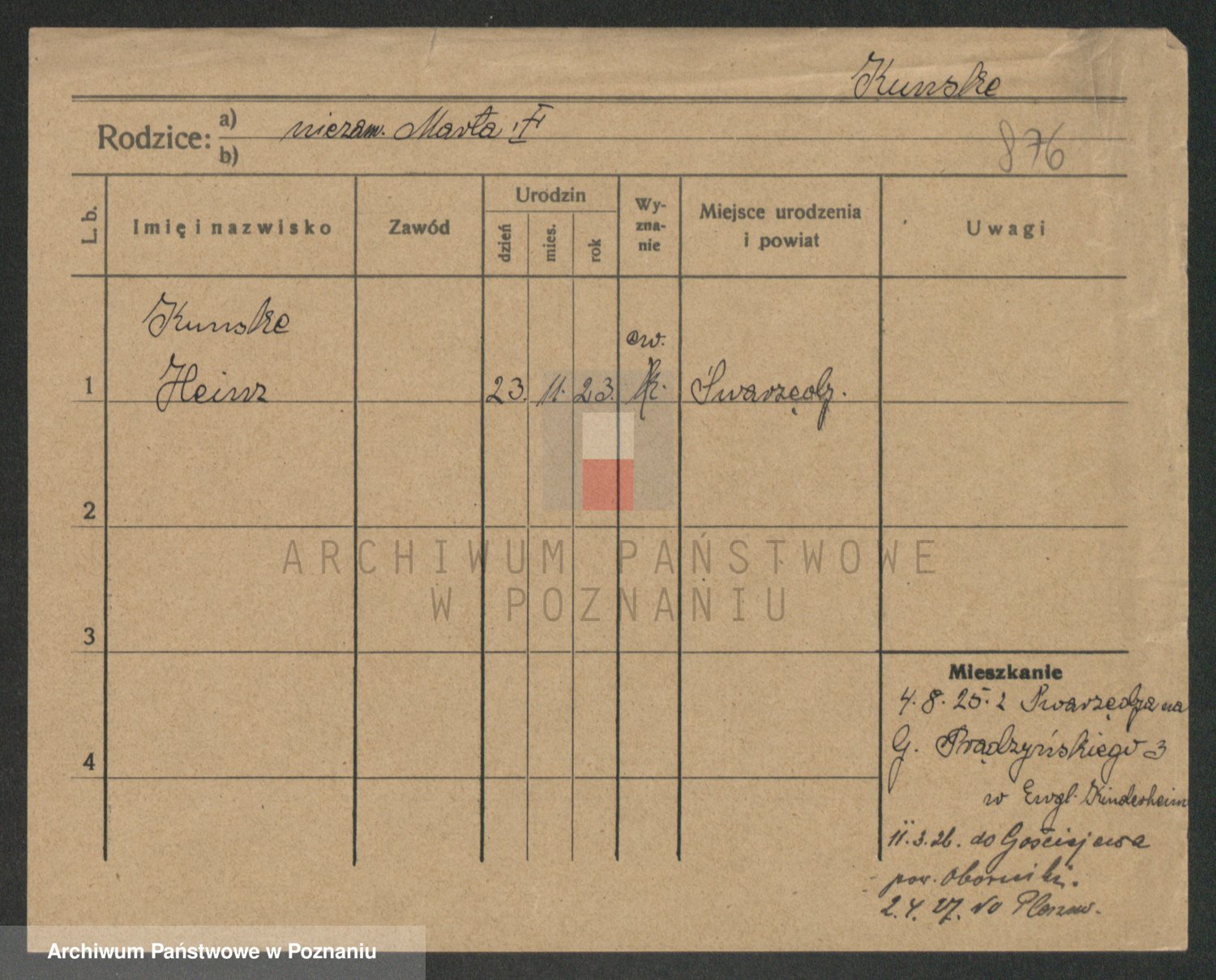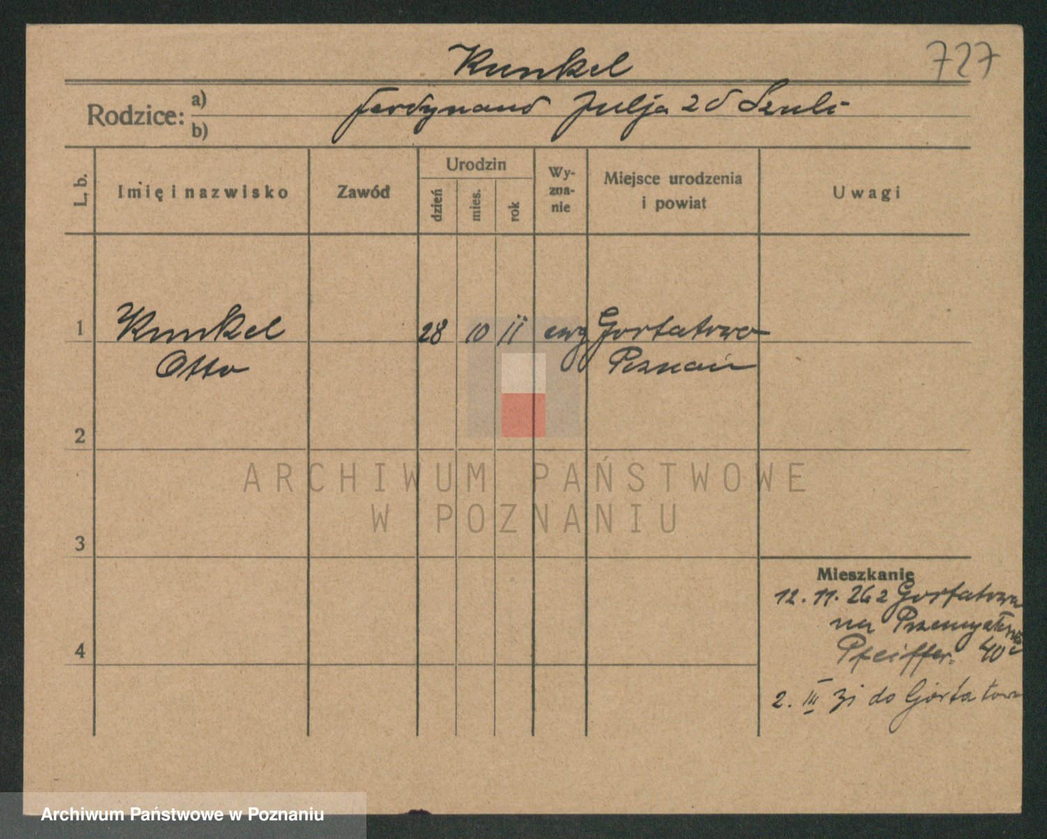 Podgląd karty osobowej dostępny jest po kliknięciu na nazwisko lub ikonkę karty. Można dokonywać powiększenia (ikony na górze) lub przechodzić między kolejnymi skanami (strzałki po bokach).