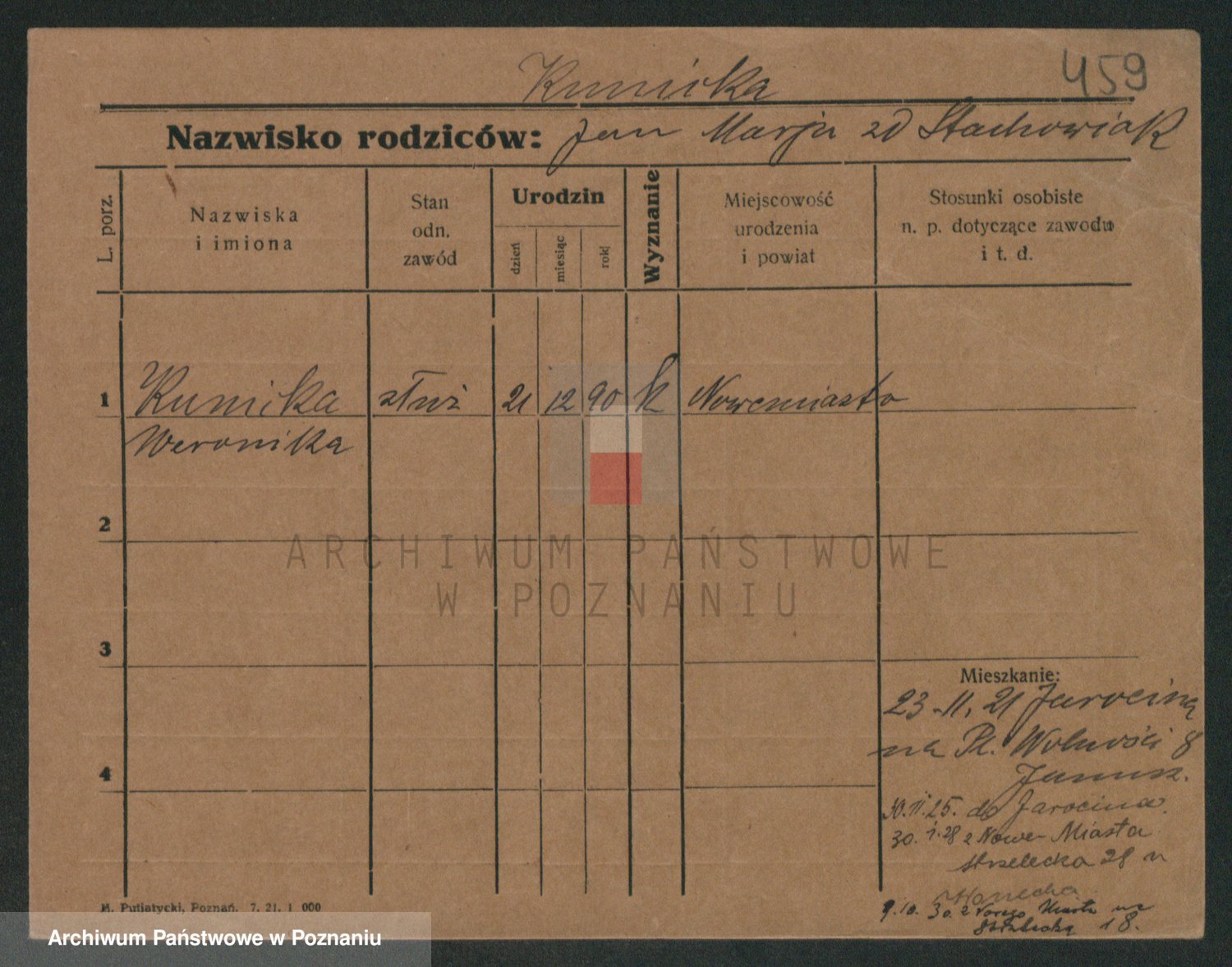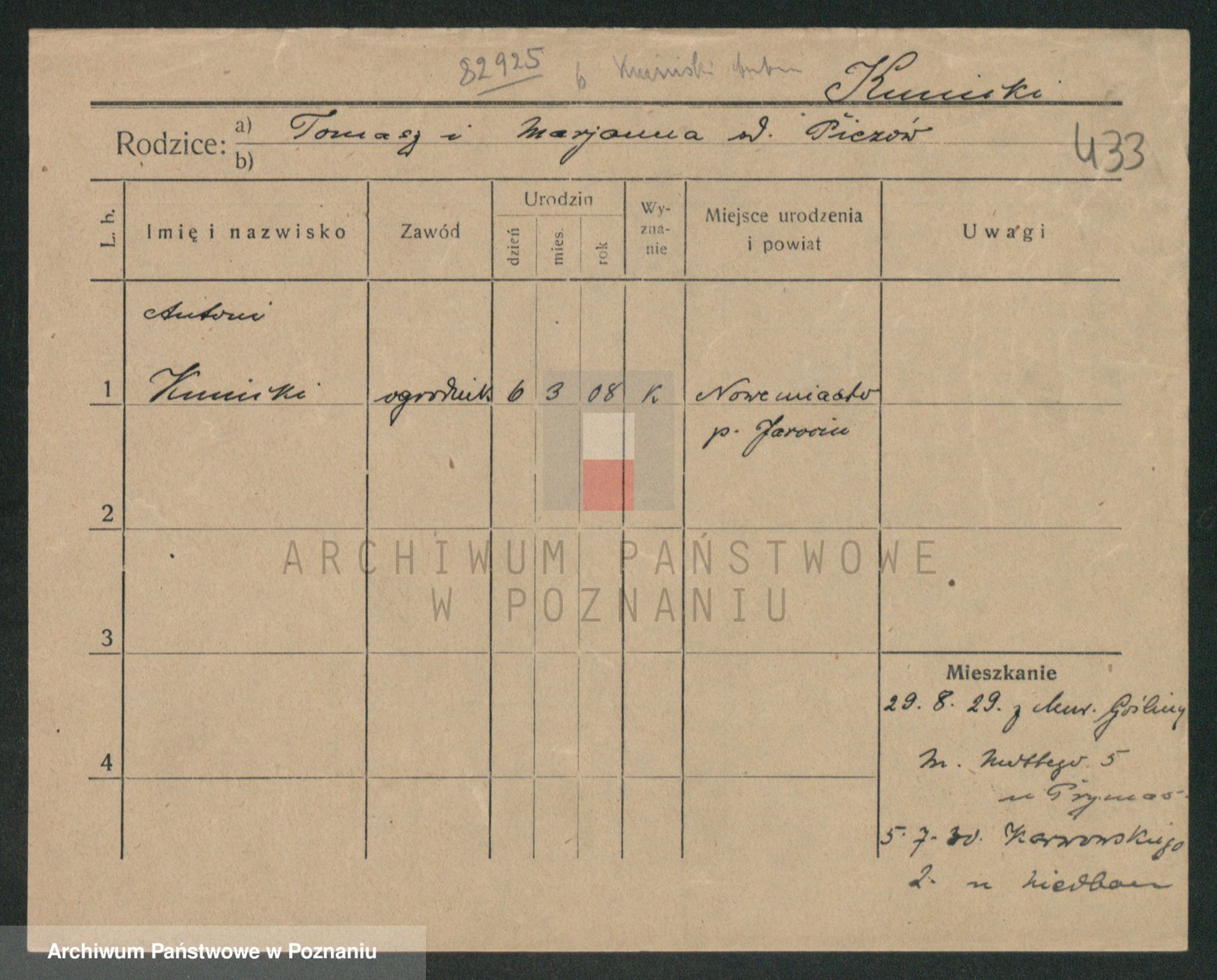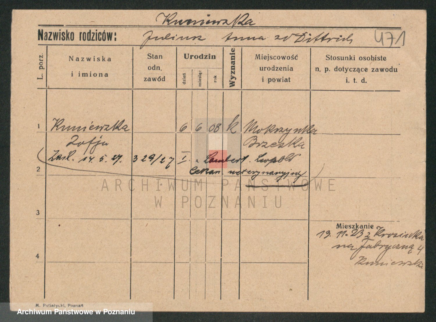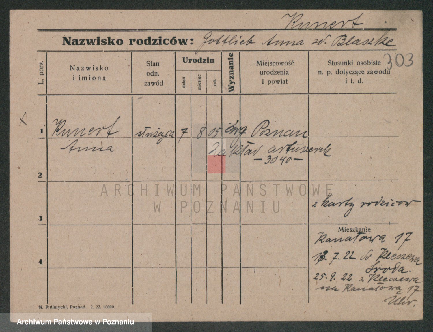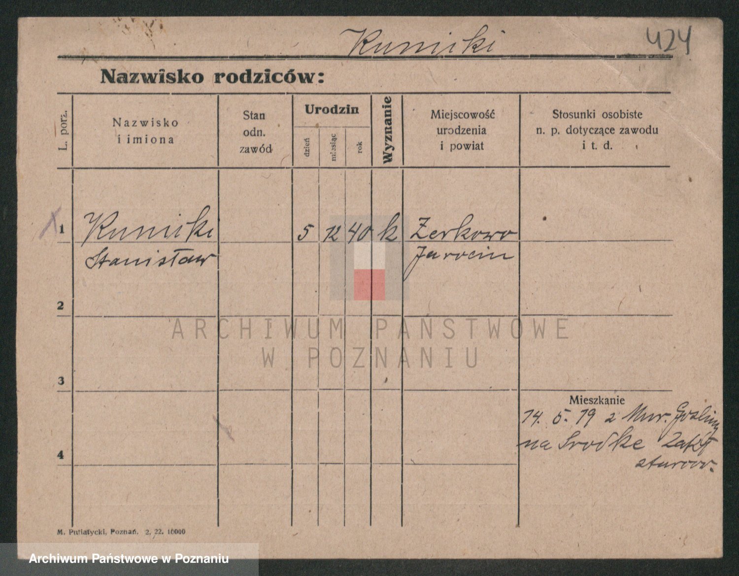 Podgląd karty osobowej dostępny jest po kliknięciu na nazwisko lub ikonkę karty. Można dokonywać powiększenia (ikony na górze) lub przechodzić między kolejnymi skanami (strzałki po bokach).