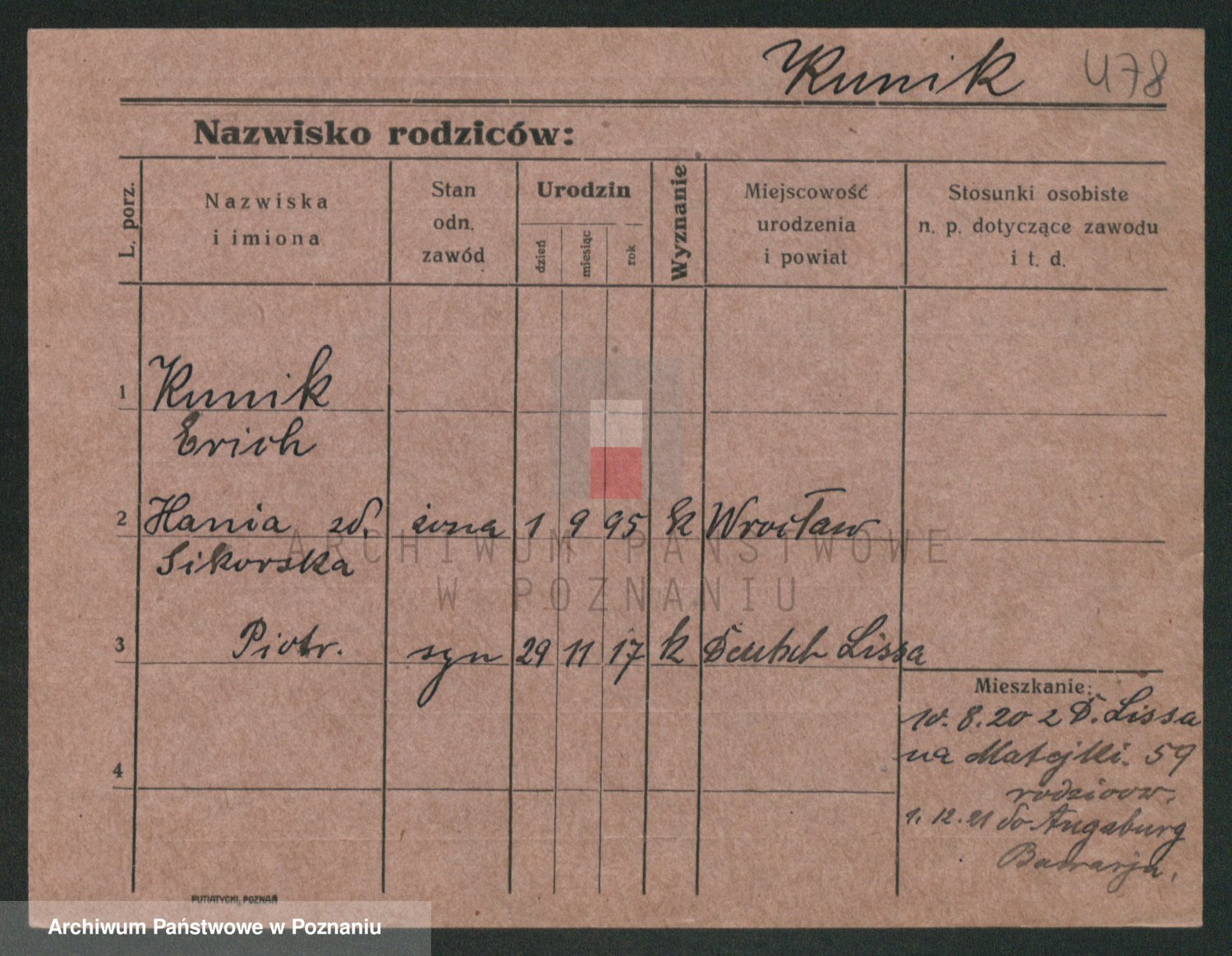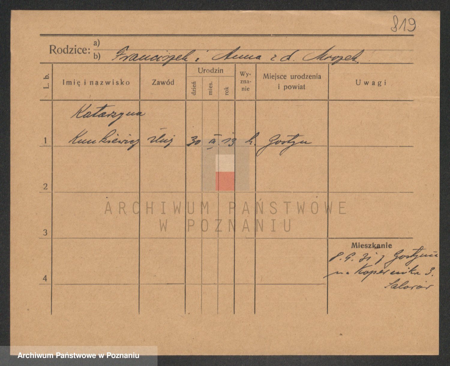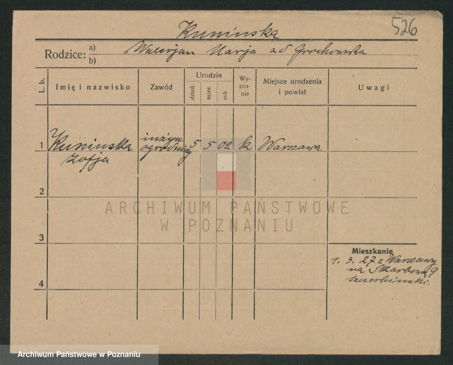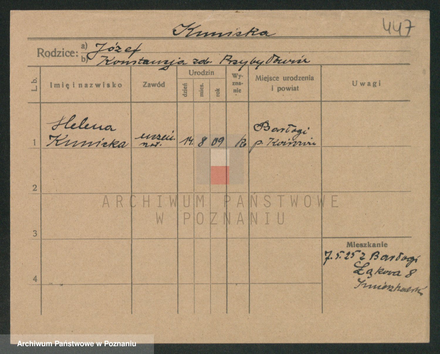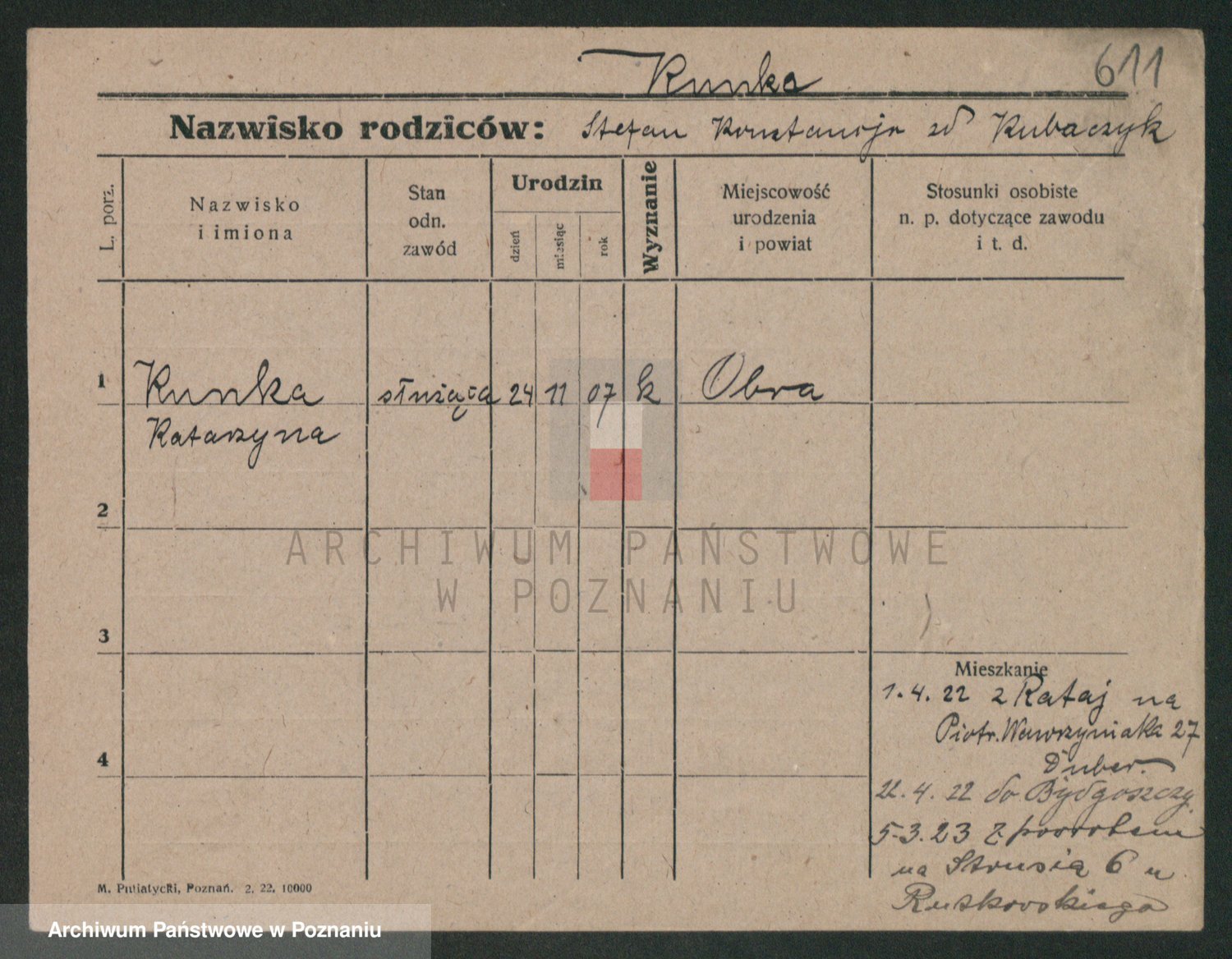 Podgląd karty osobowej dostępny jest po kliknięciu na nazwisko lub ikonkę karty. Można dokonywać powiększenia (ikony na górze) lub przechodzić między kolejnymi skanami (strzałki po bokach).