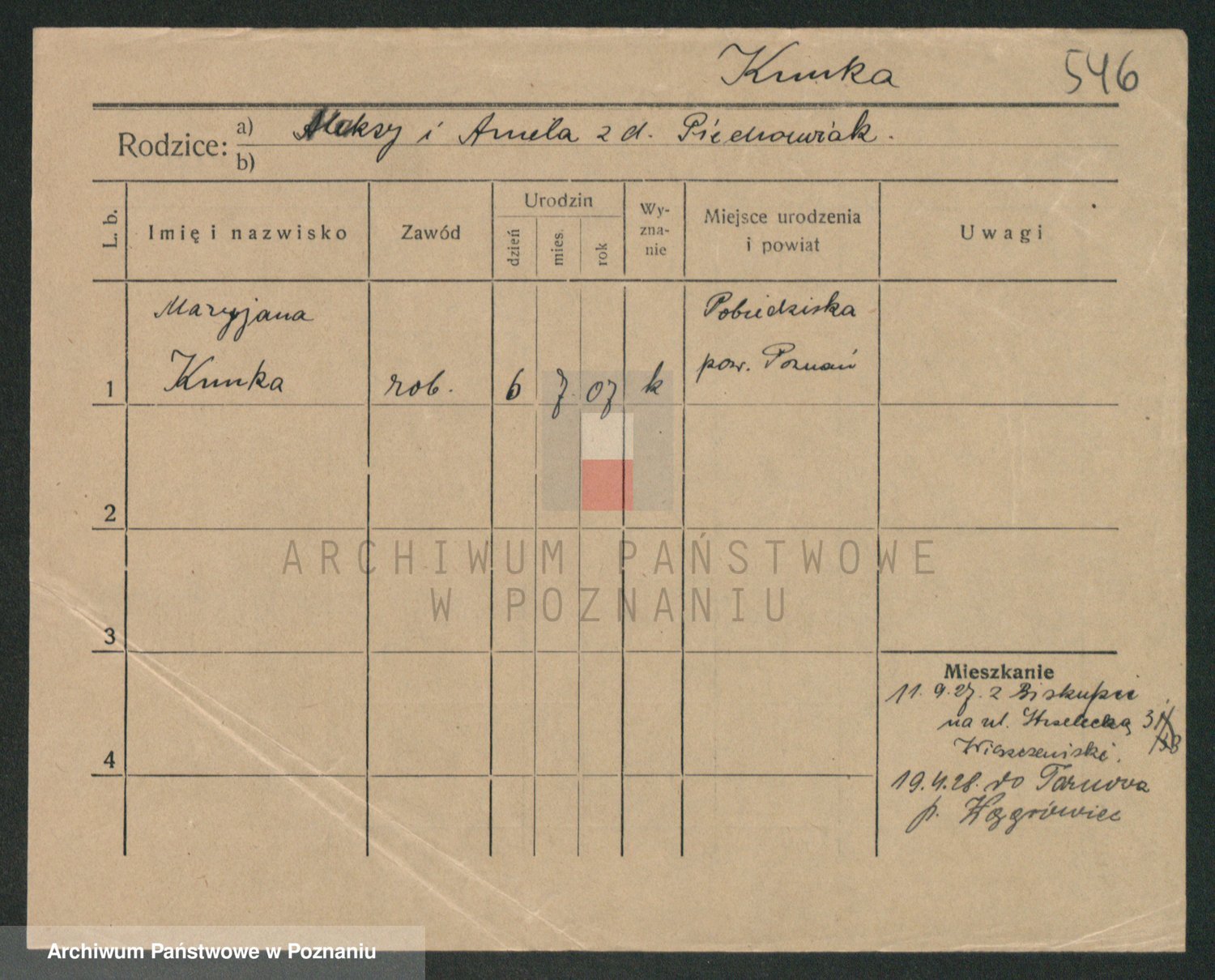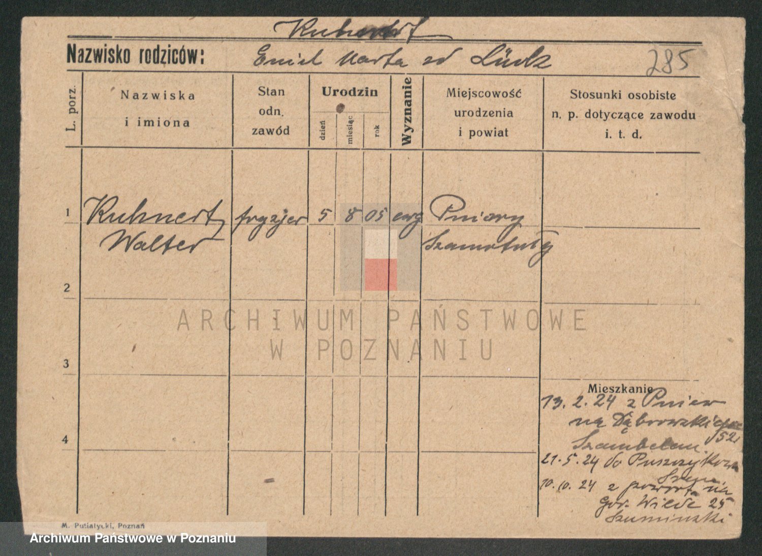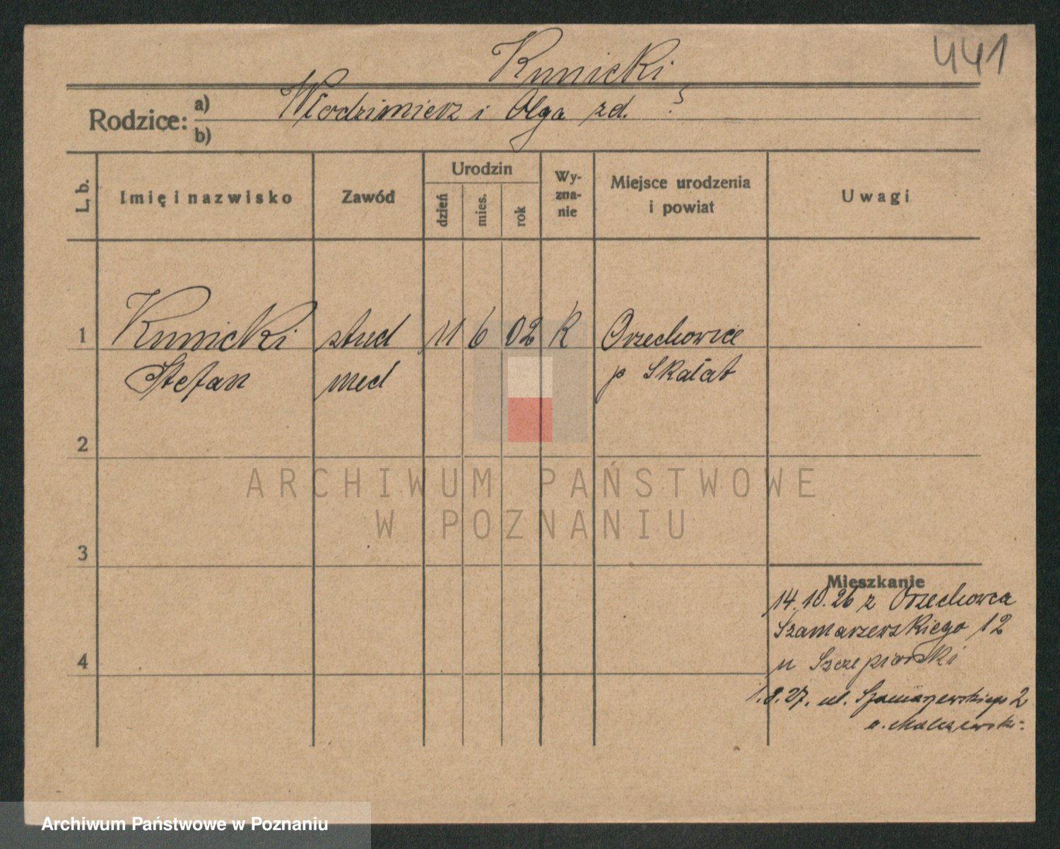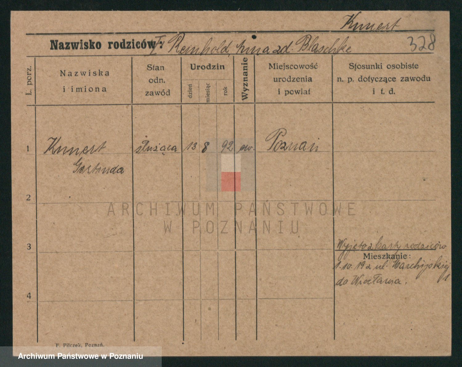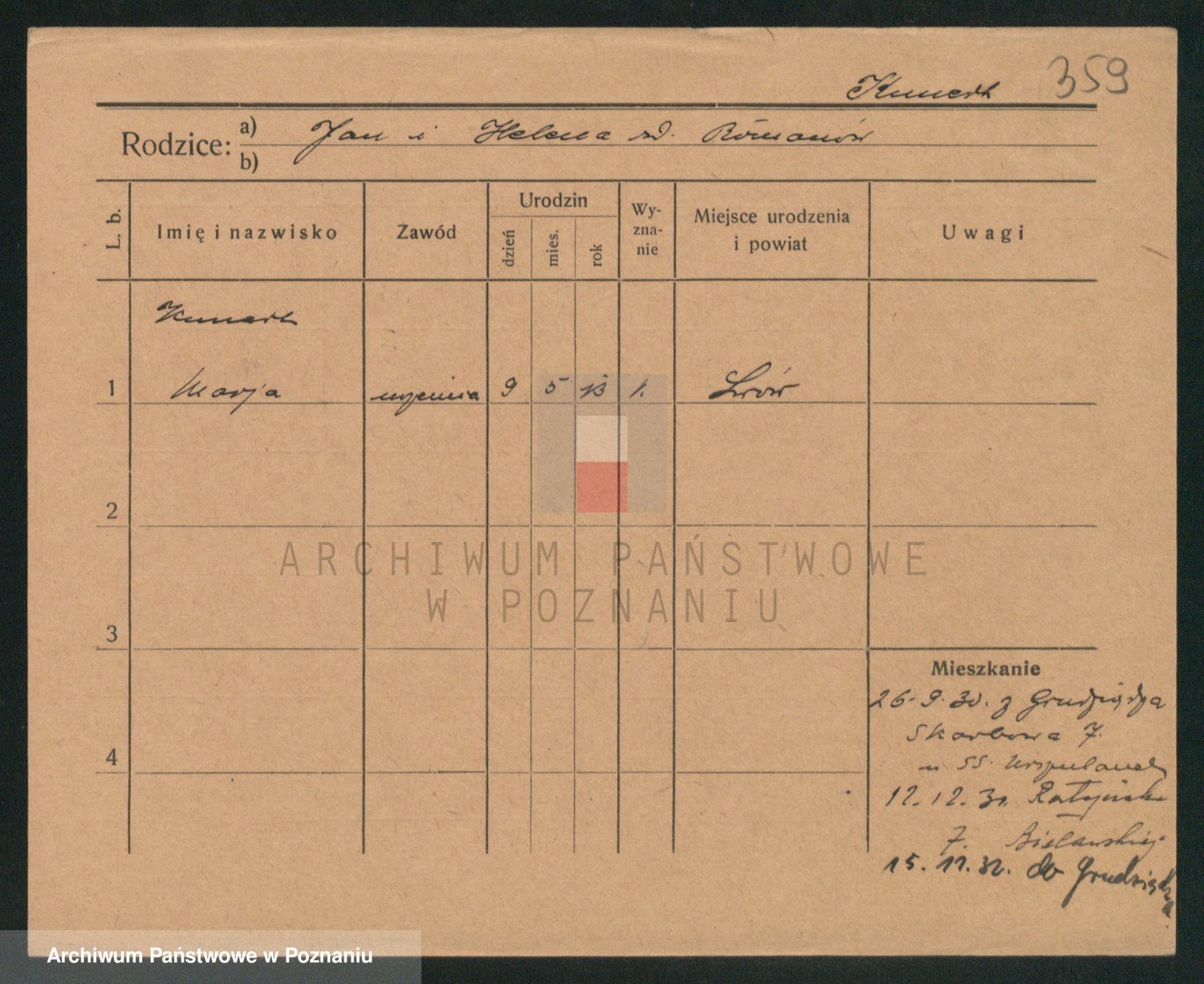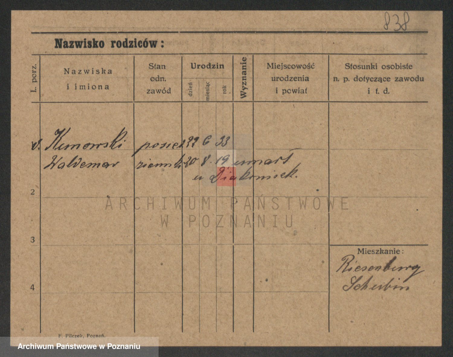 Podgląd karty osobowej dostępny jest po kliknięciu na nazwisko lub ikonkę karty. Można dokonywać powiększenia (ikony na górze) lub przechodzić między kolejnymi skanami (strzałki po bokach).