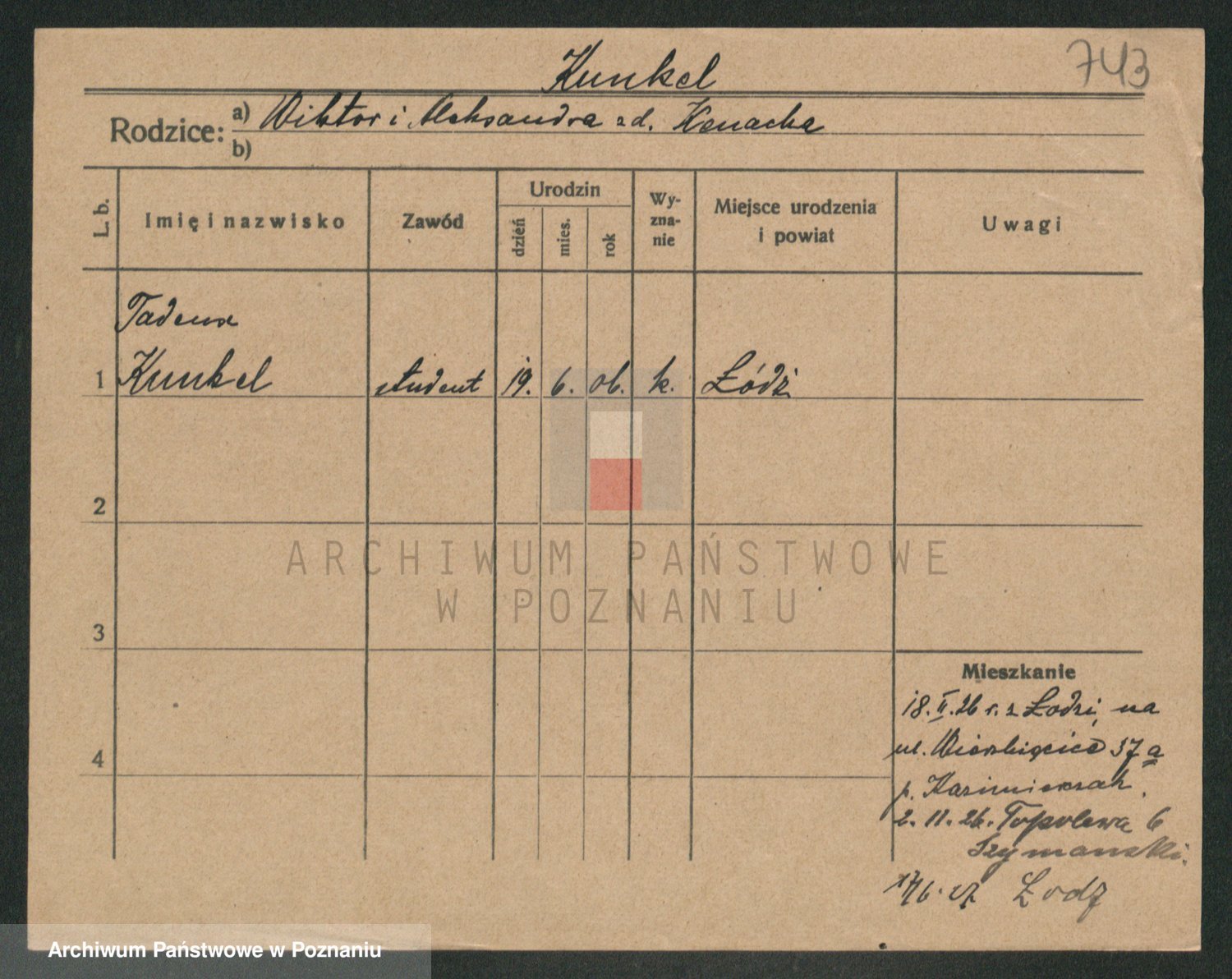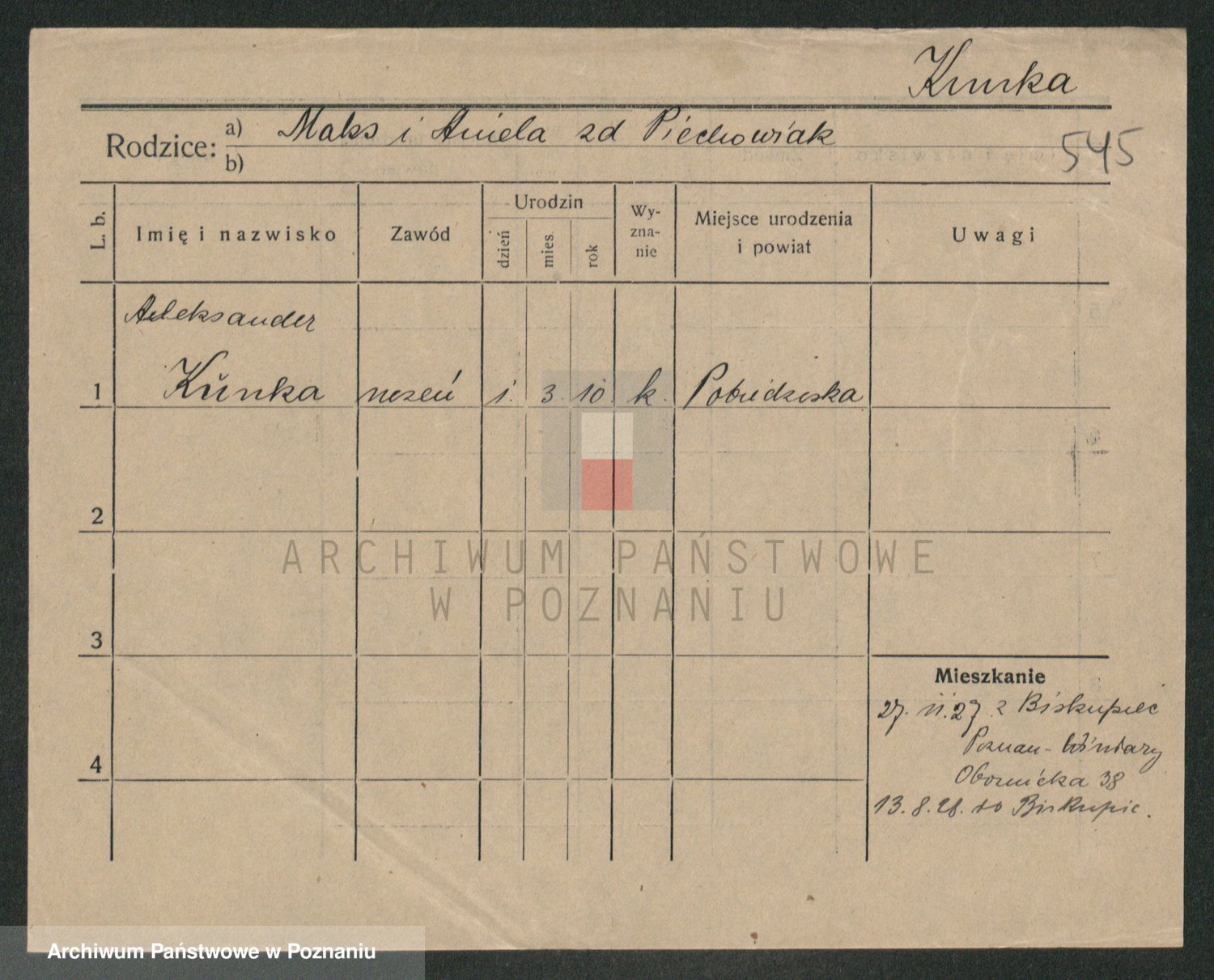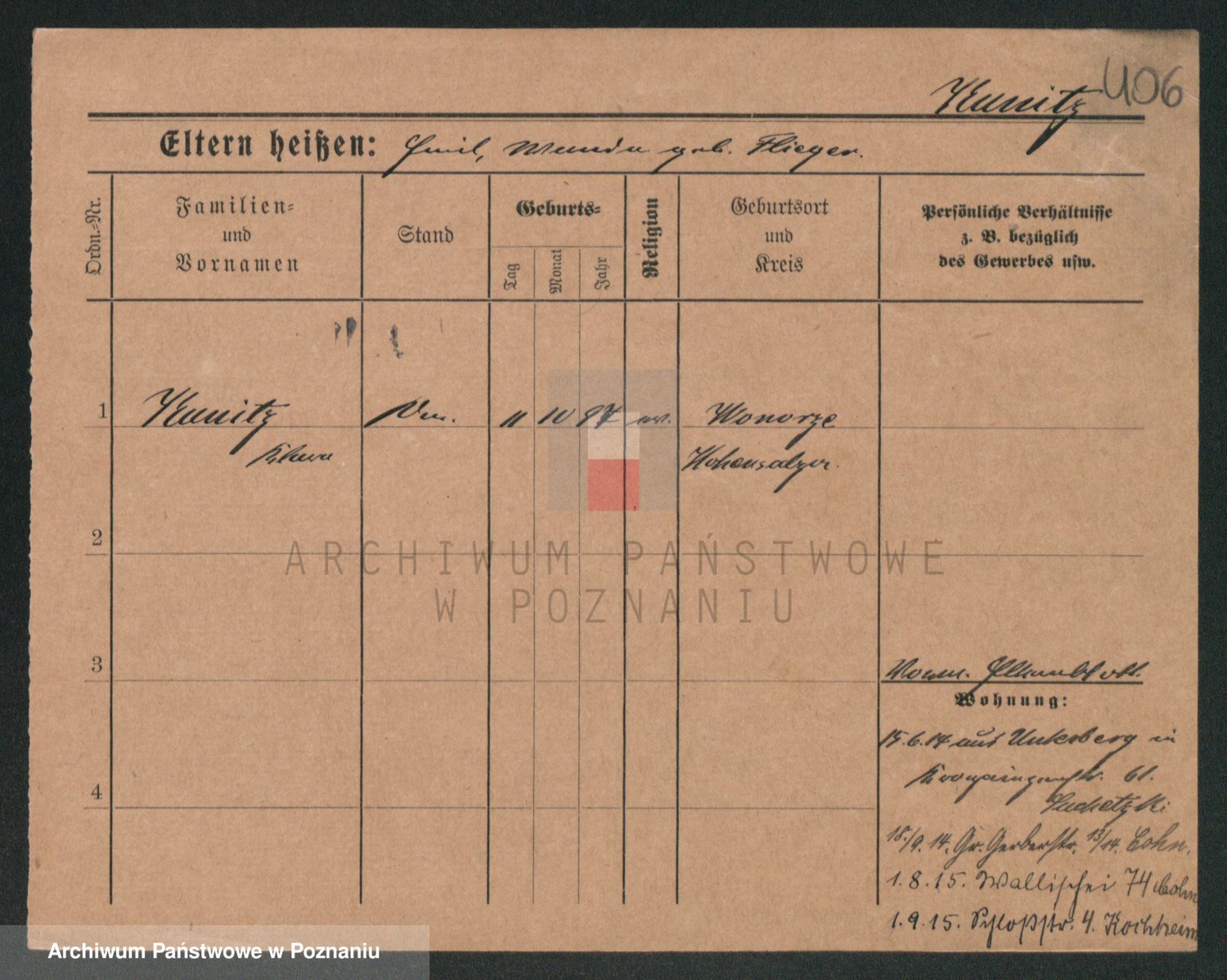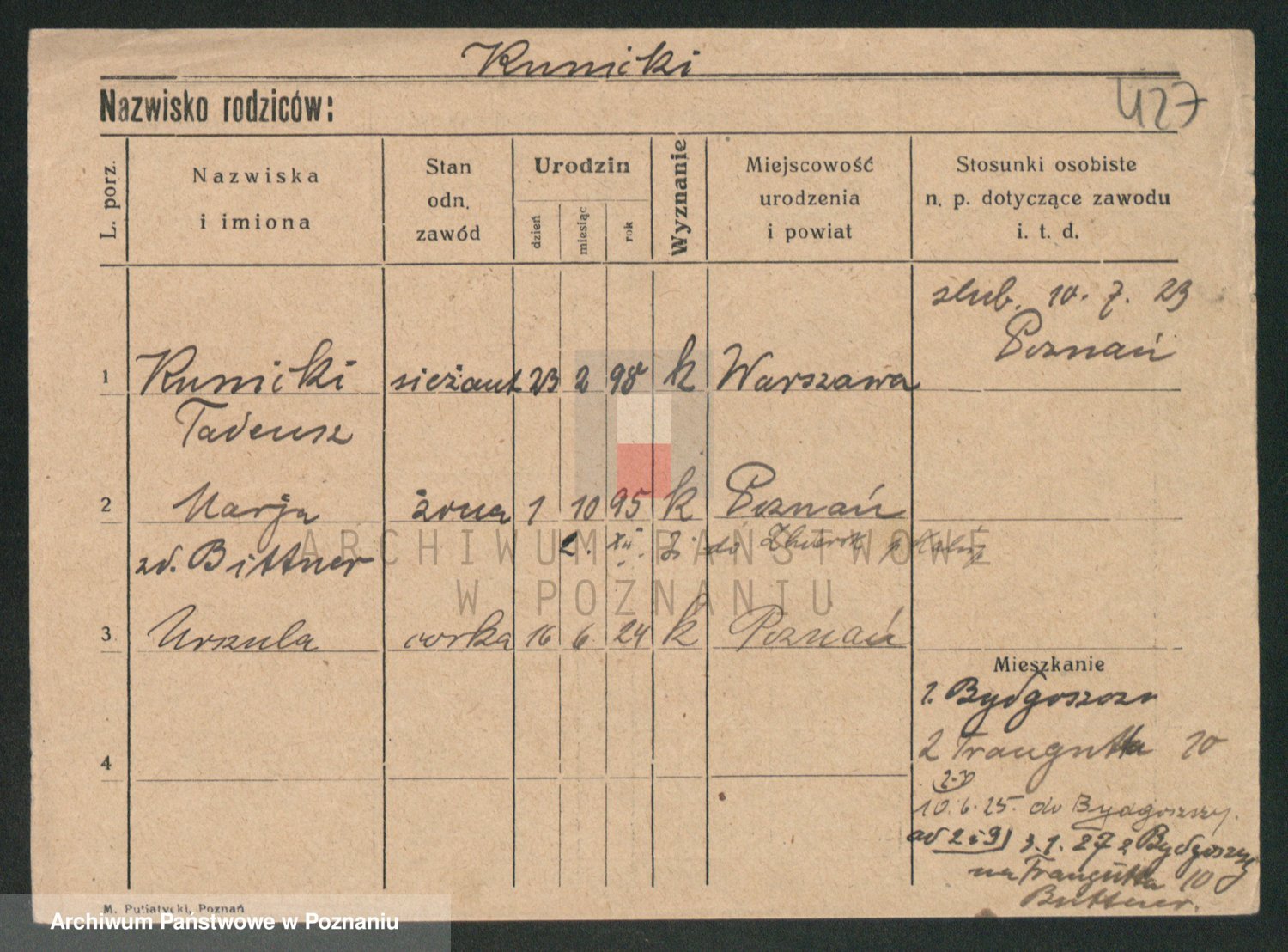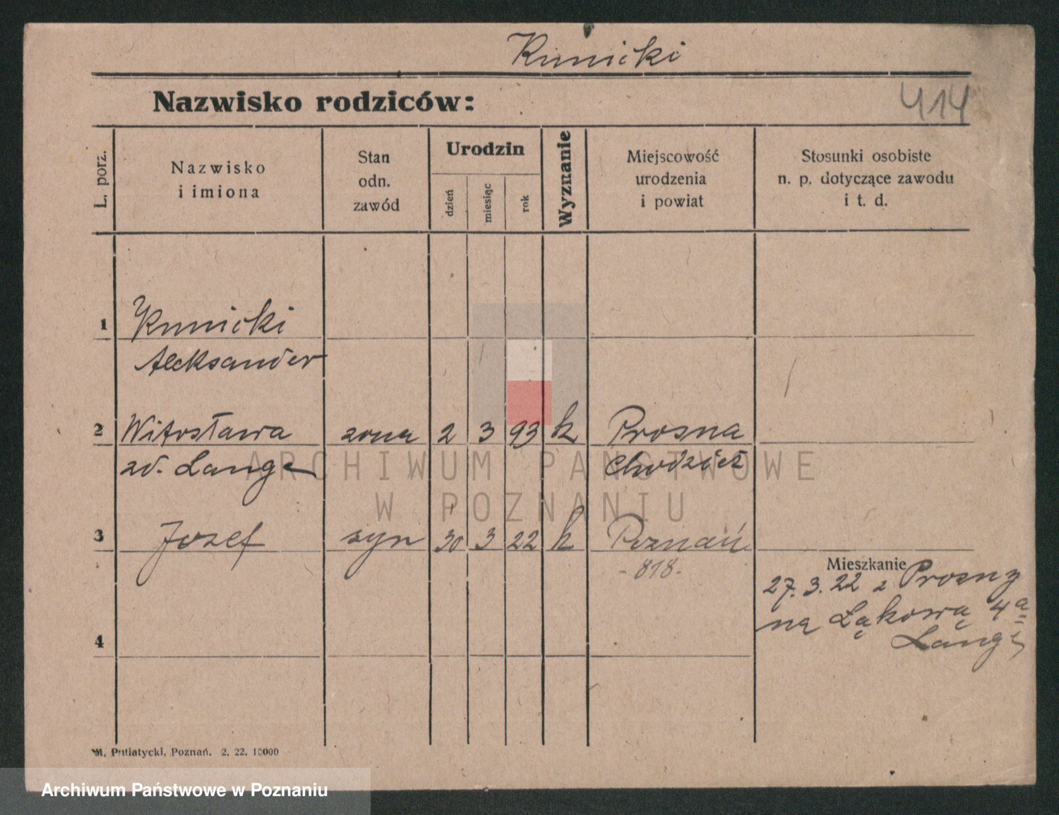 Podgląd karty osobowej dostępny jest po kliknięciu na nazwisko lub ikonkę karty. Można dokonywać powiększenia (ikony na górze) lub przechodzić między kolejnymi skanami (strzałki po bokach).