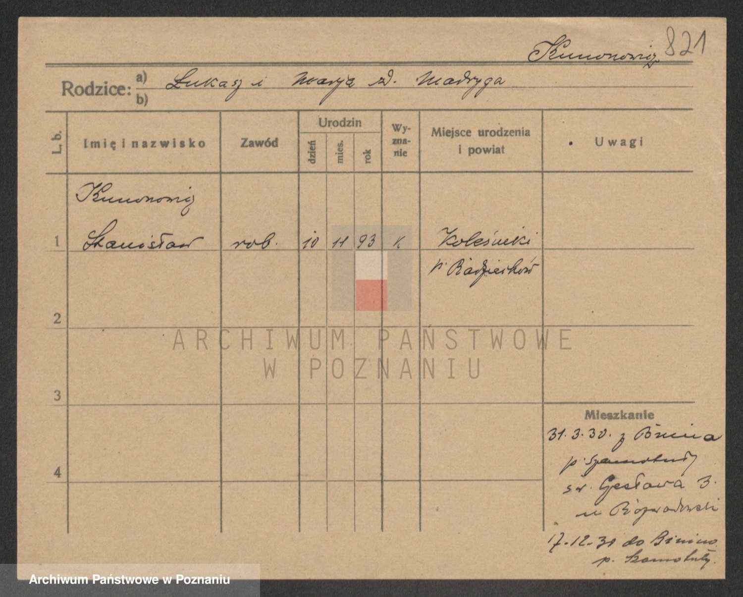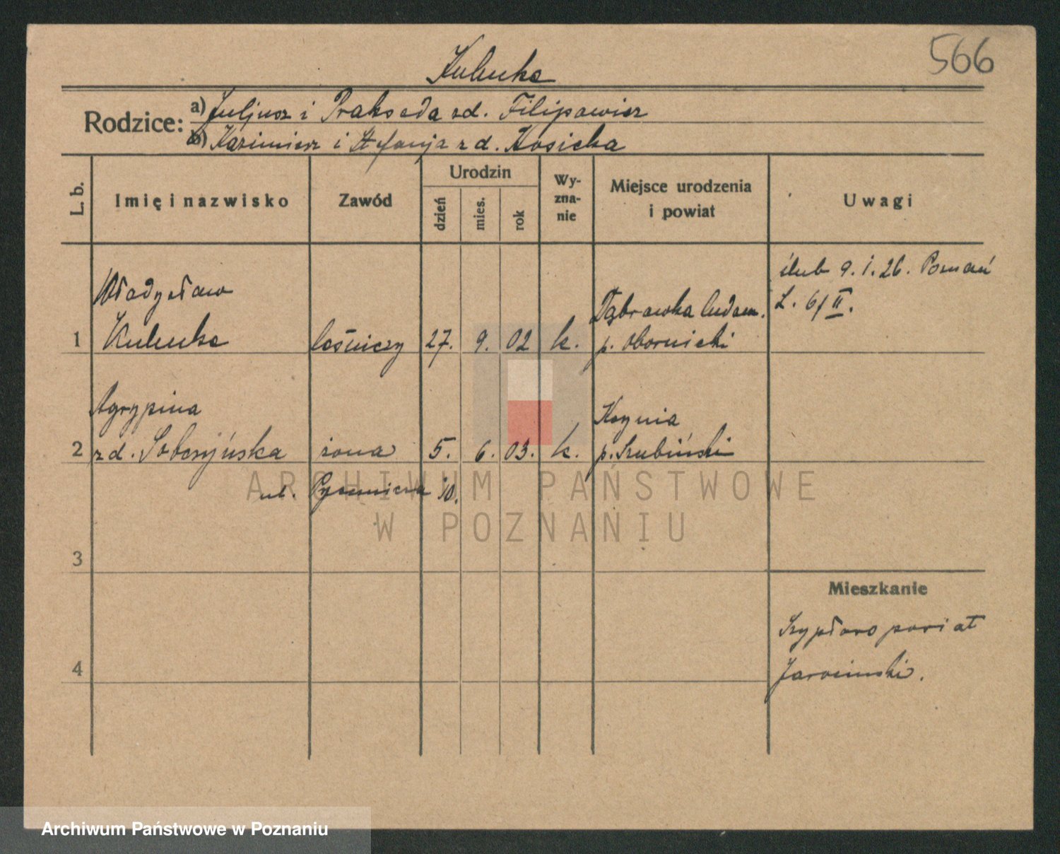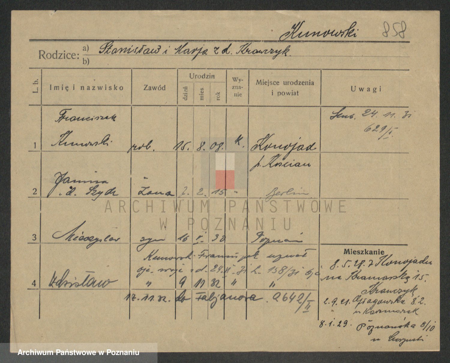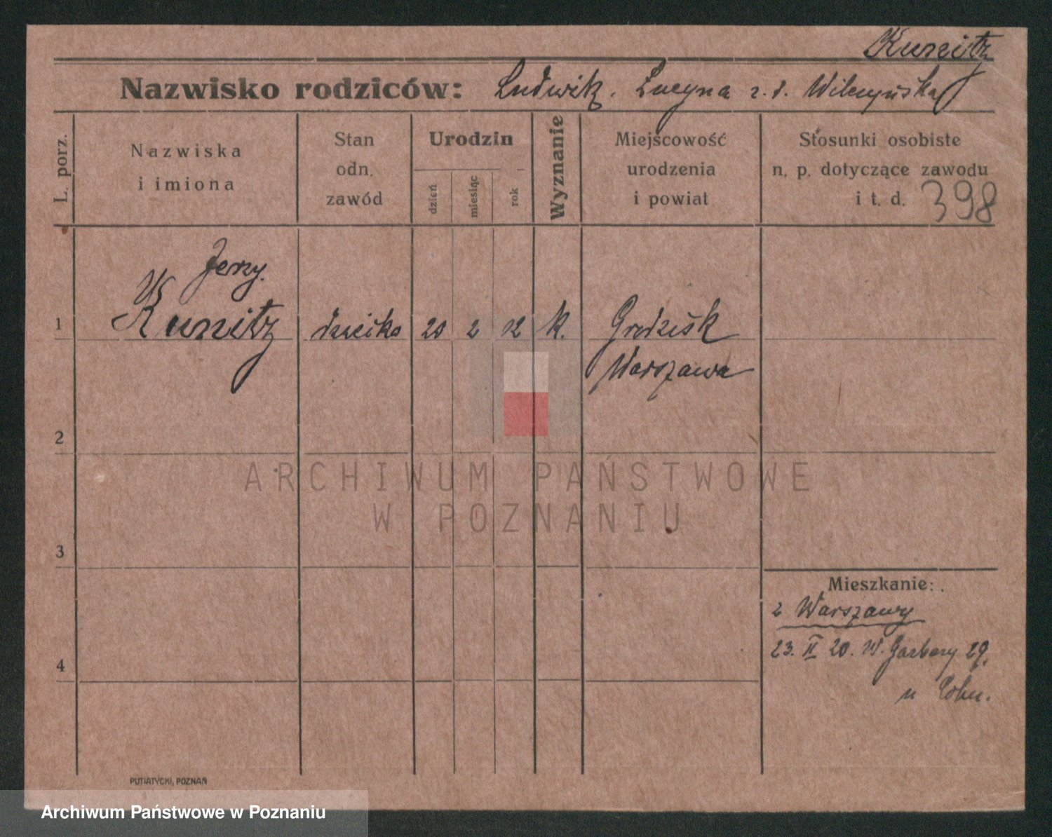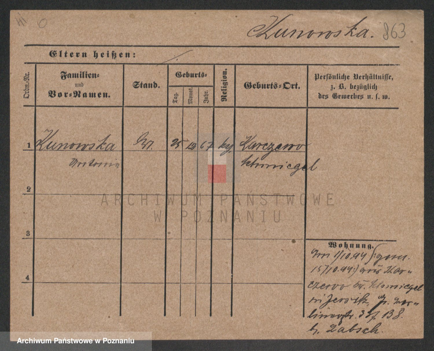 Podgląd karty osobowej dostępny jest po kliknięciu na nazwisko lub ikonkę karty. Można dokonywać powiększenia (ikony na górze) lub przechodzić między kolejnymi skanami (strzałki po bokach).